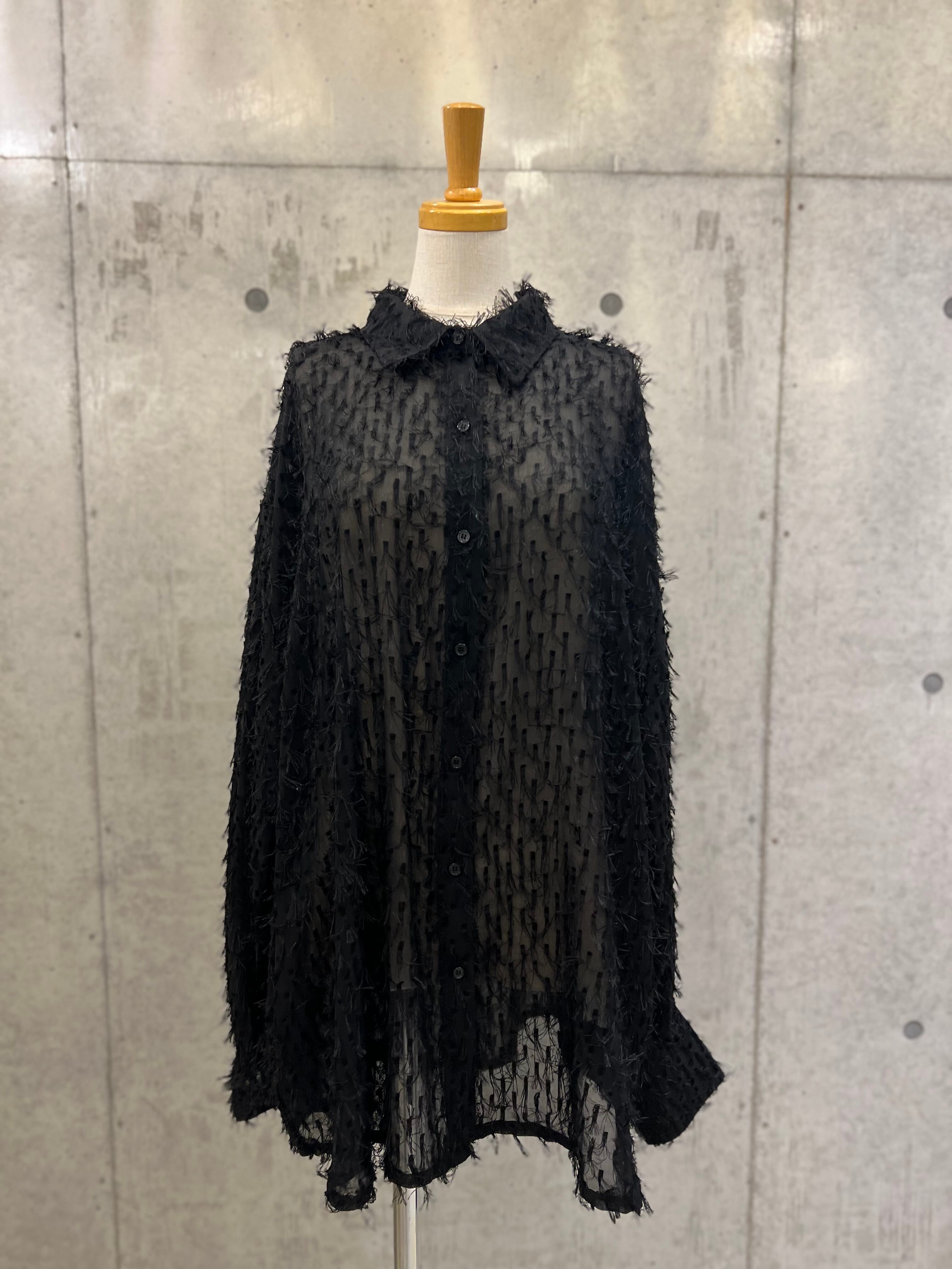 【即納】ミニフリンジシアーオーバーシャツ【ブラック】