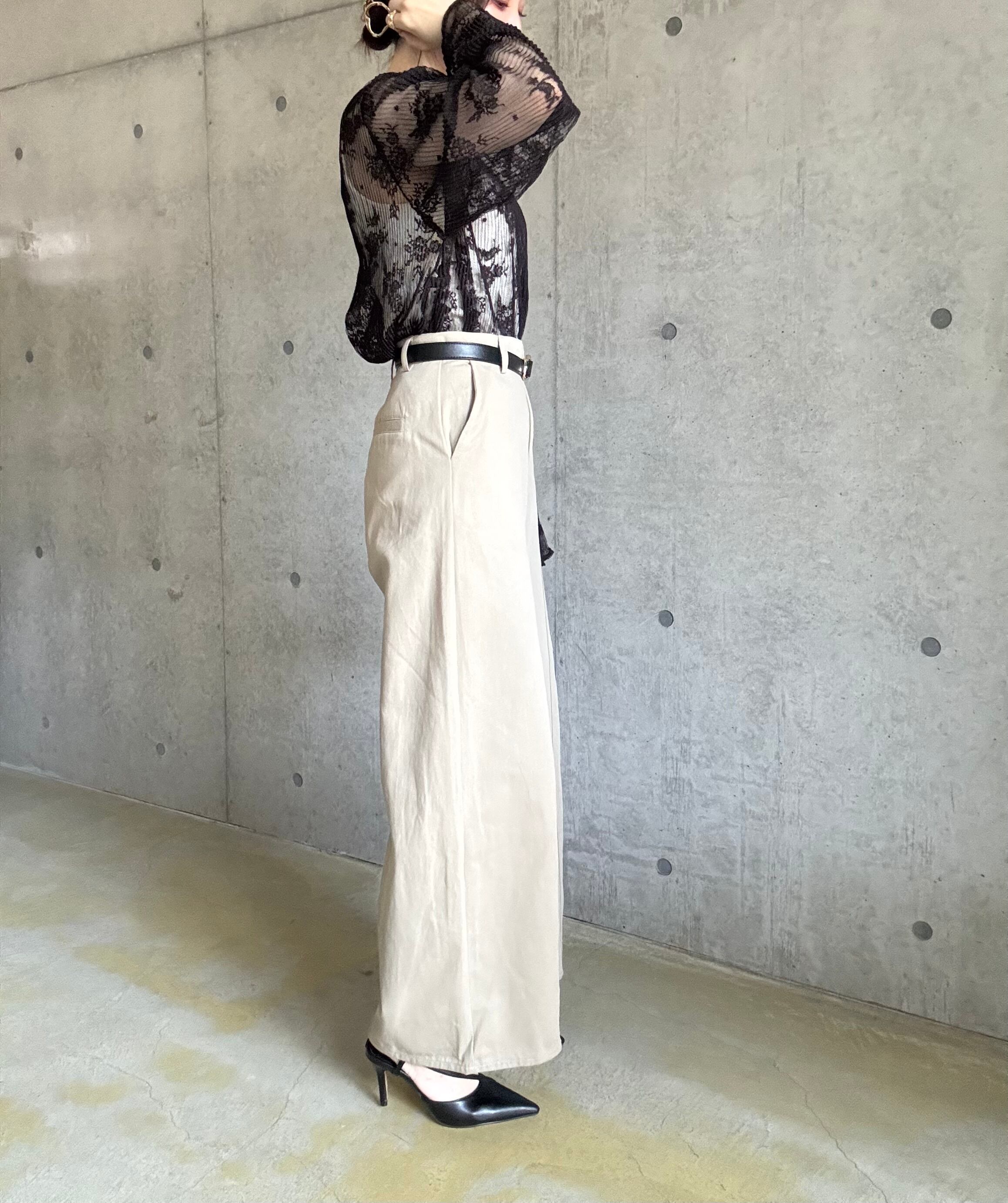 【即納】センターシームワイドパンツ【ライトカーキ】