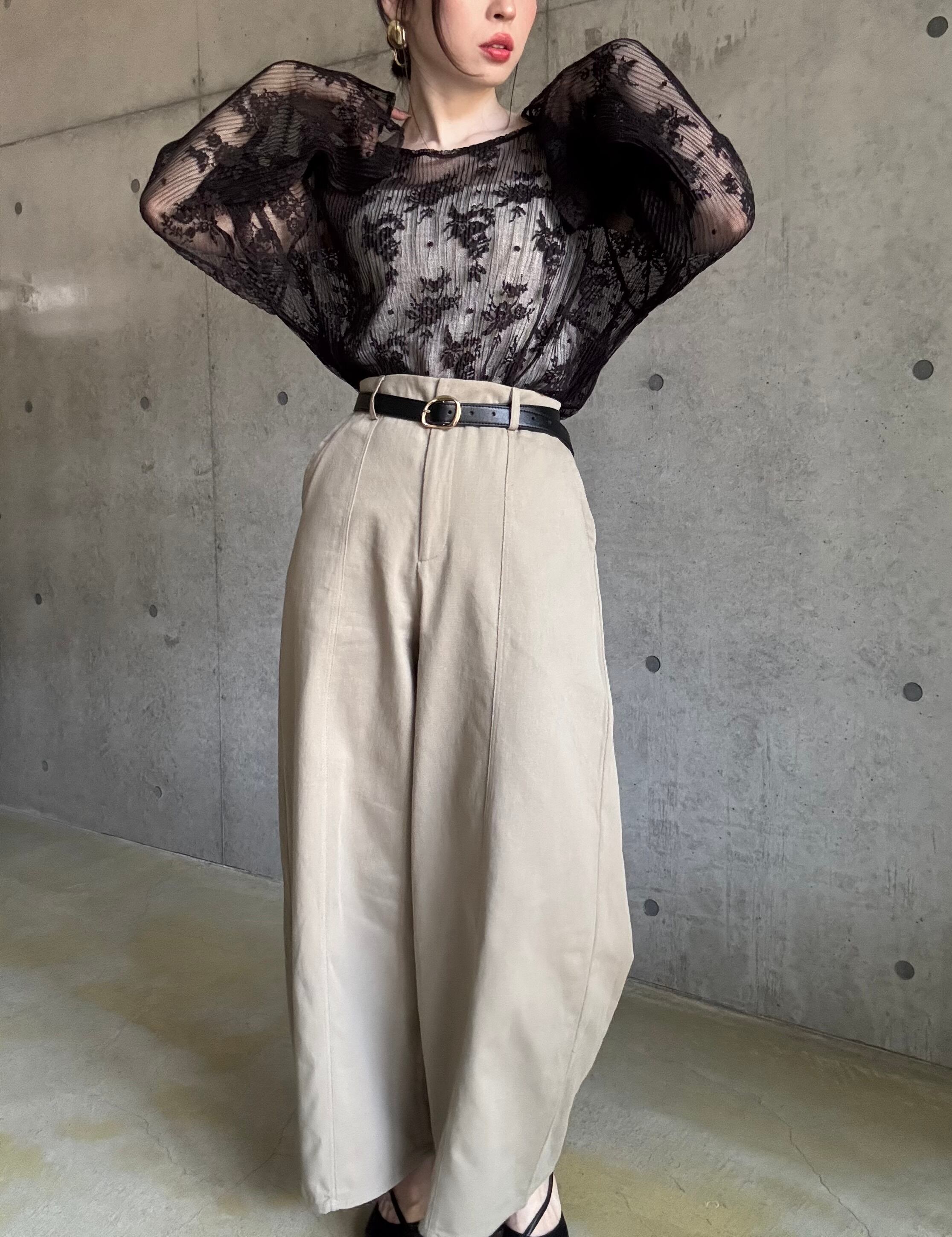 やや丸みのあるシルエットが女性らしいワイドパンツ✨