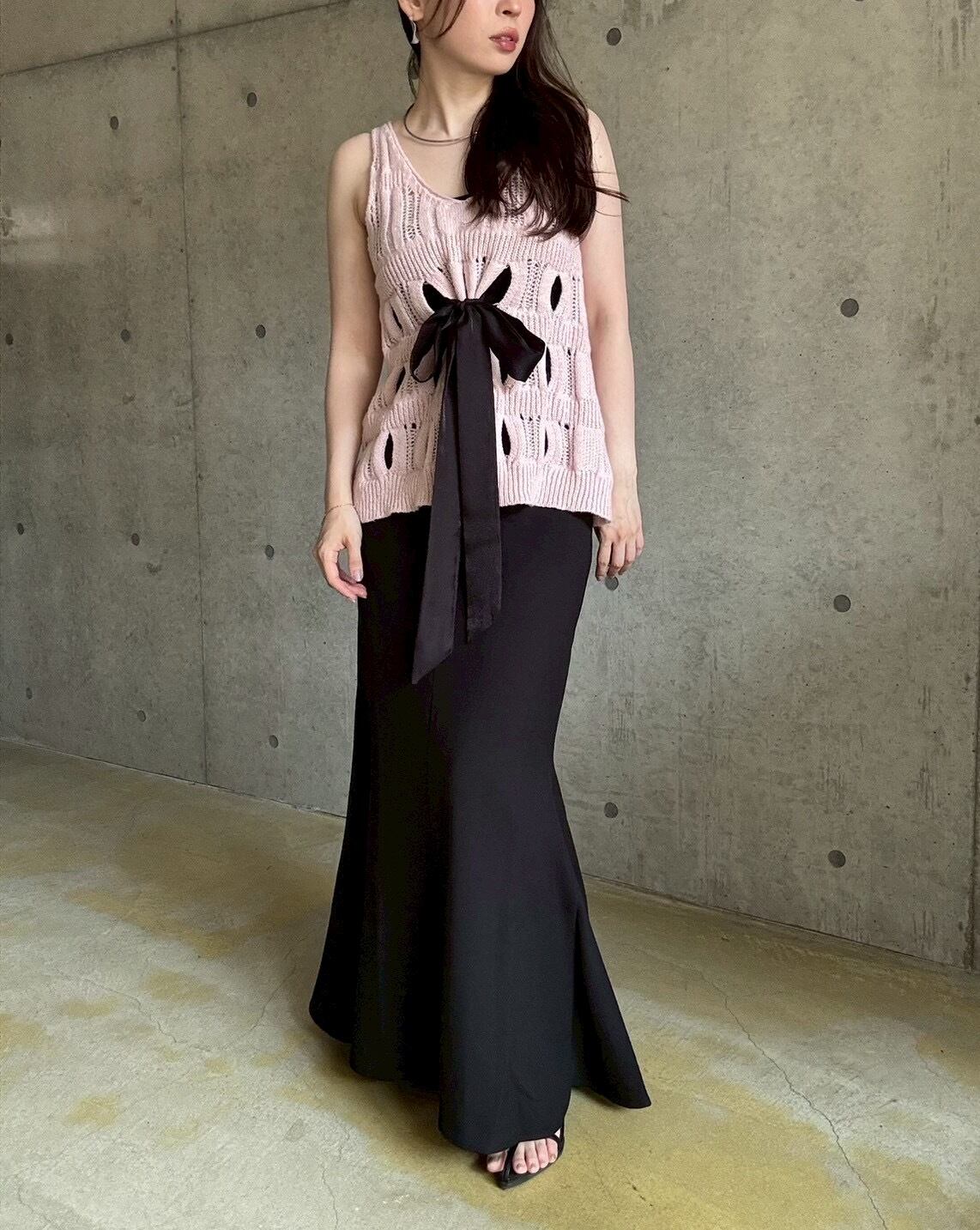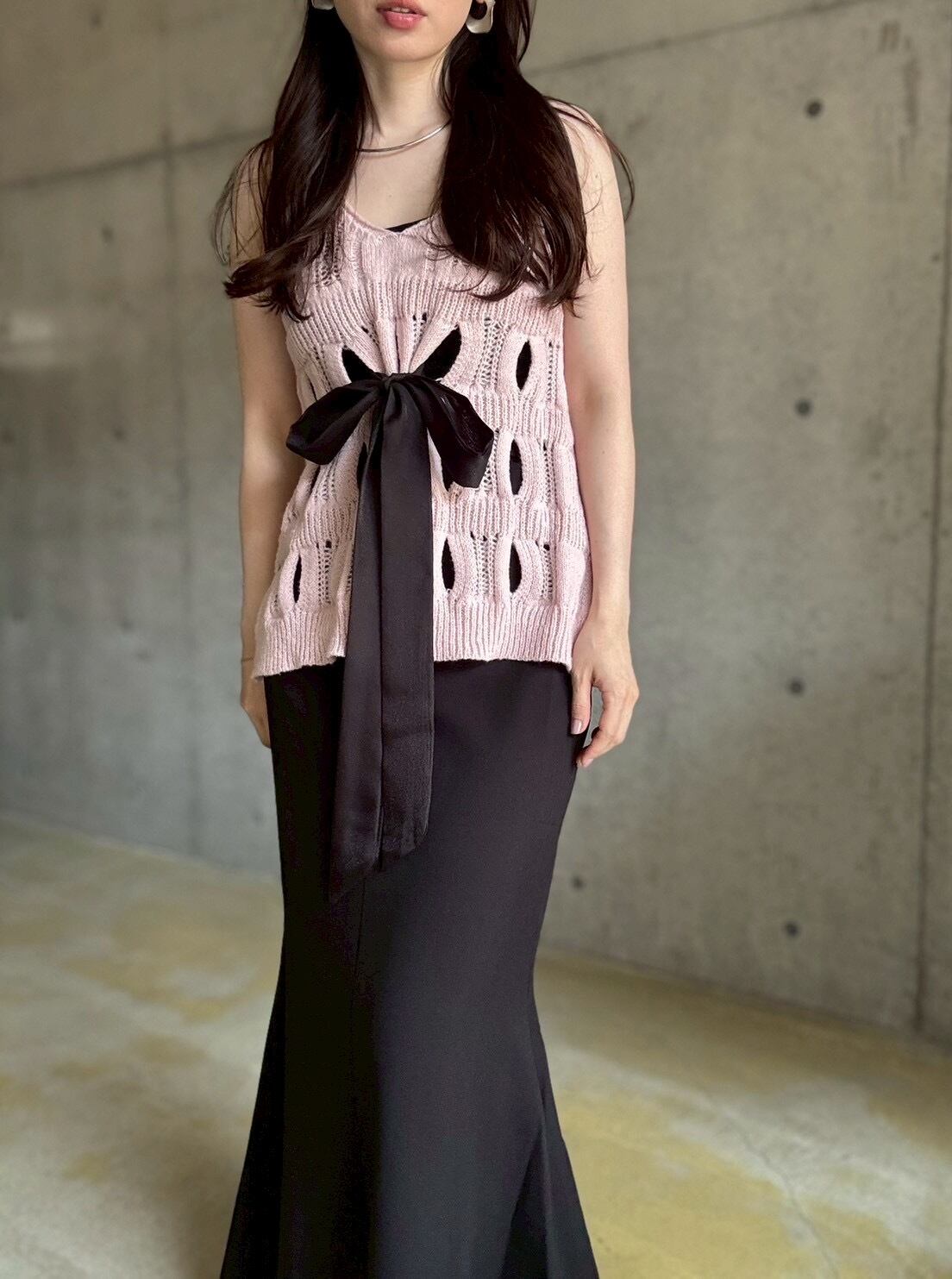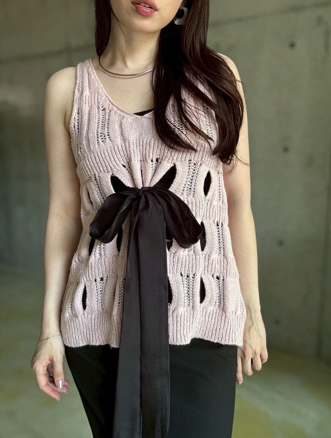 穴あきデザイン&リボンが目を引くニットトップス✨