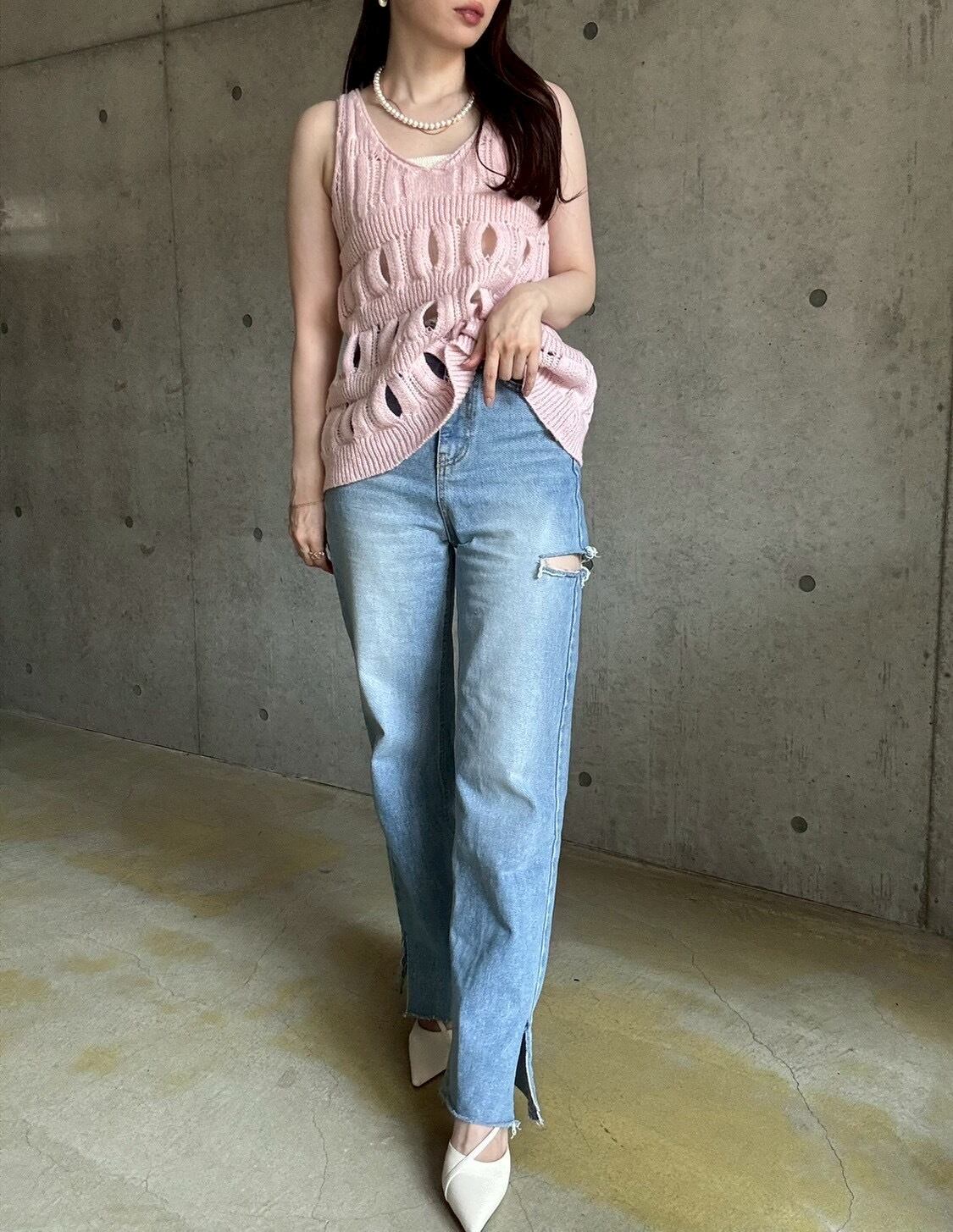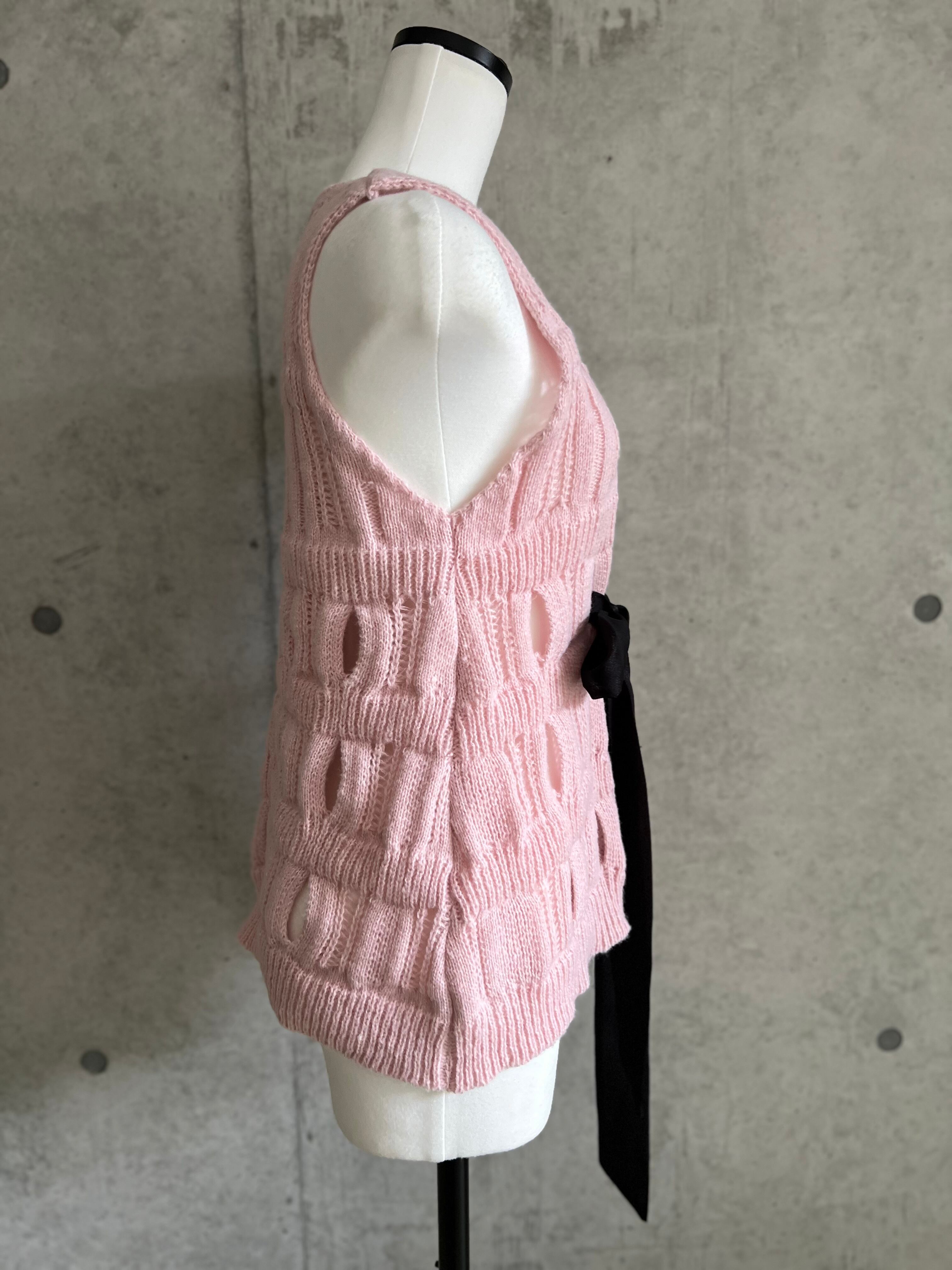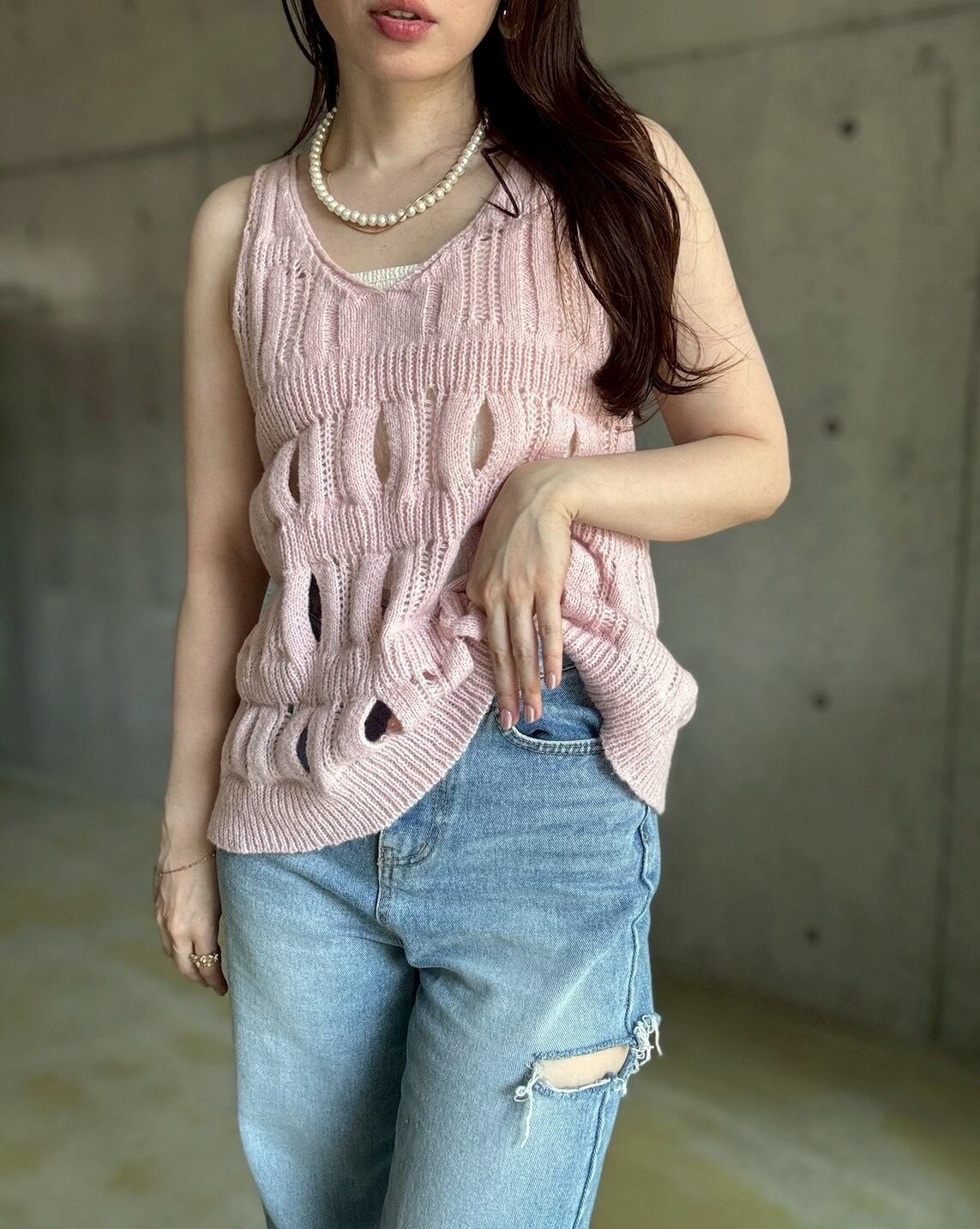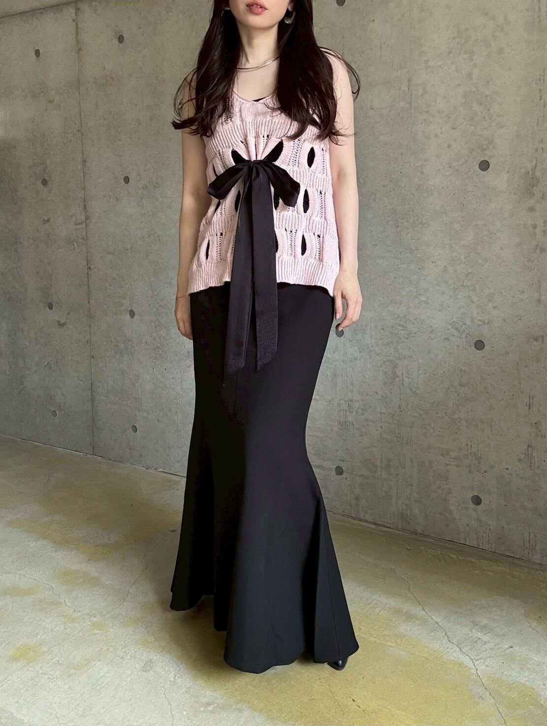 穴あきデザイン&リボンが目を引くニットトップス✨