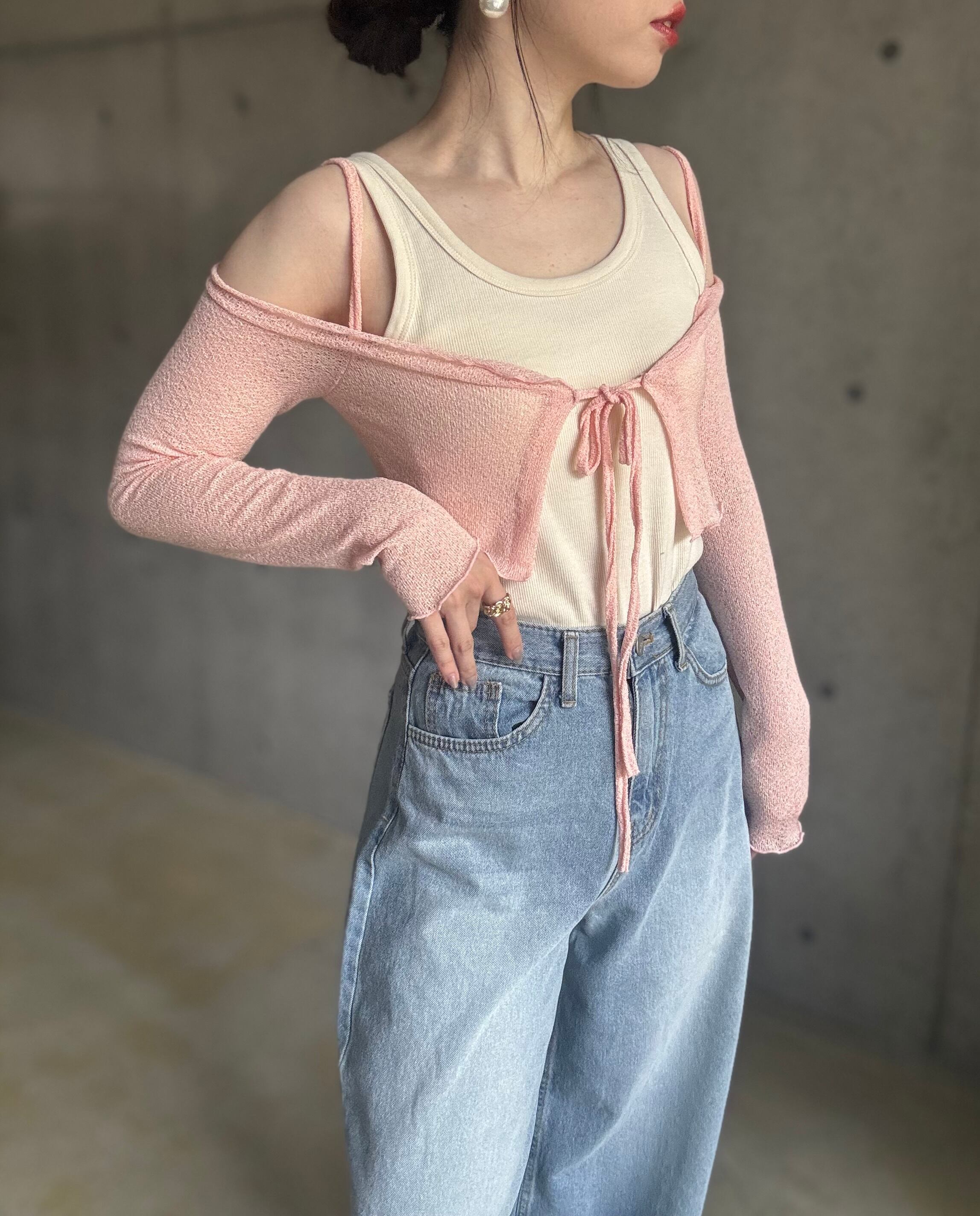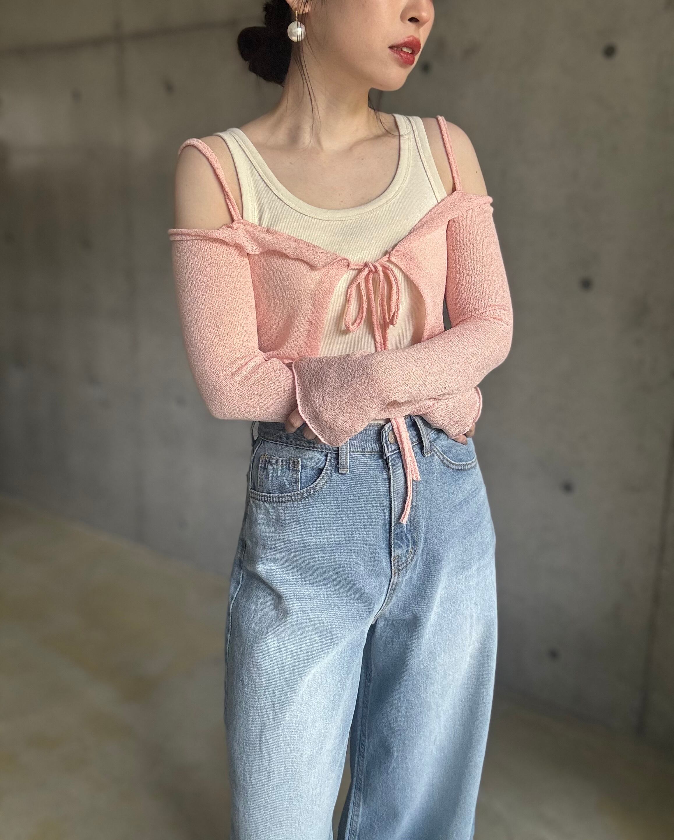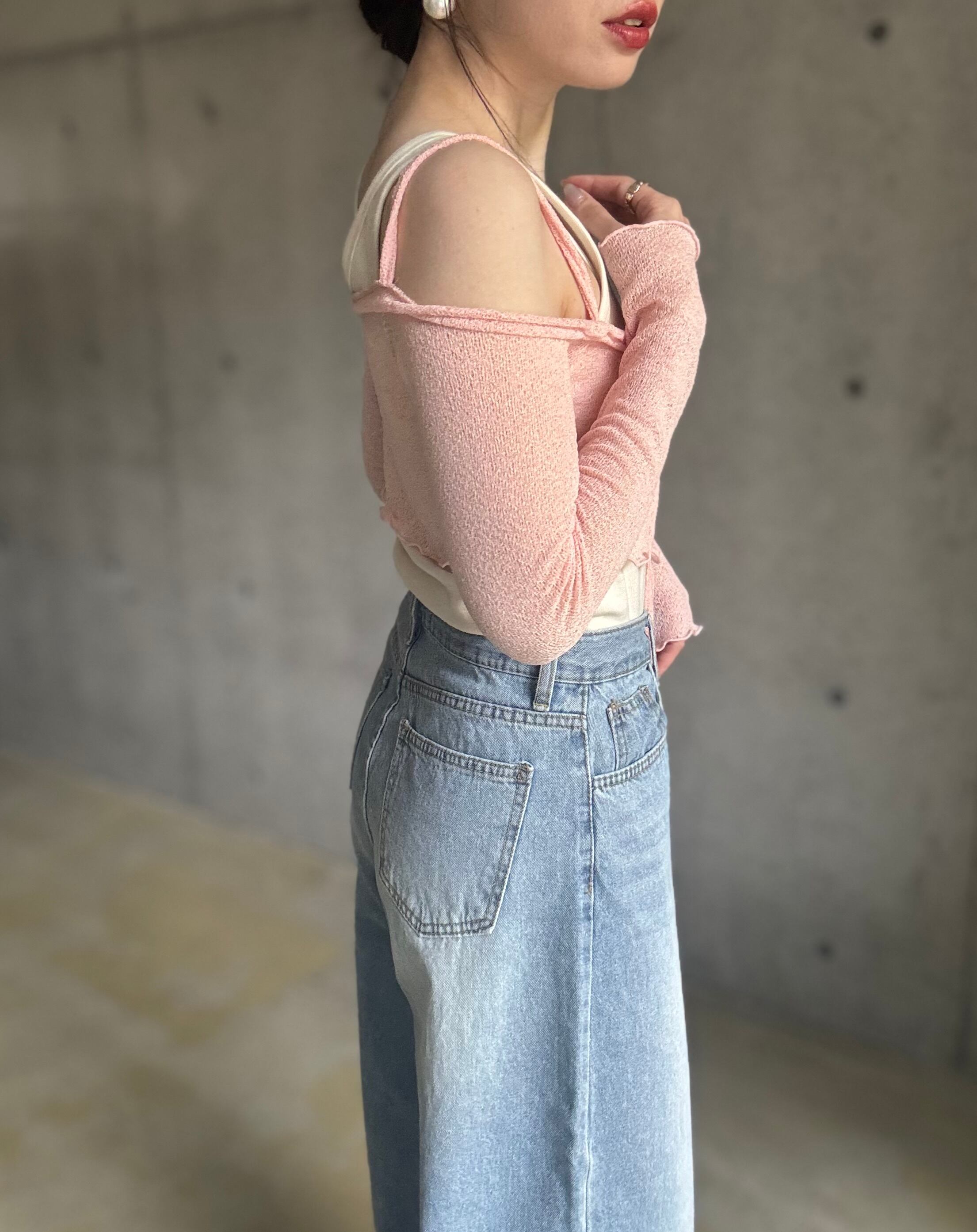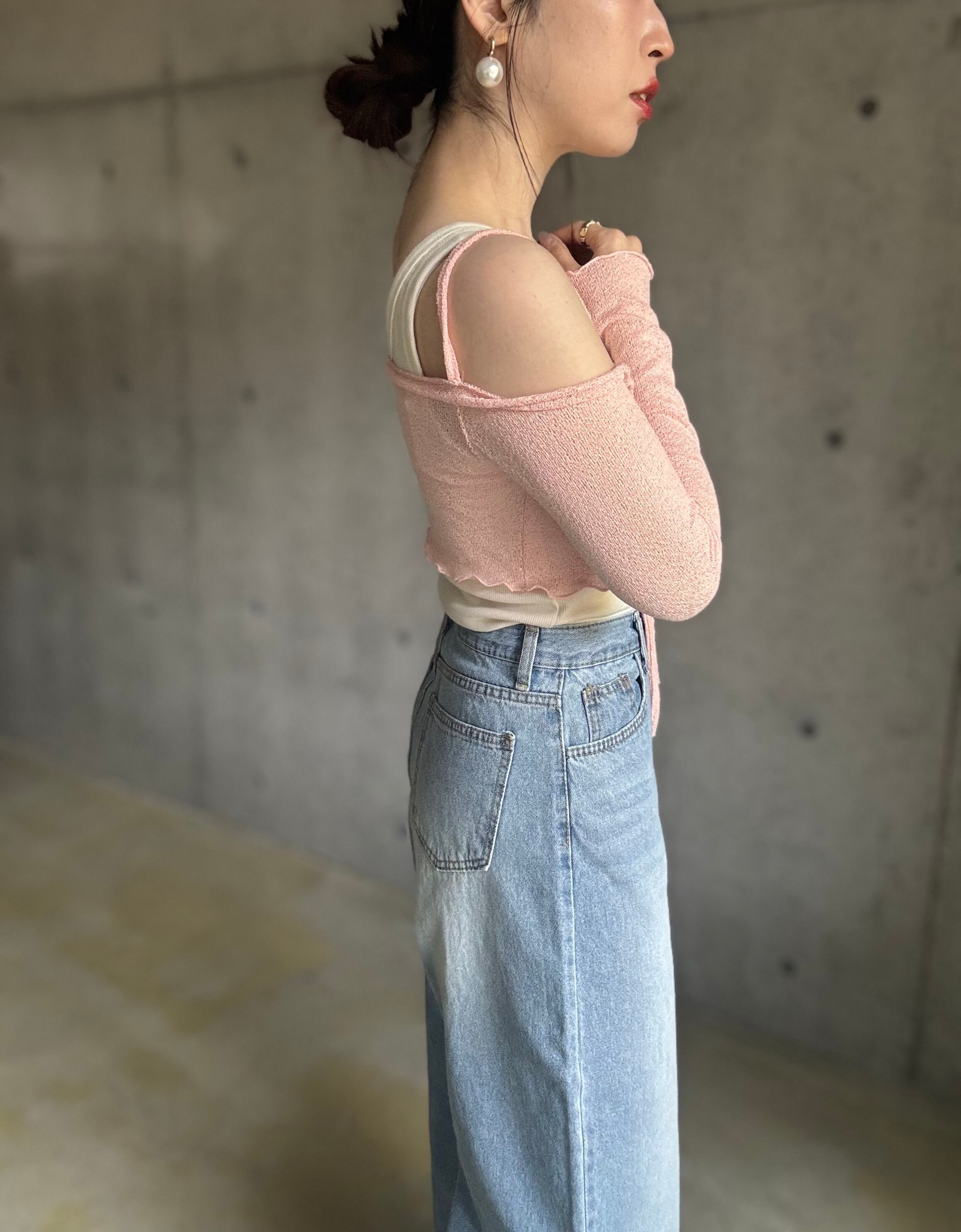 【即納】オフショルサマーニットカーディガン【ピンク】