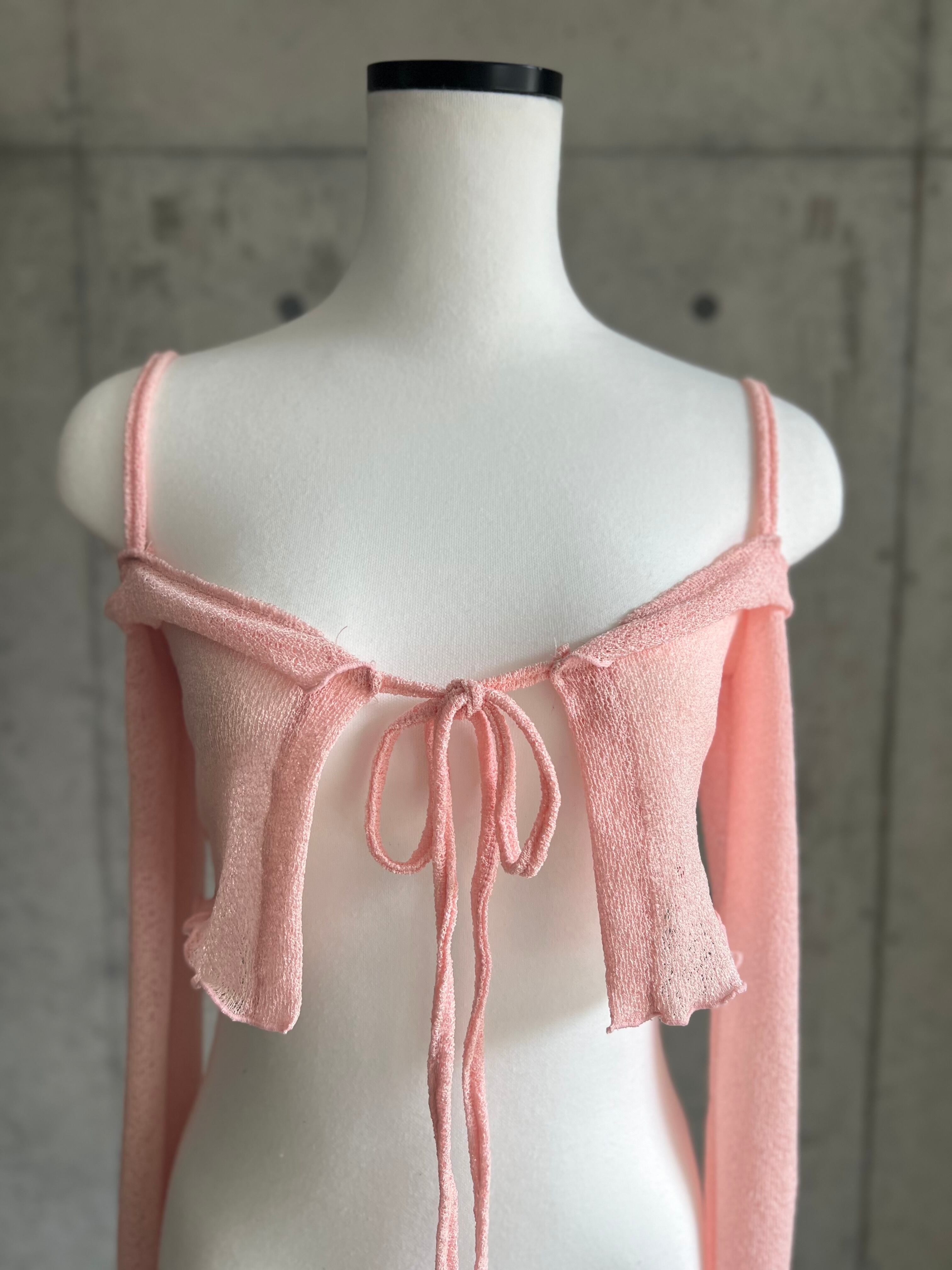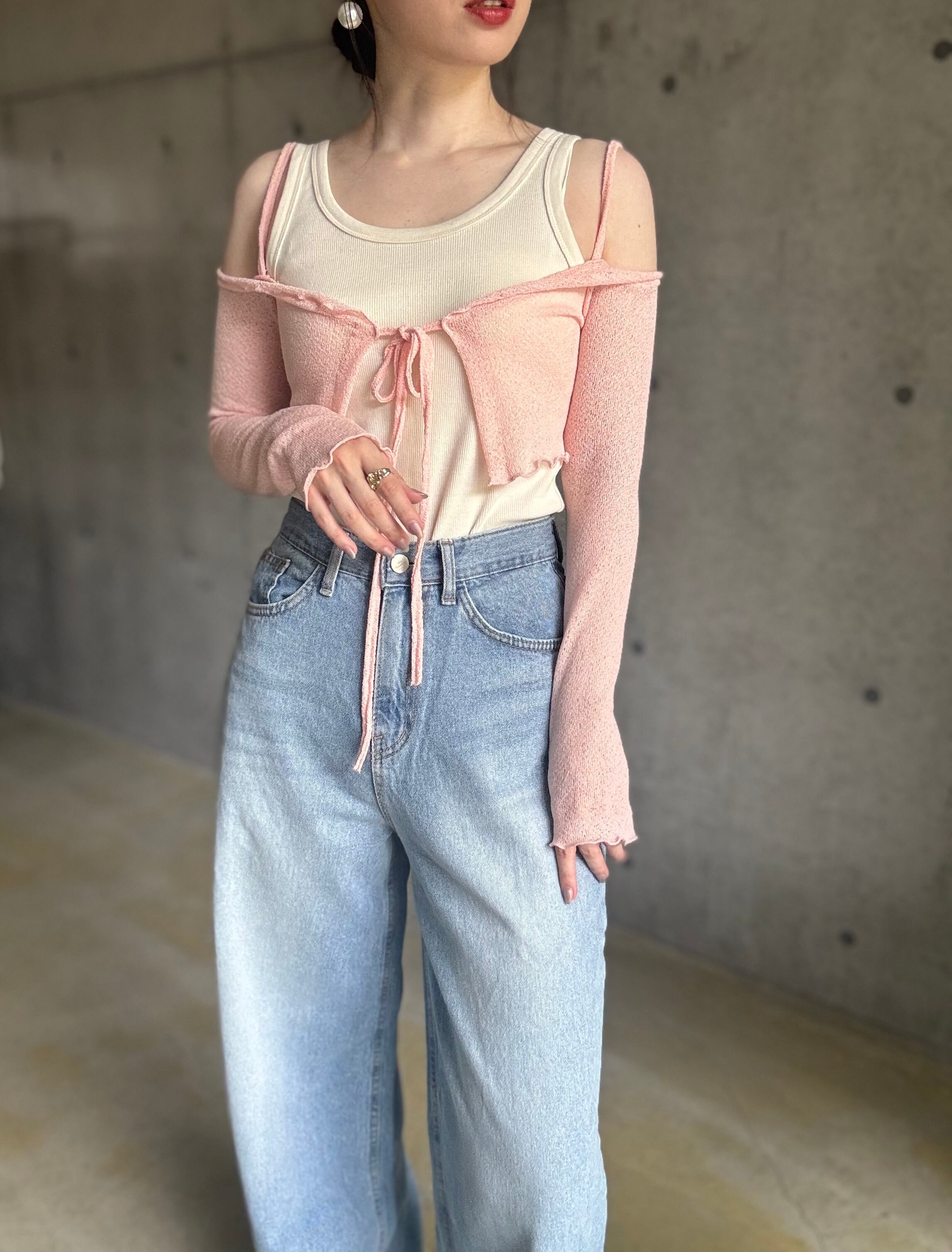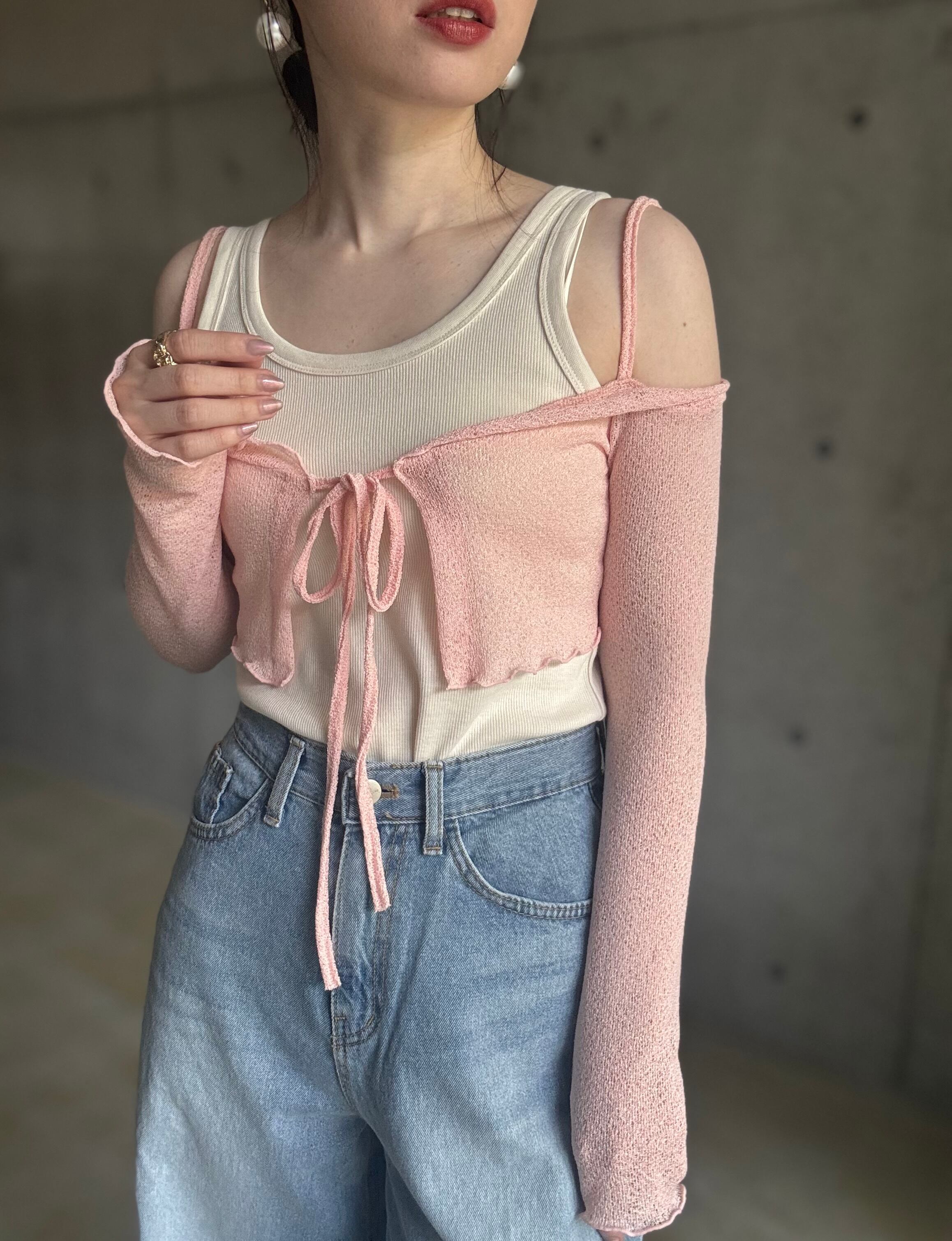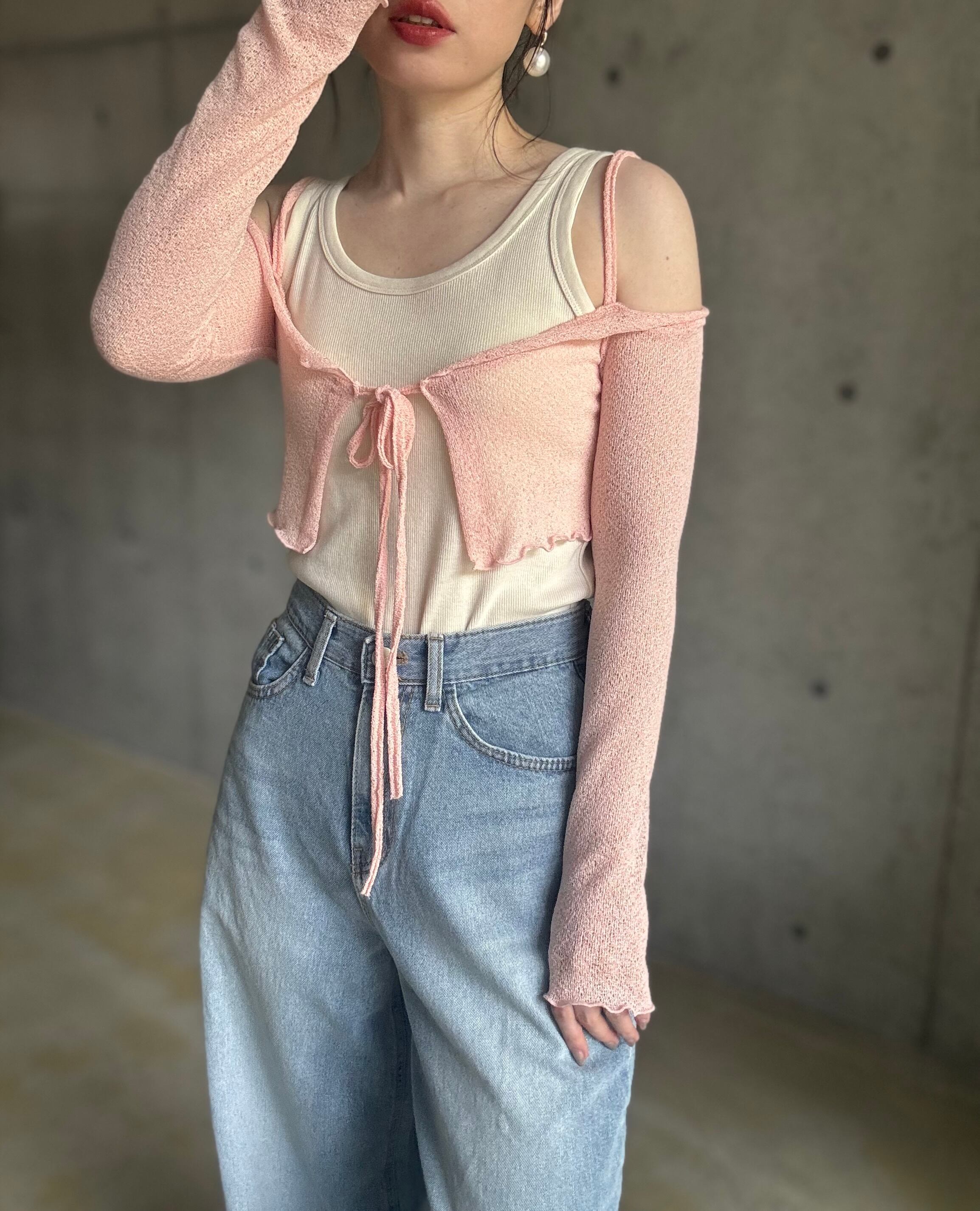 【即納】オフショルサマーニットカーディガン【ピンク】