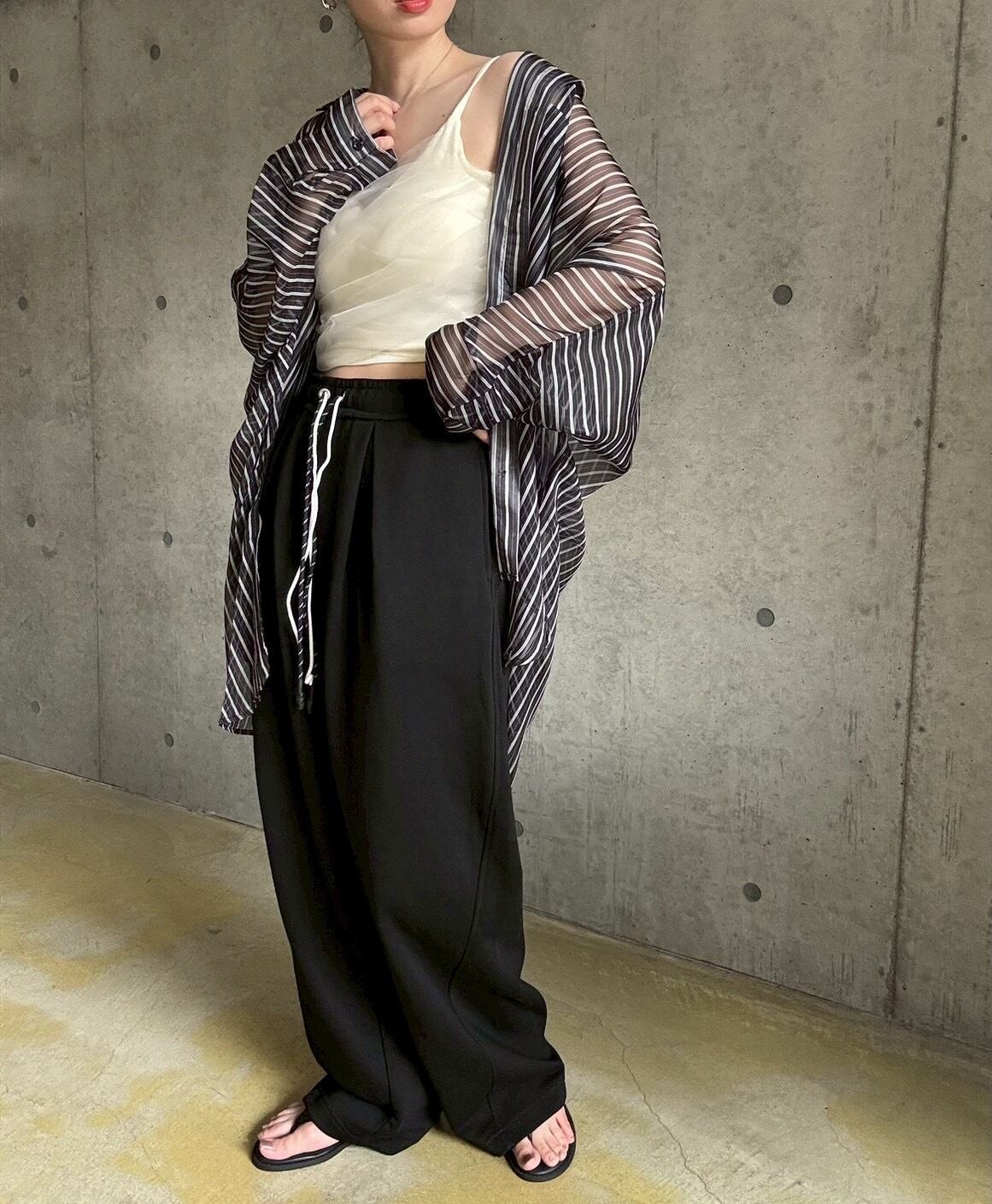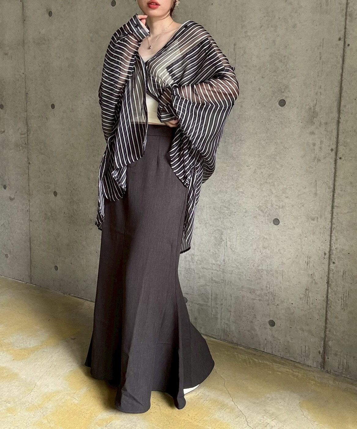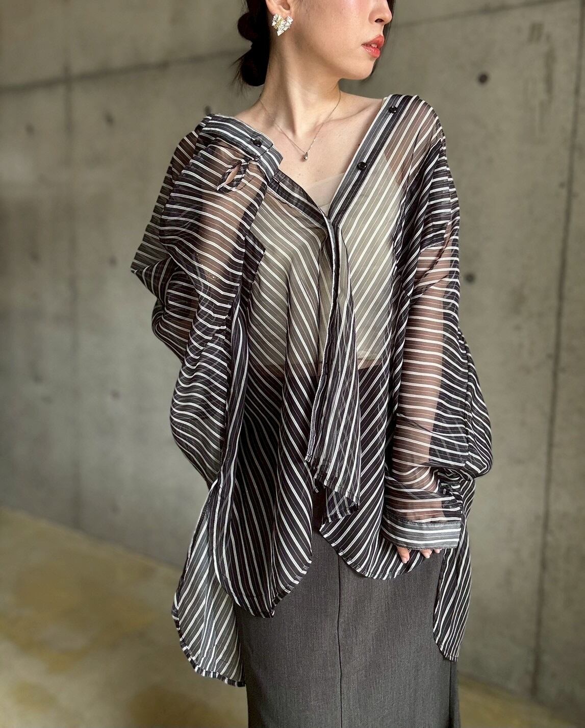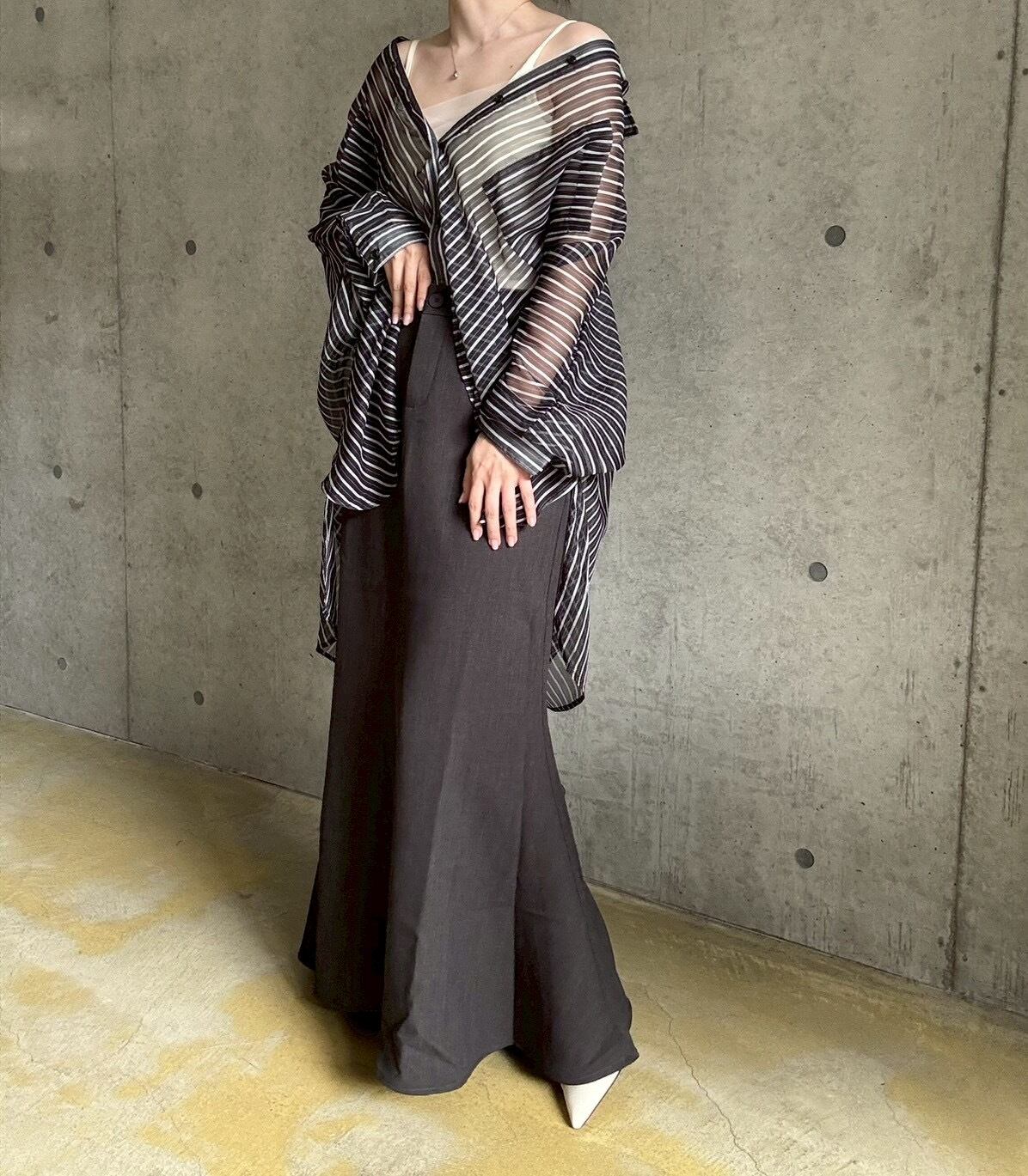 カラーストライプ×シアー感がシンプルなコーデにアクセントを加えてくれるので、これ一枚でこなれ感のあるスタイリングが完成しちゃいます✨