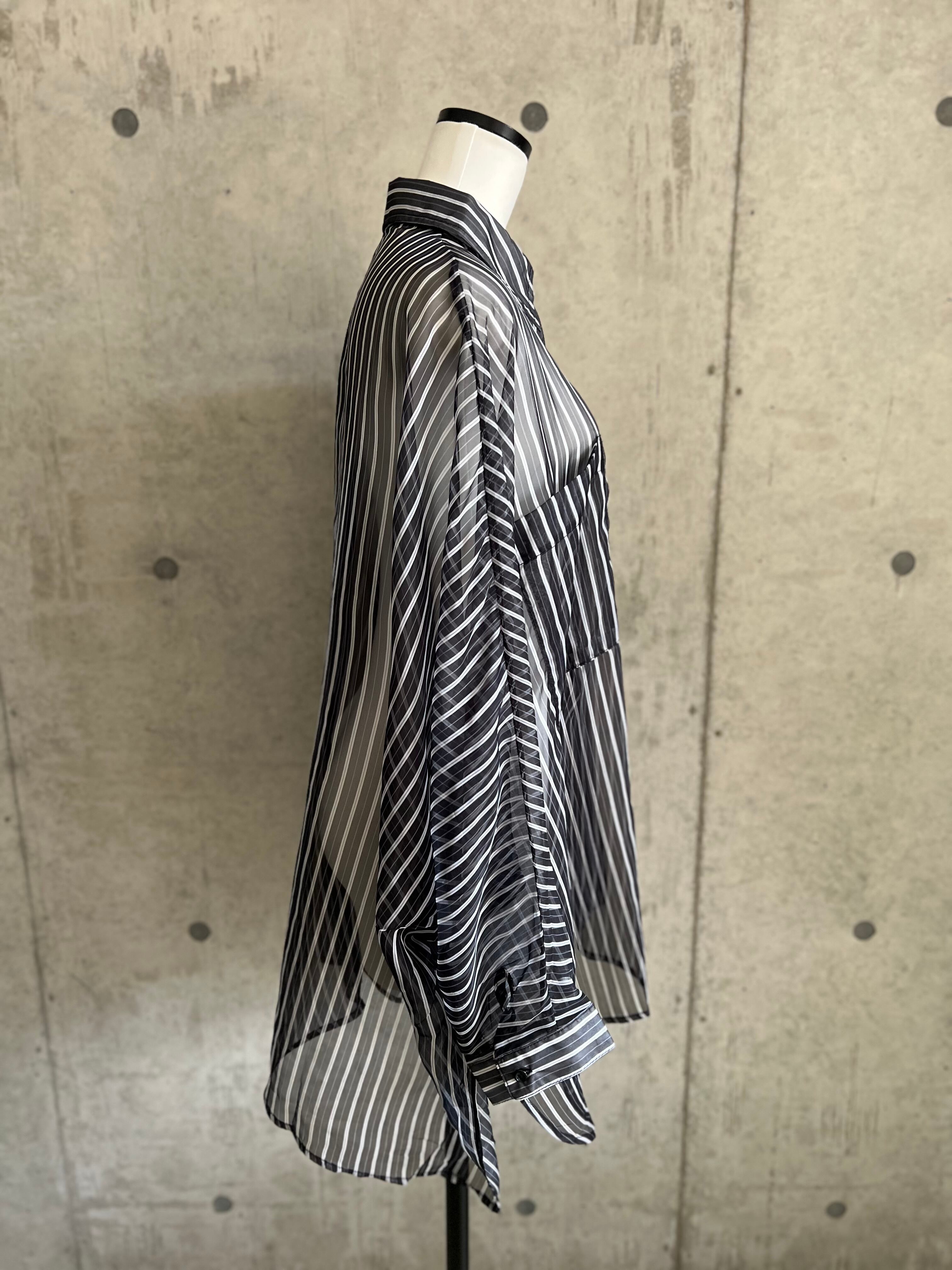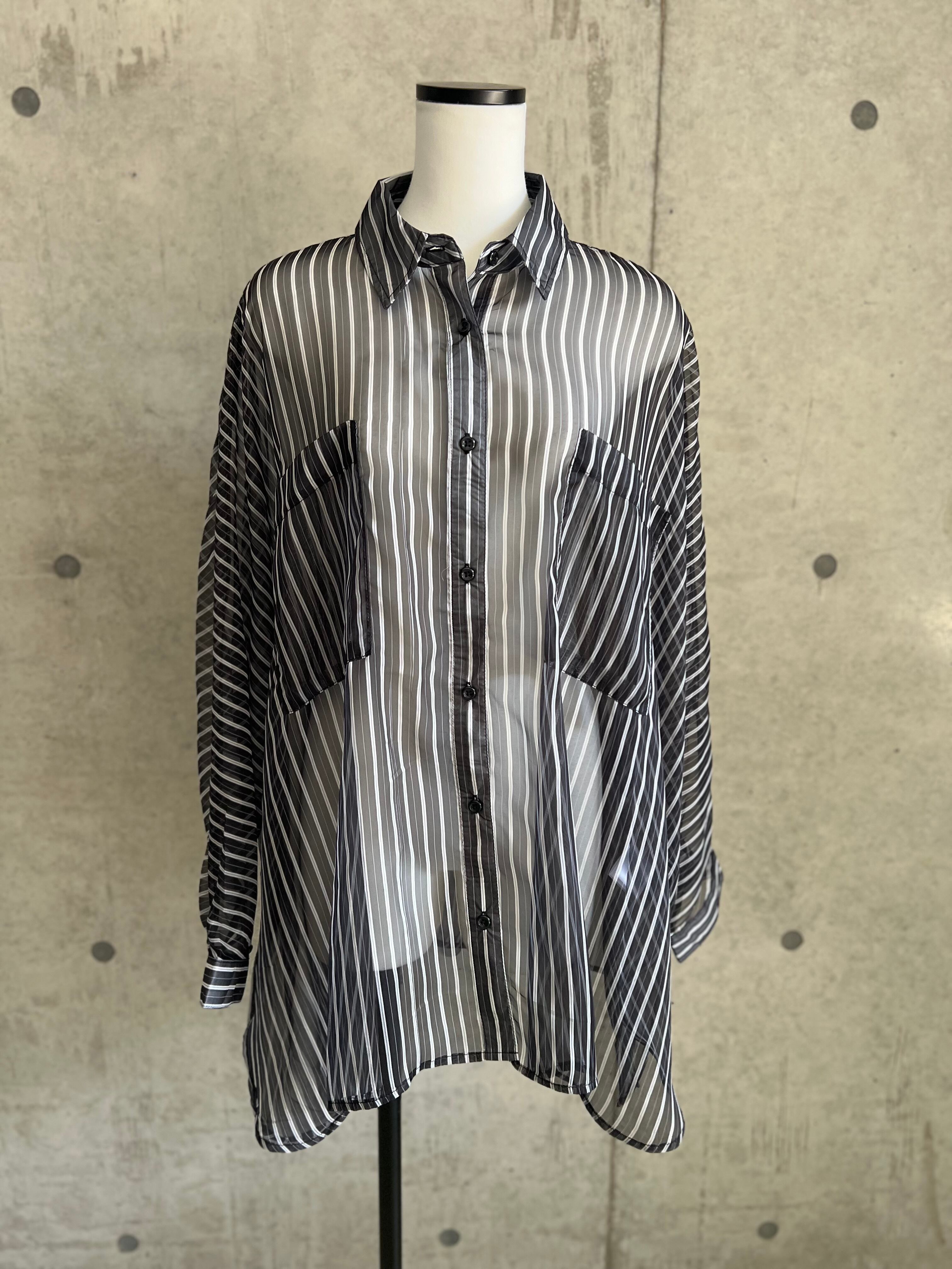 【即納】シアーストライプオーバーシャツ【ブラック】