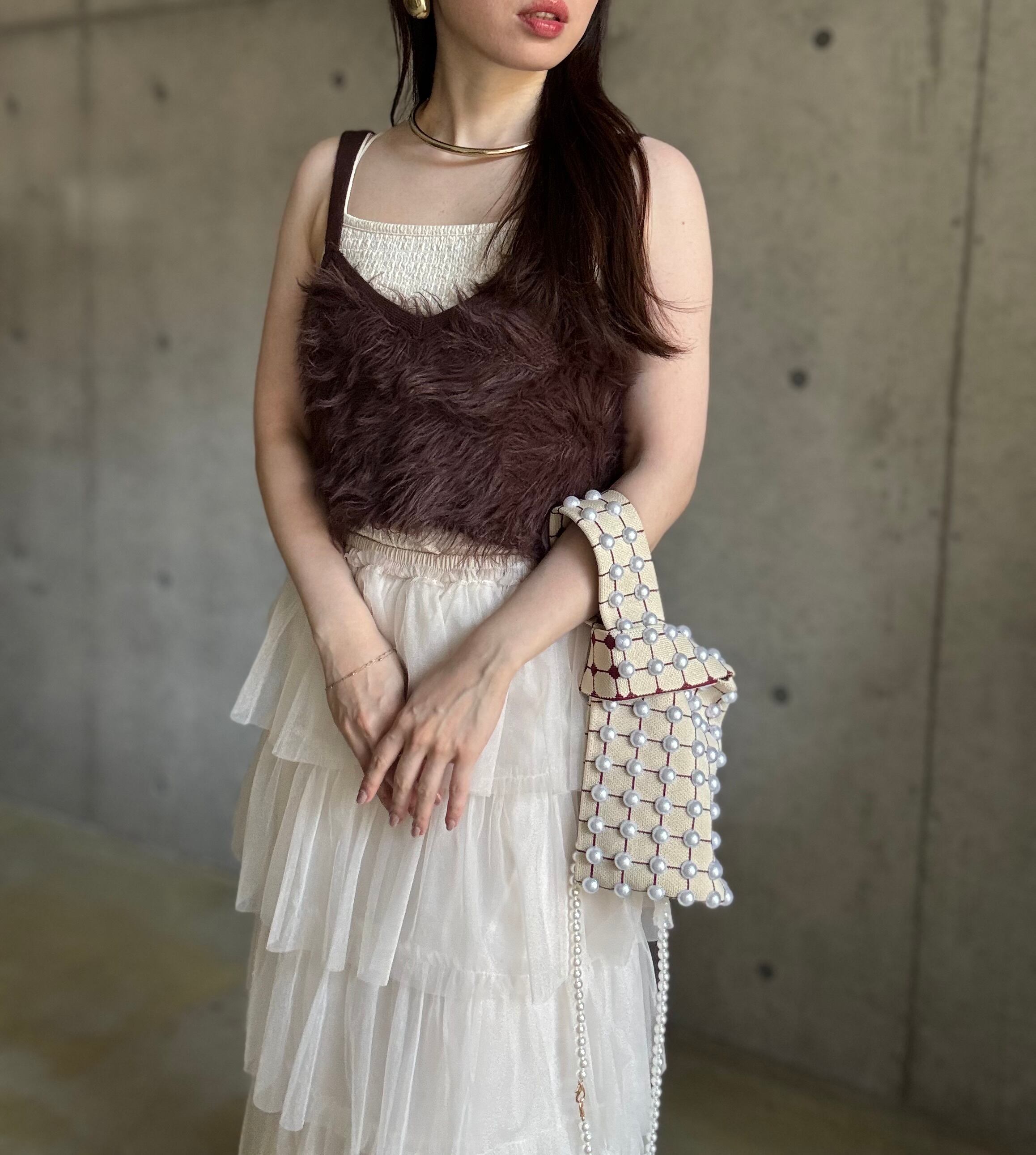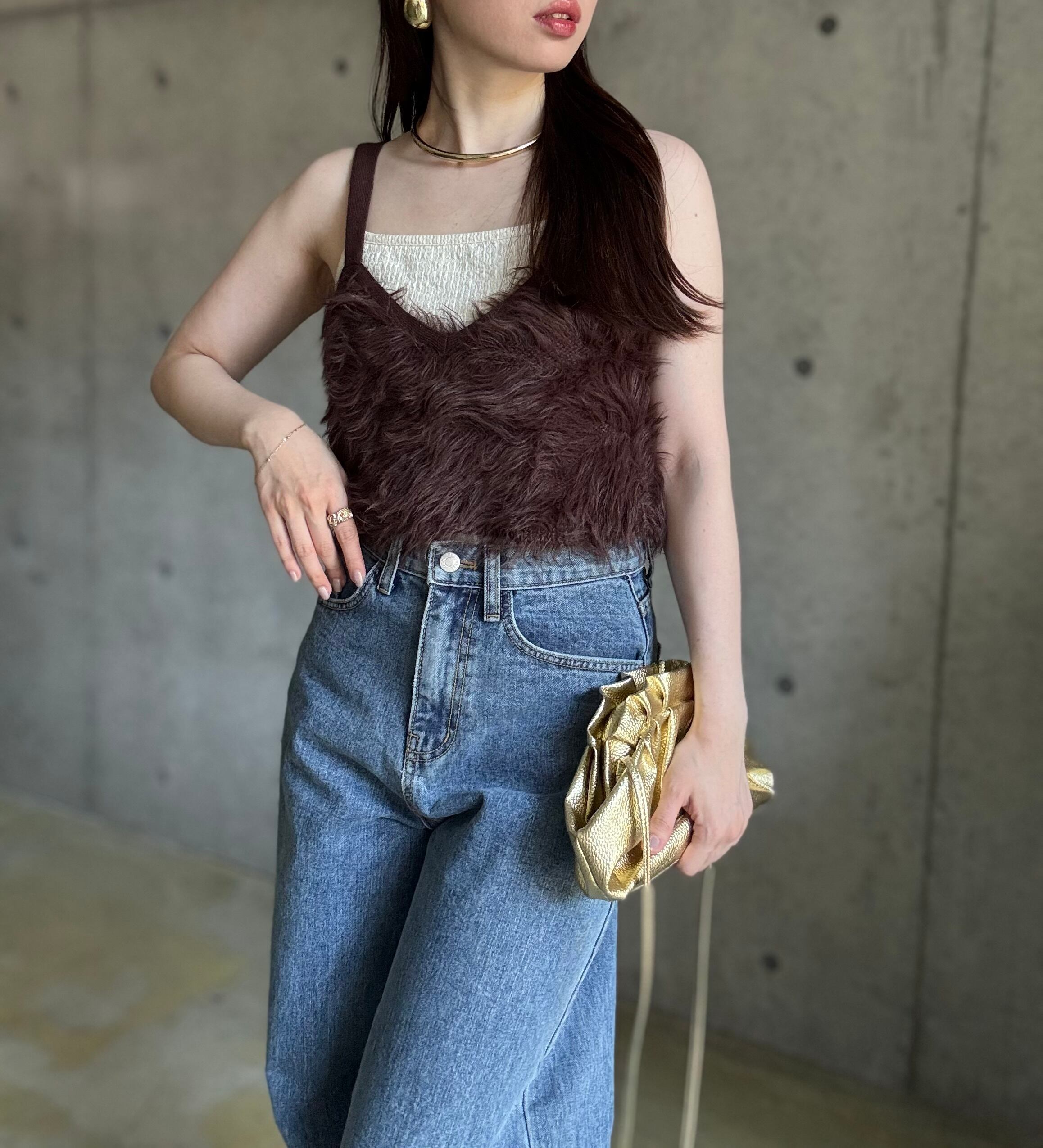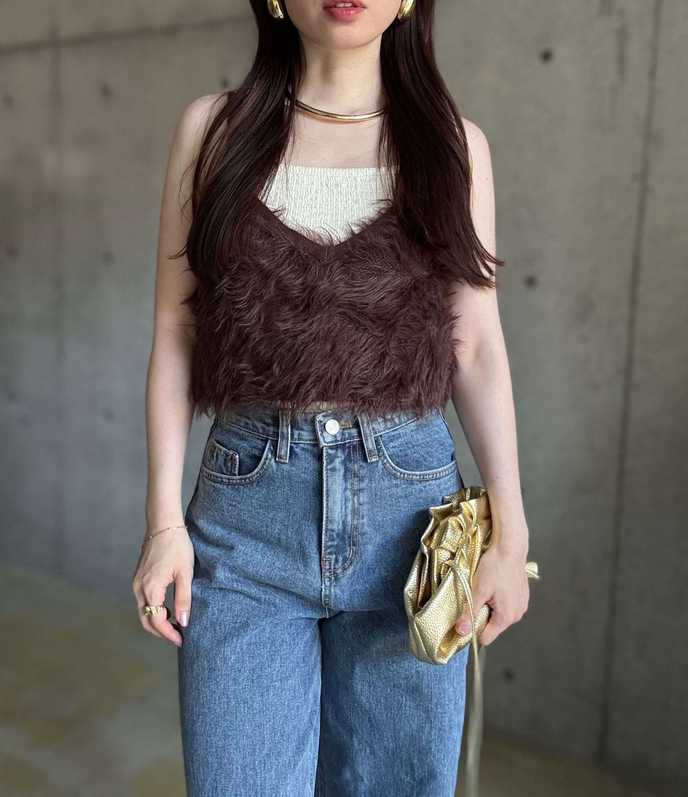 毛足長めの素材が目を惹く存在感たっぷりのビスチェ♪