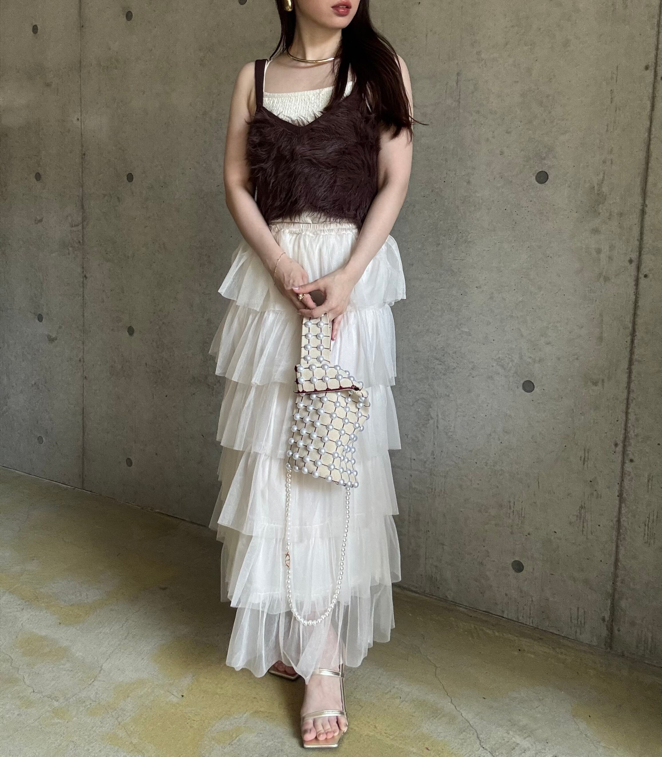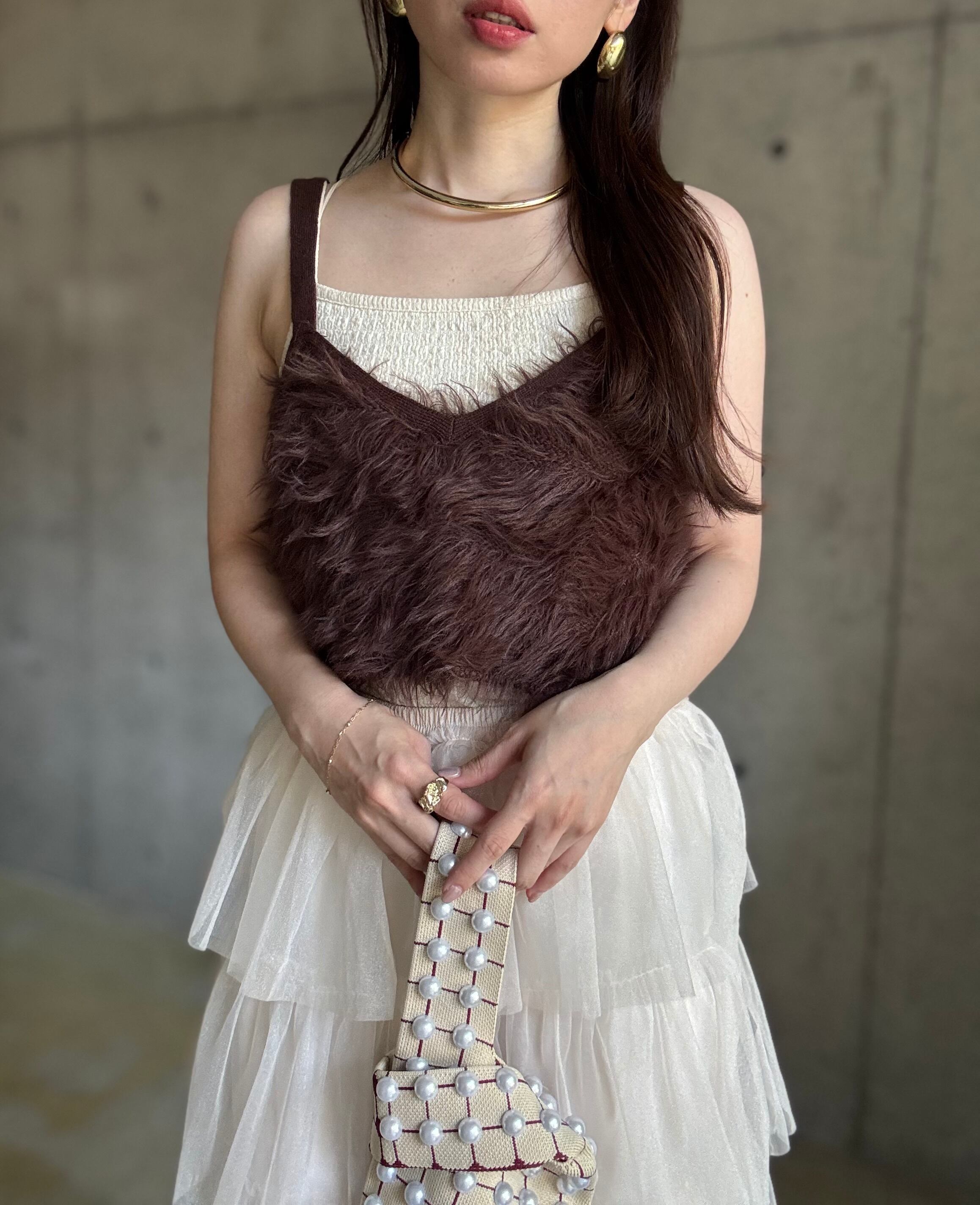 ふわふわっとした毛足の長いシャギーニットを使用したビスチェ✨