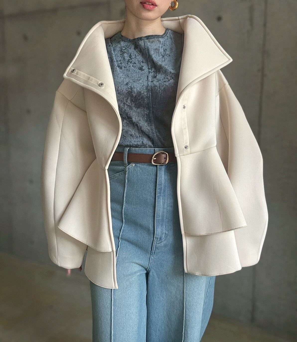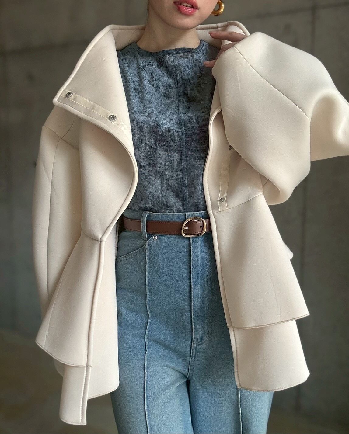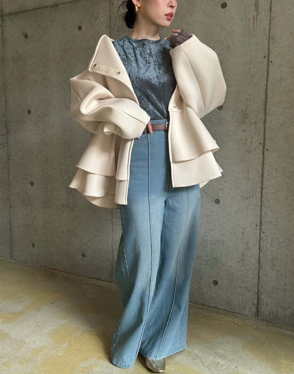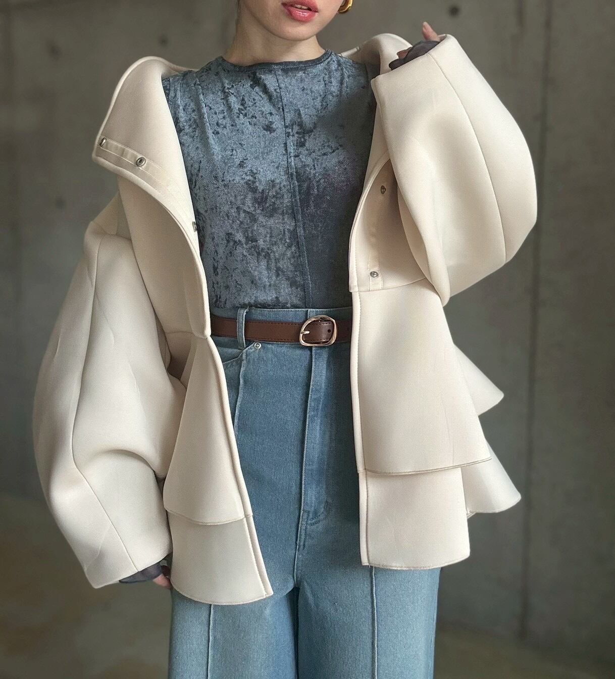 1枚ではもちろん、寒い季節はニットやスウェットなどと合わせてレイヤードを楽しむのもおすすめです✨