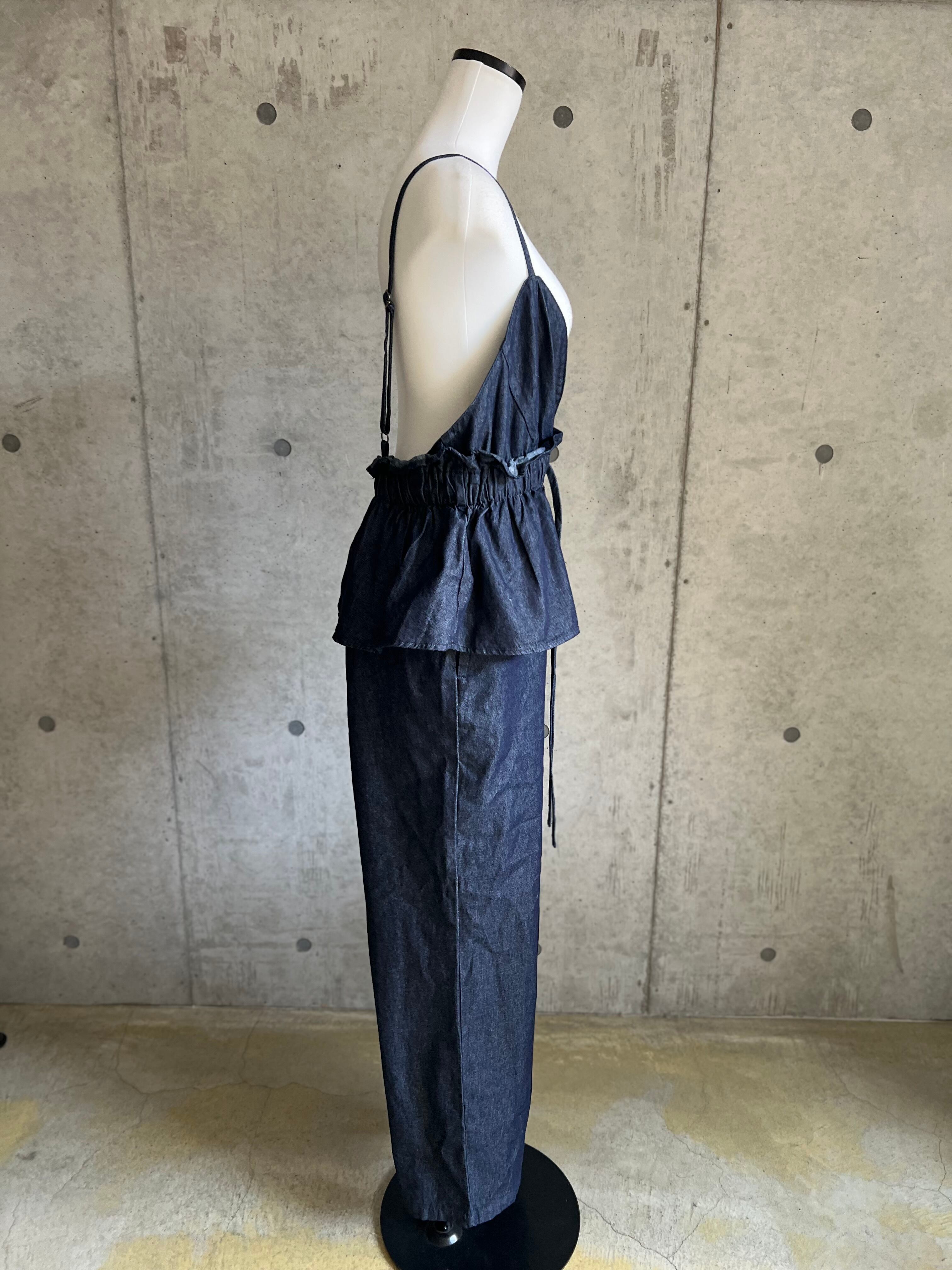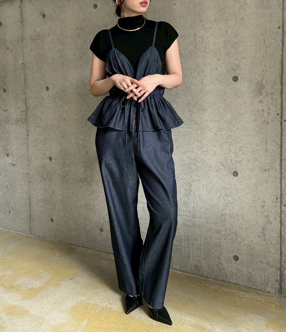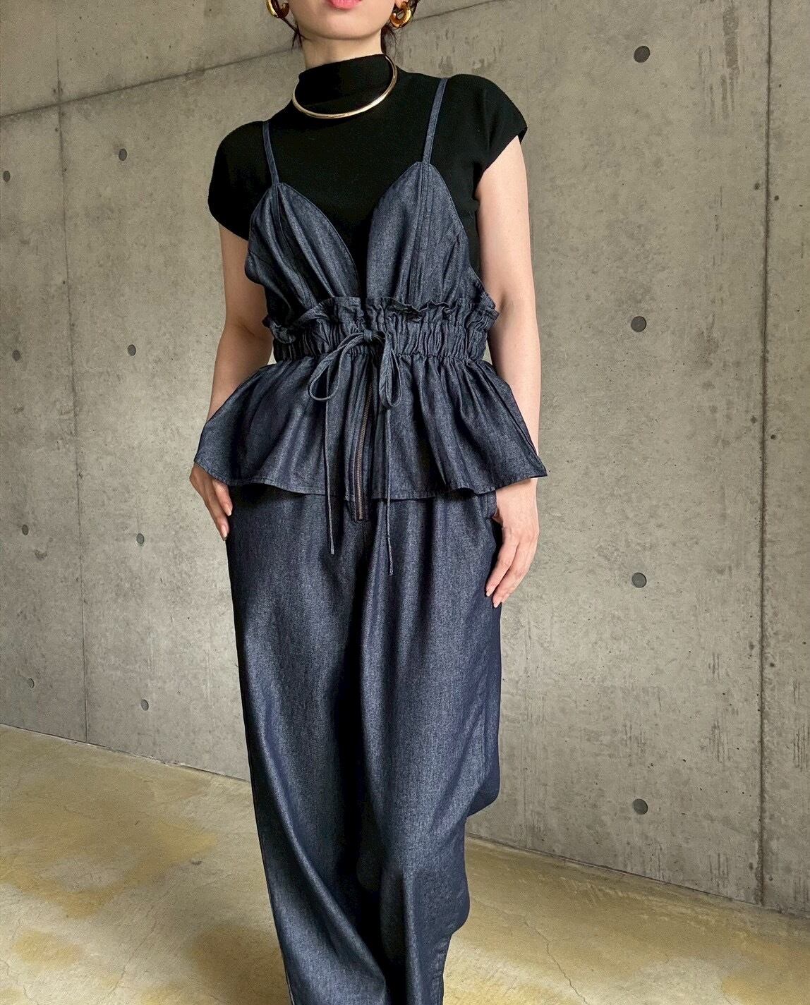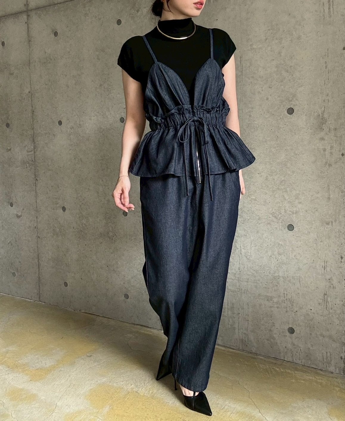 デニムライクペプラムレイヤードサロペット【ネイビー】