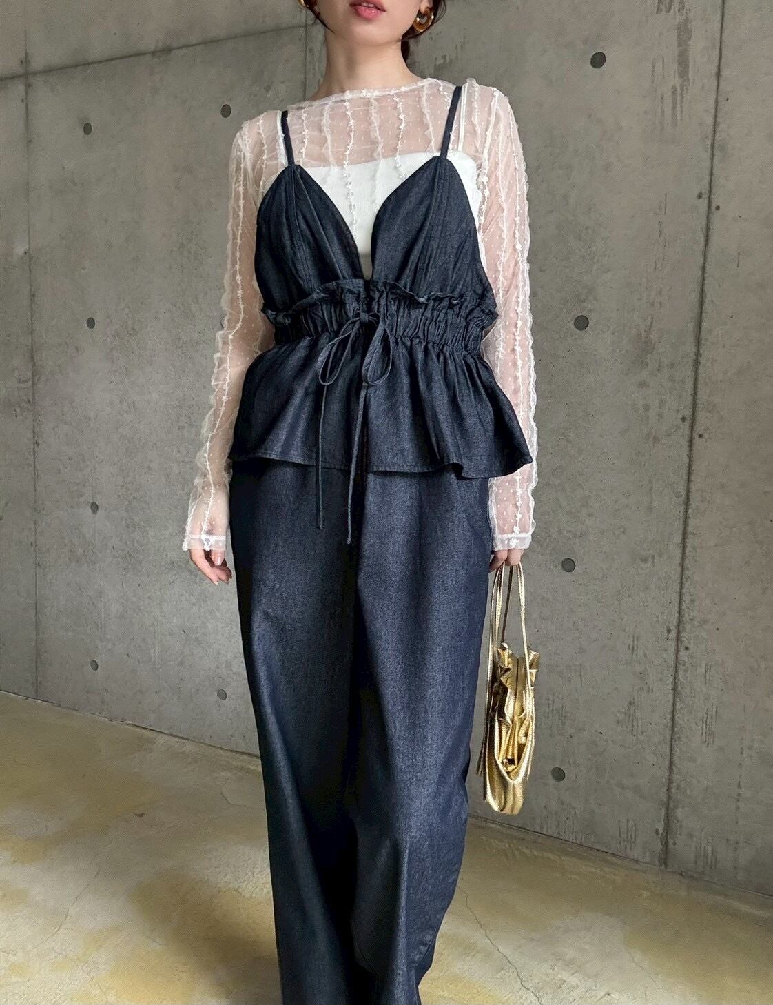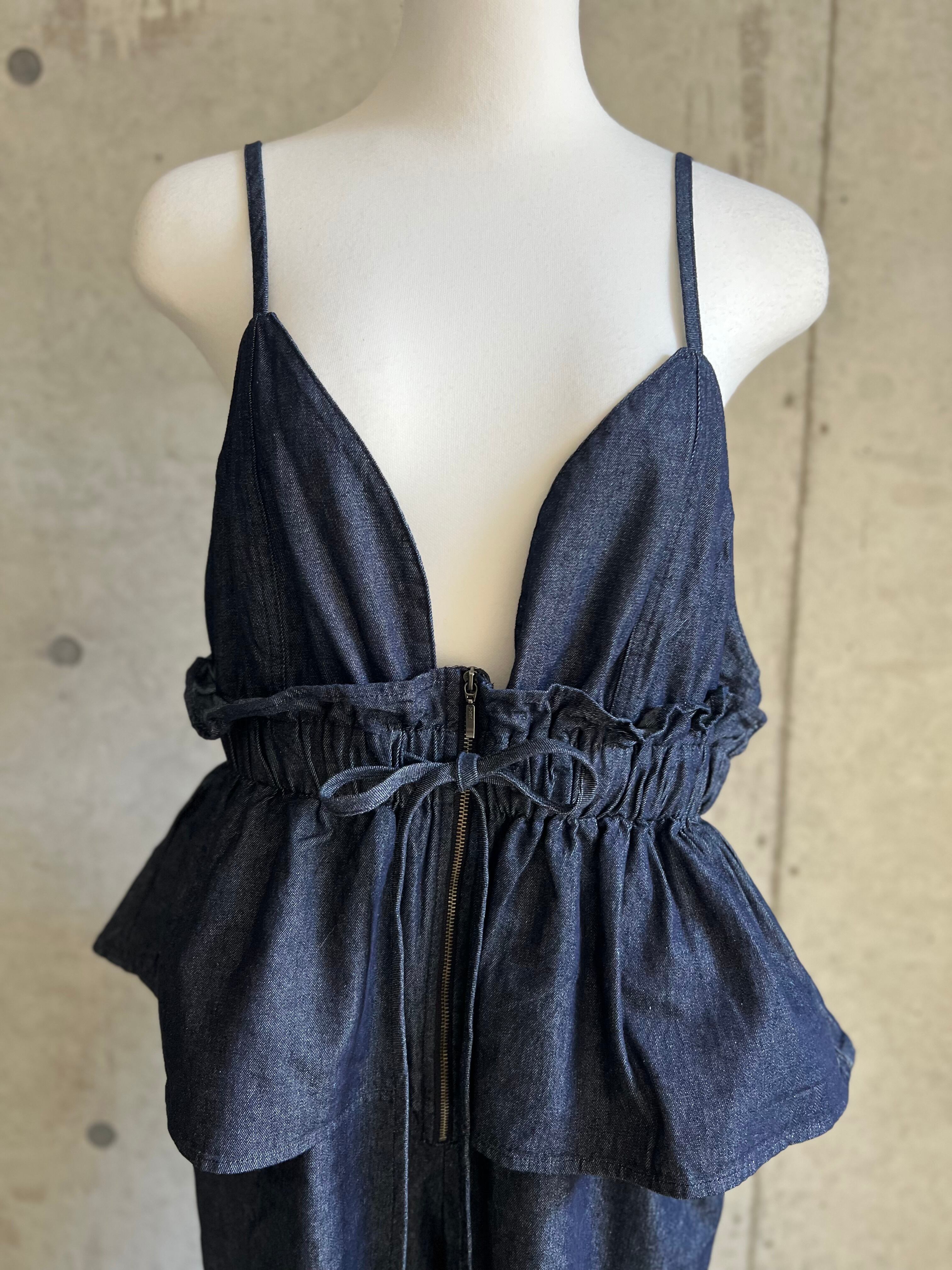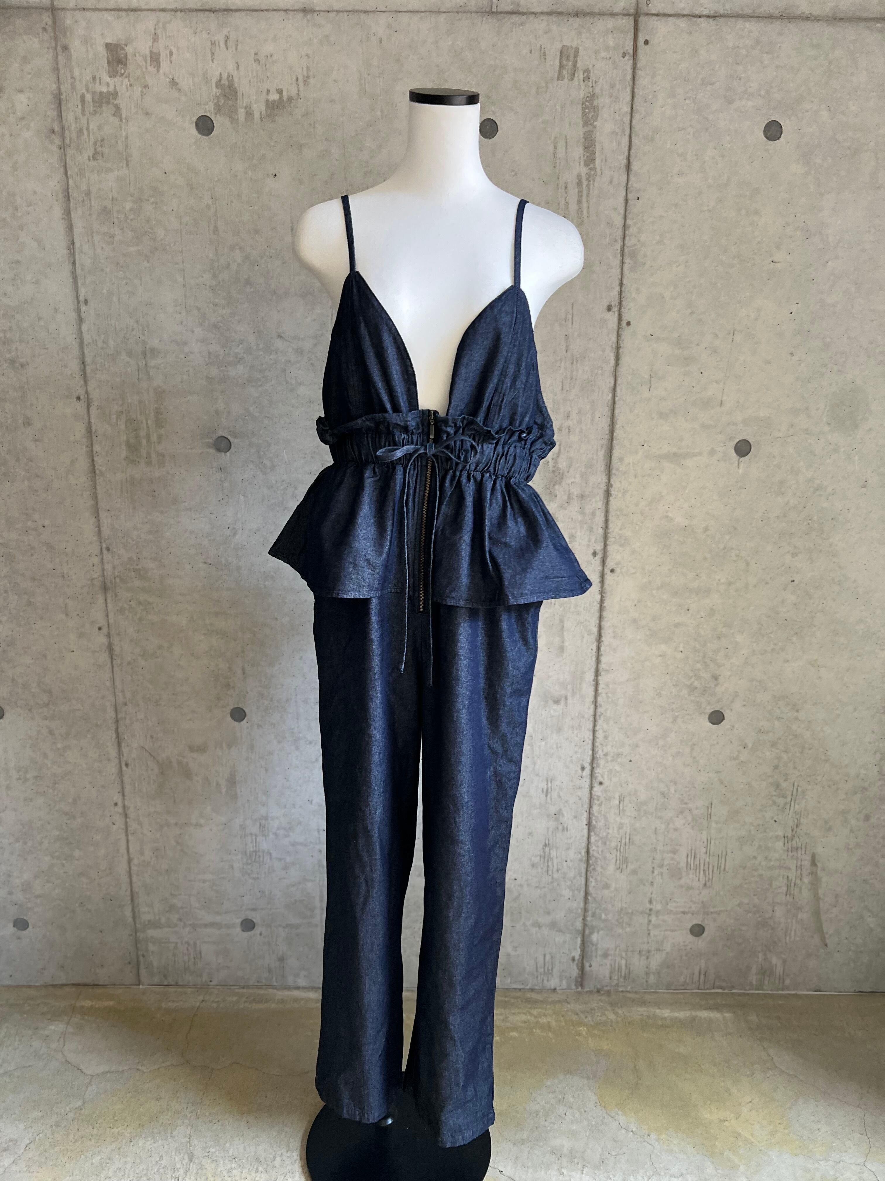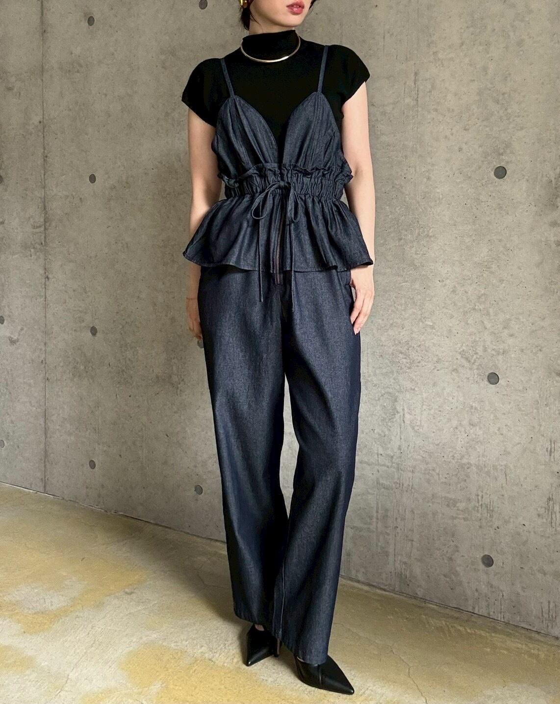 デニムライクペプラムレイヤードサロペット【ネイビー】