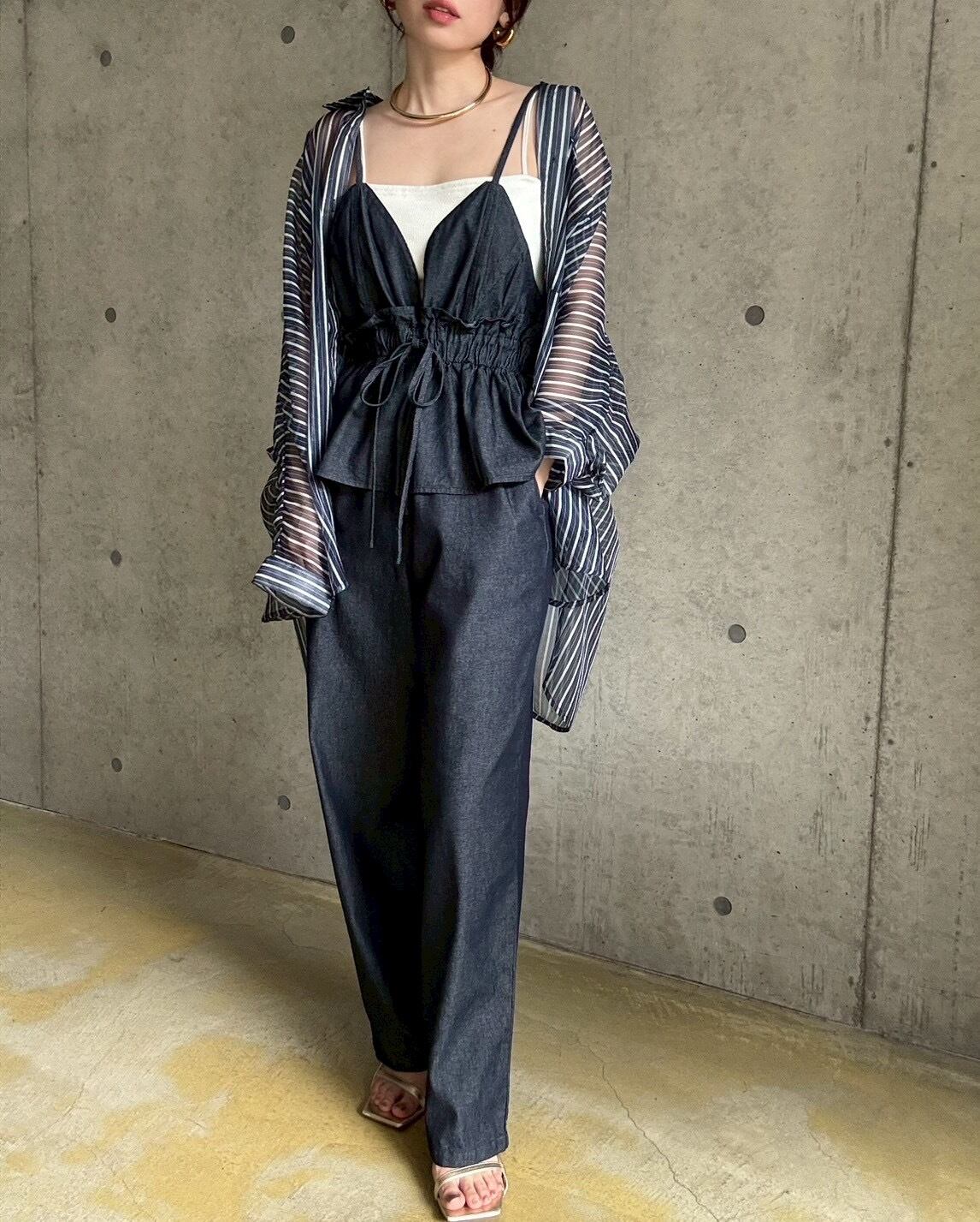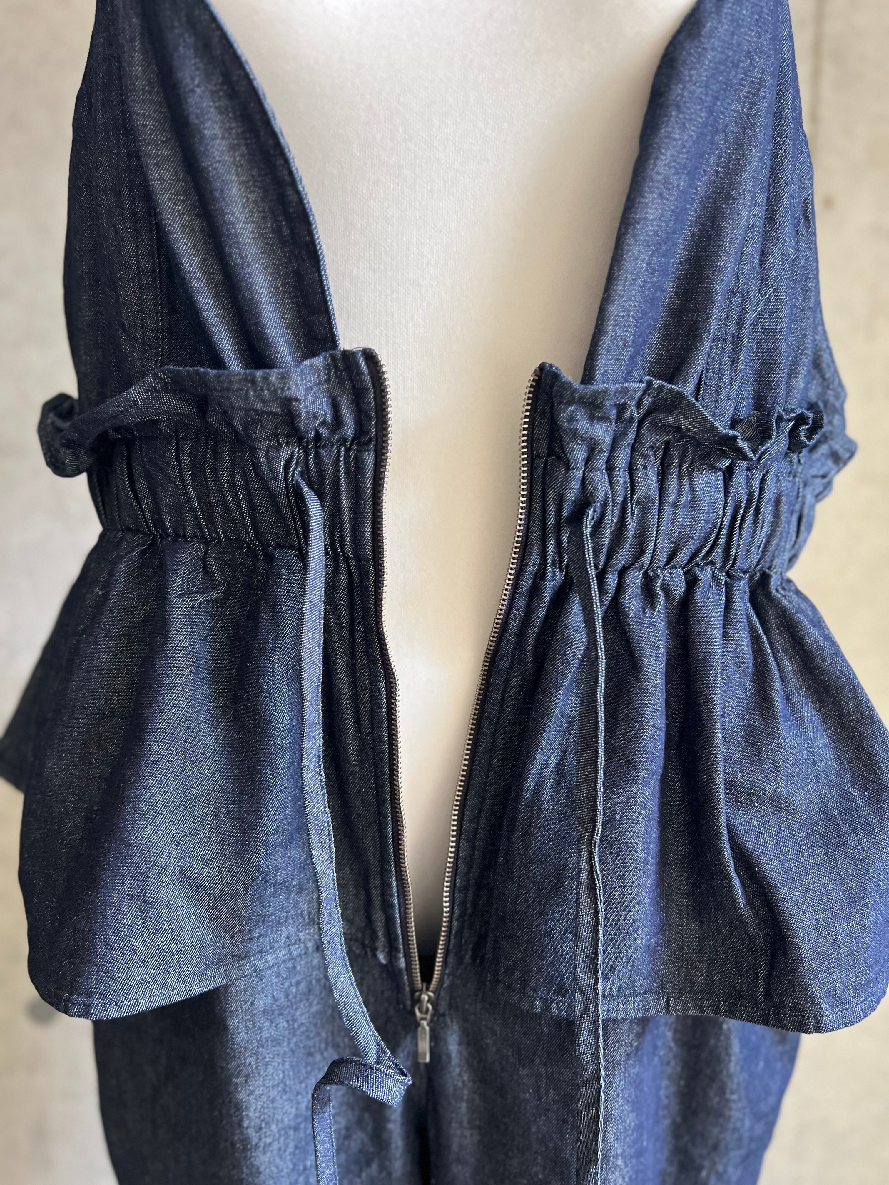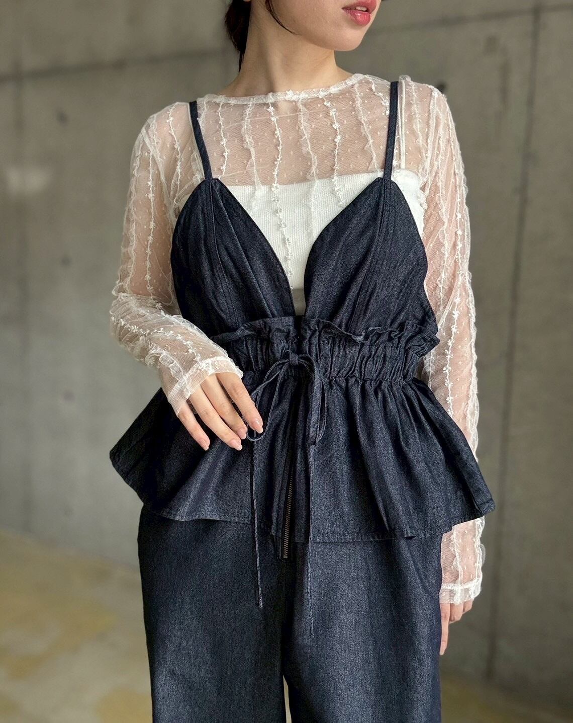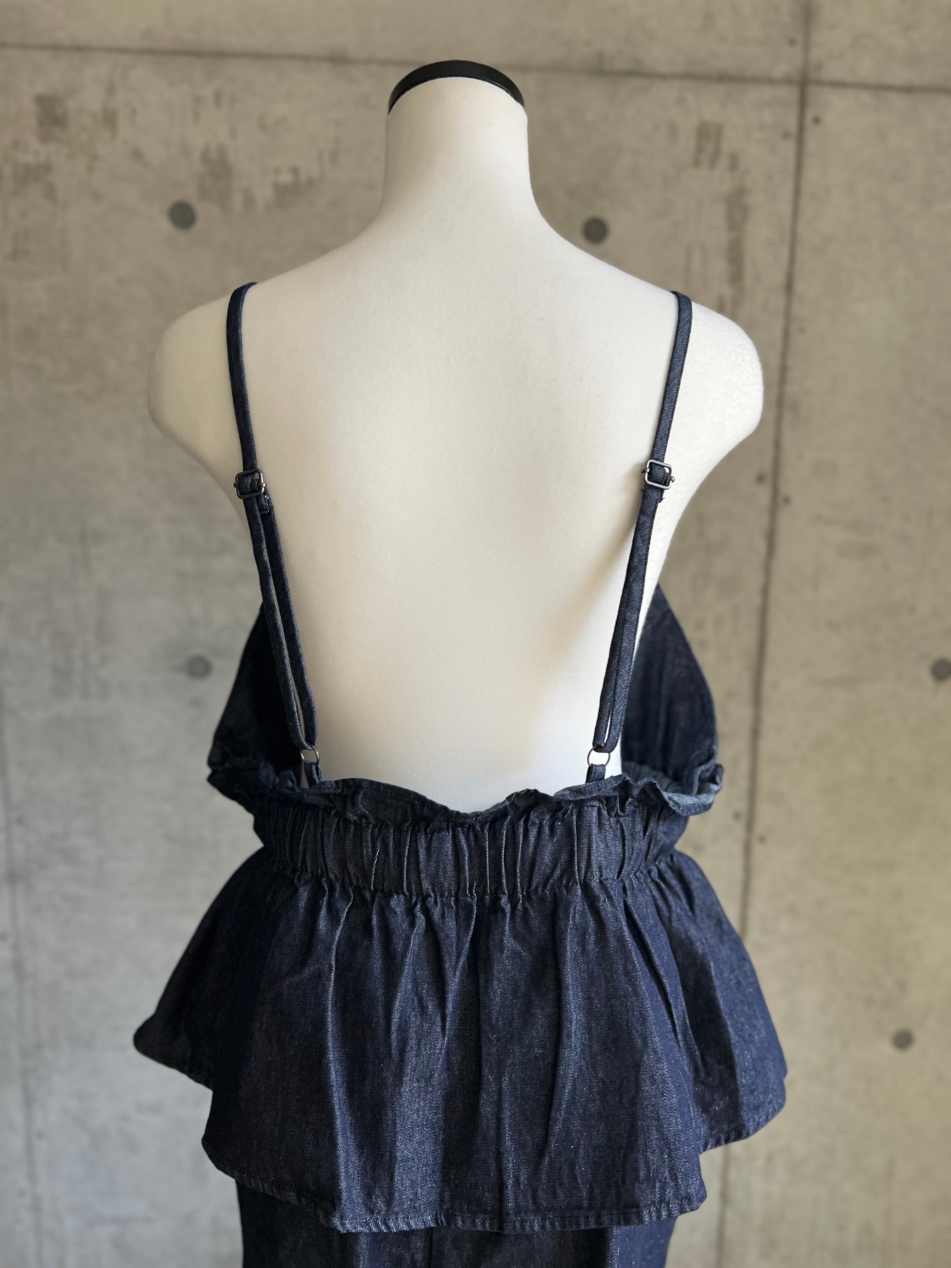 デニムライクペプラムレイヤードサロペット【ネイビー】