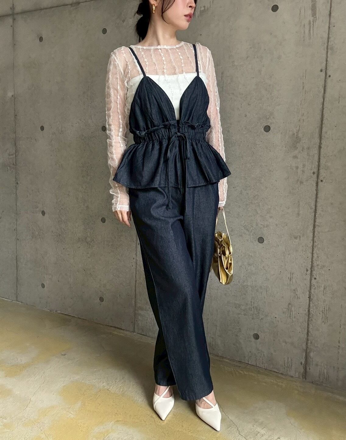 レイヤード見えデザインがポイント♪ペプラムフリルサロペット✨