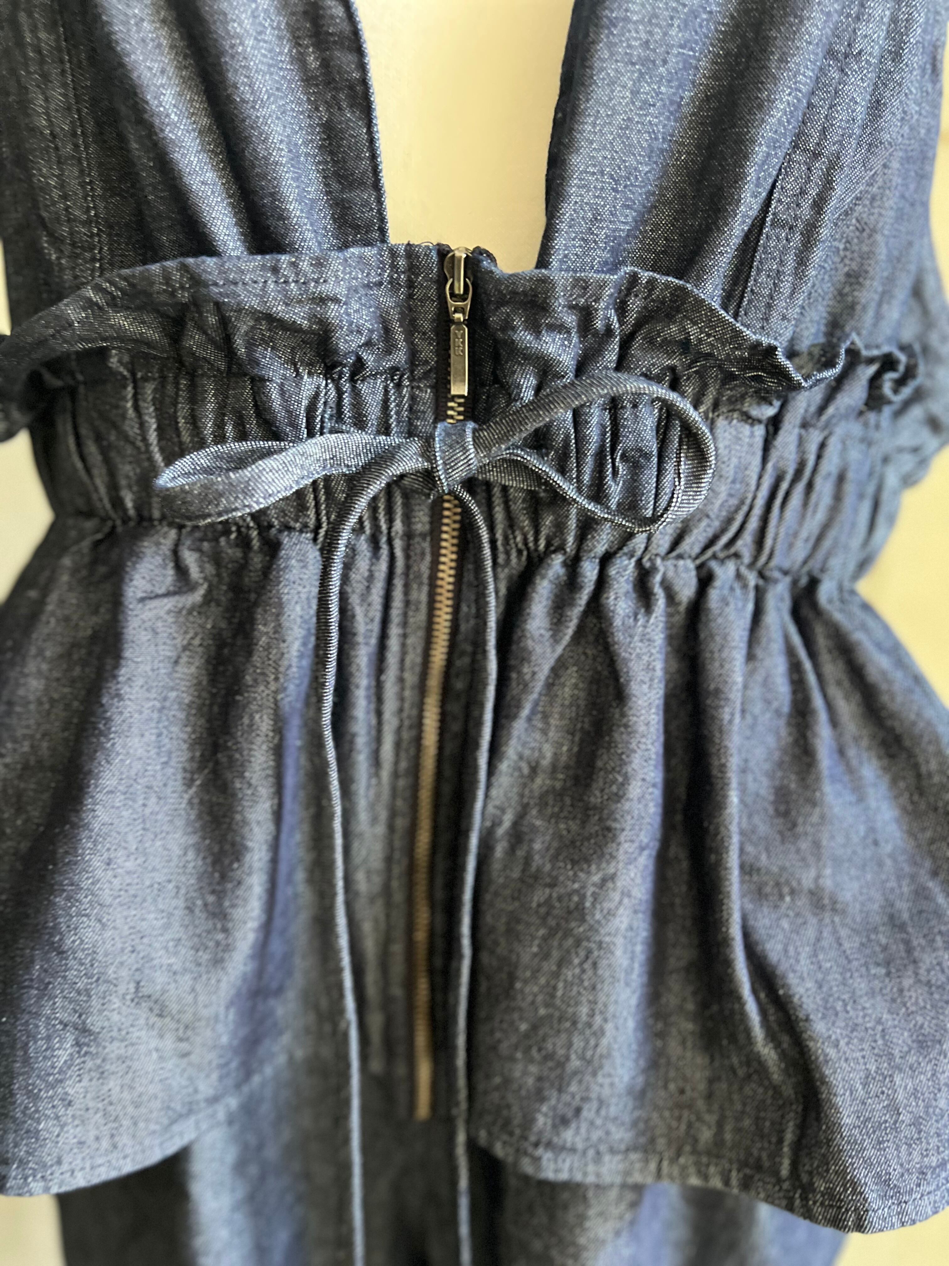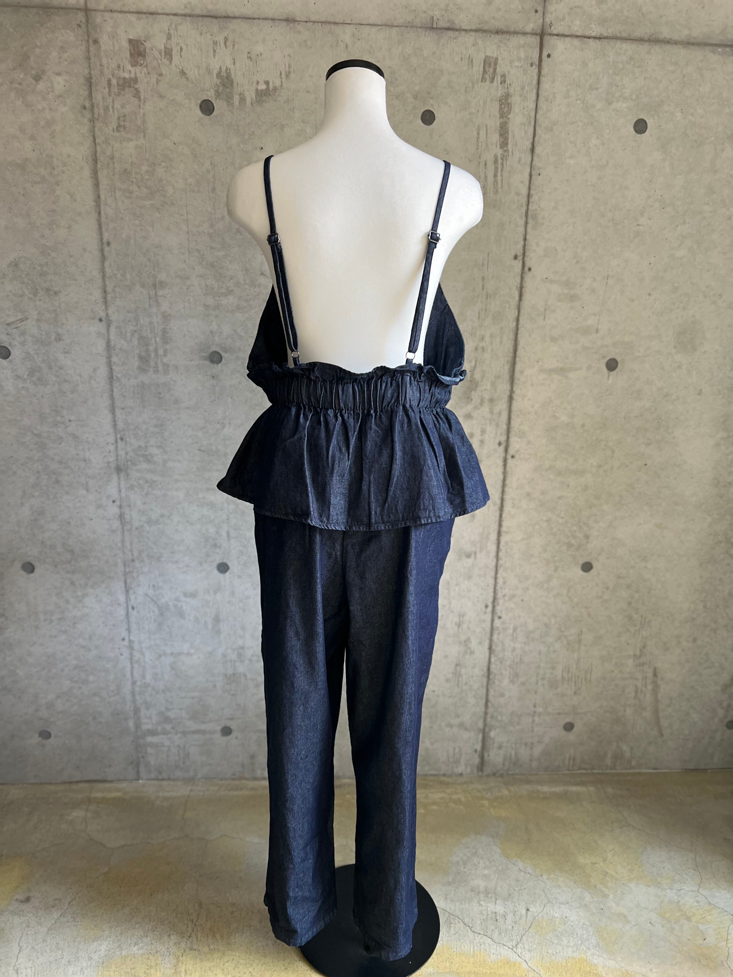 ペプラムフリルが目を引く今っぽさ満点のデニムライクサロペット♪