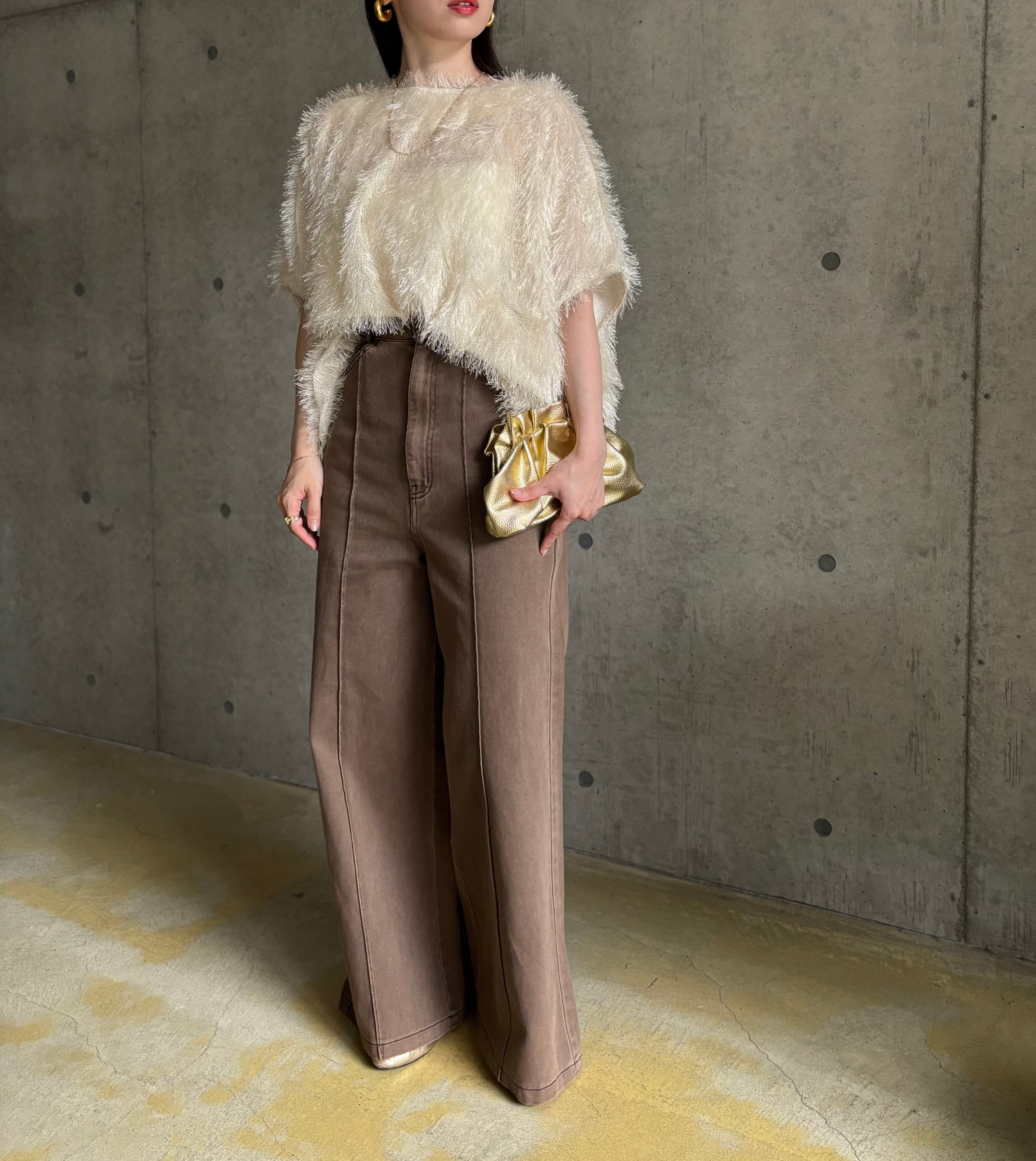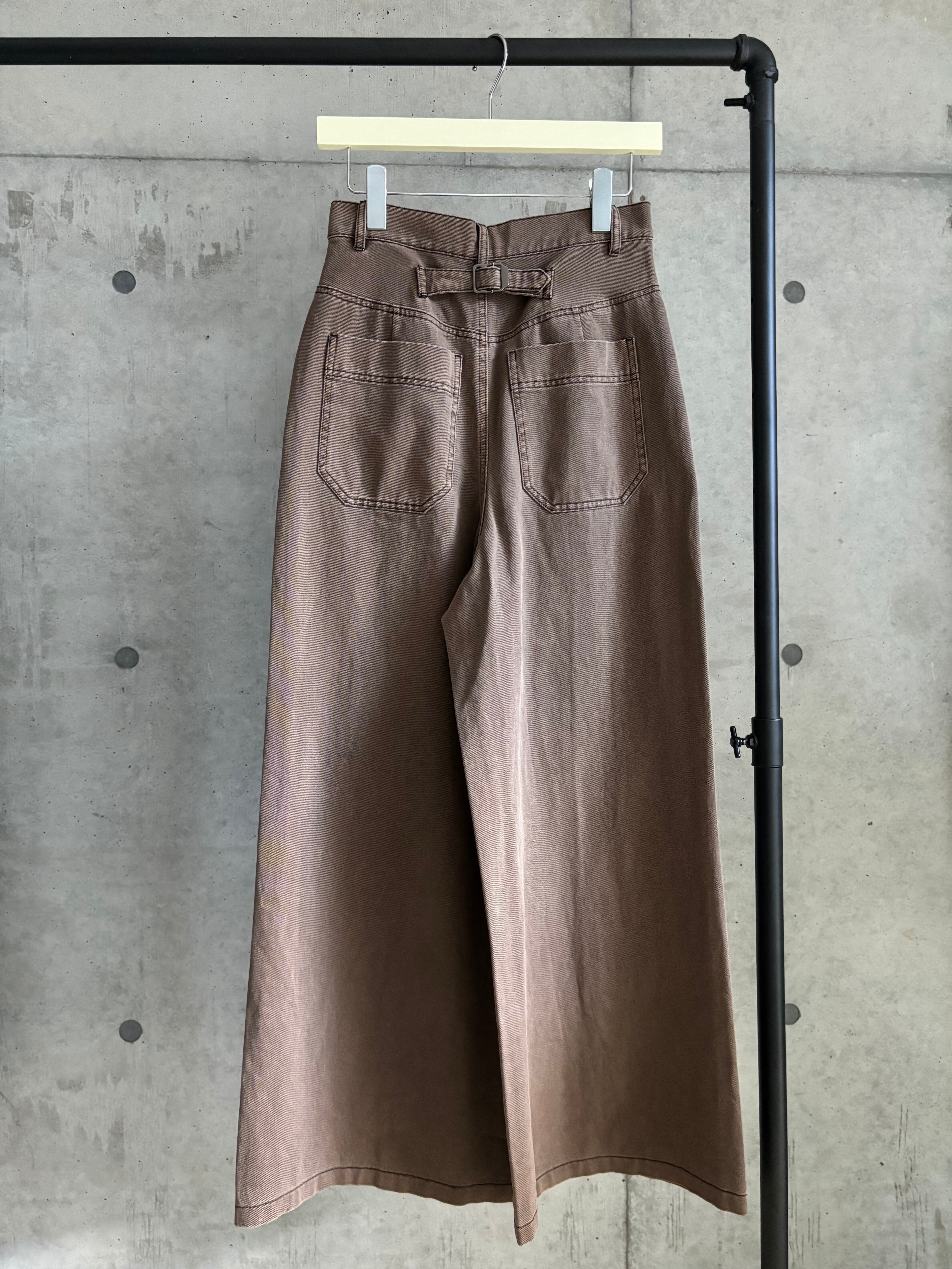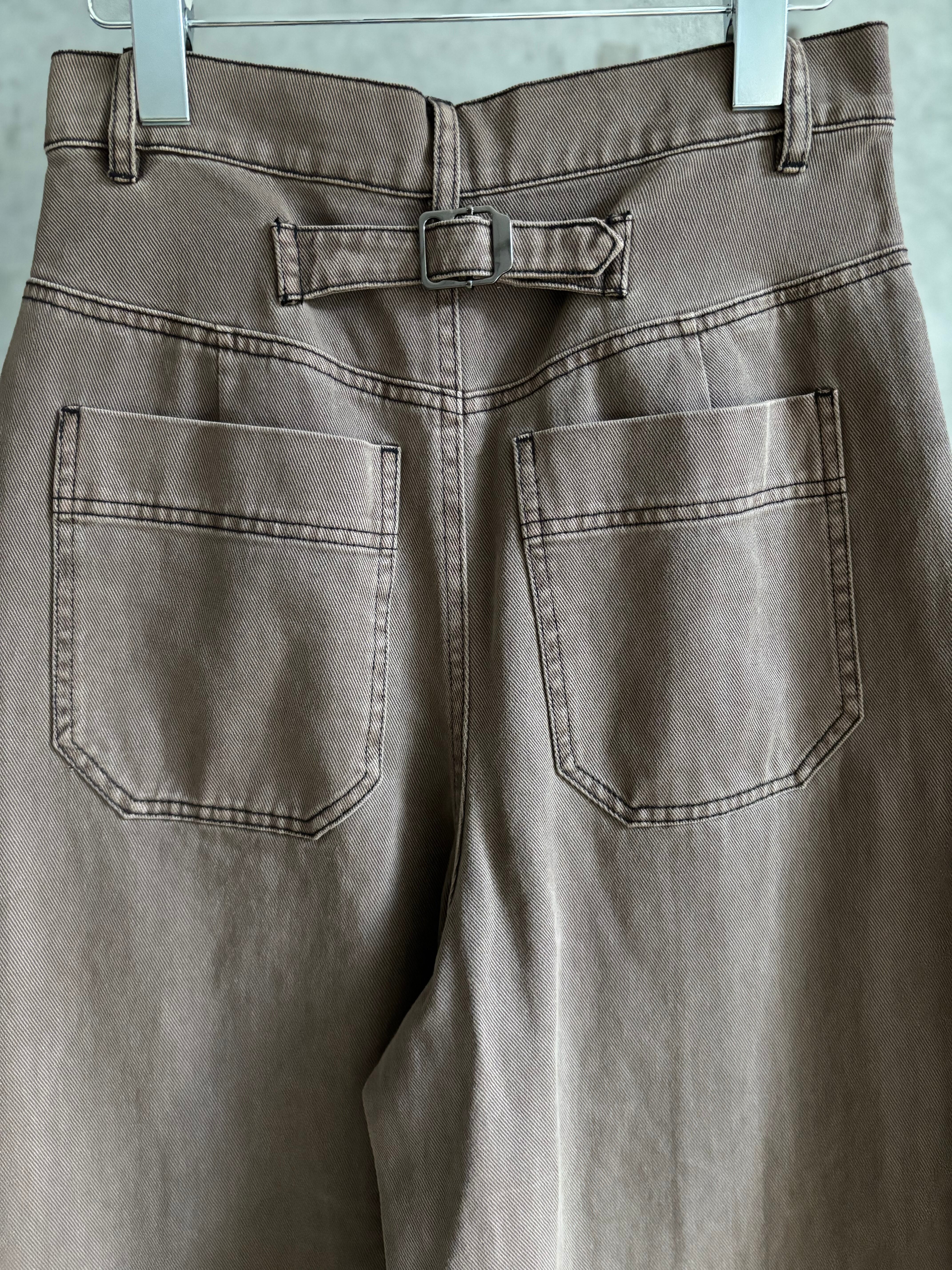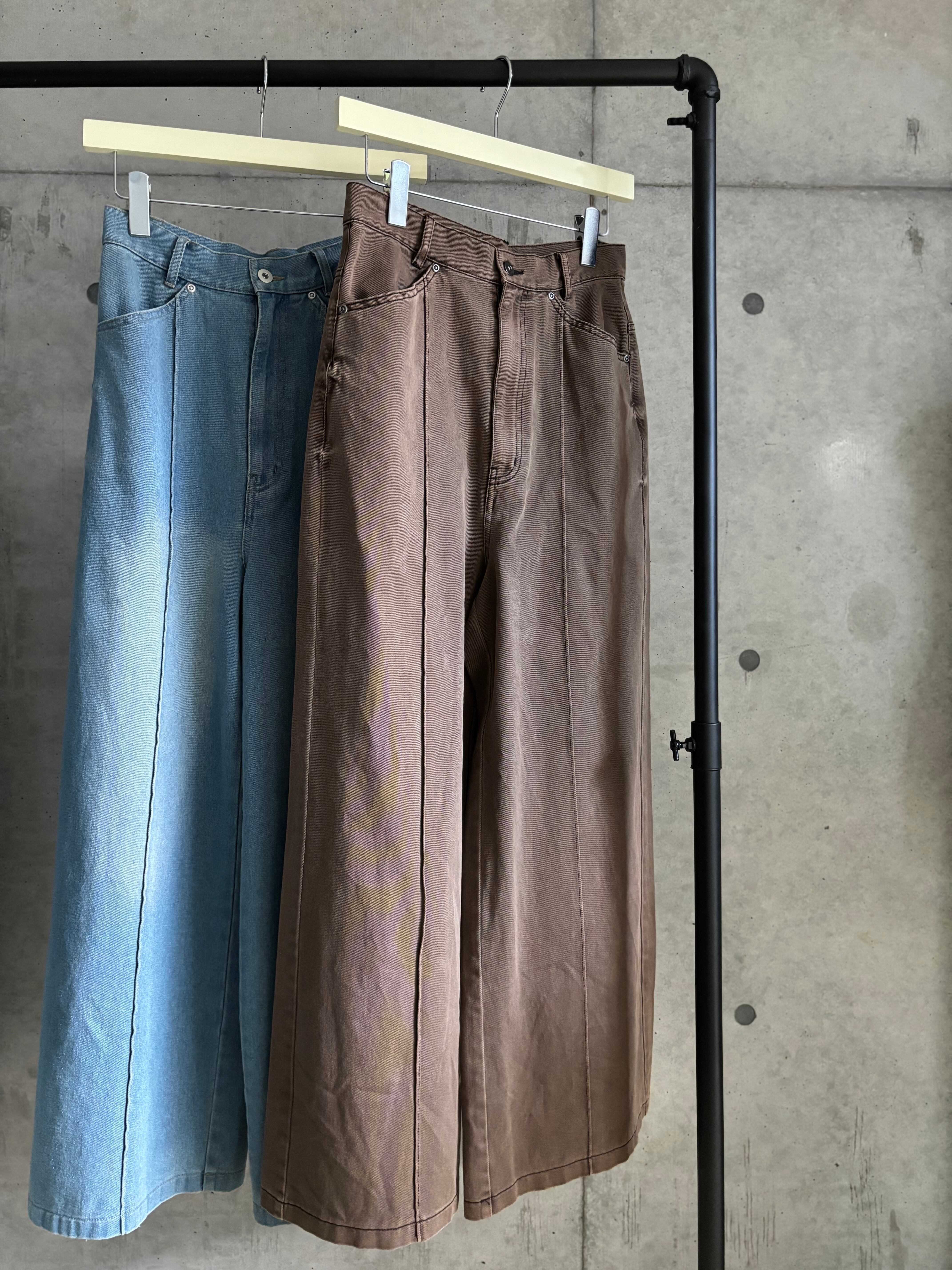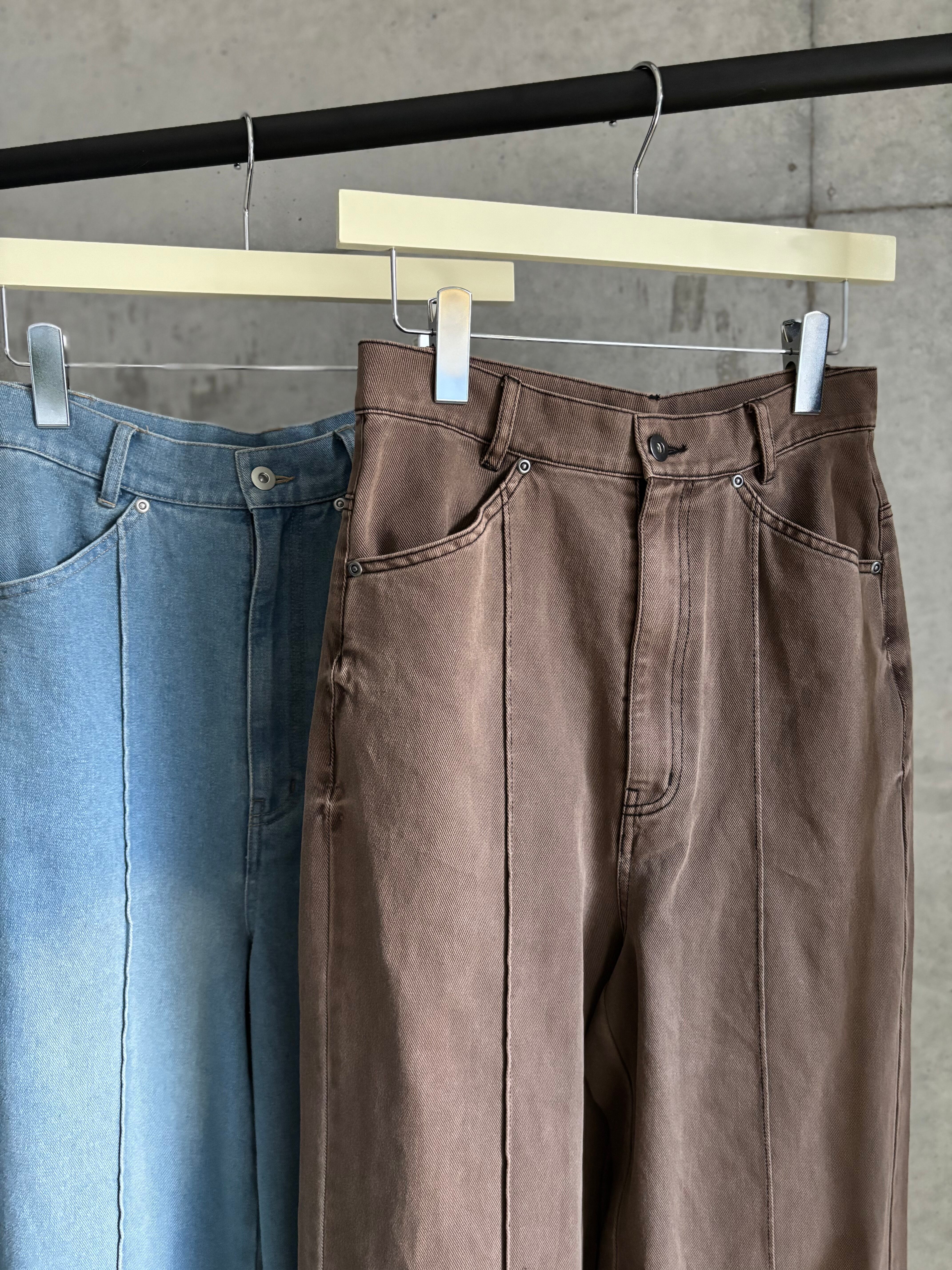 【即納】センターラインハイウエストバギーデニムパンツ【ブラウン】