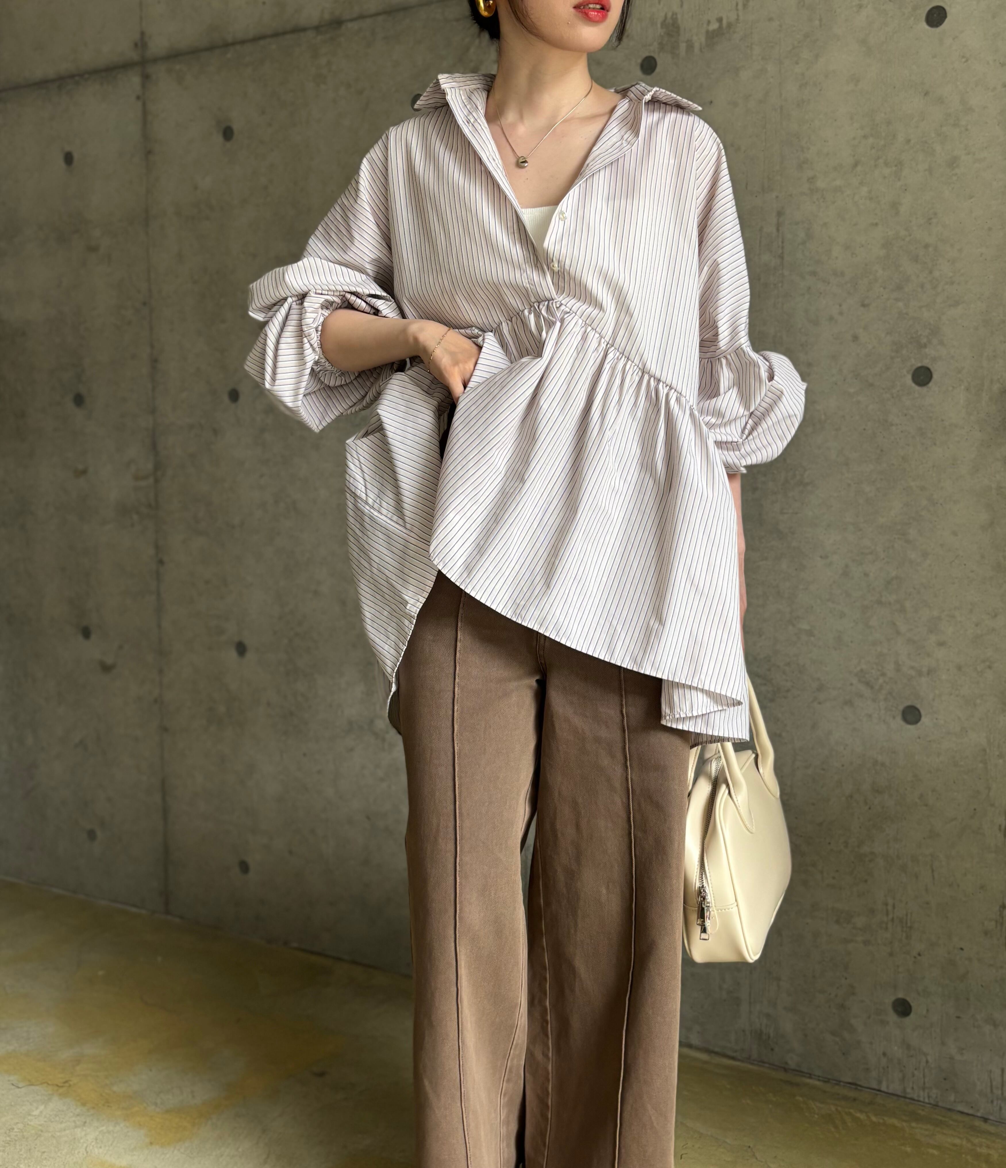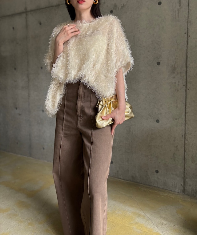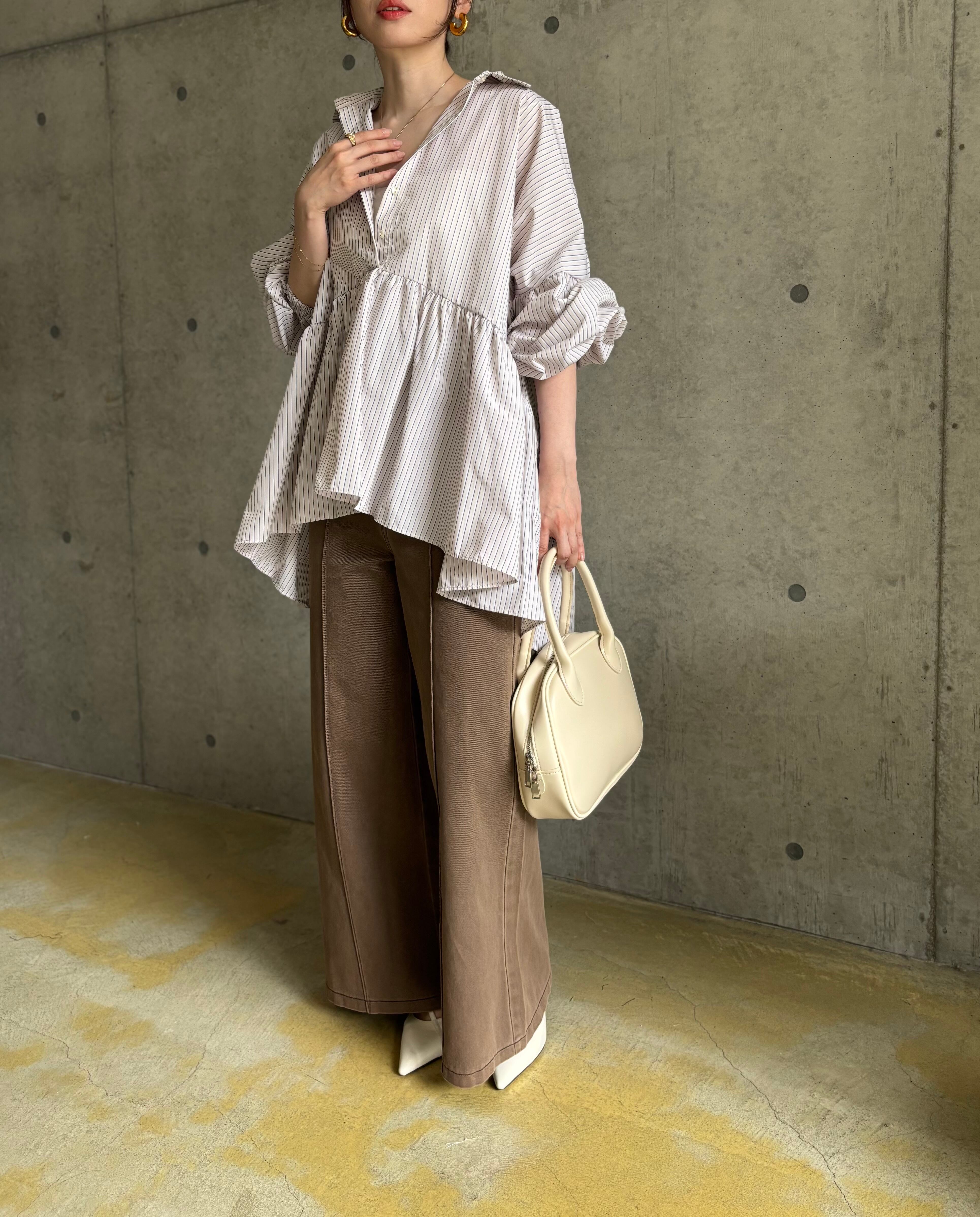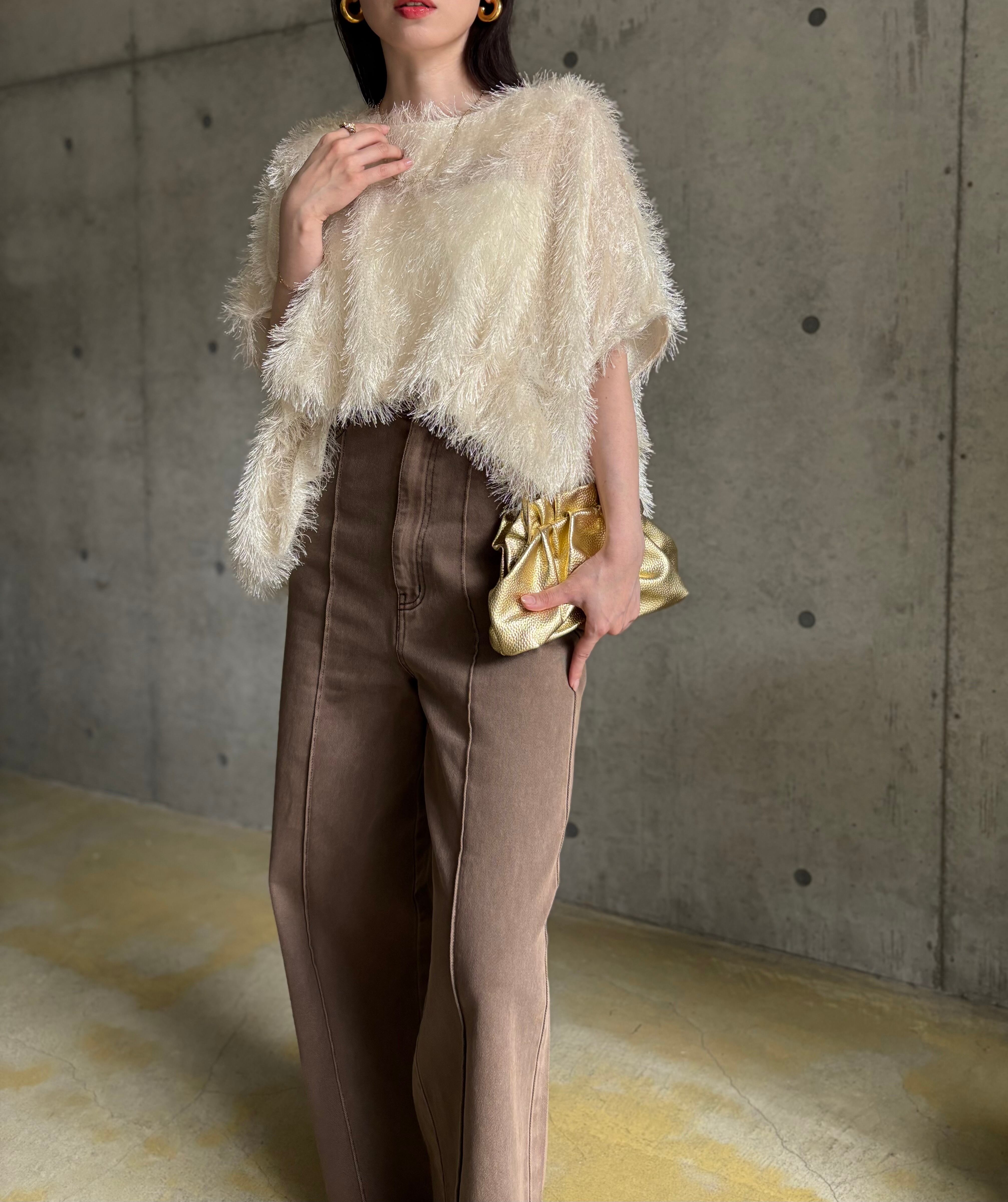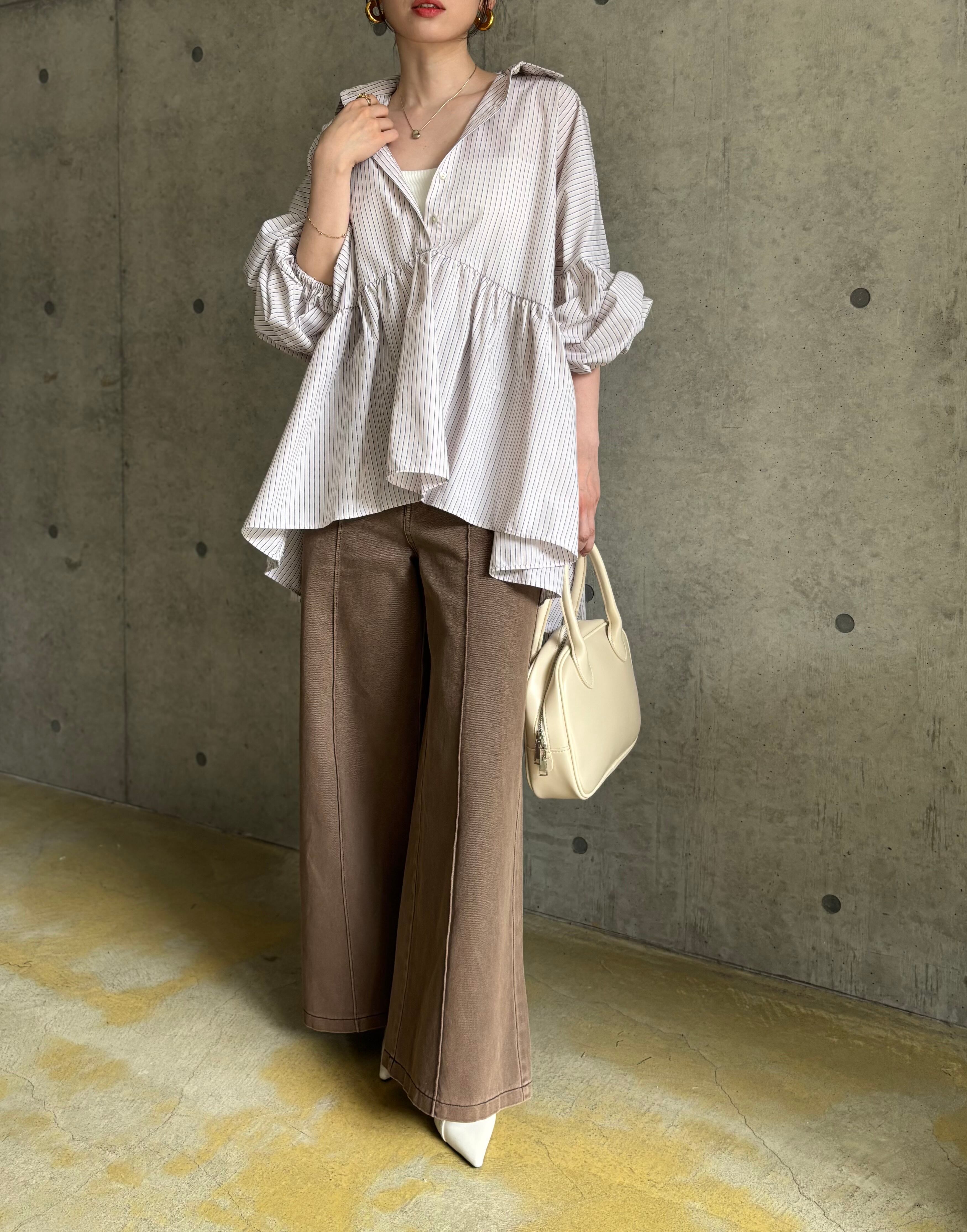 【即納】センターラインハイウエストバギーデニムパンツ【ブラウン】