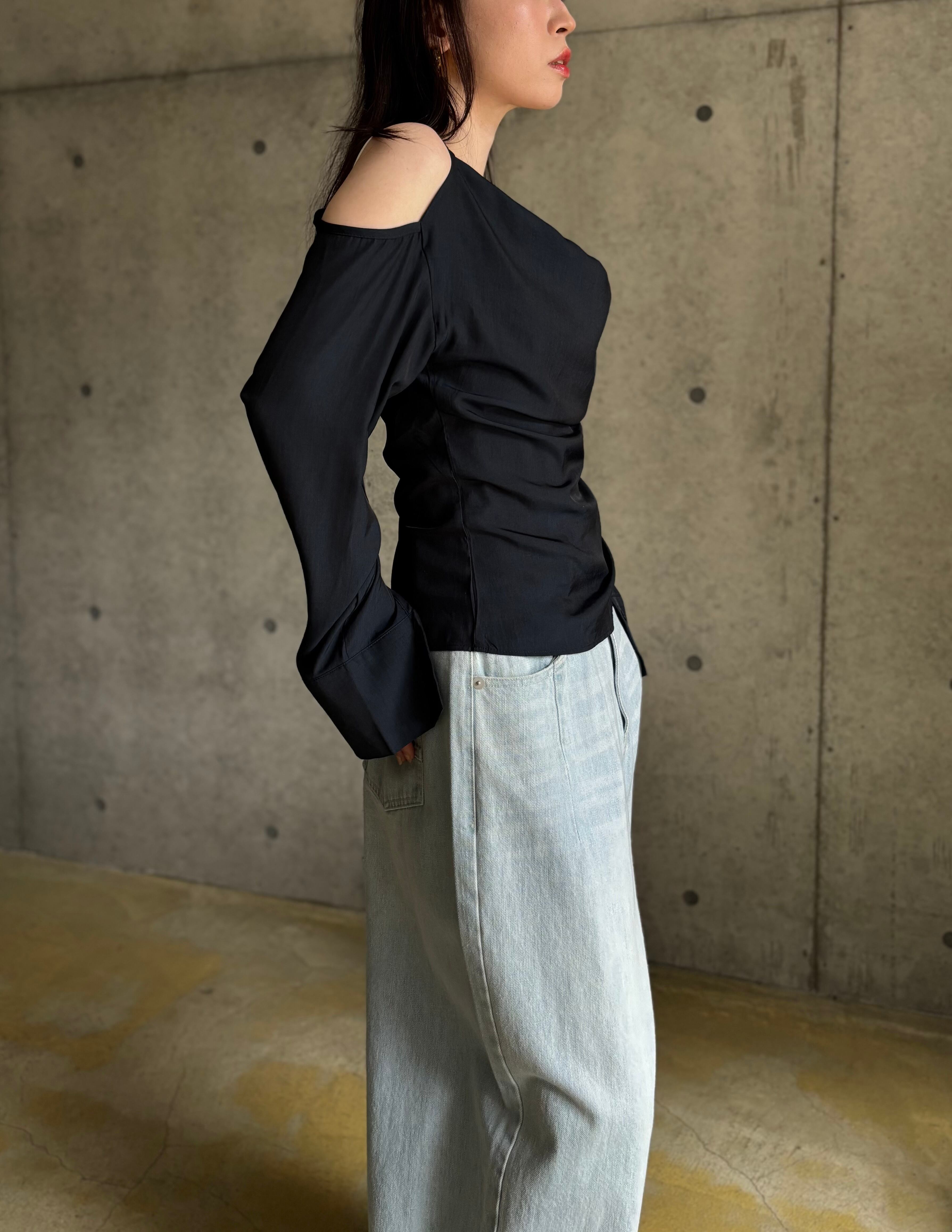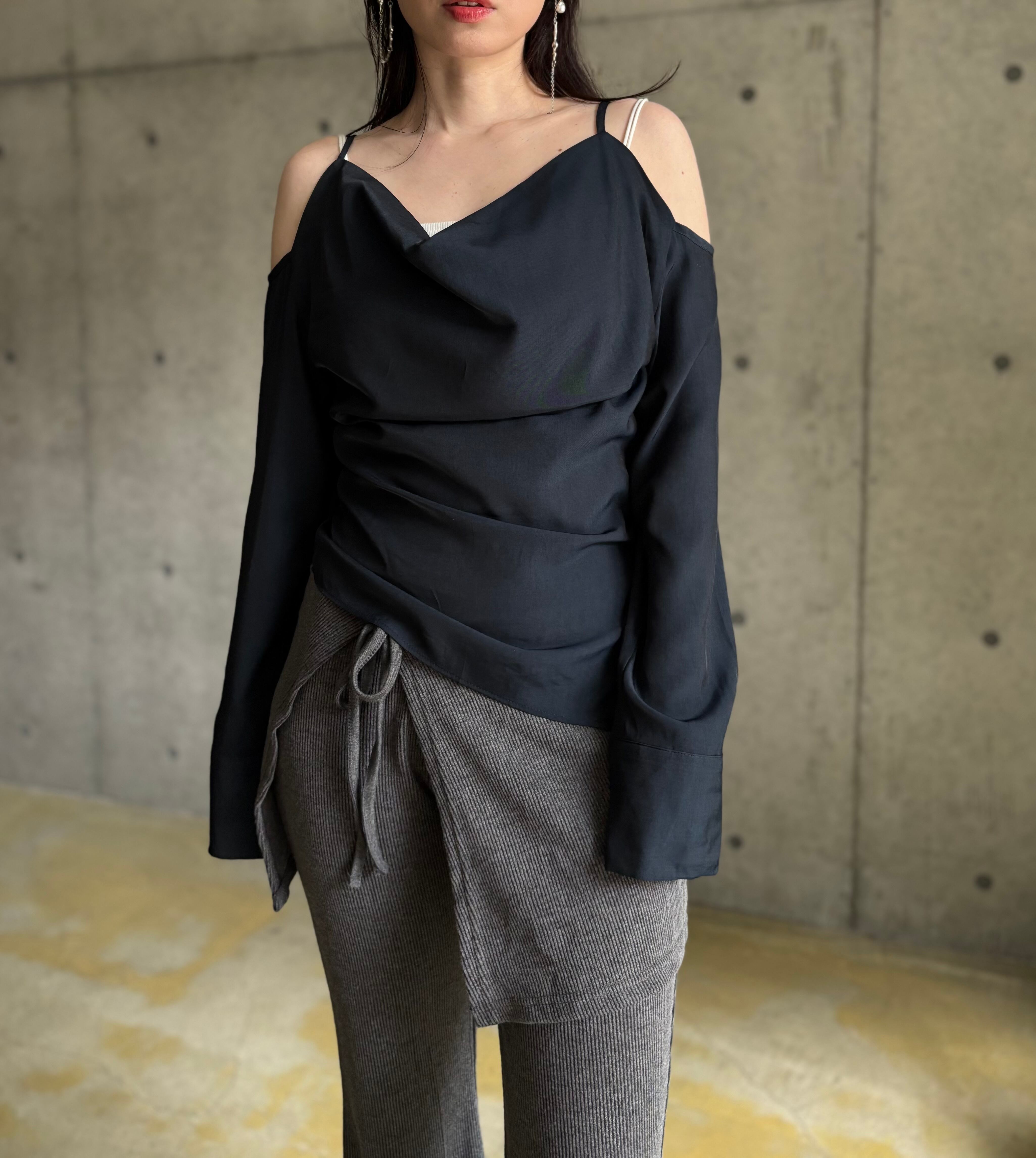 マットサテン生地×ドレープデザインが上品な印象のブラウス✨