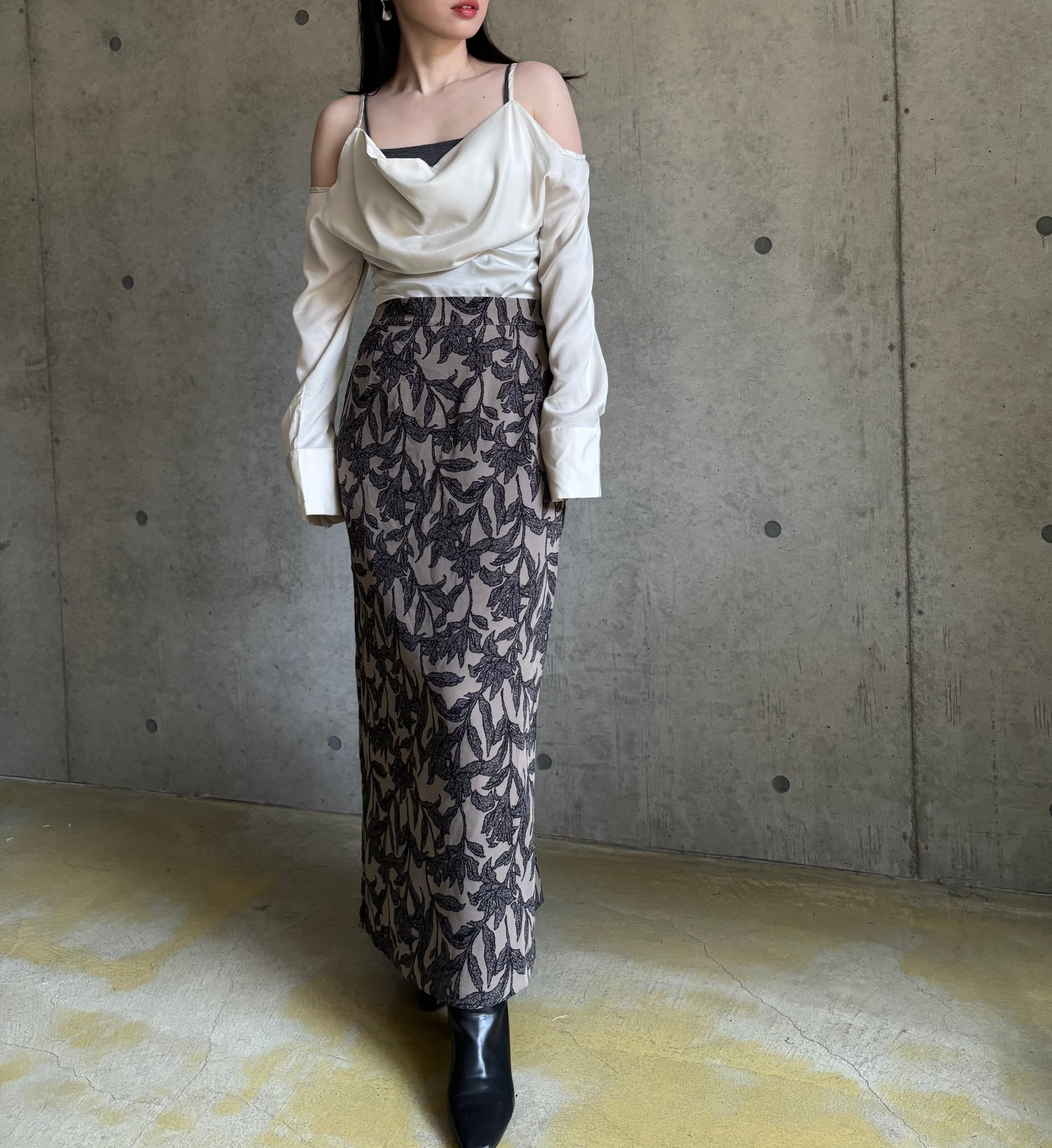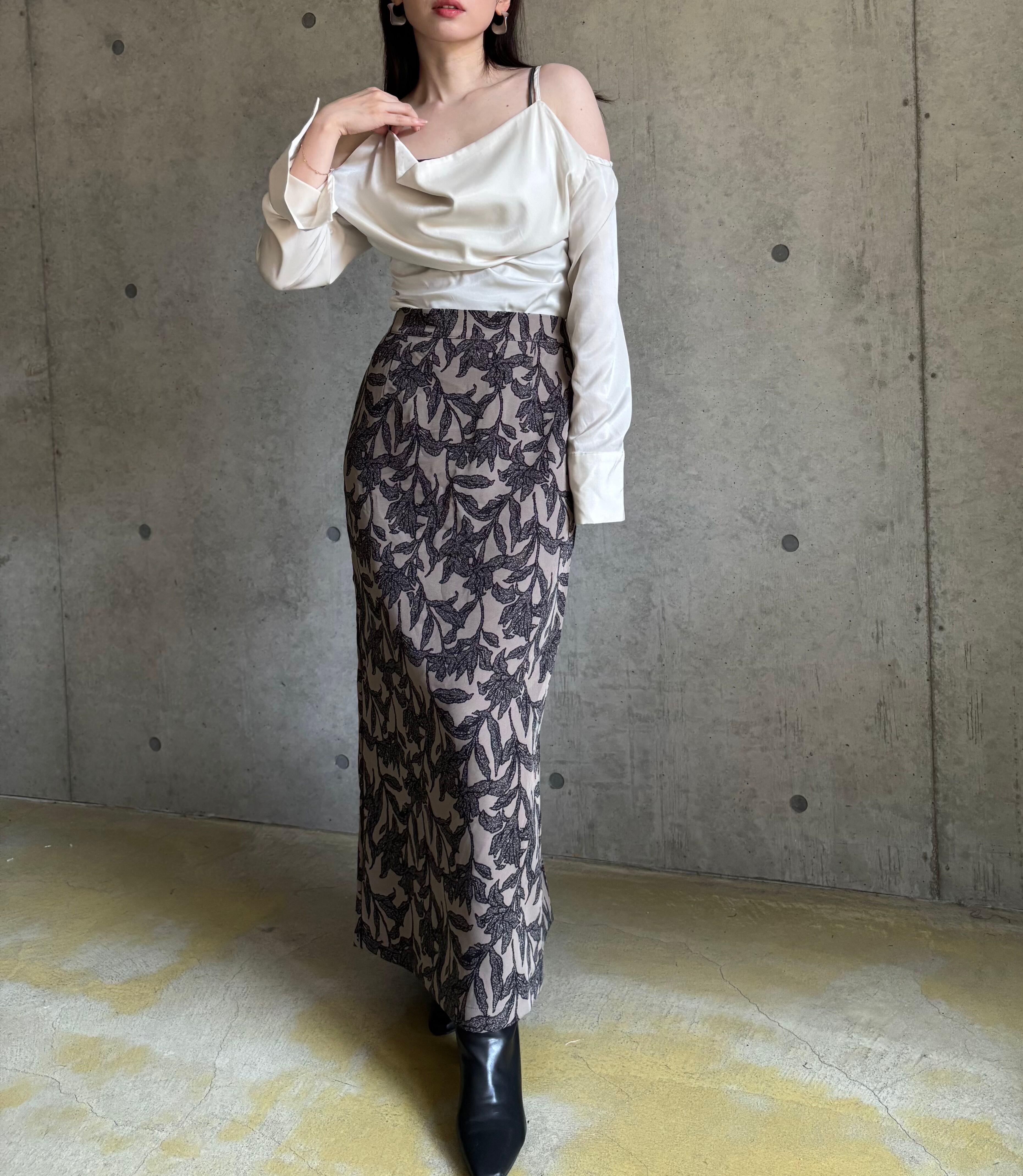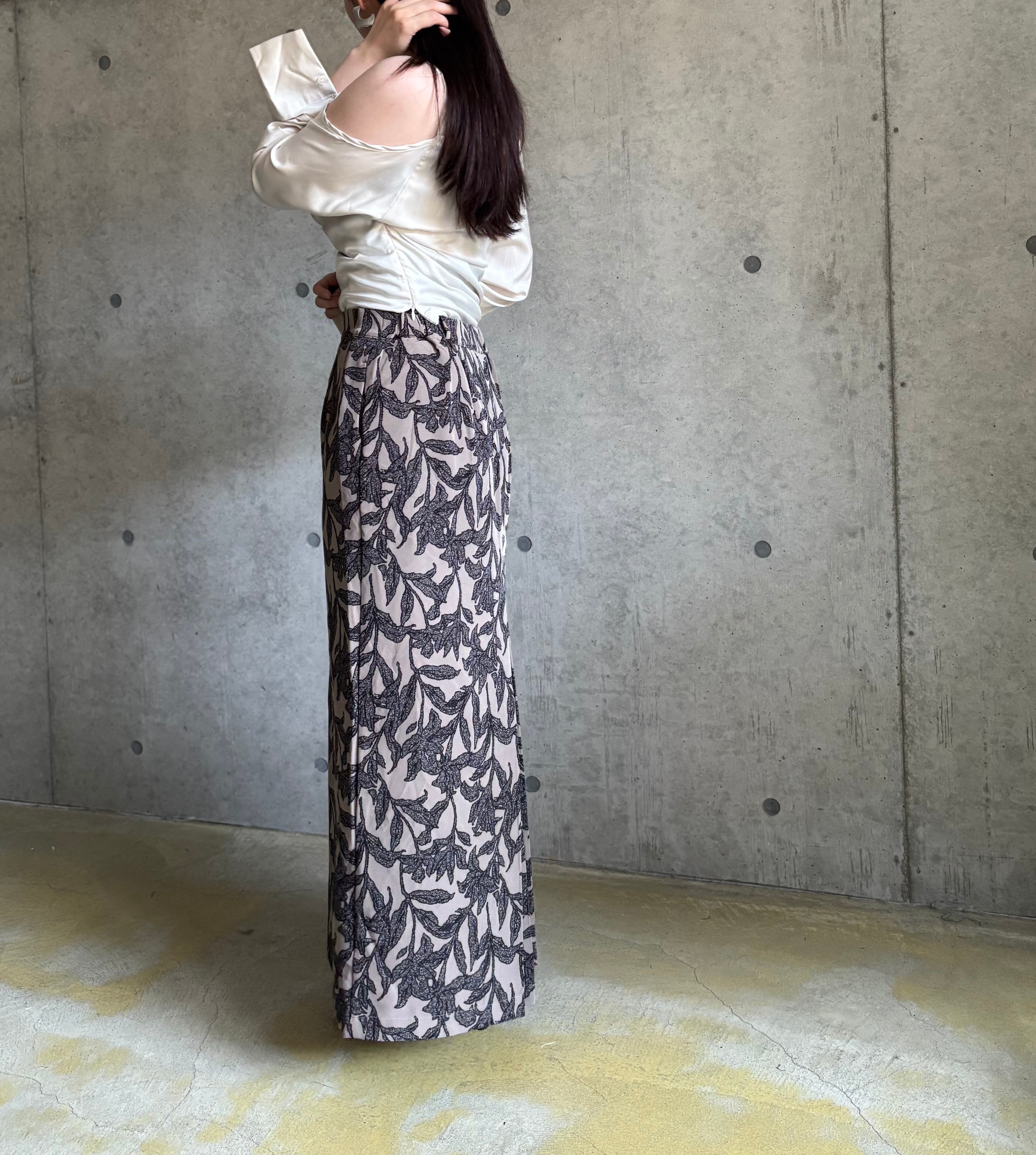 大きめで落ち着いたトーンの花柄が大人女子にピッタリなロングナロースカート✨
