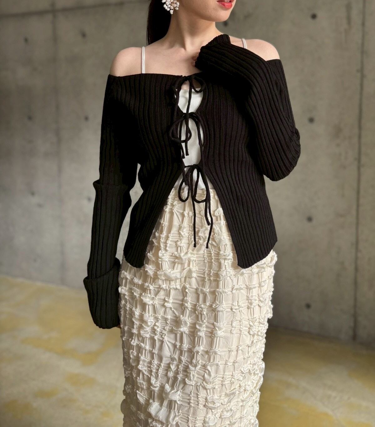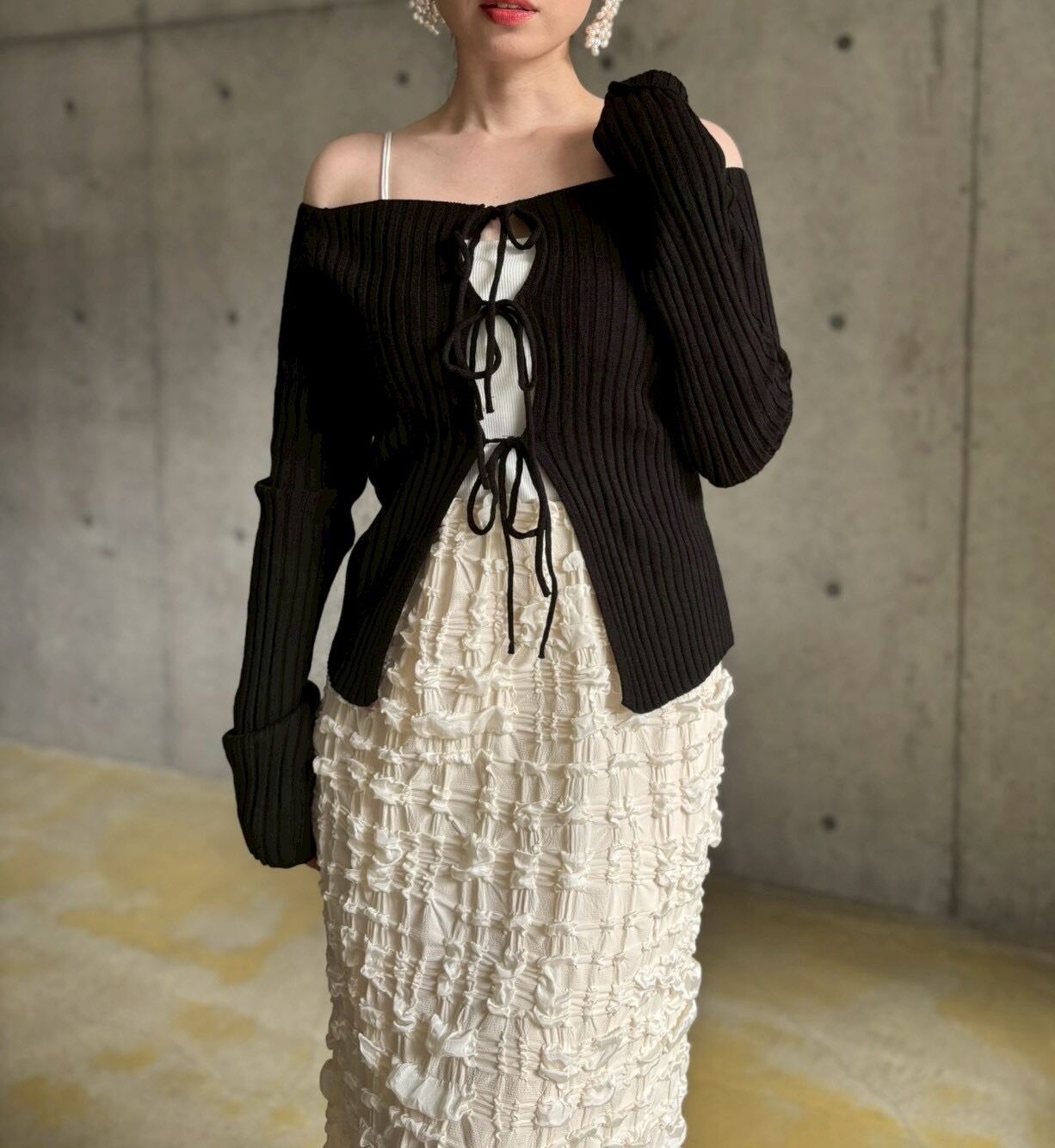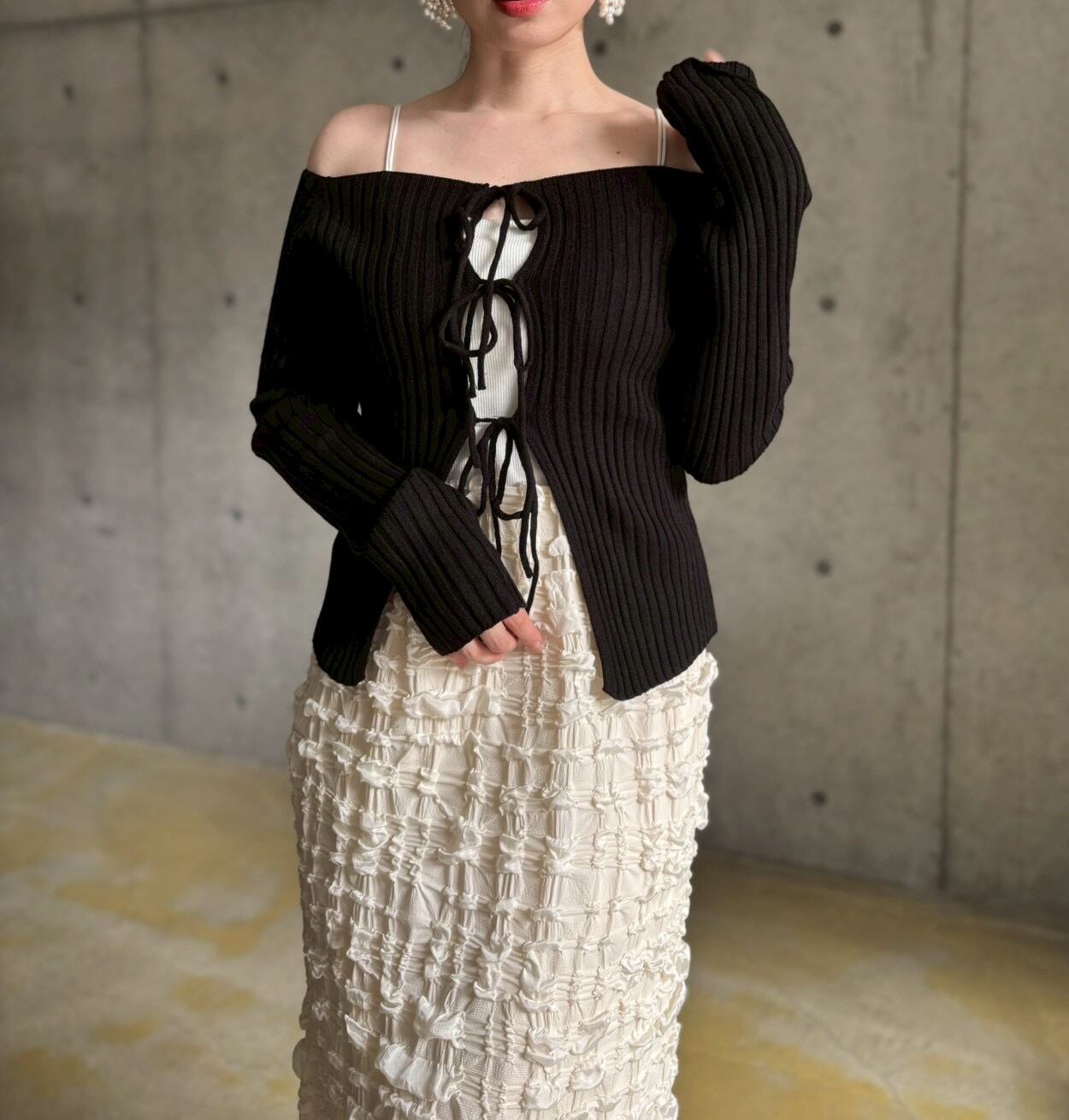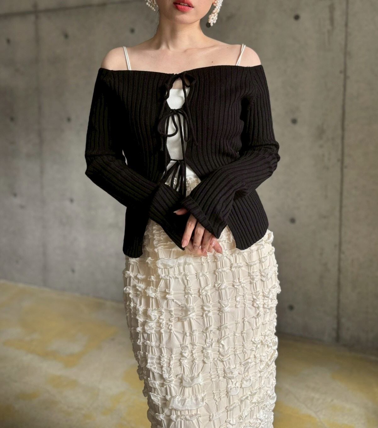 フロントリボンオフショルニット【ブラック】