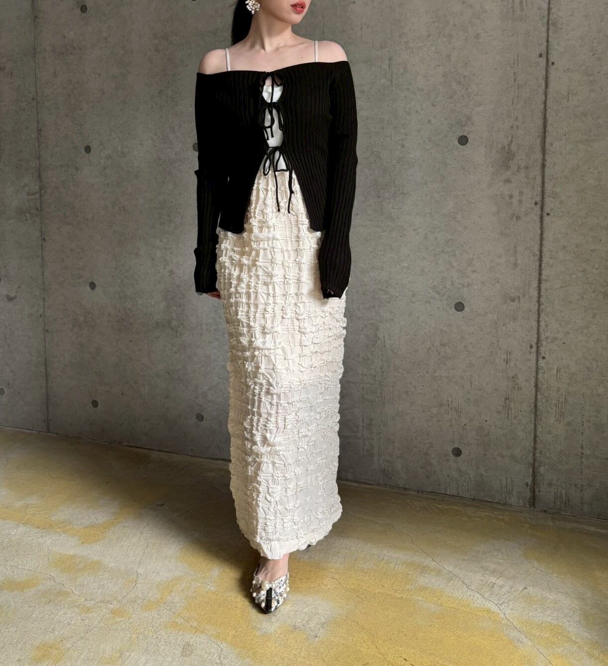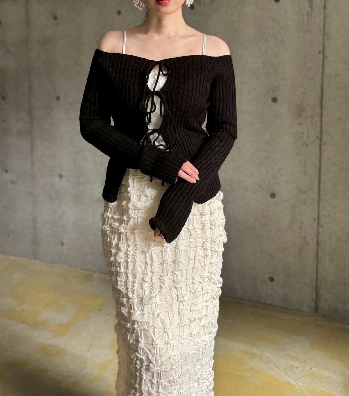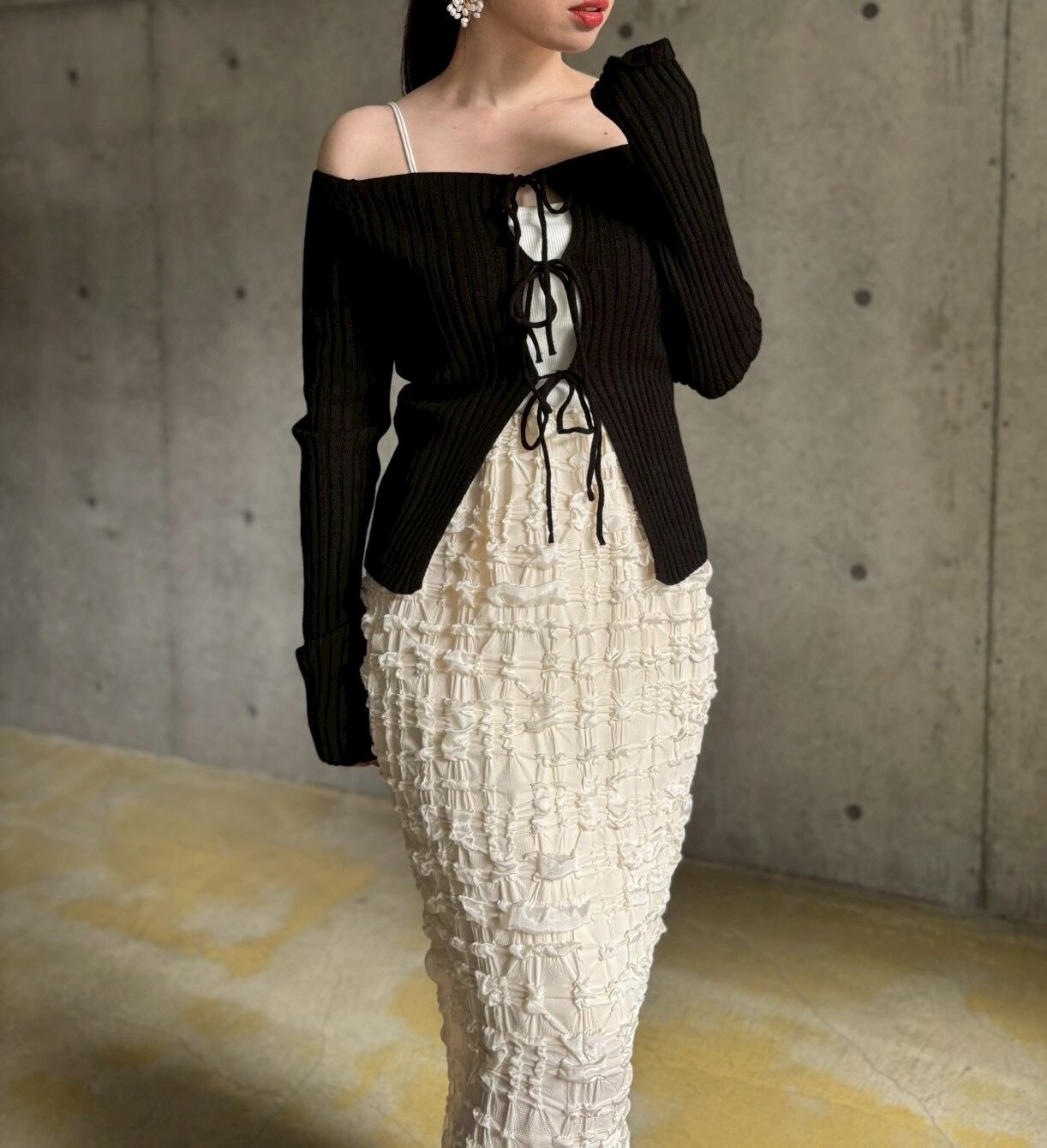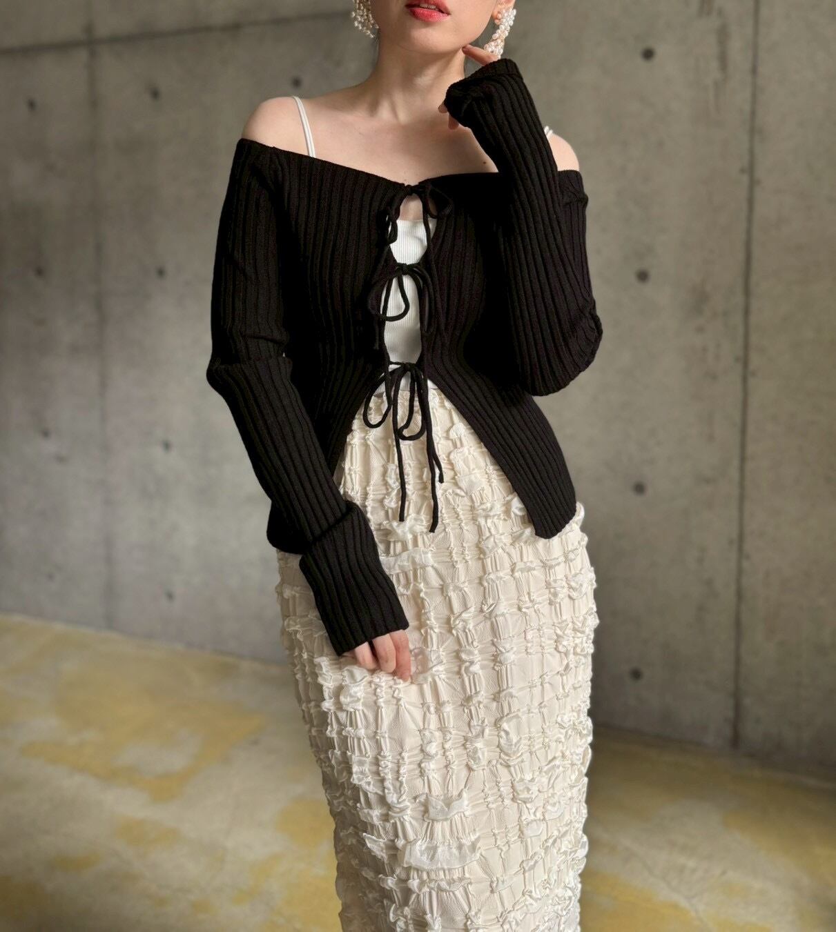 フロントリボンオフショルニット【ブラック】