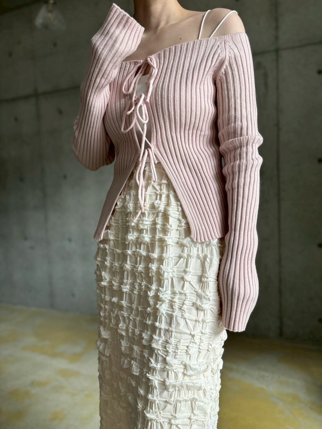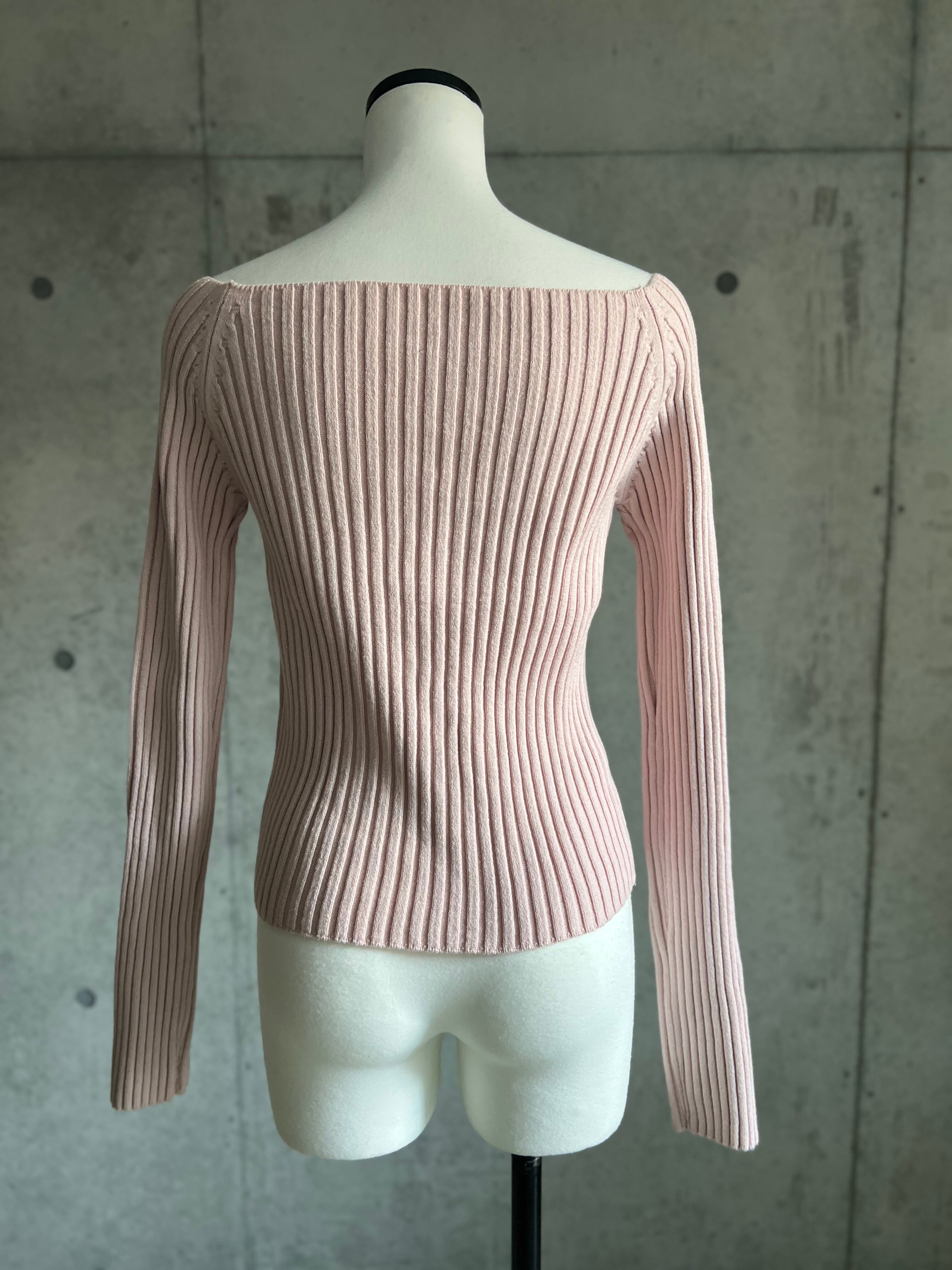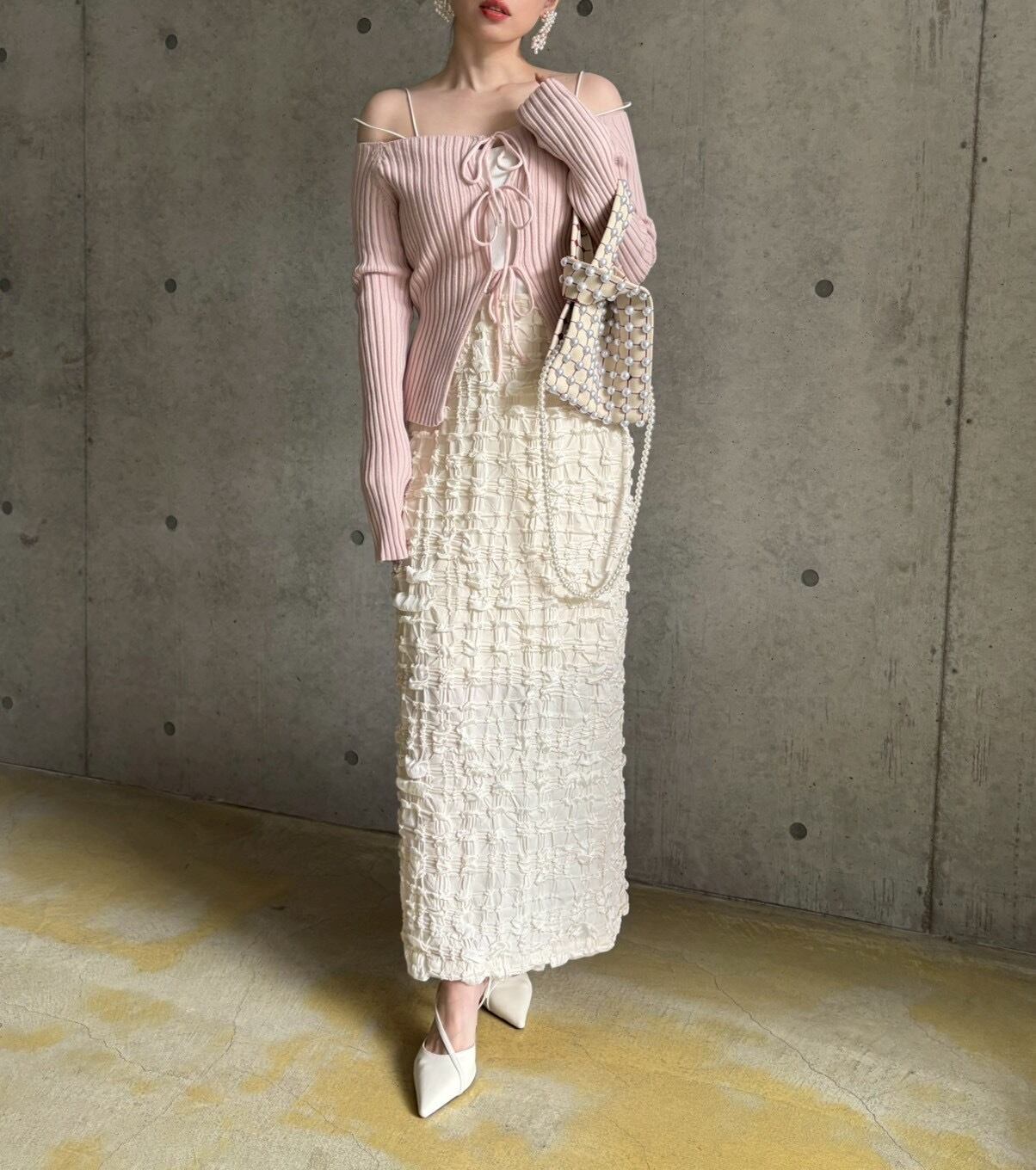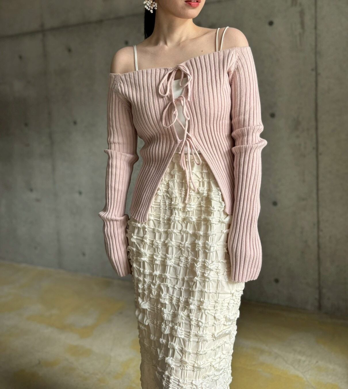 オフショル&リボンデザインが女性らしい印象のリブニットトップス✨