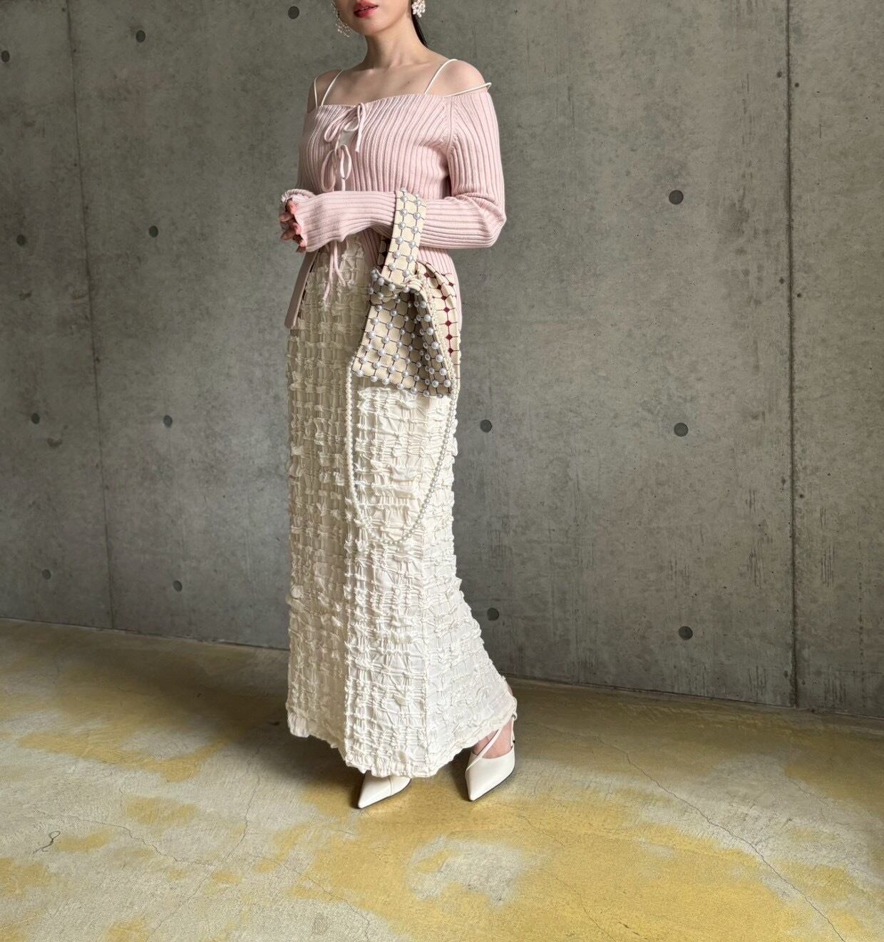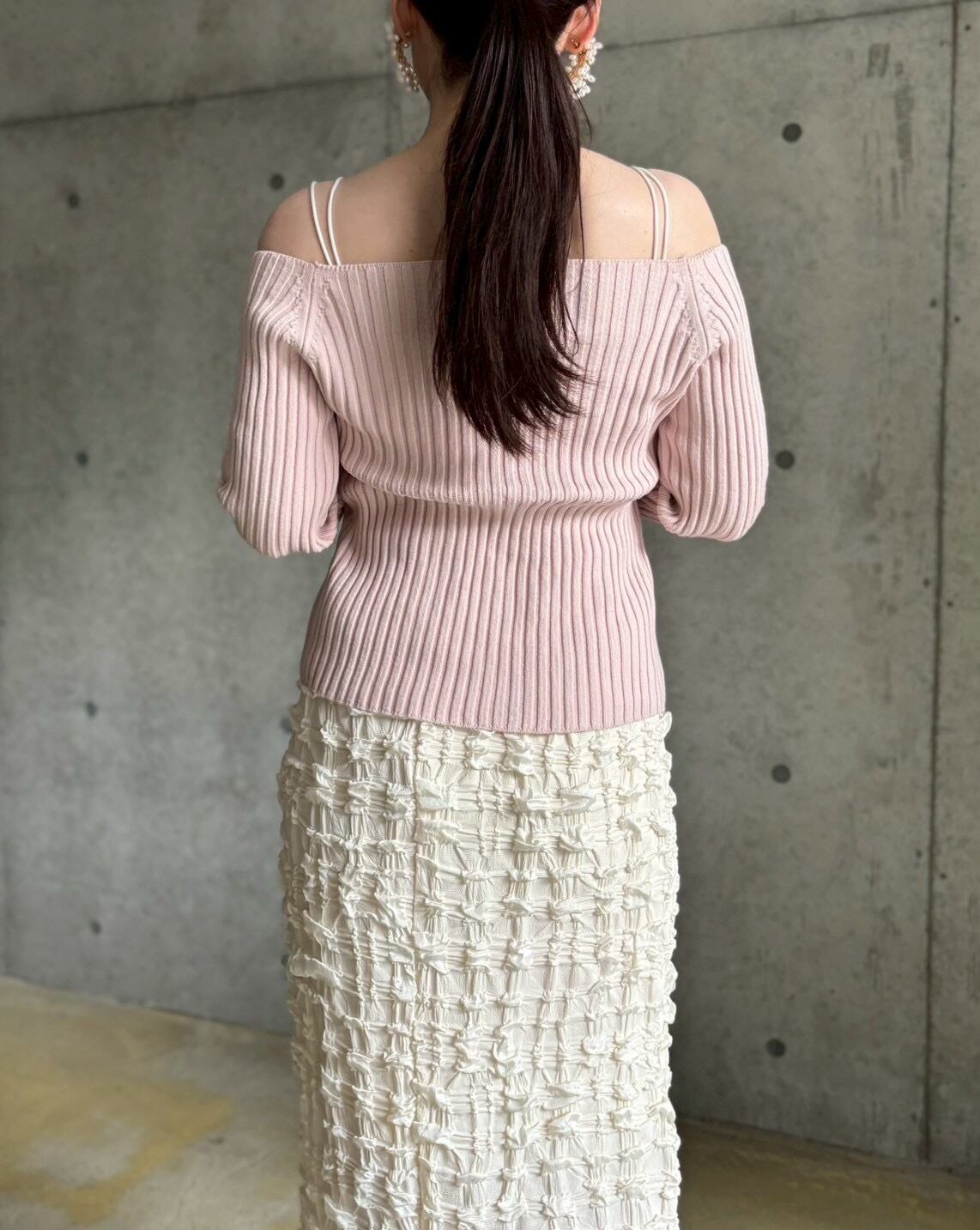 太めのリブニットは締め付け感もなく、オフショルが上がる心配もなくストレスフリーに着用していただけます✨