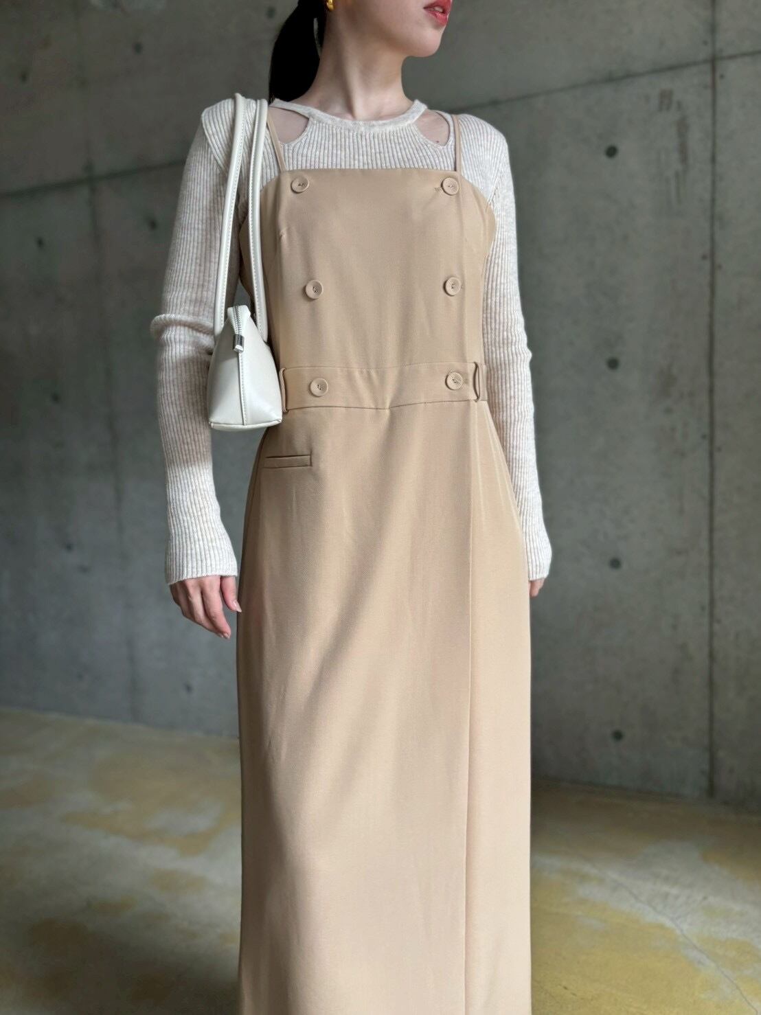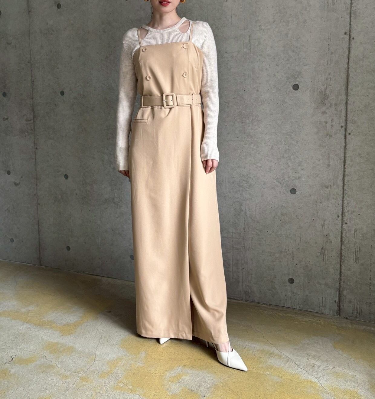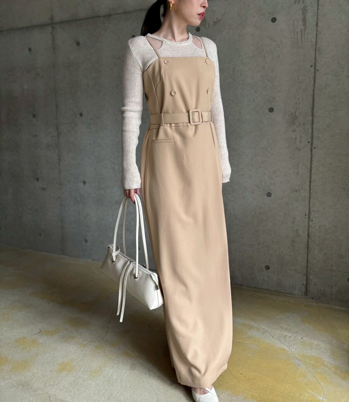 子供っぽくカジュアルになりがちなサロペットも、トレンチ風デザイン&ストンと落ちるしっかりとした高級感のある生地でキレイ見えが叶います✨