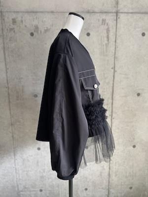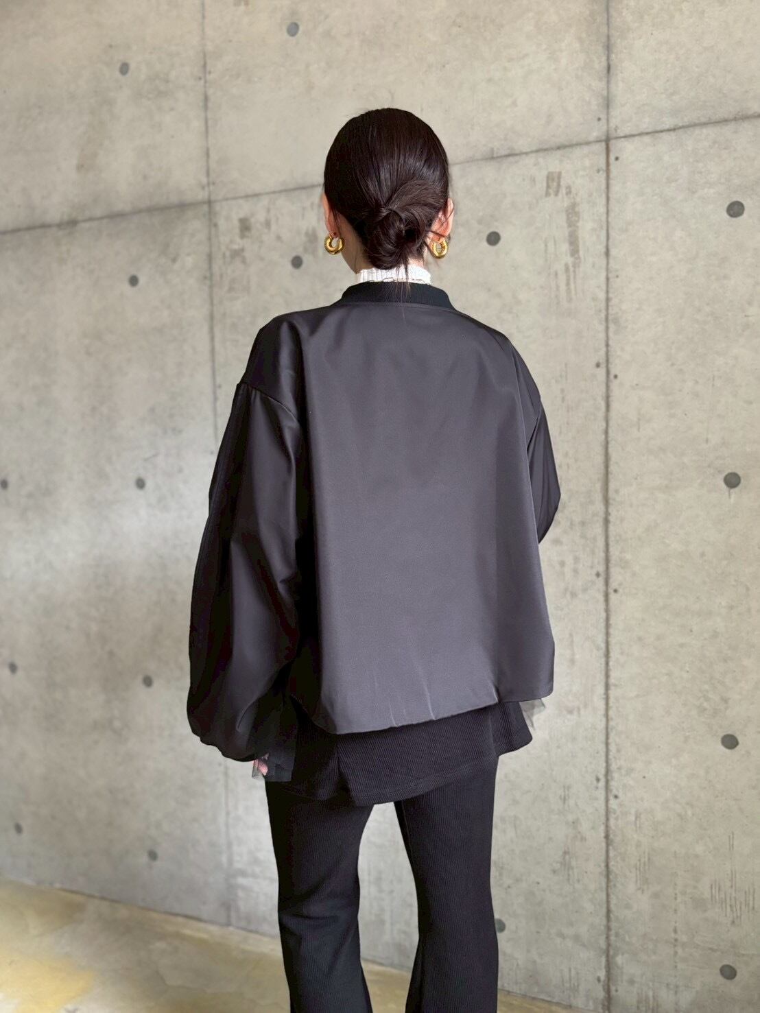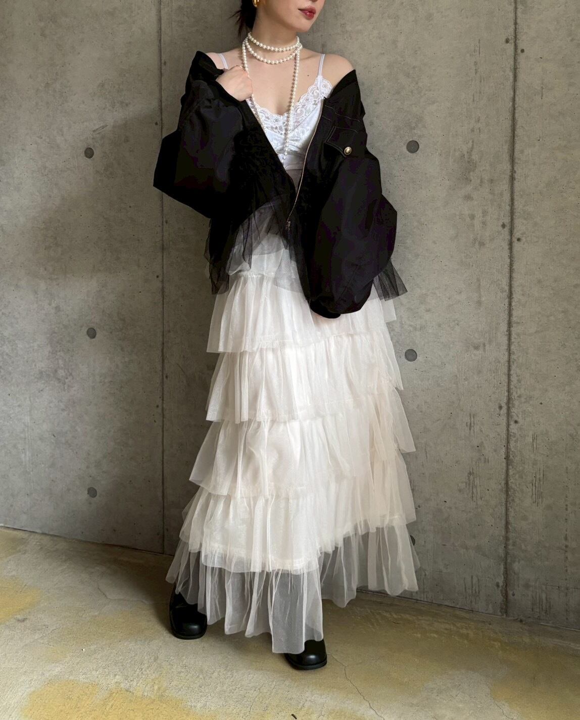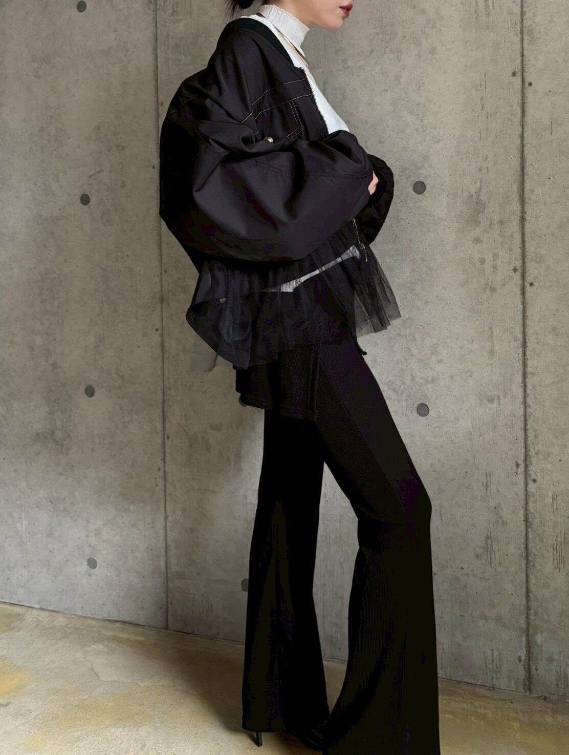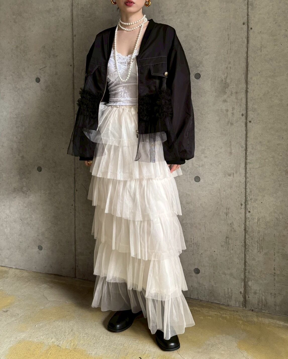 アウターの定番、MA-1にふんわりチュールを施して女性らしさをプラス✨