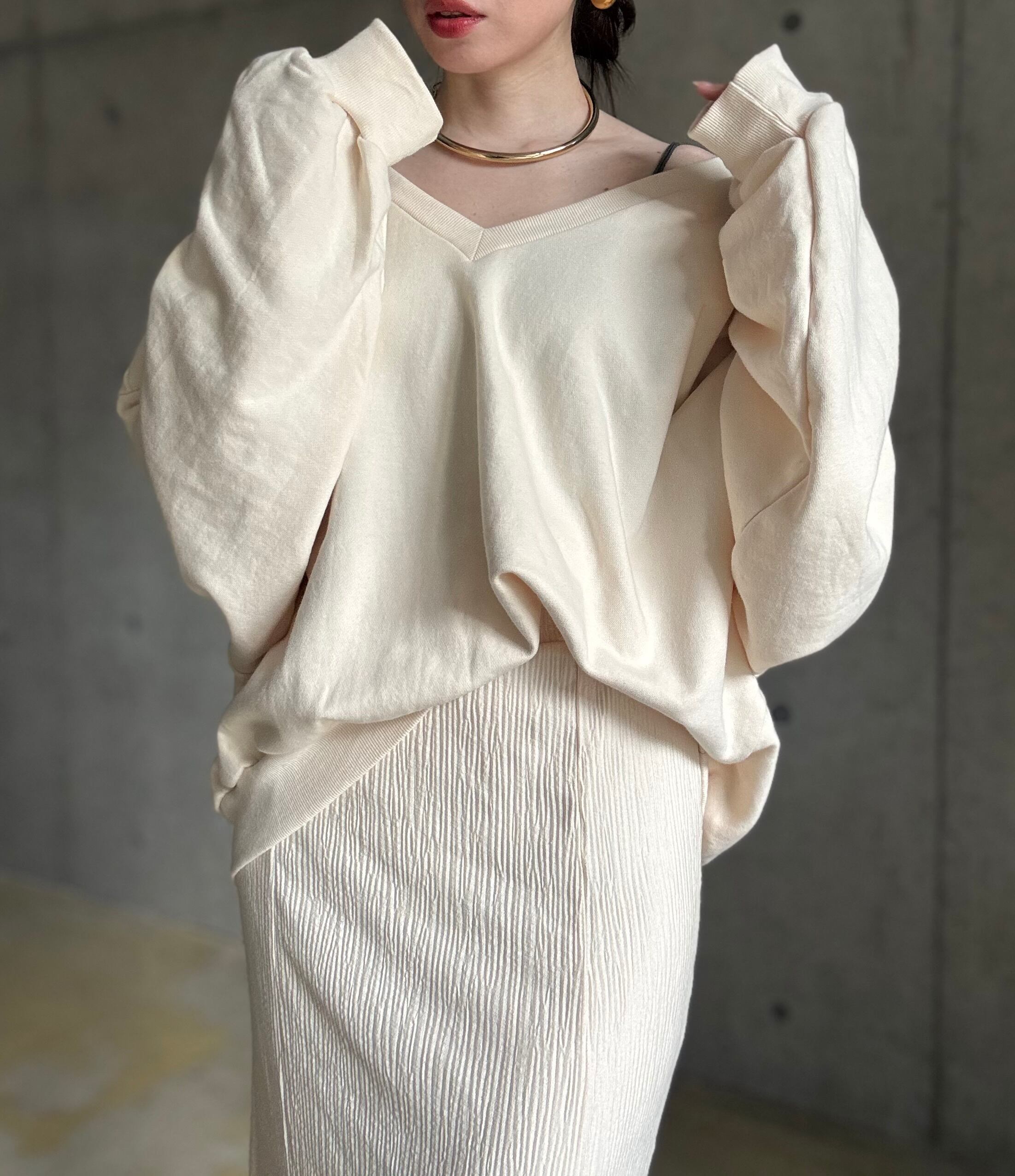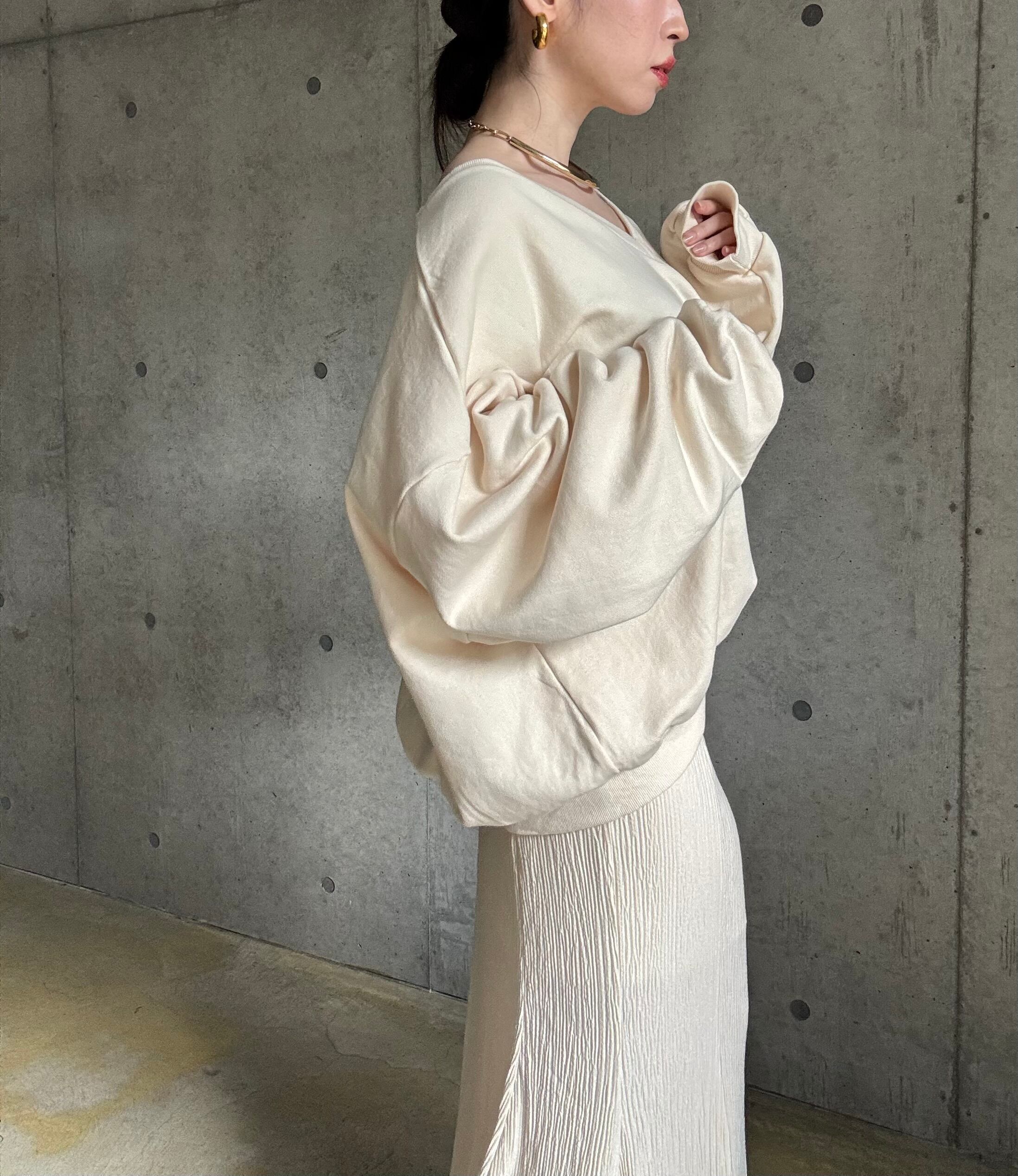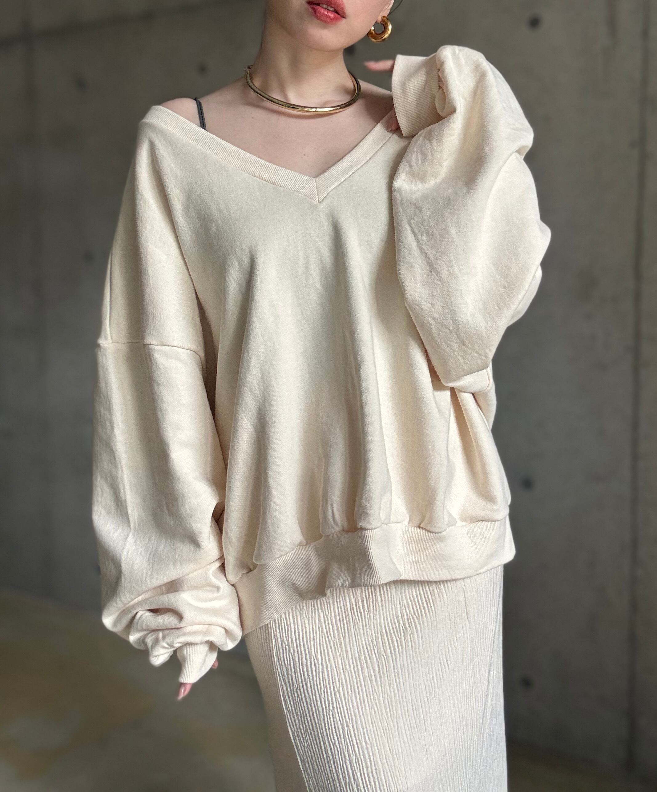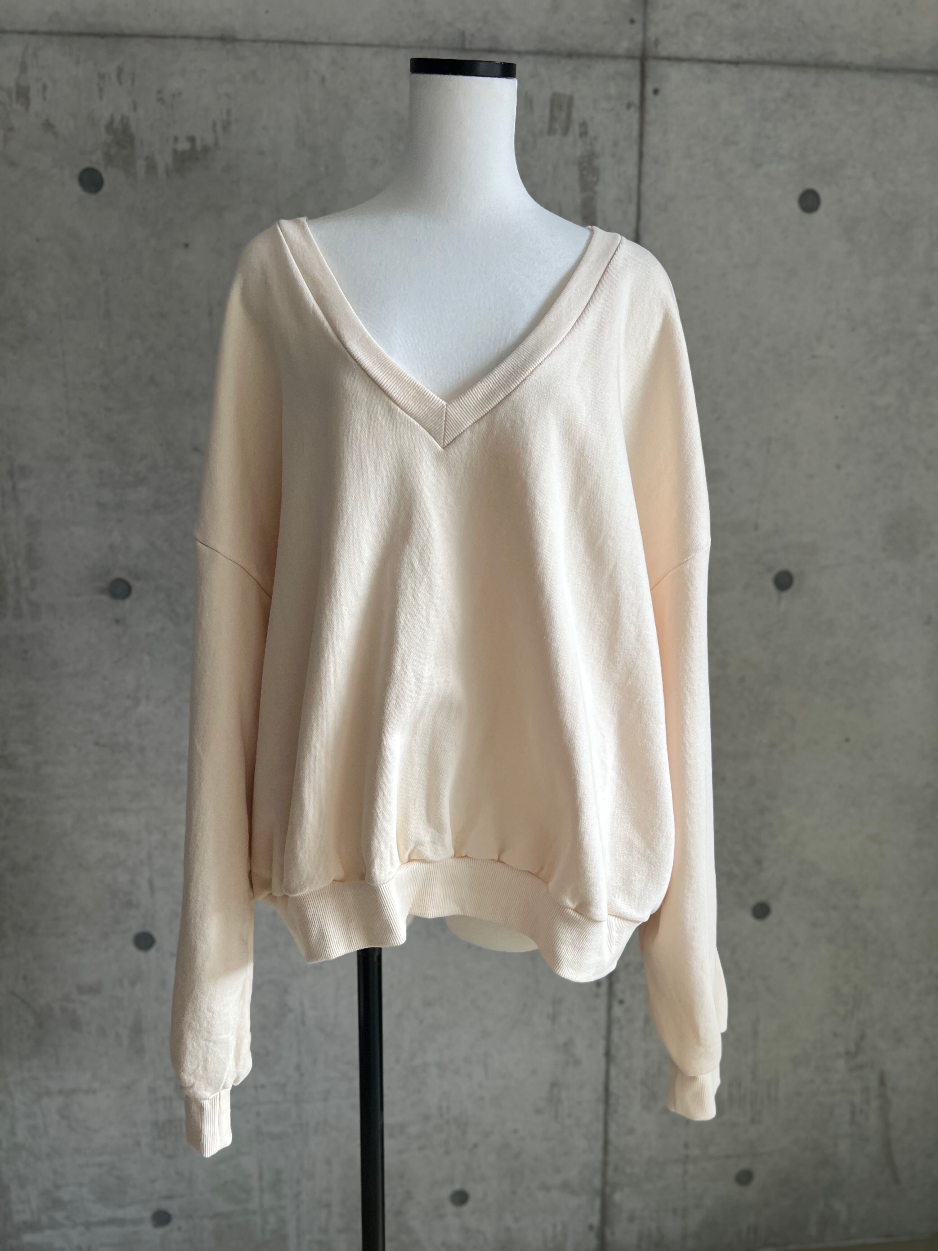 【即納】オーバーVネックスウェットプルオーバー【アイボリー】