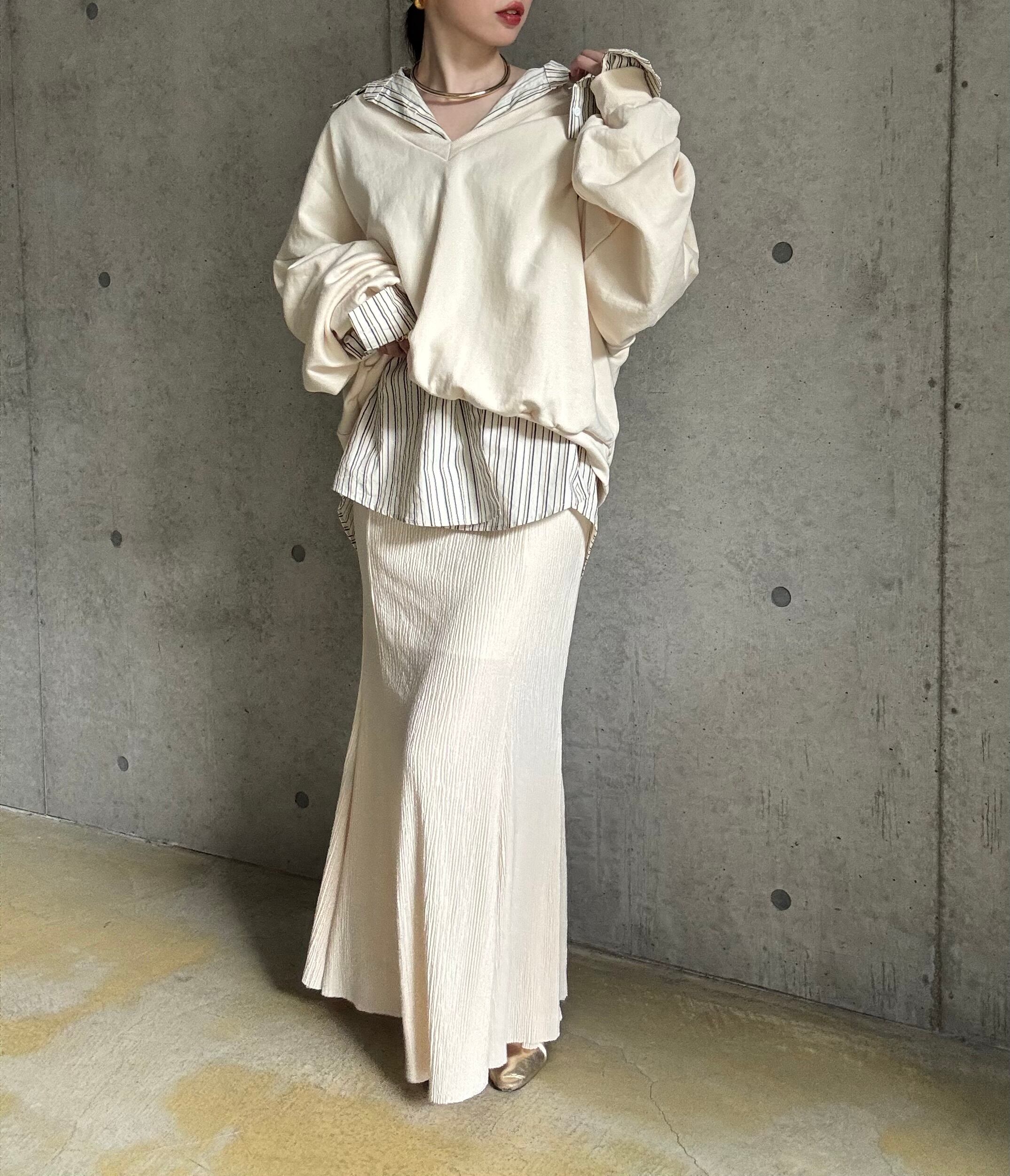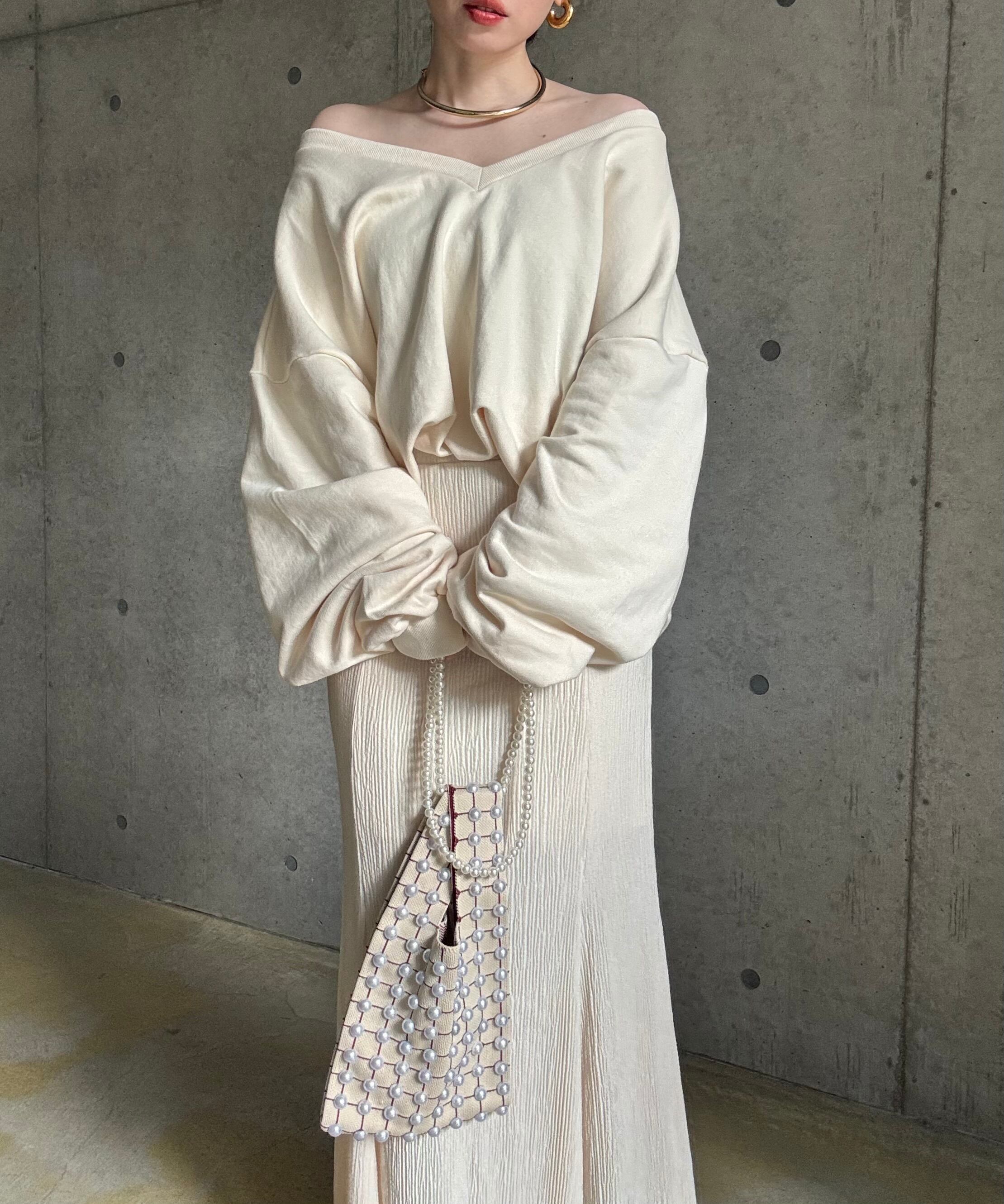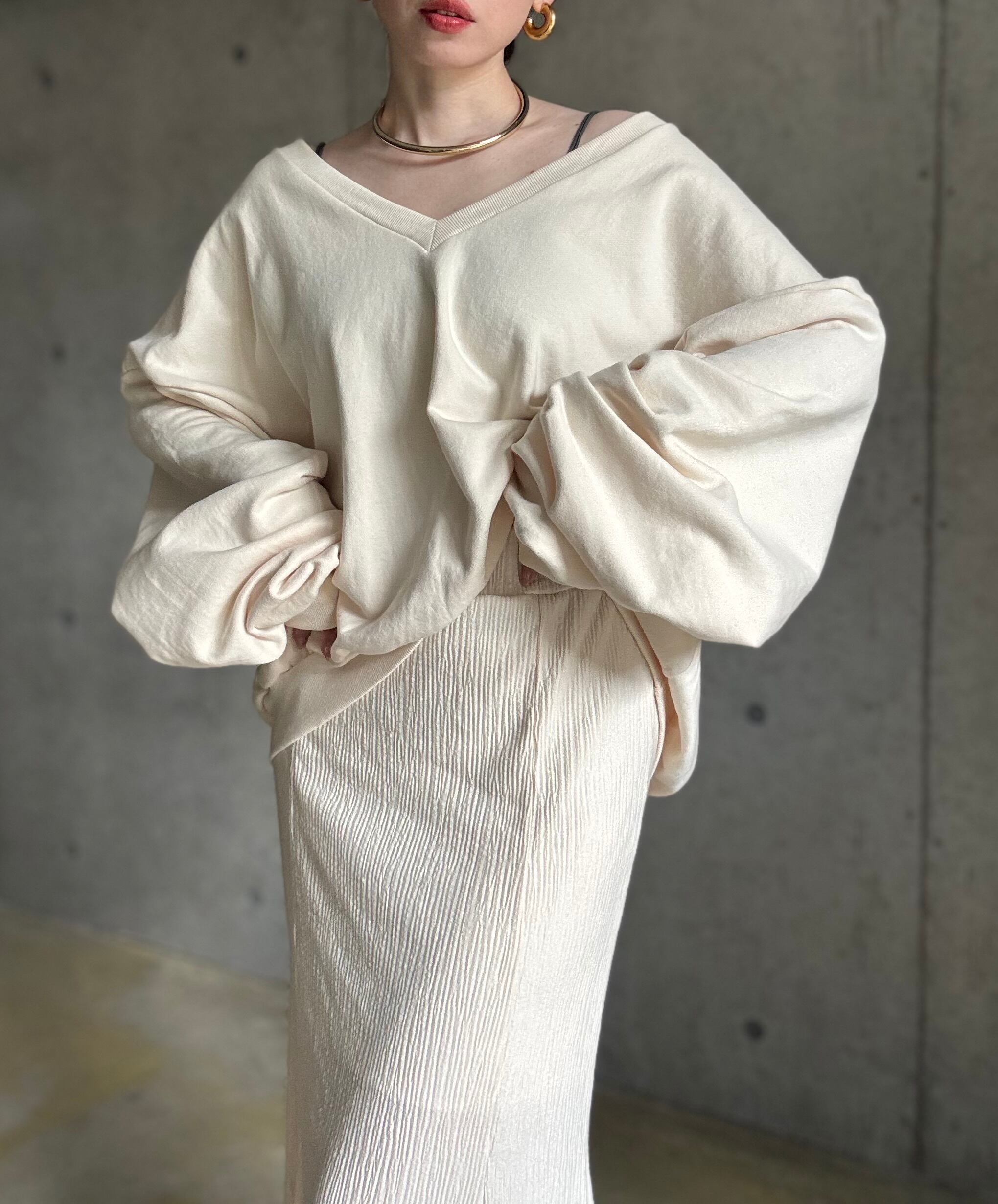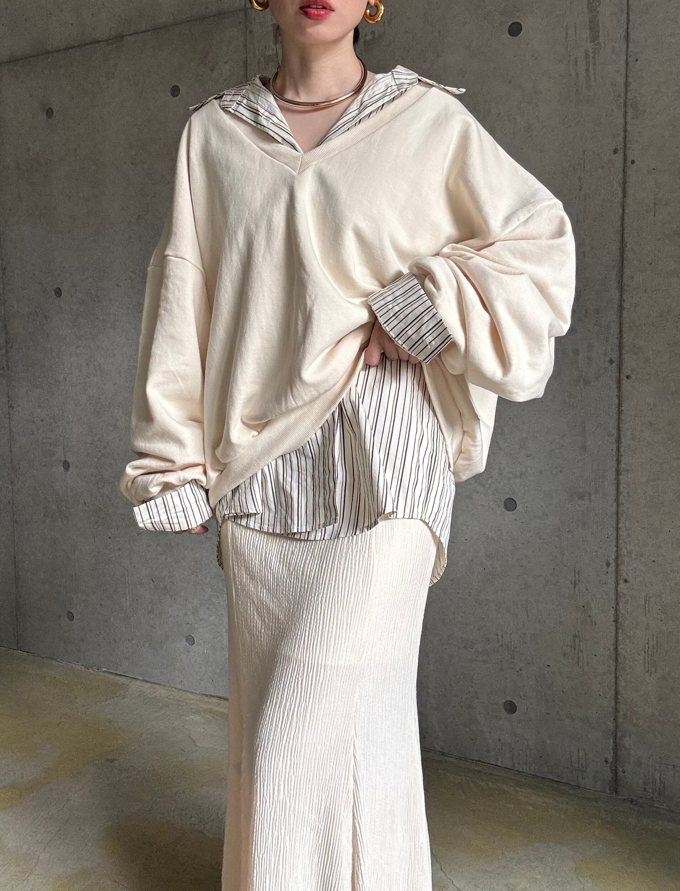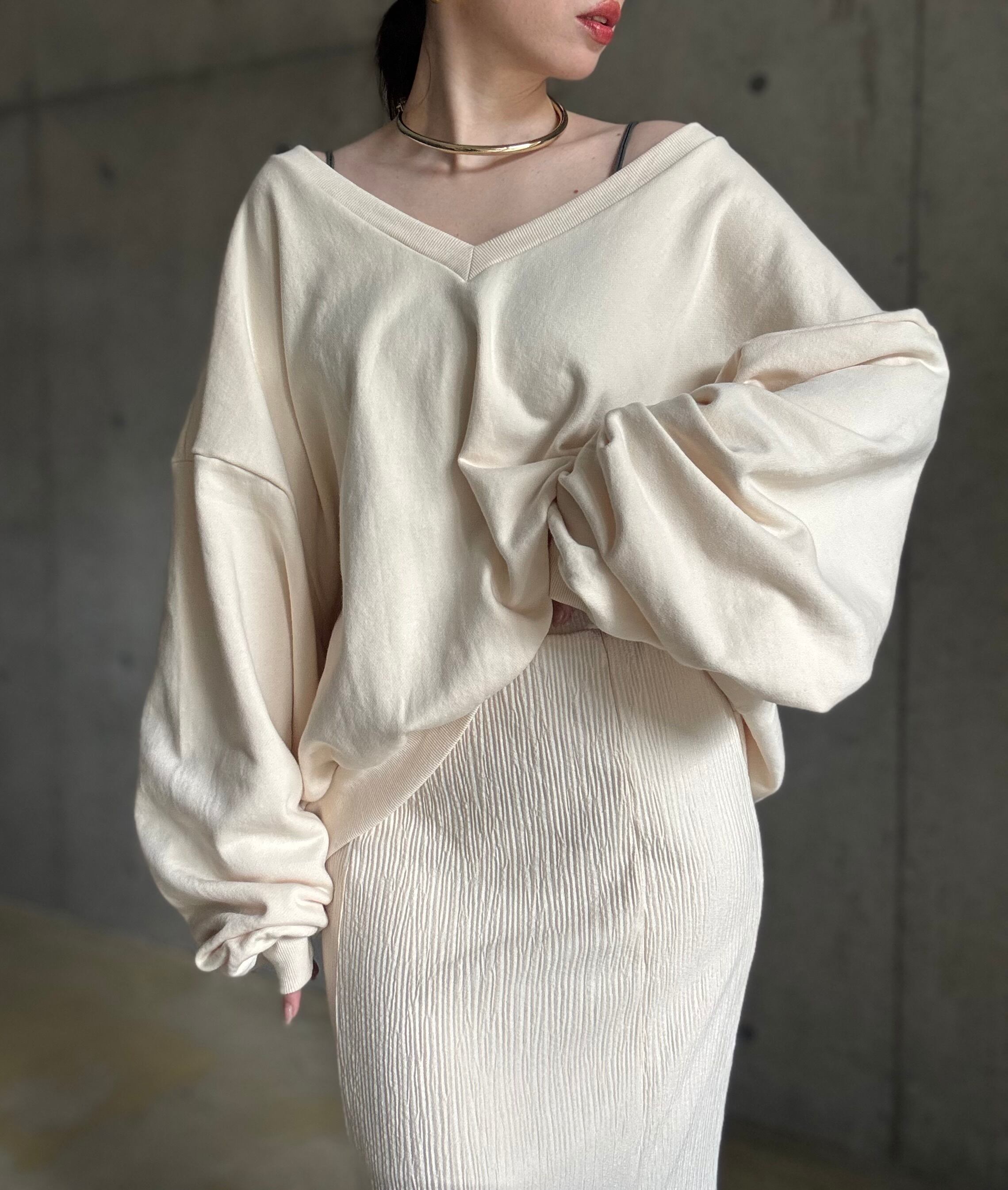 【即納】オーバーVネックスウェットプルオーバー【アイボリー】