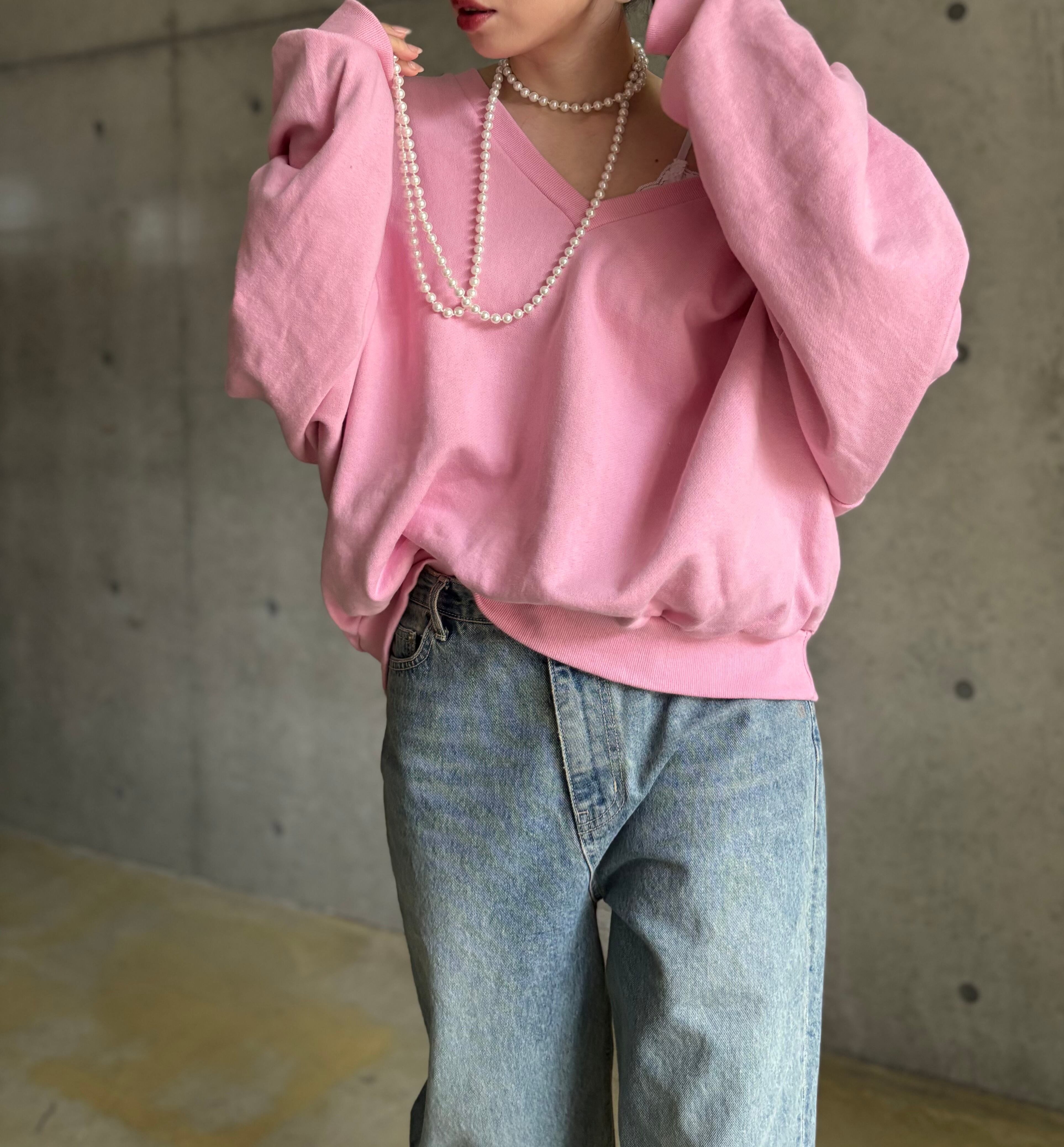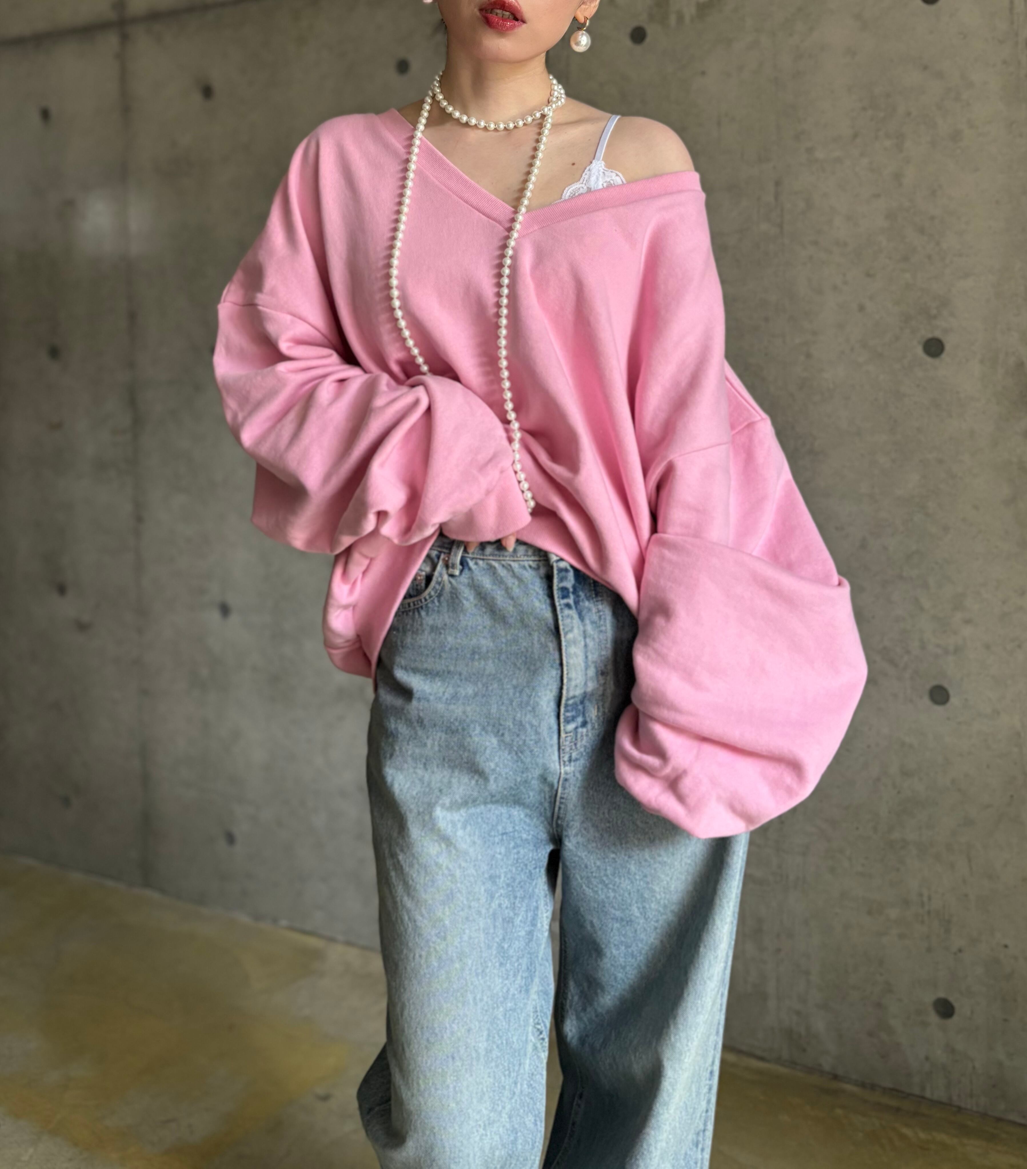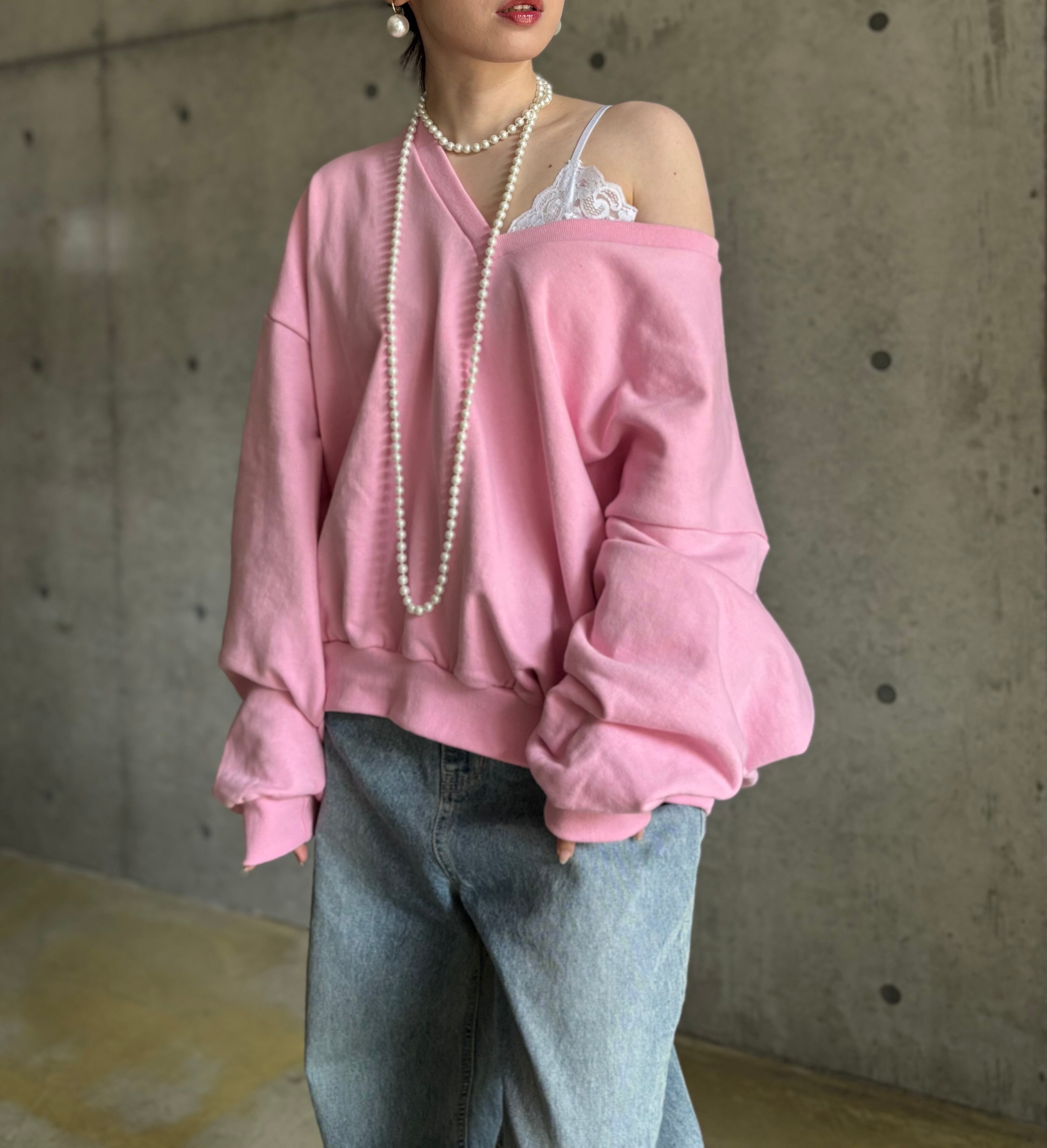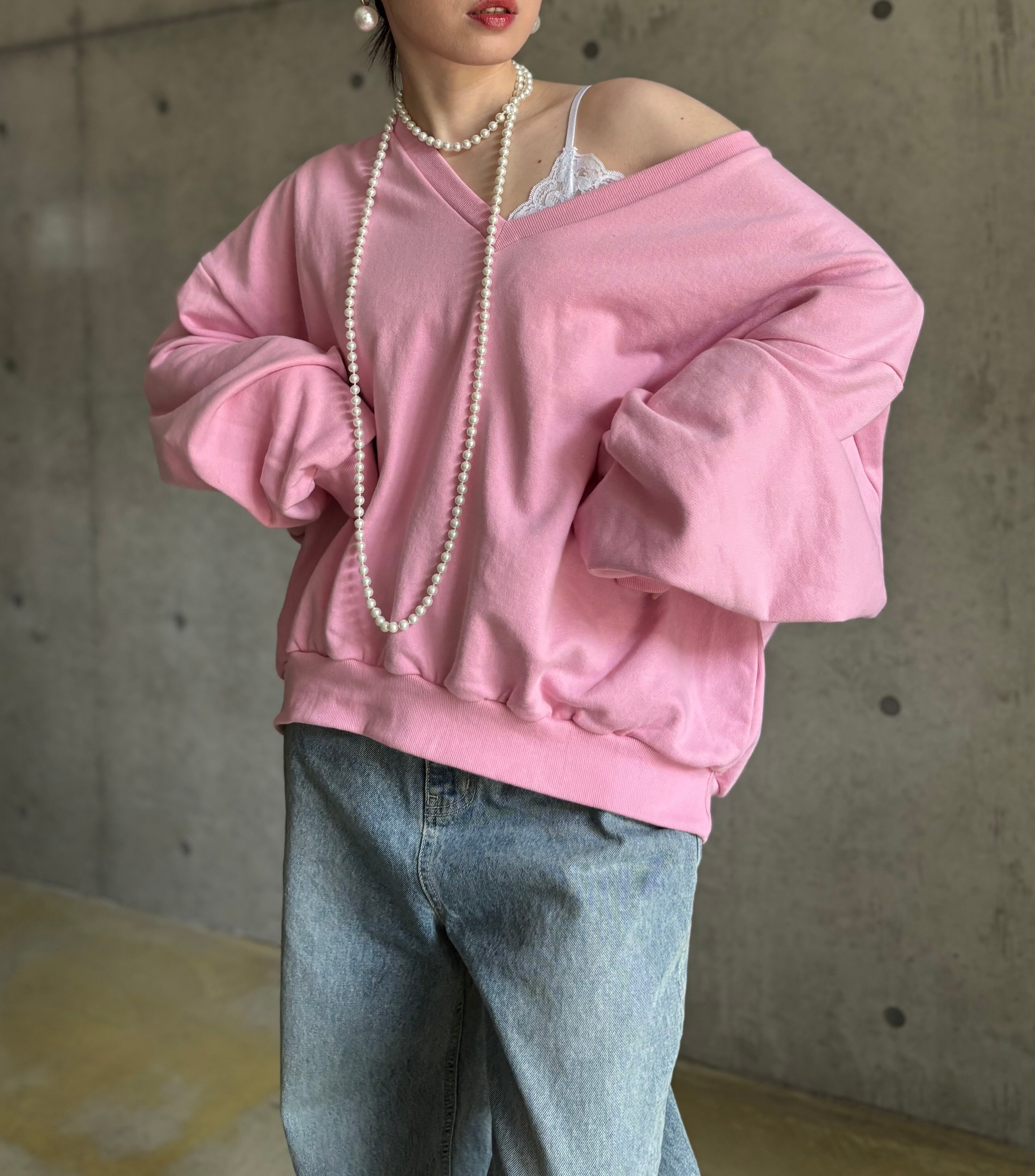 【即納】オーバーVネックスウェットプルオーバー【ピンク】