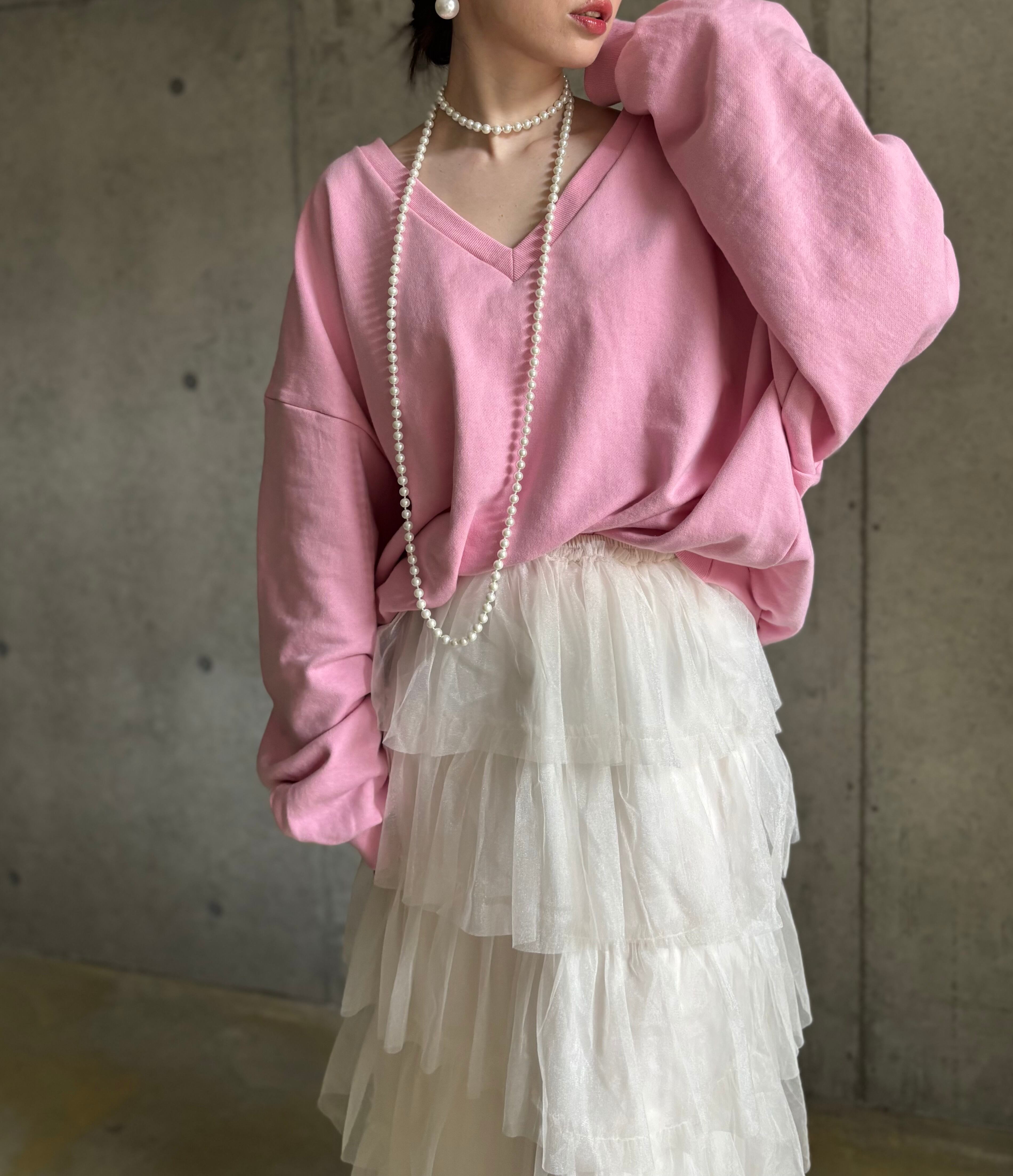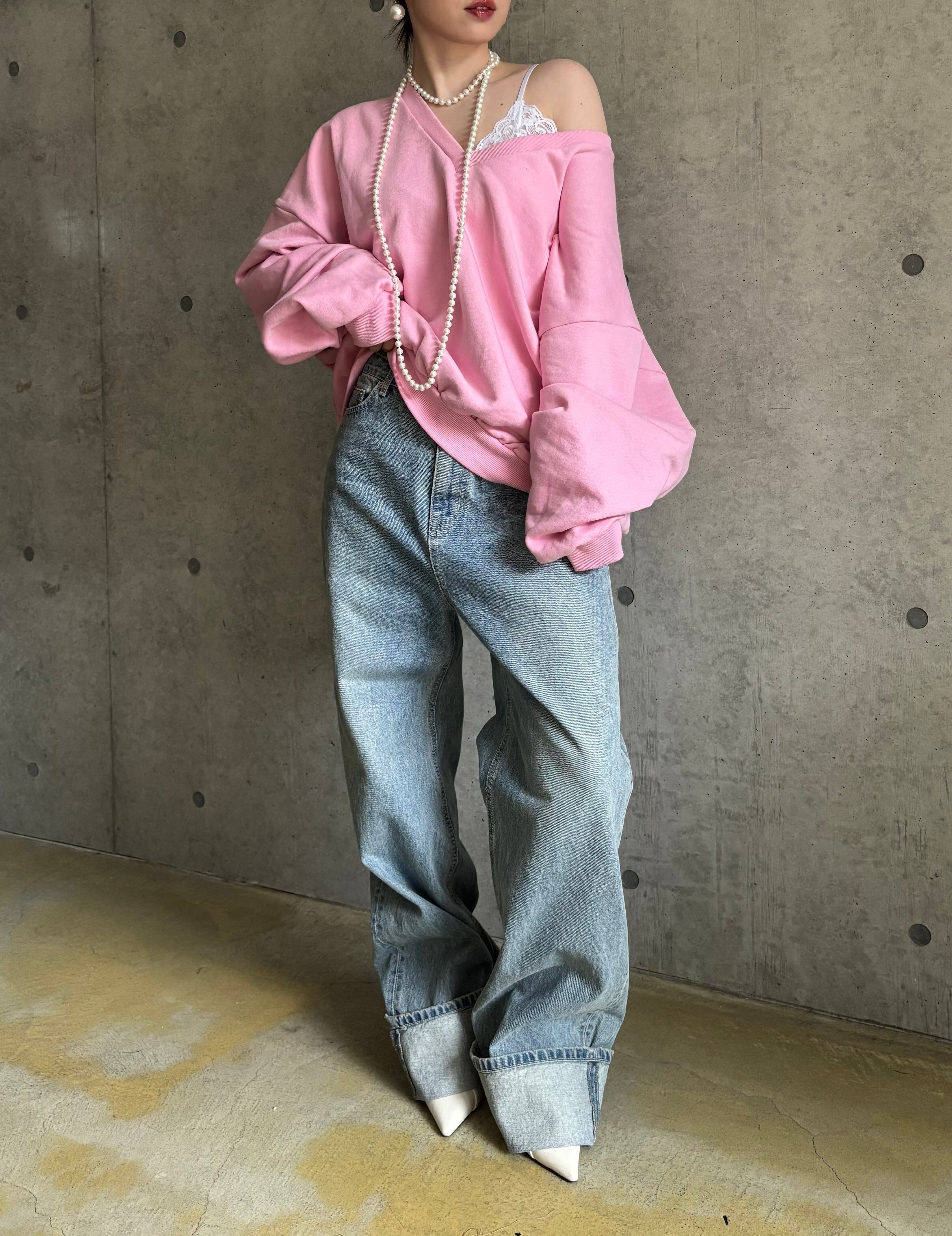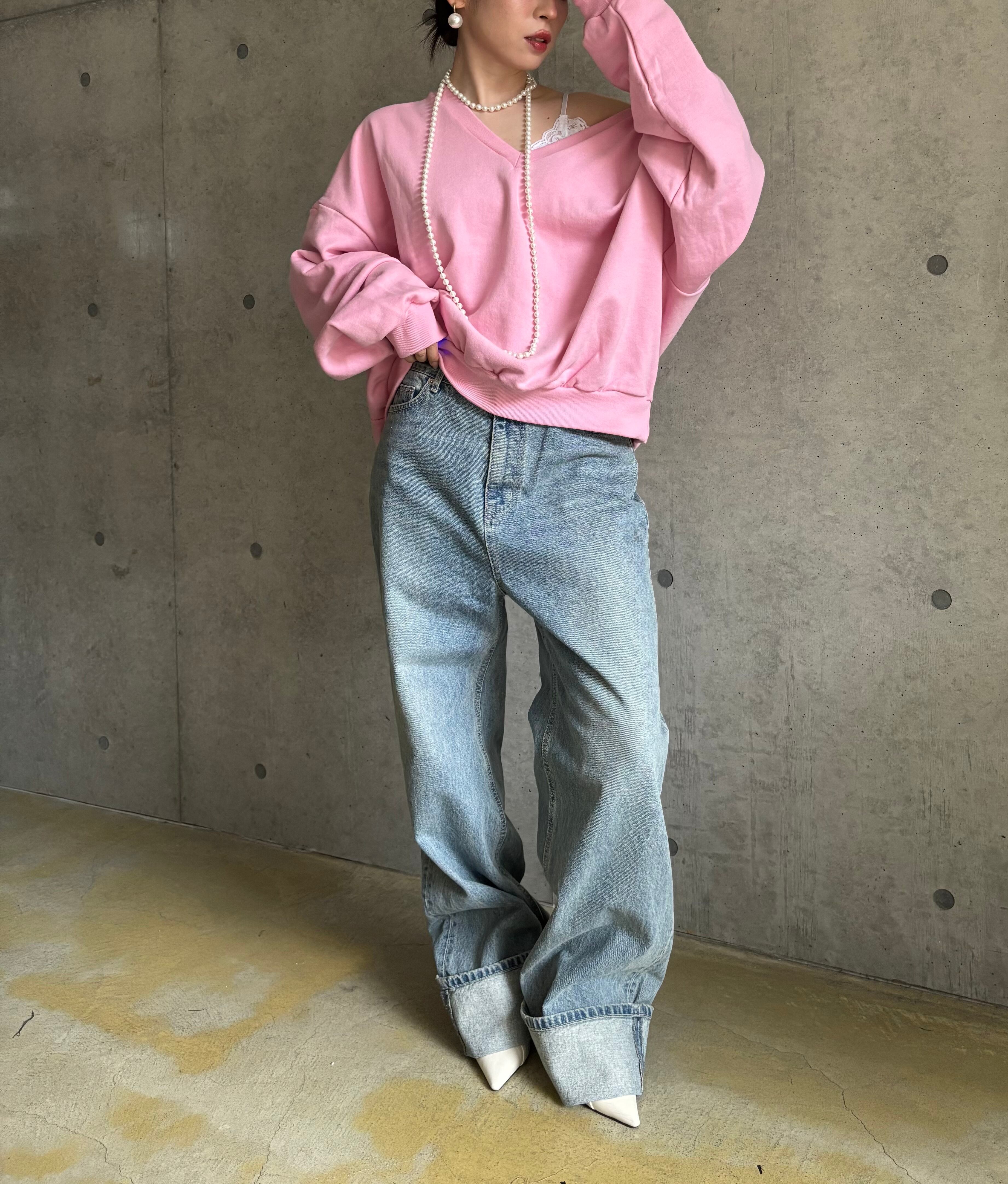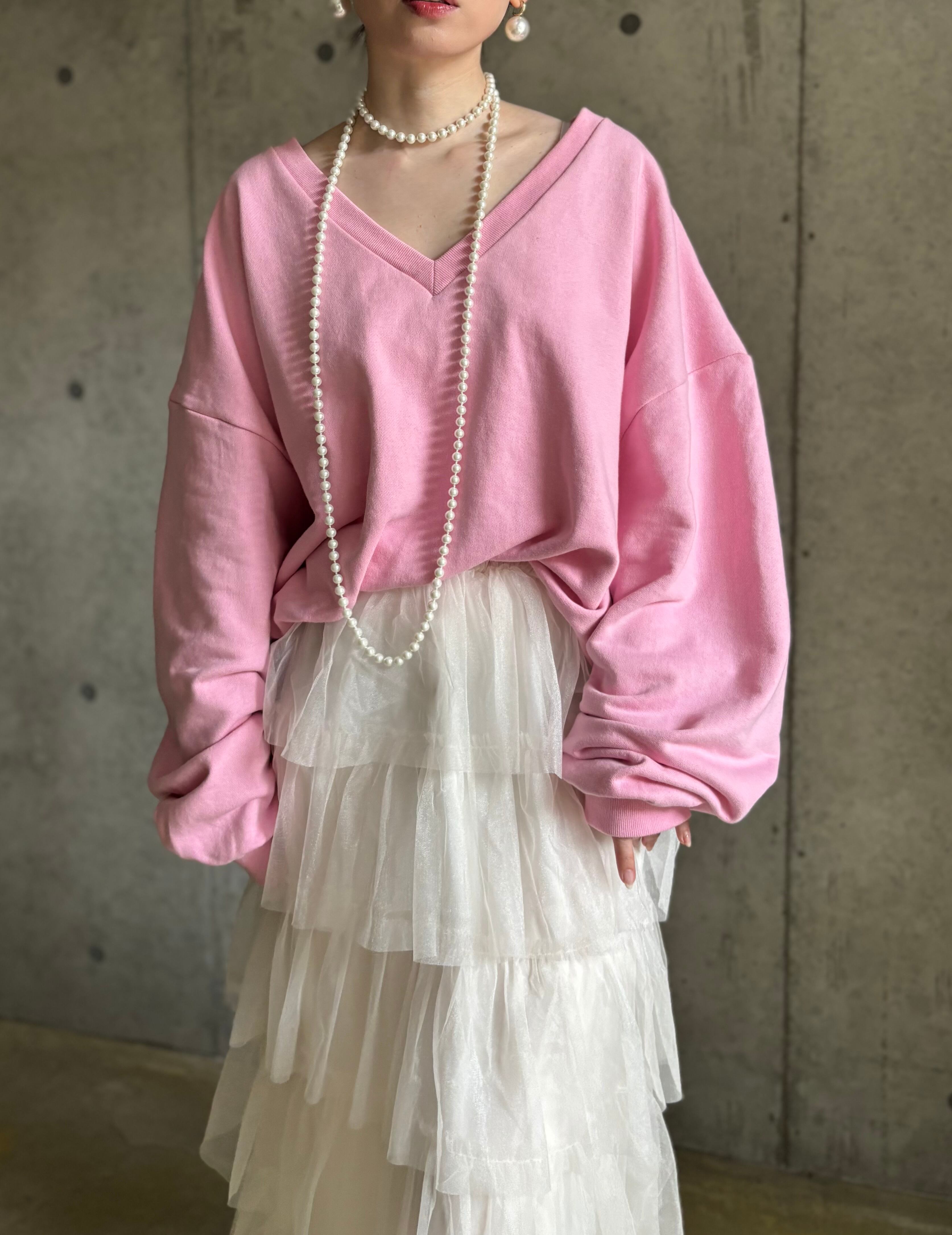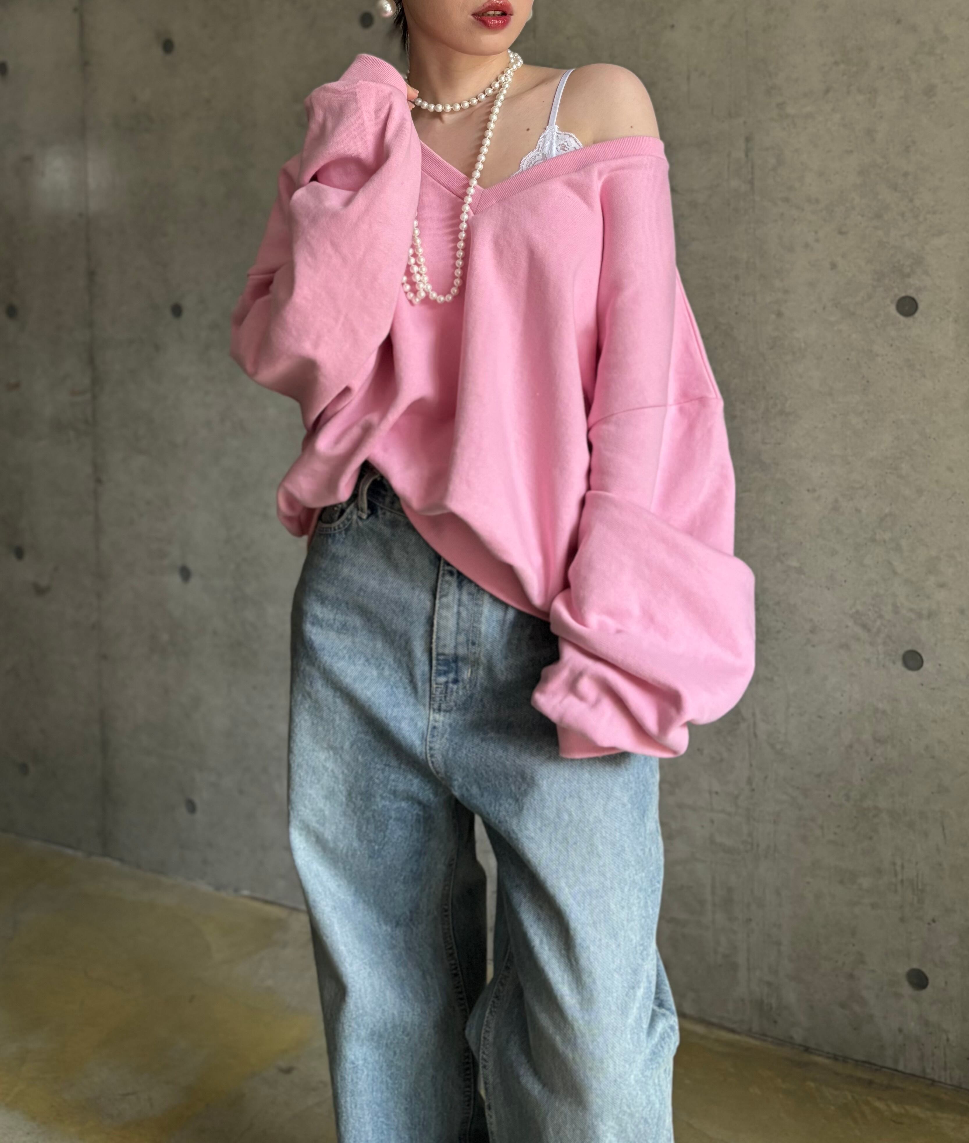 【即納】オーバーVネックスウェットプルオーバー【ピンク】