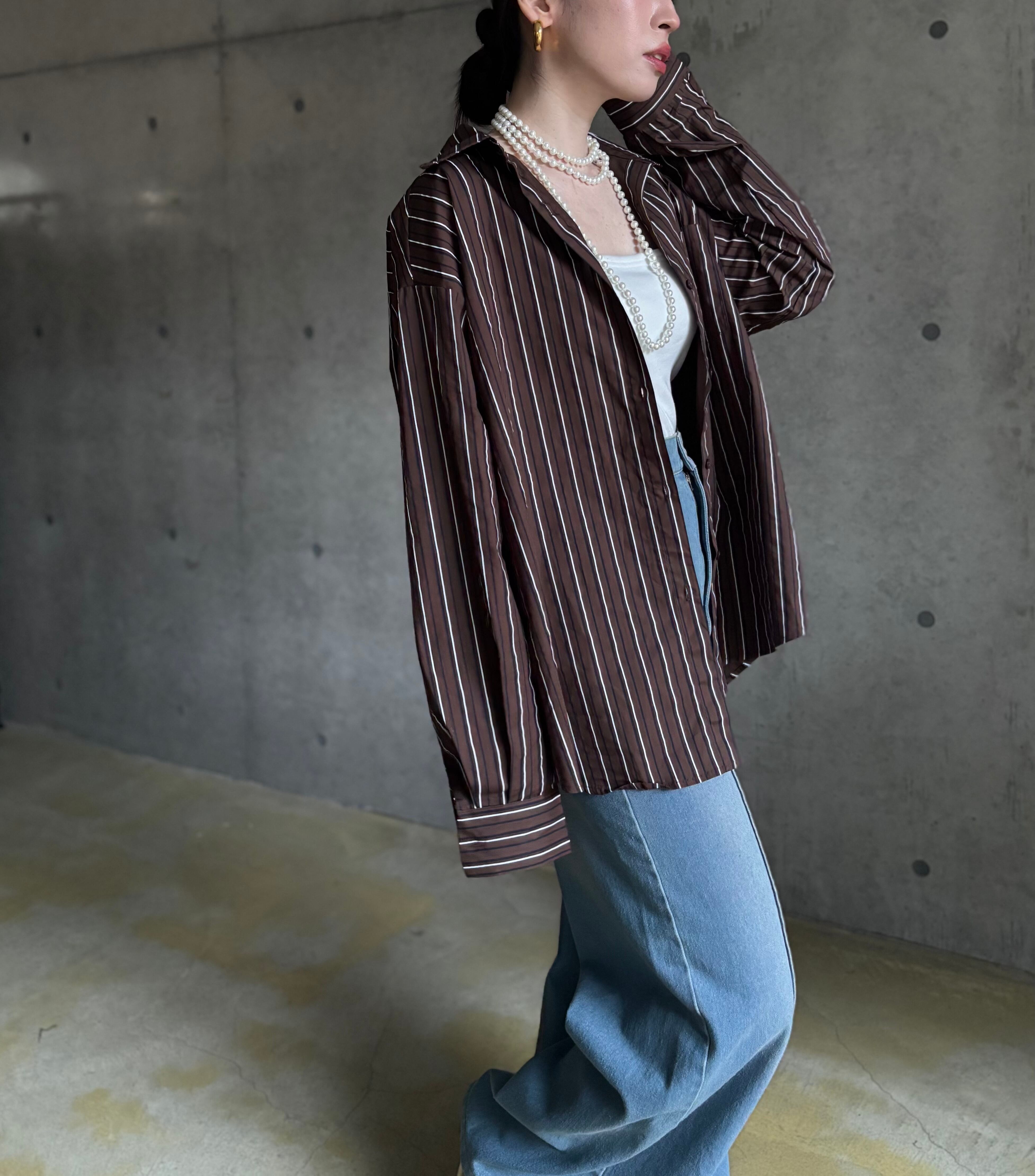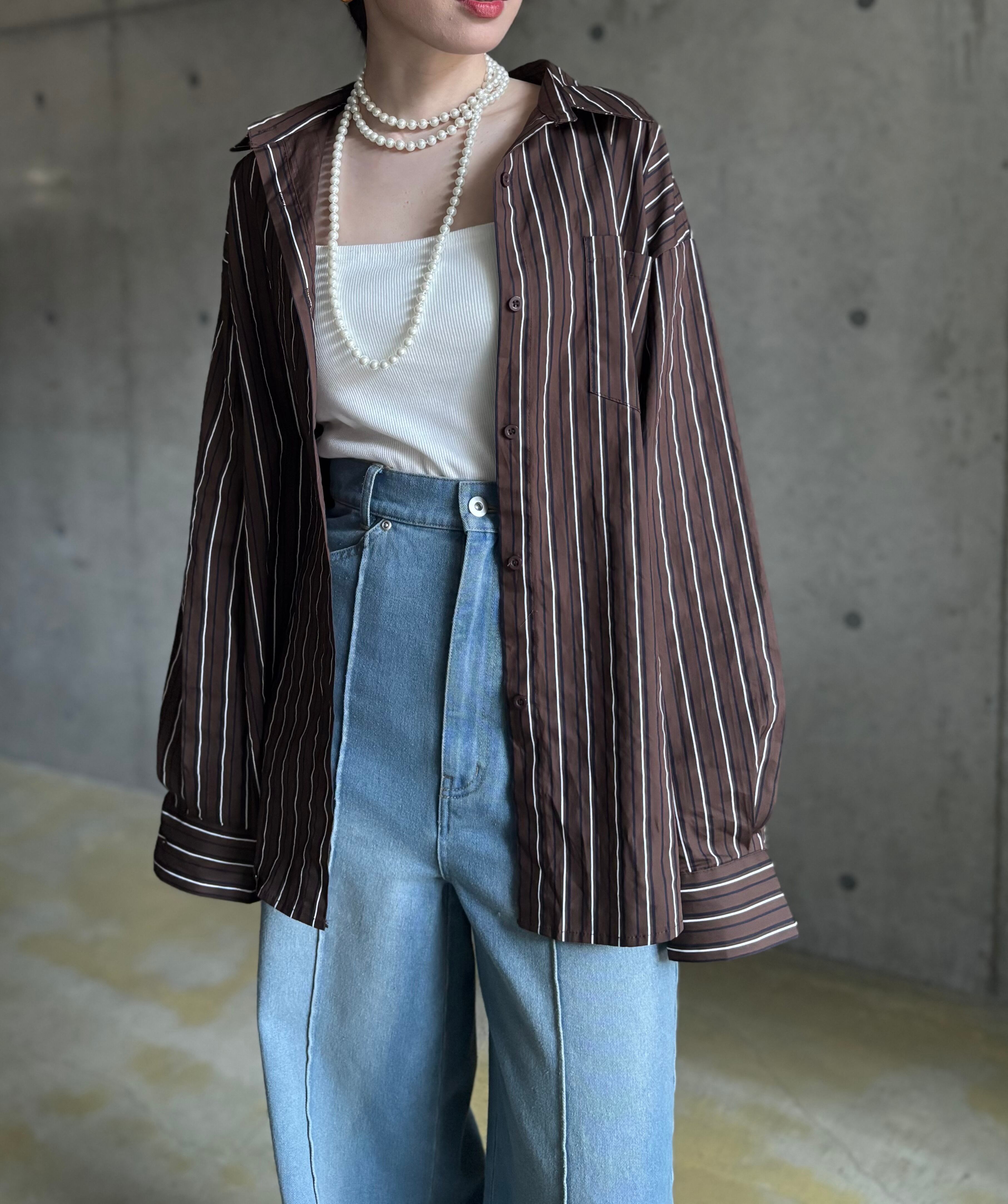 オープンカラー×ストライプの組み合わせがメンズライクなシャツは、羽織るだけで抜け感たっぷり✨