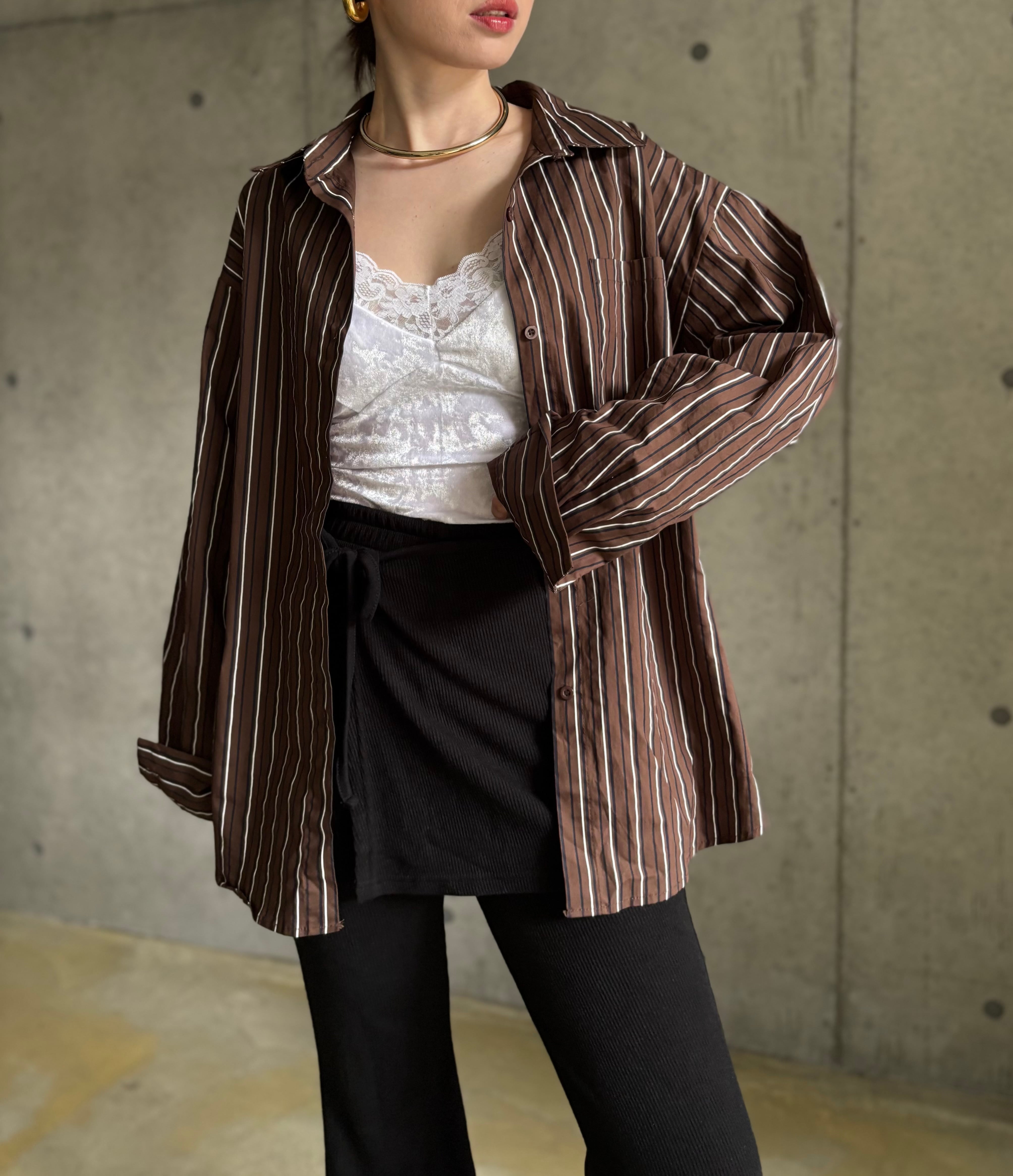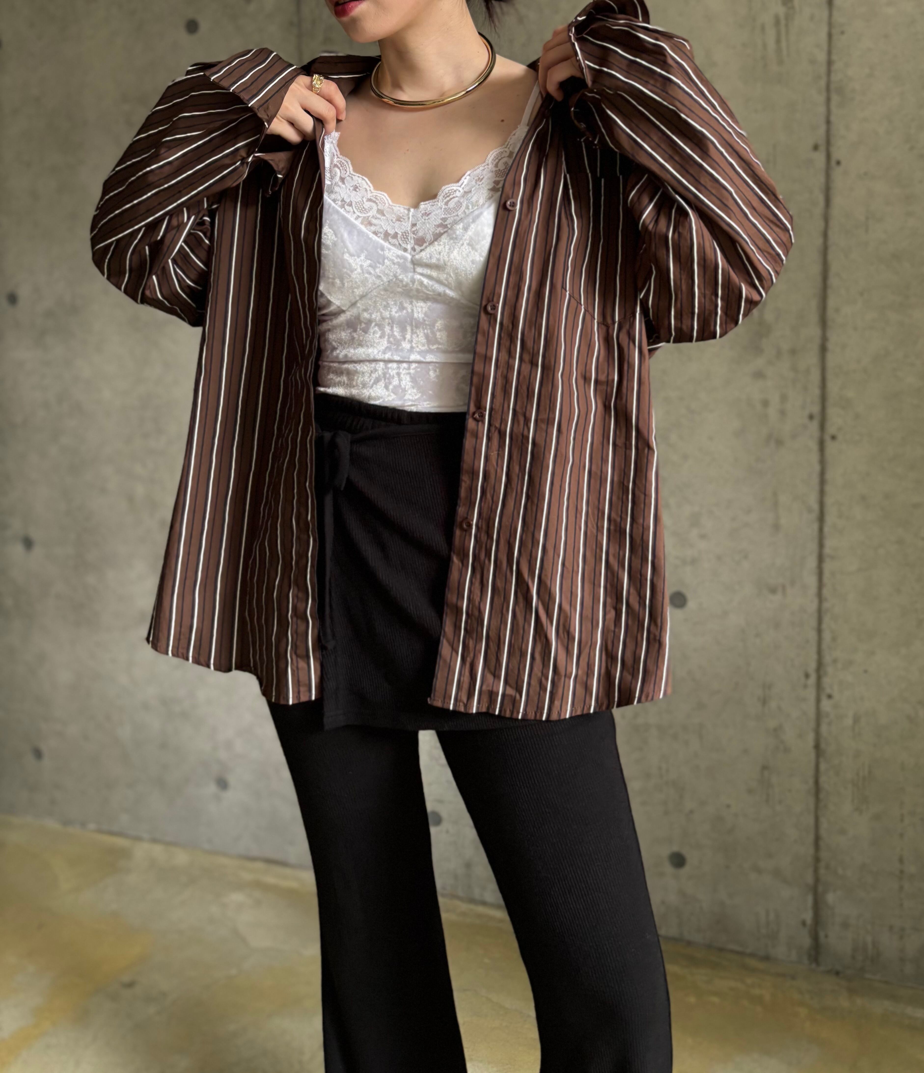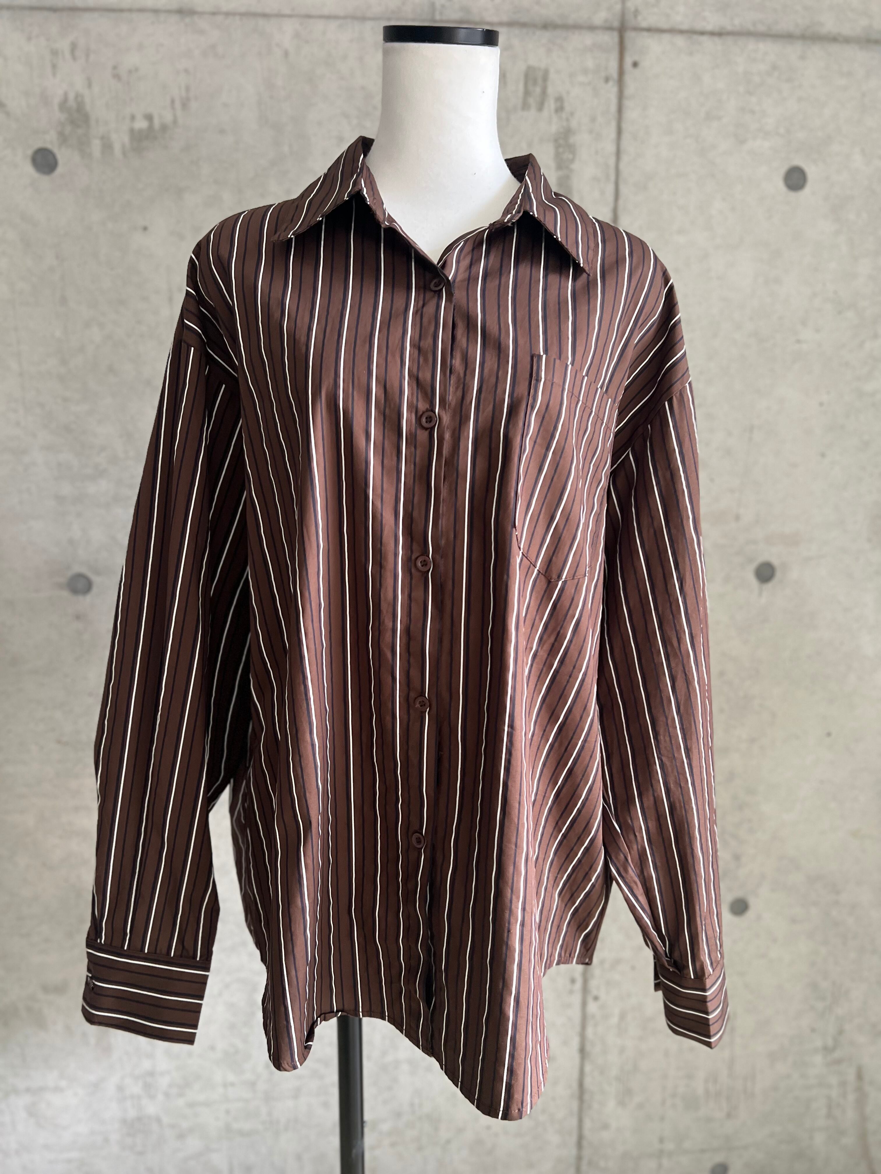 マルチストライプオープンカラーシャツ【ブラウン】