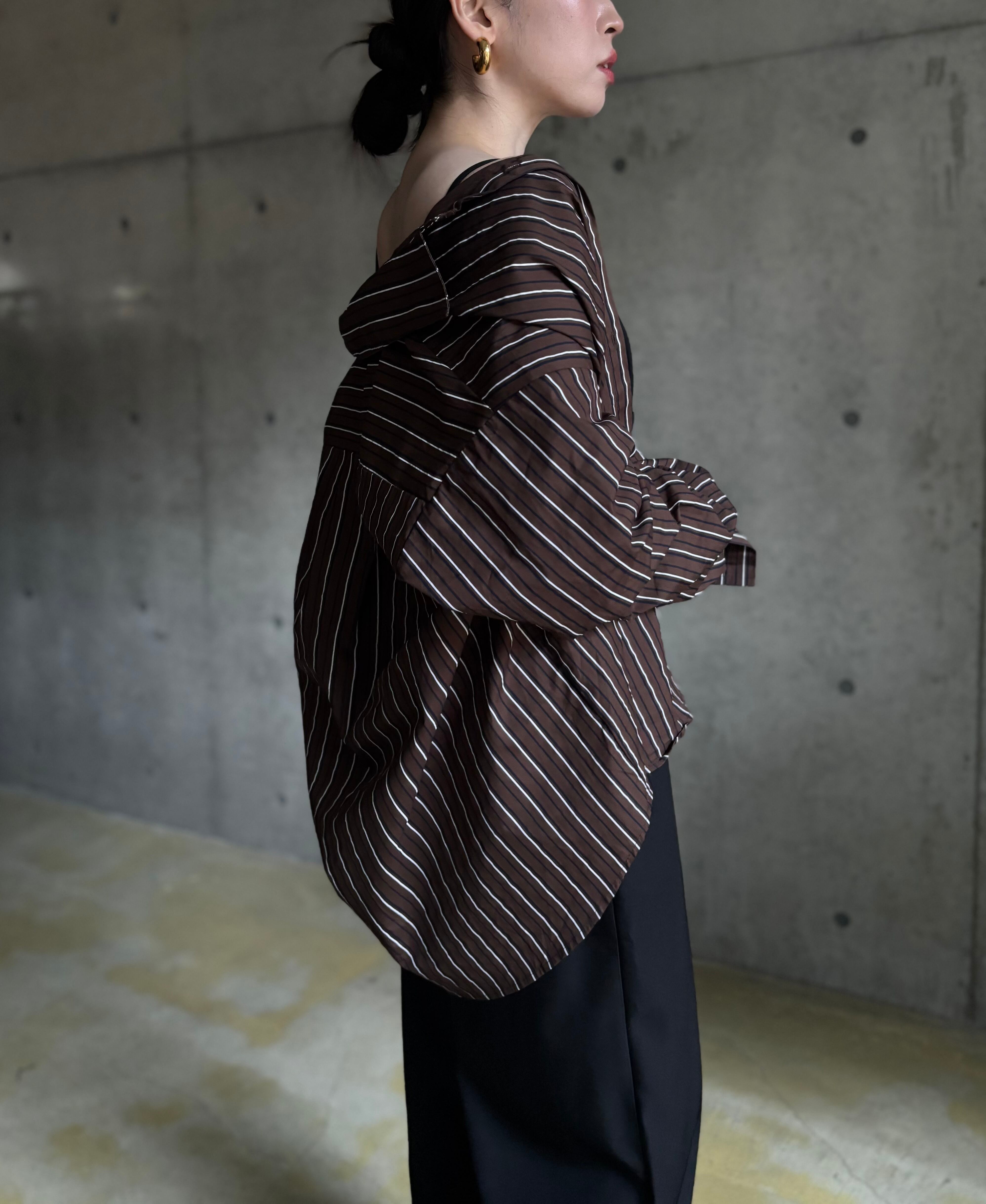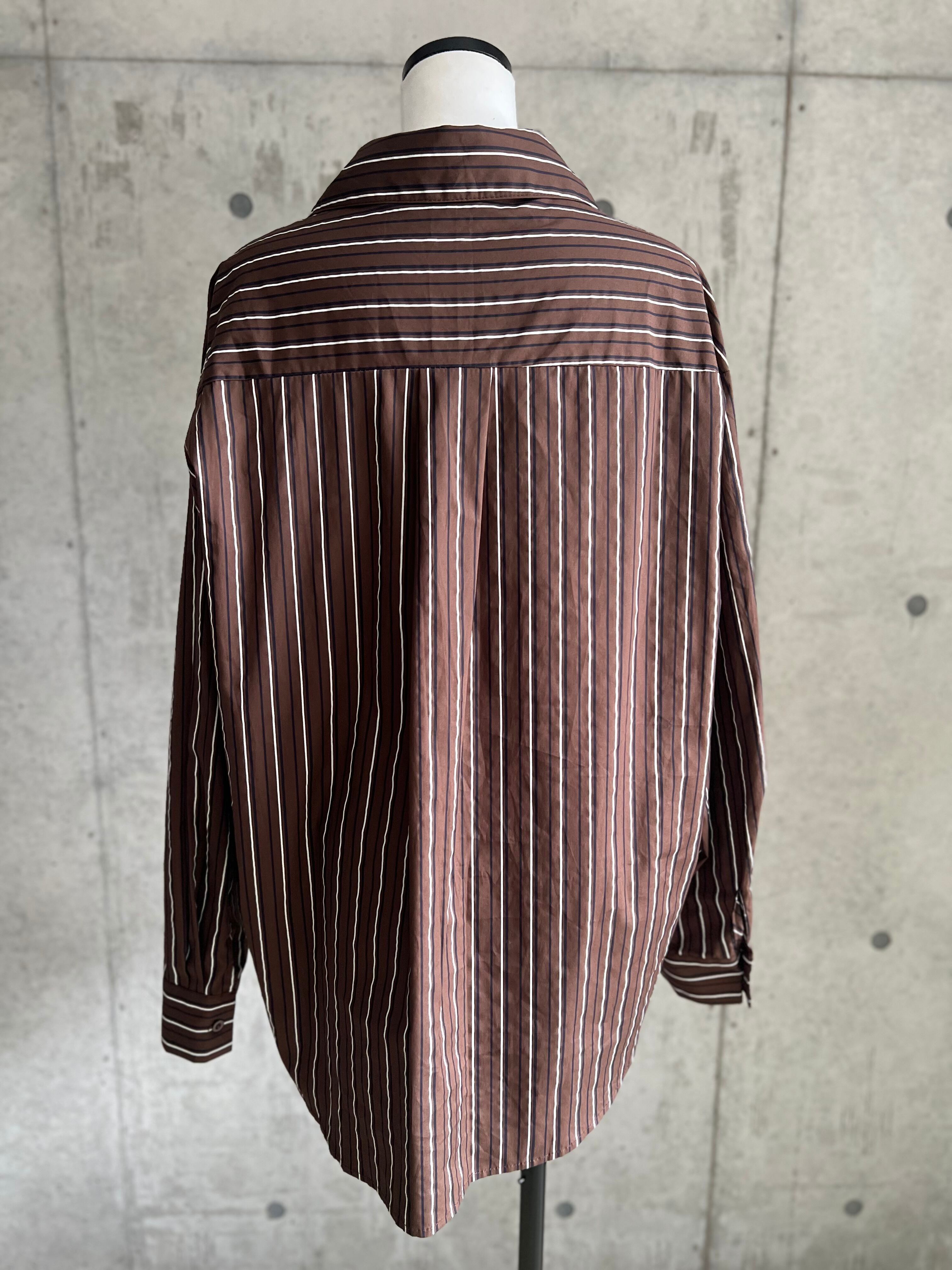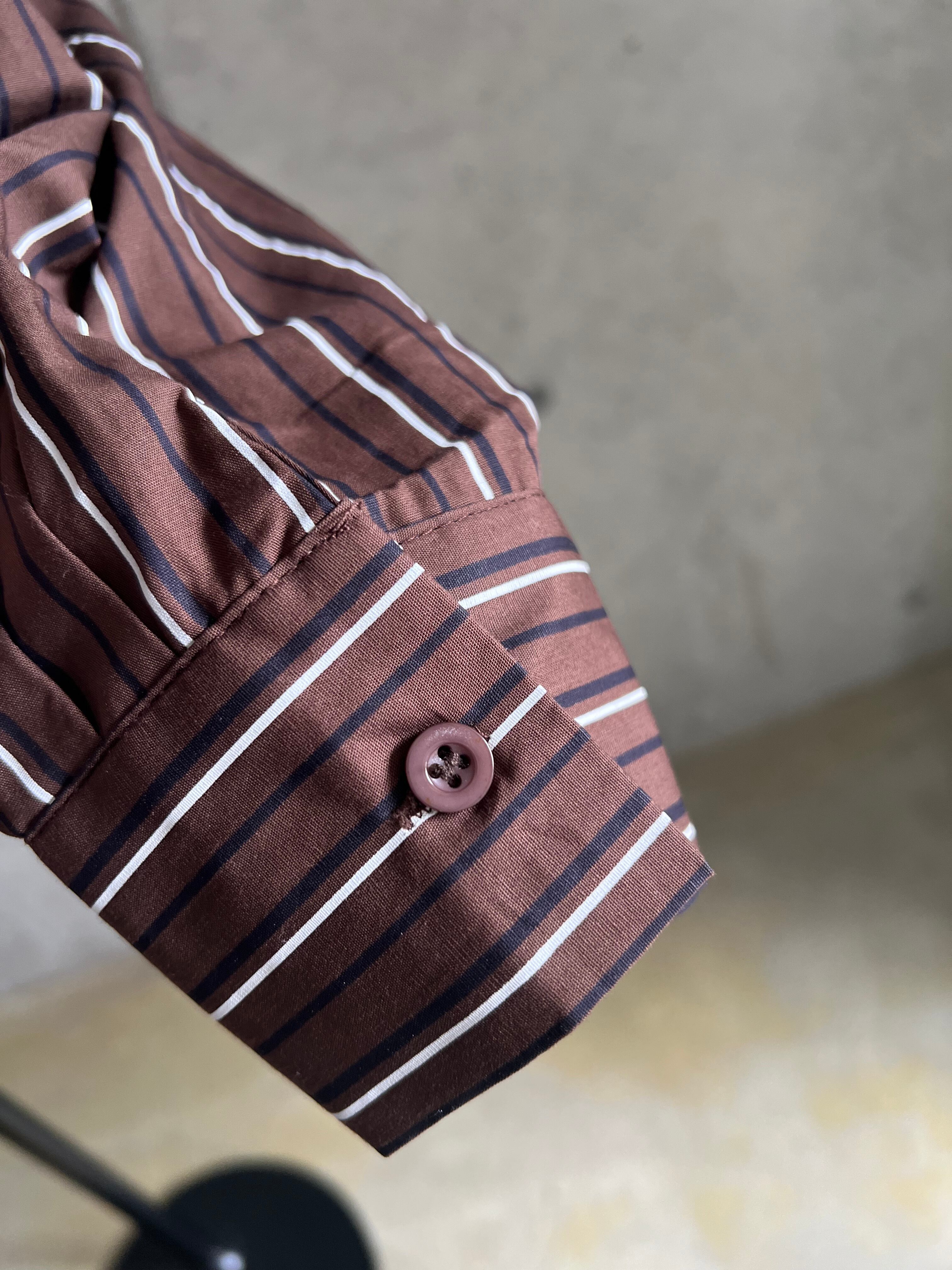 マルチストライプオープンカラーシャツ【ブラウン】