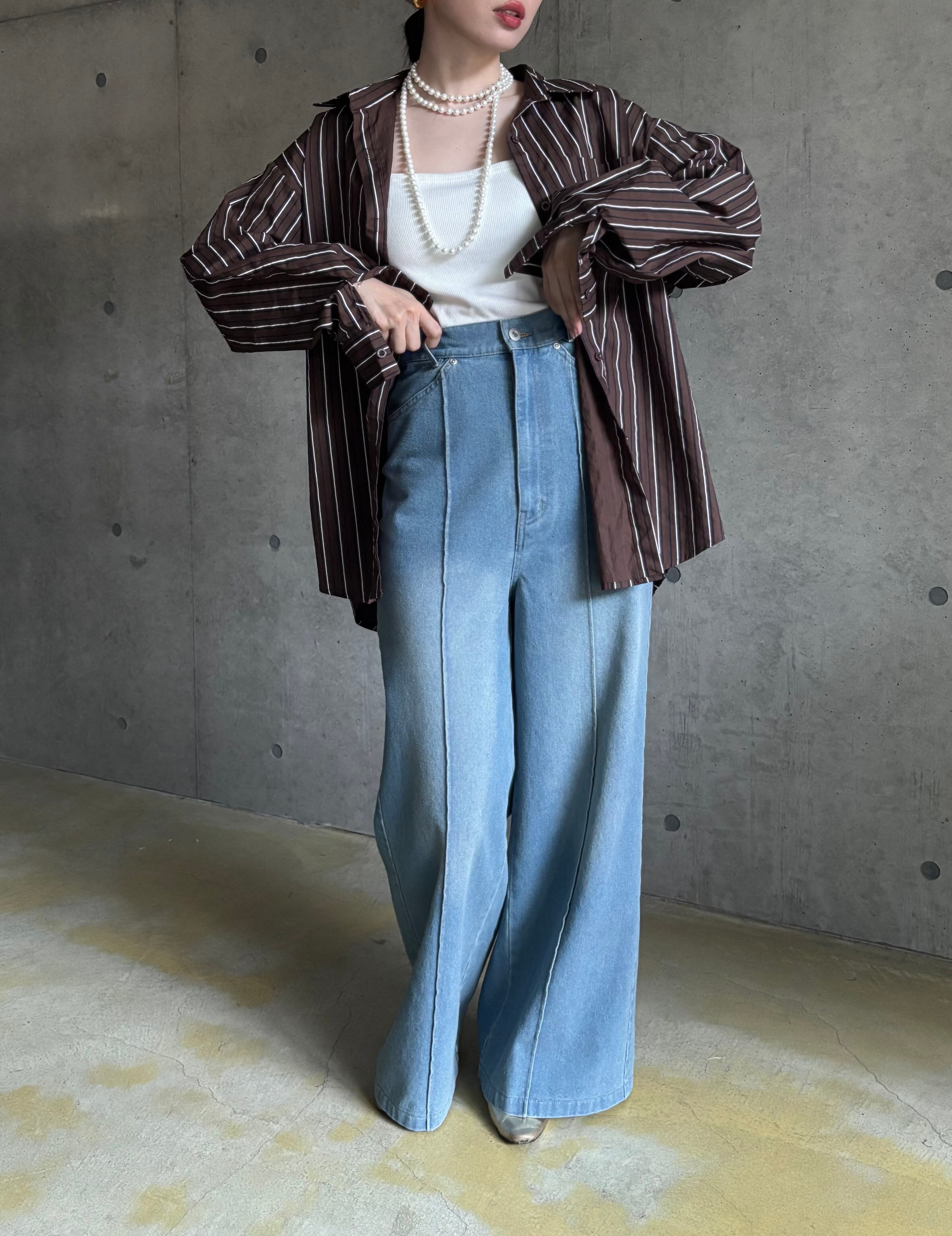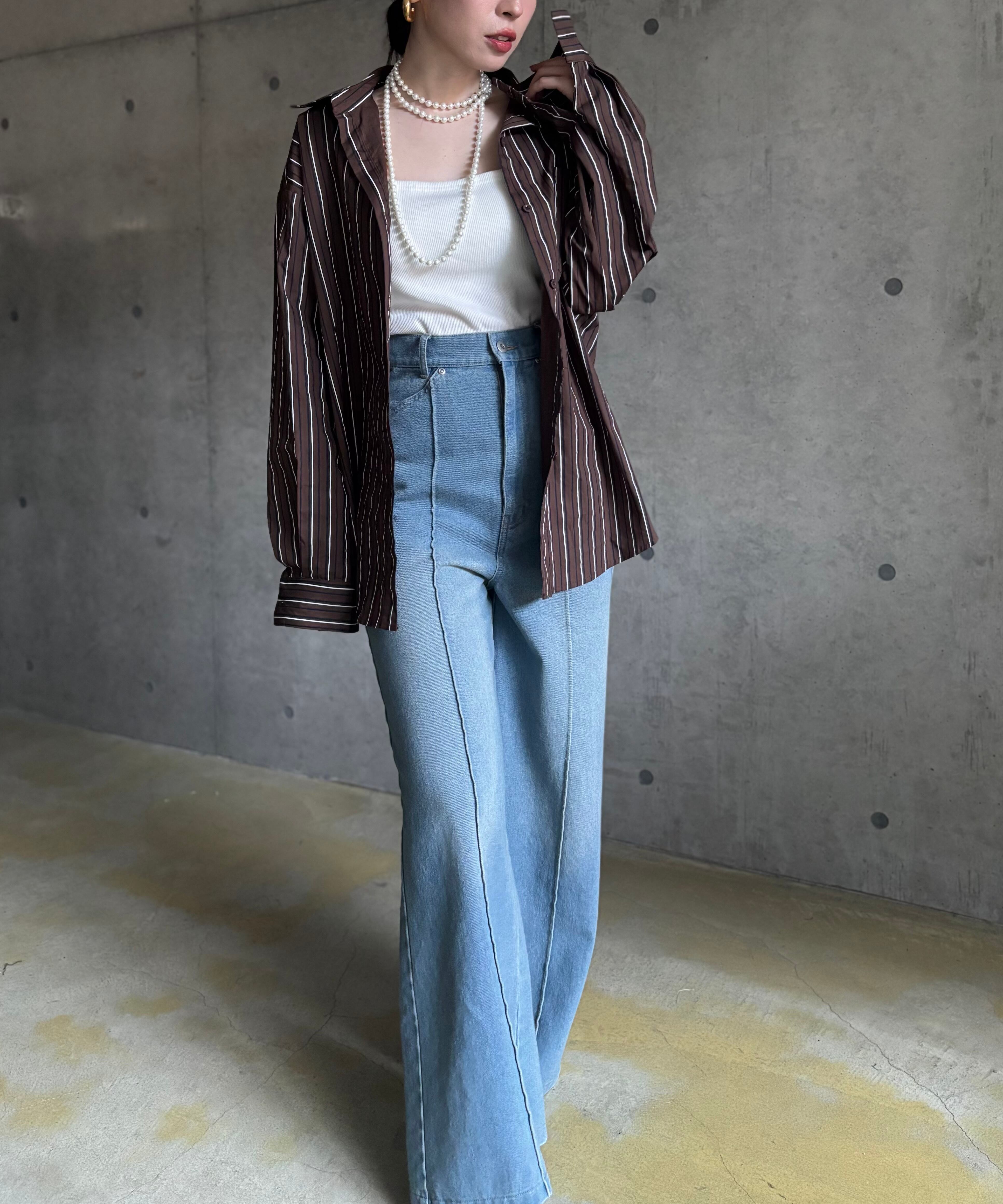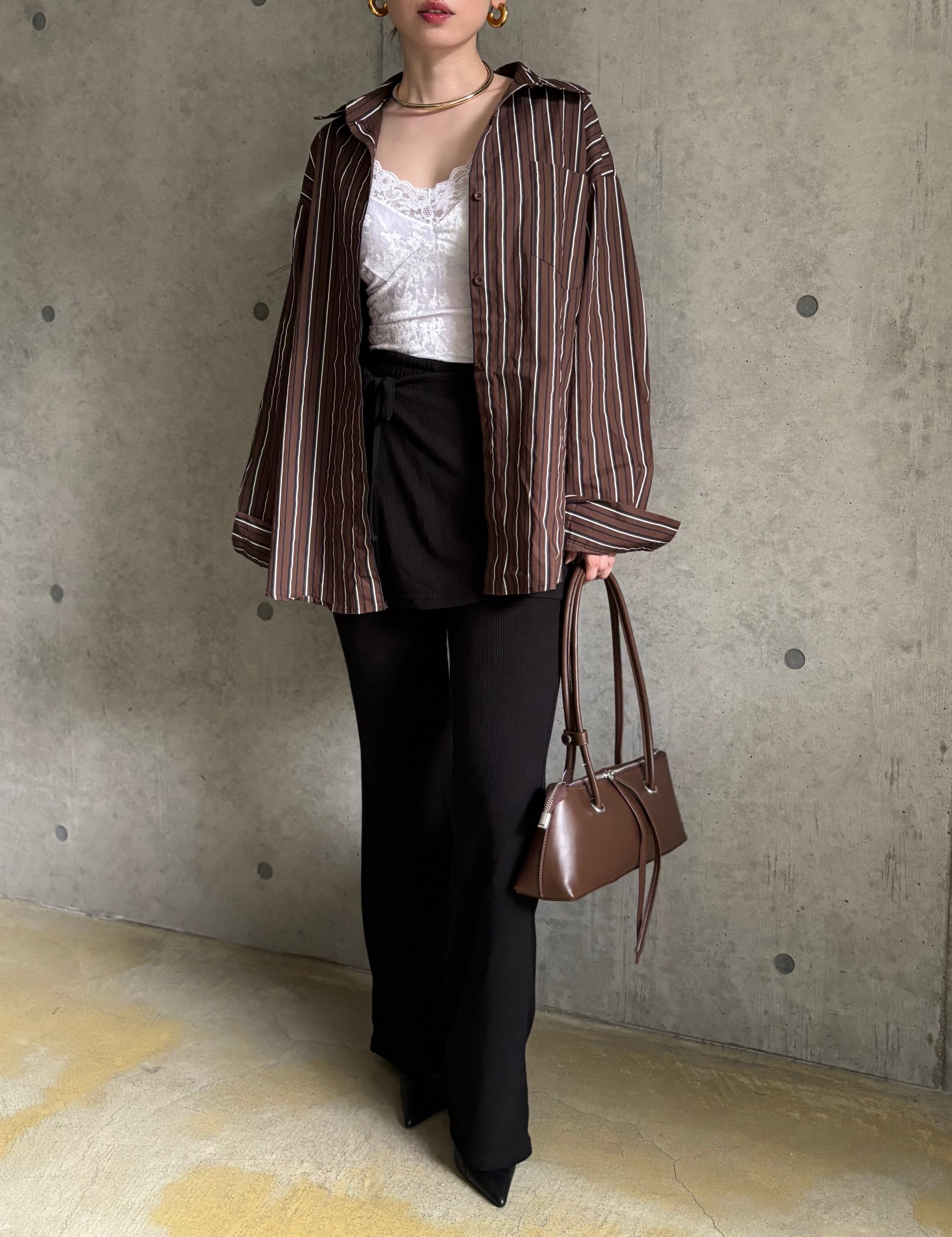 一見ナチュラルに見えるストライプシャツも、カチッとしたアイテムと合わせるとモードカジュアルな雰囲気に✨