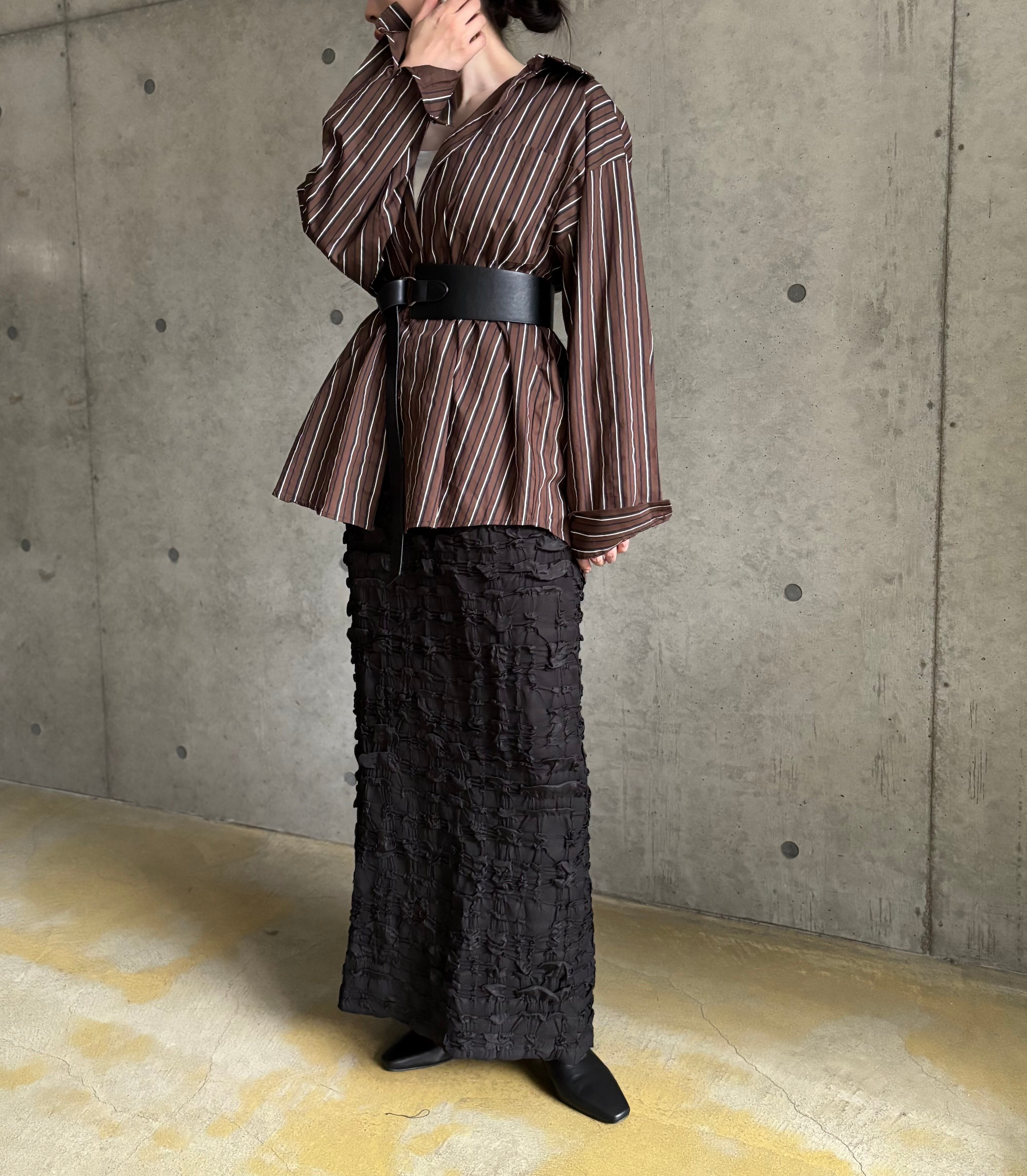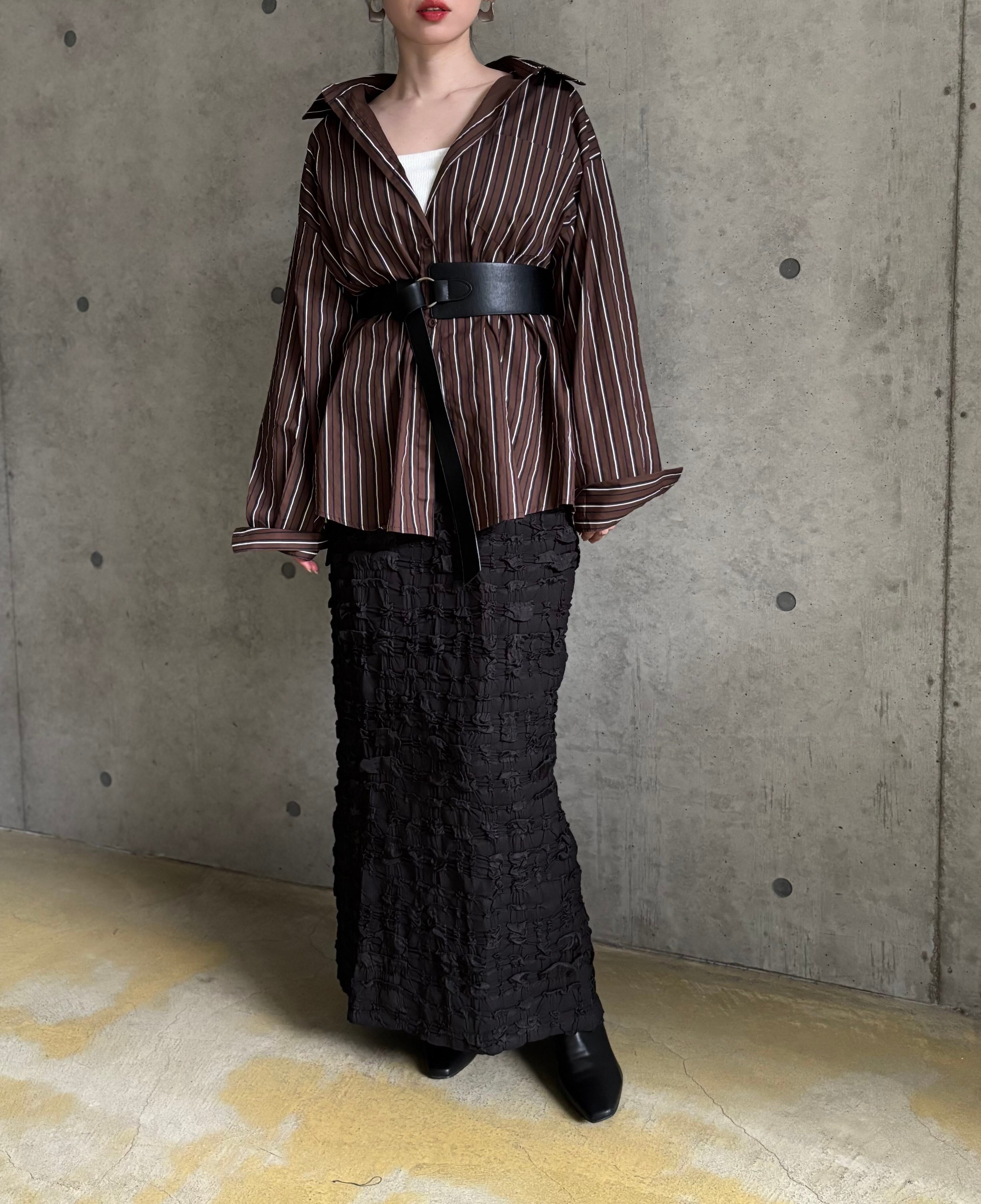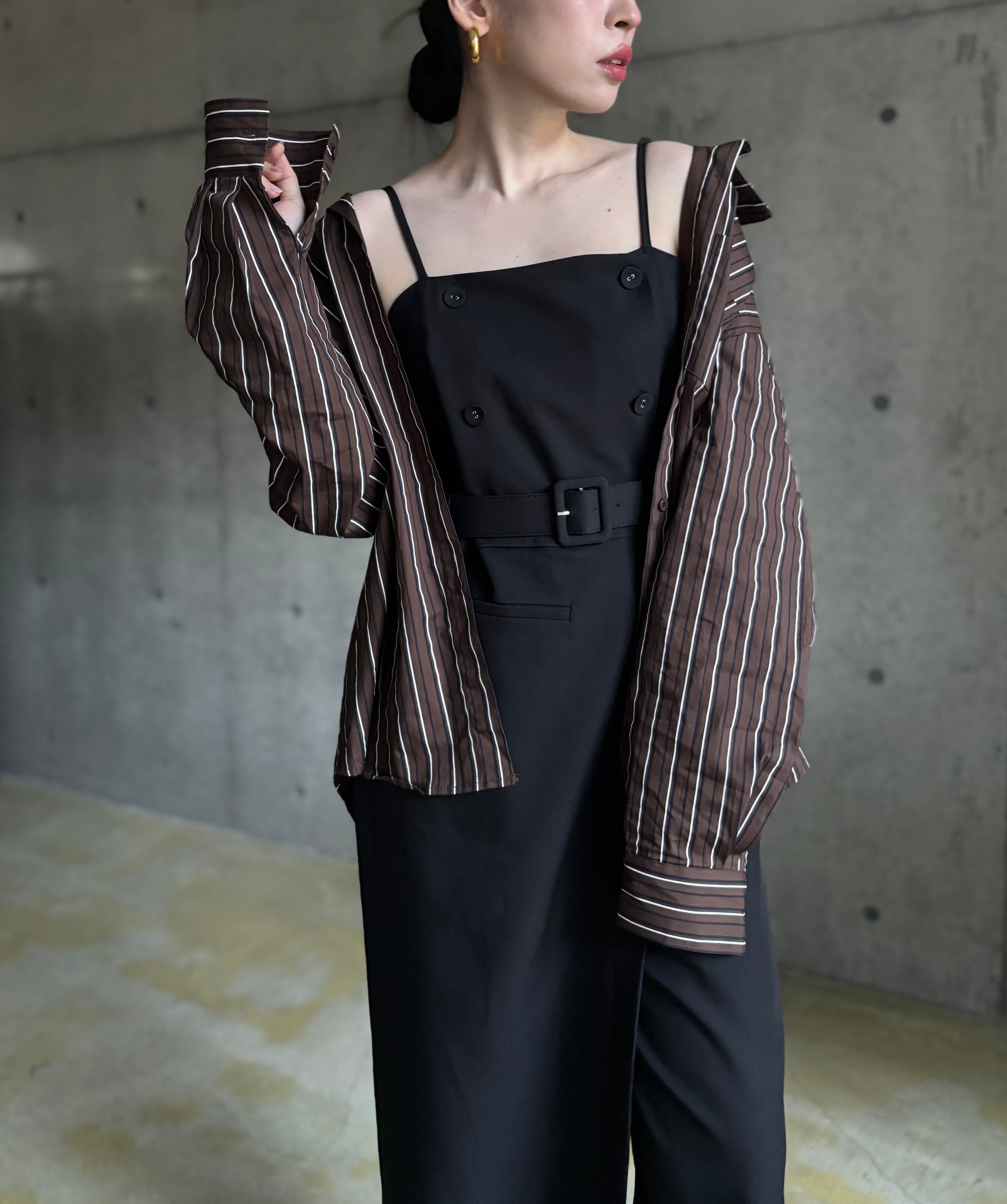 一見ナチュラルに見えるストライプシャツも、カチッとしたアイテムと合わせるとモードカジュアルな雰囲気に✨