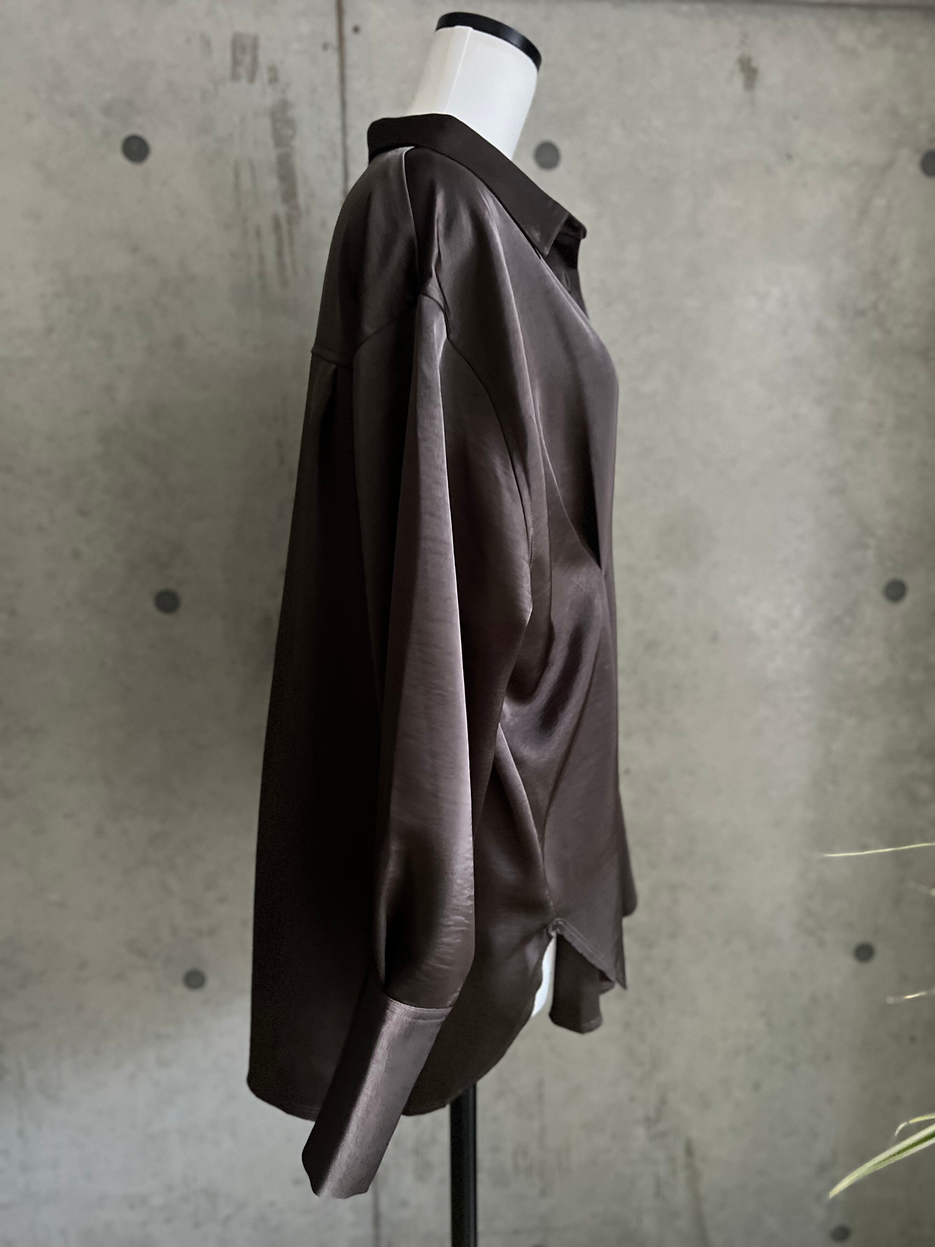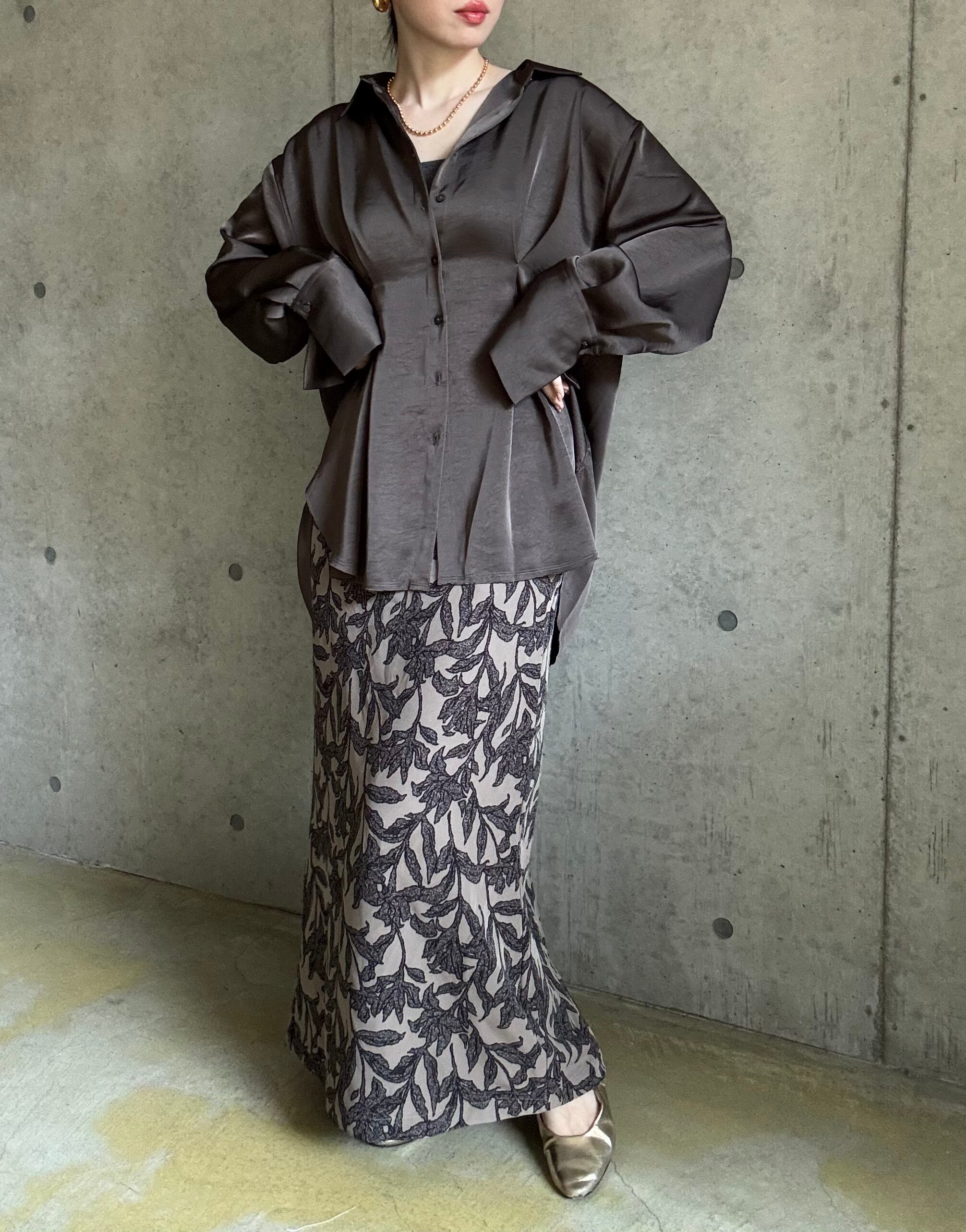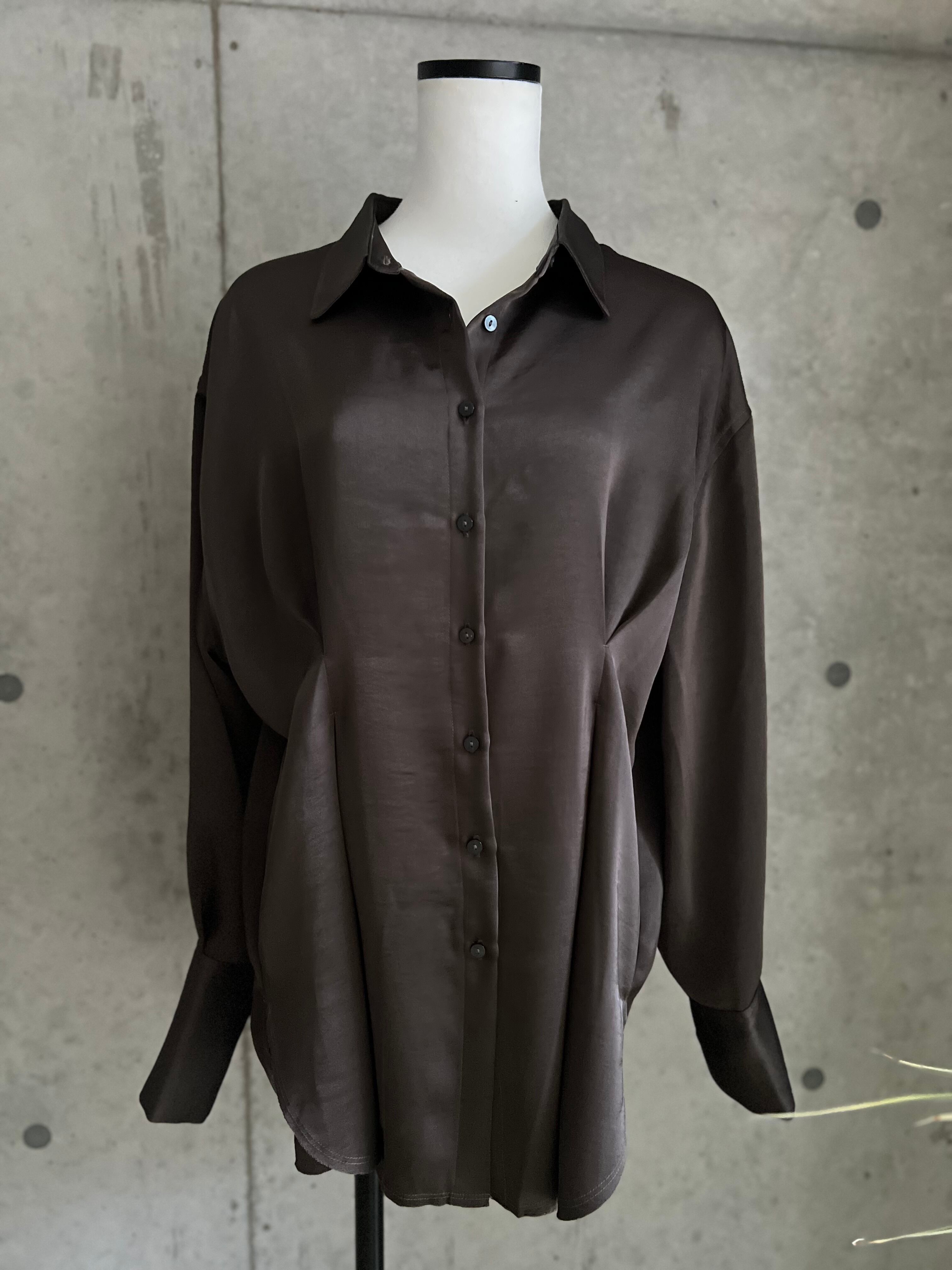 【即納】マットサテンウエストタックオーバーシャツ【チャコール】
