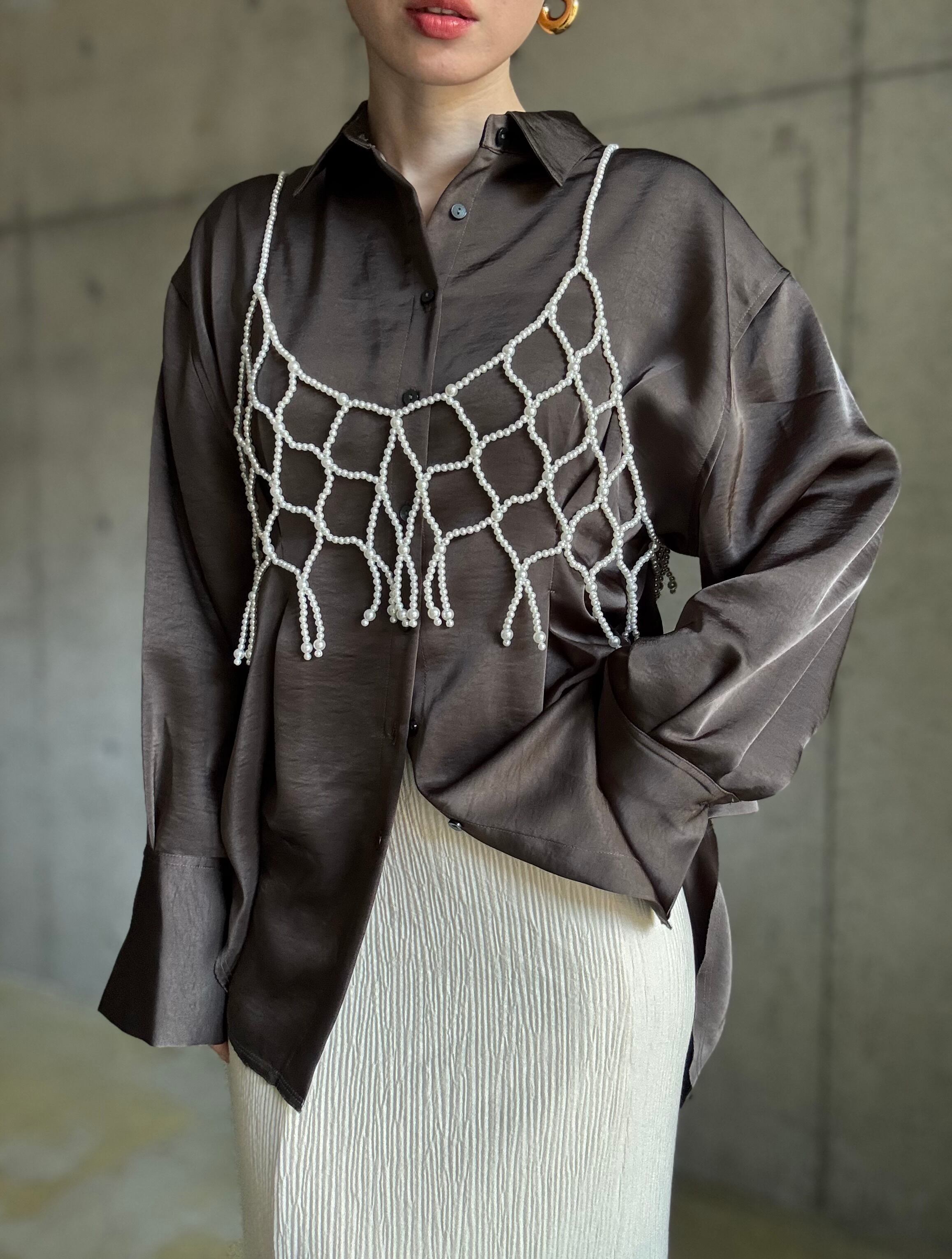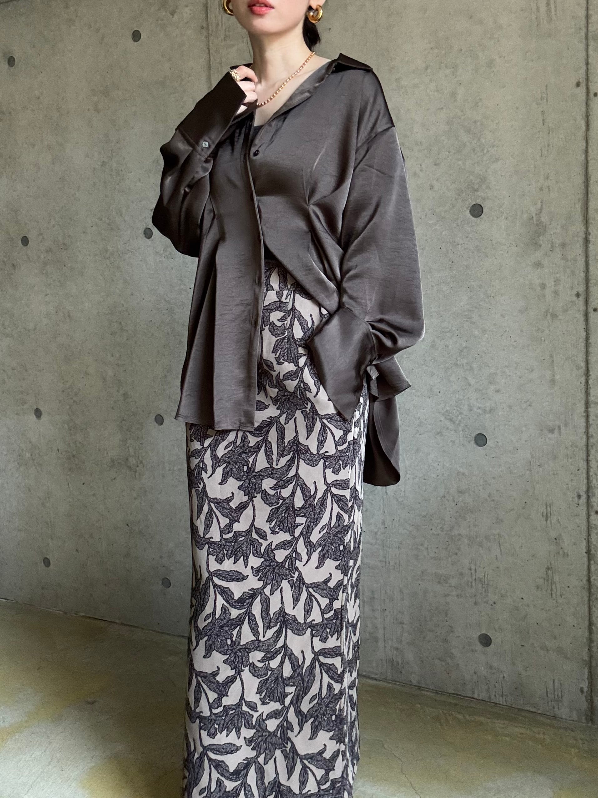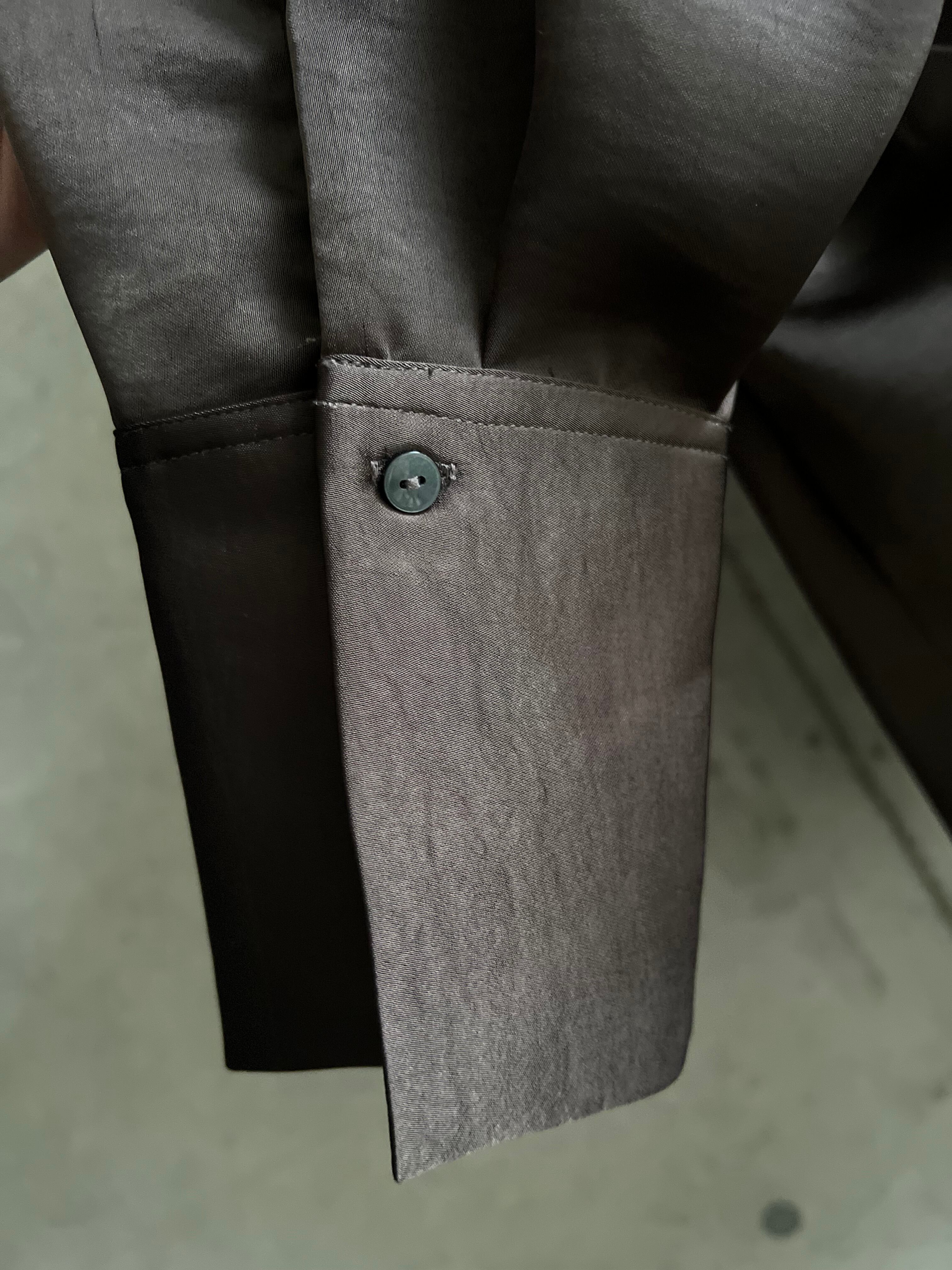 【即納】マットサテンウエストタックオーバーシャツ【チャコール】