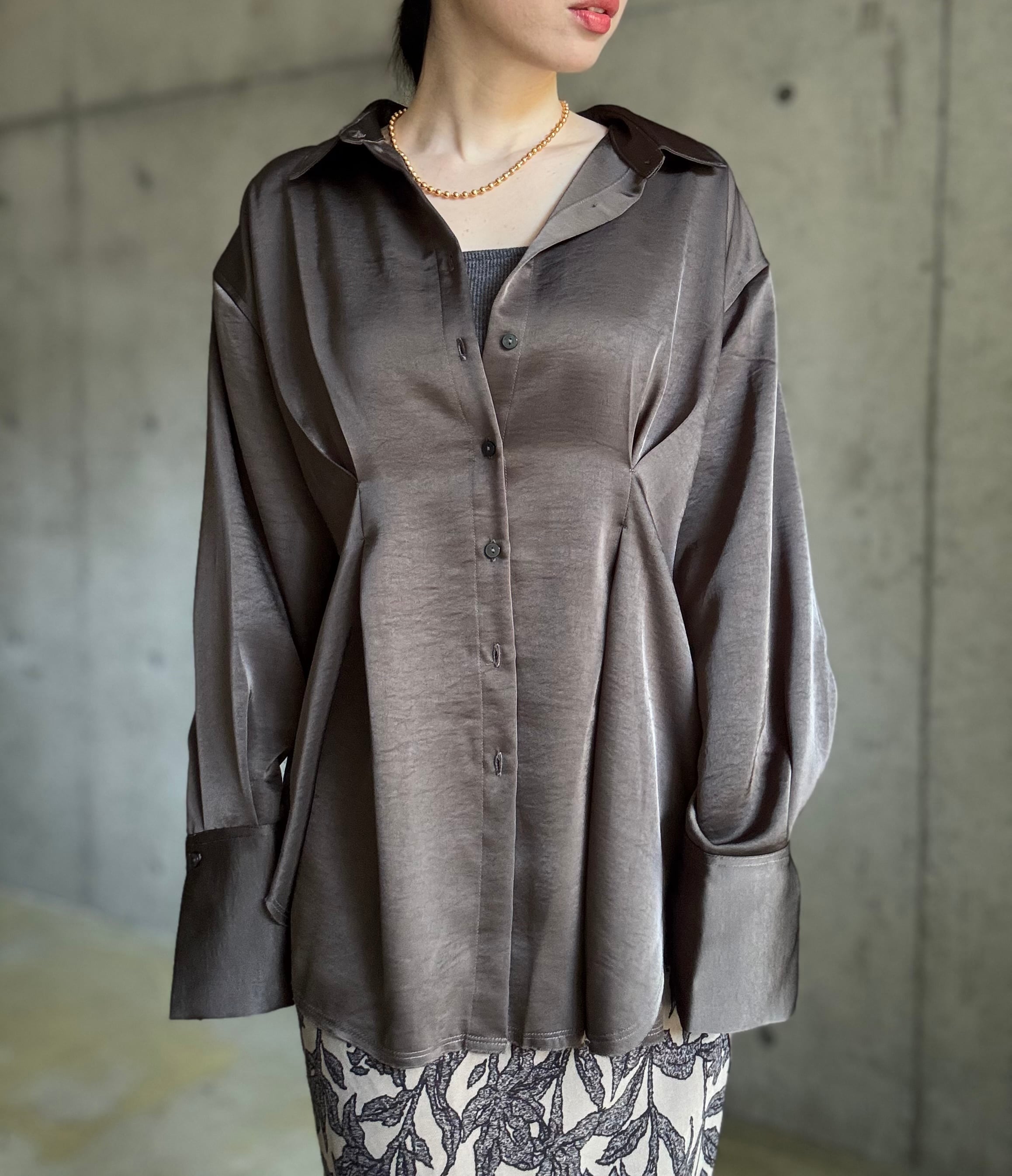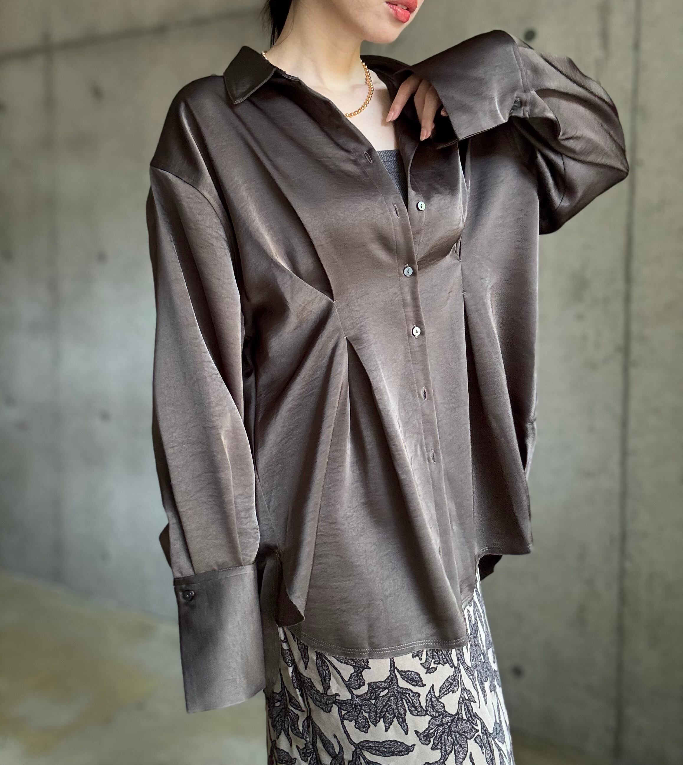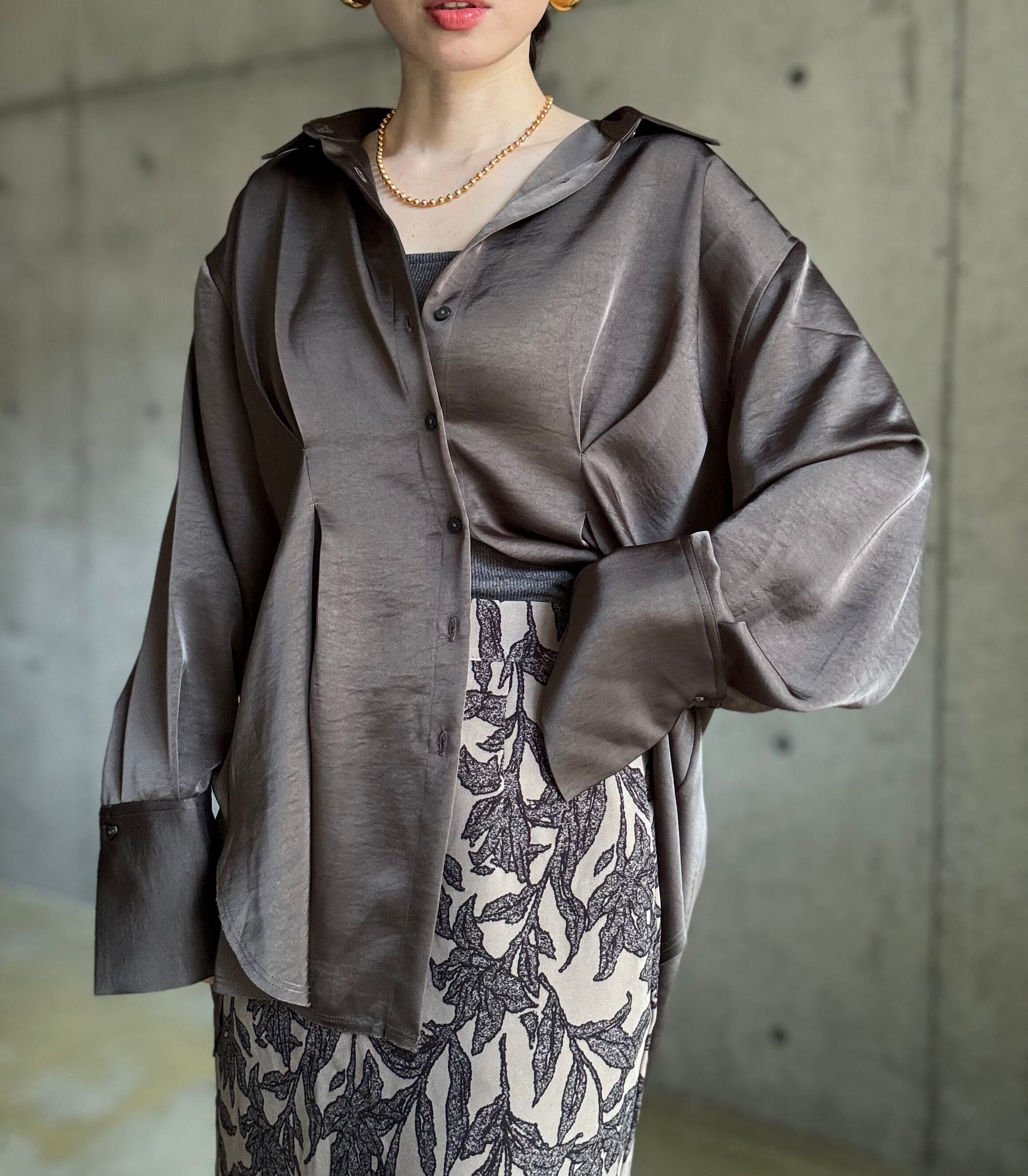程良い光沢感のマットサテン生地を使用した、ウエストタックデザインのオーバーシャツ✨