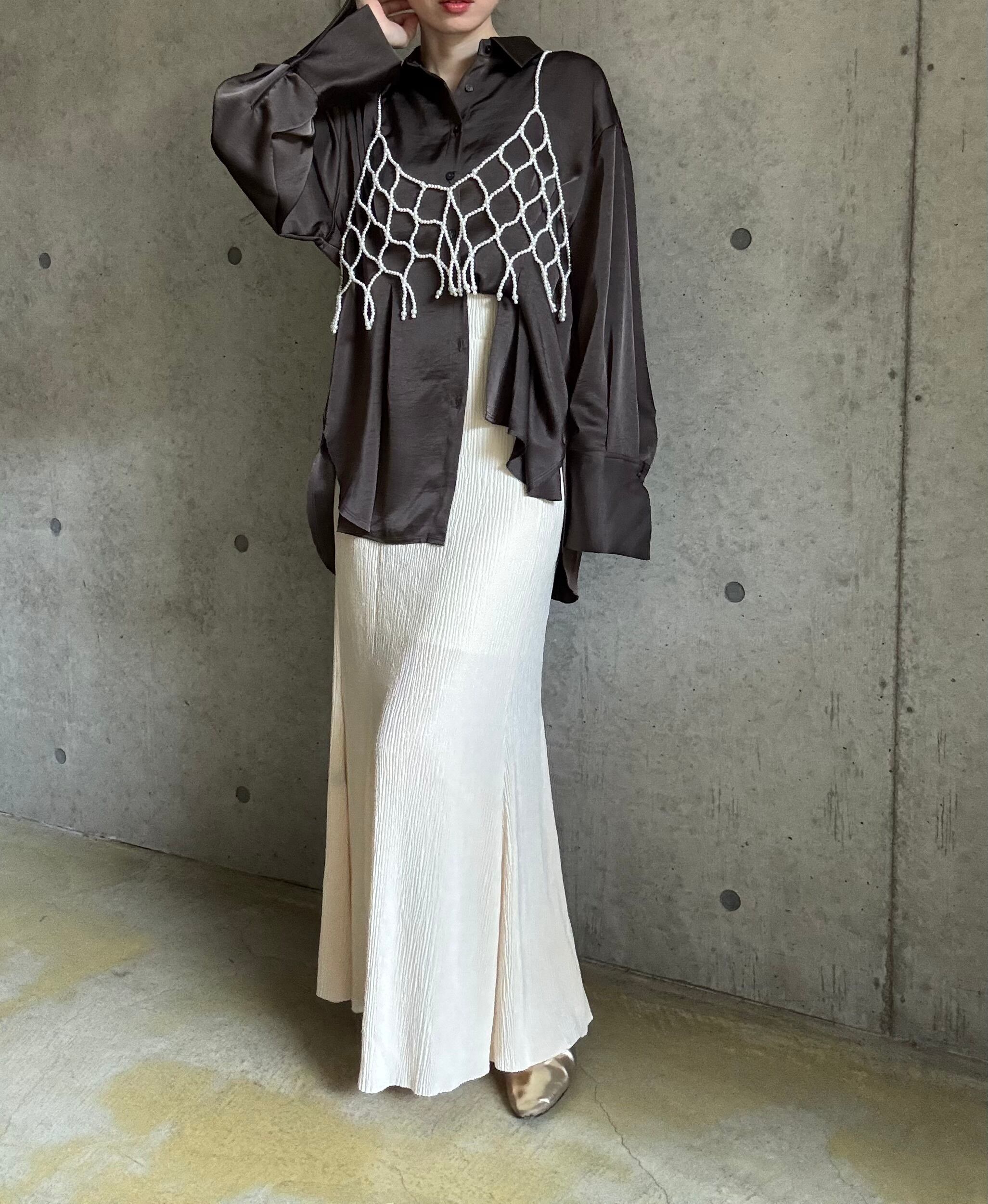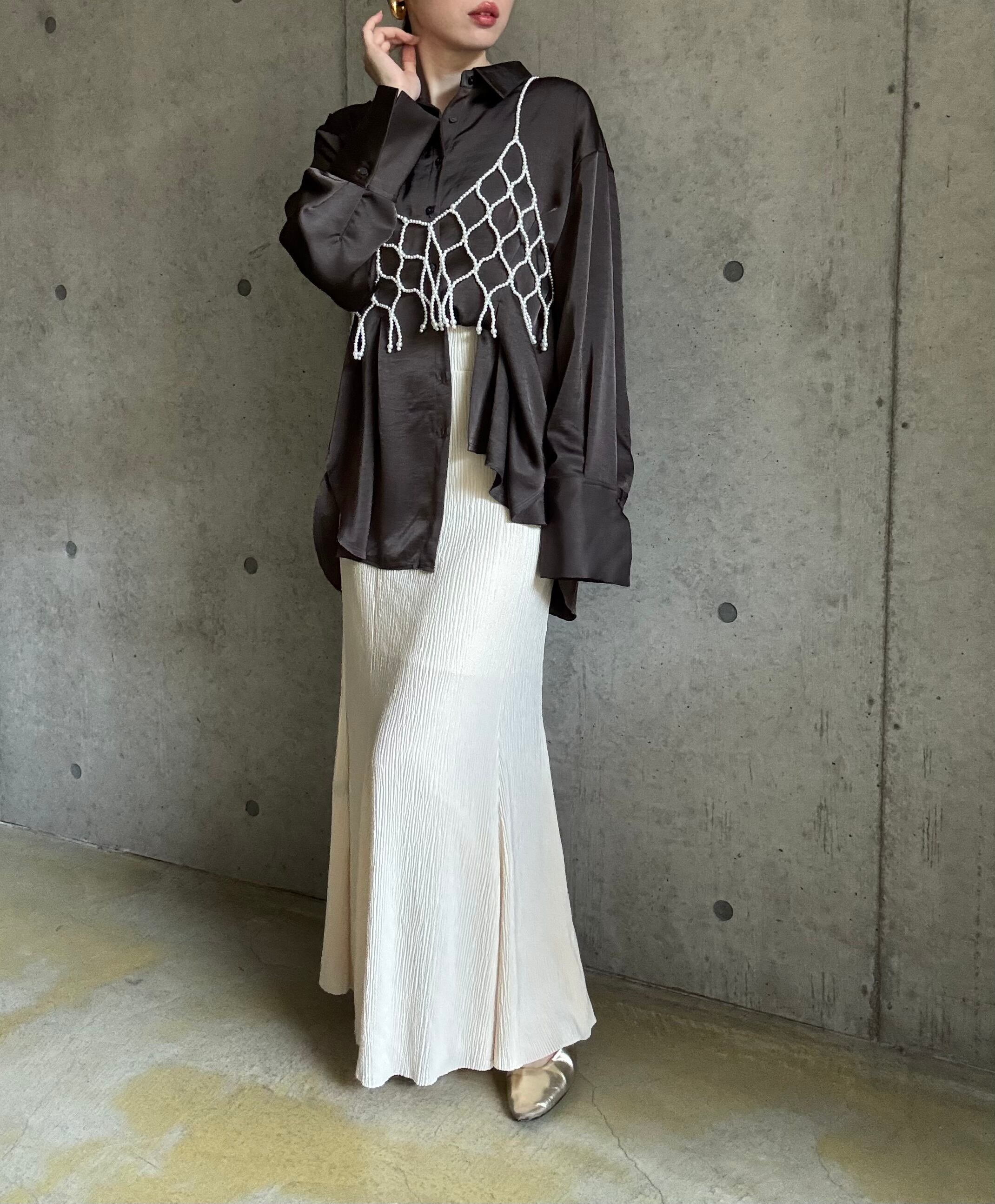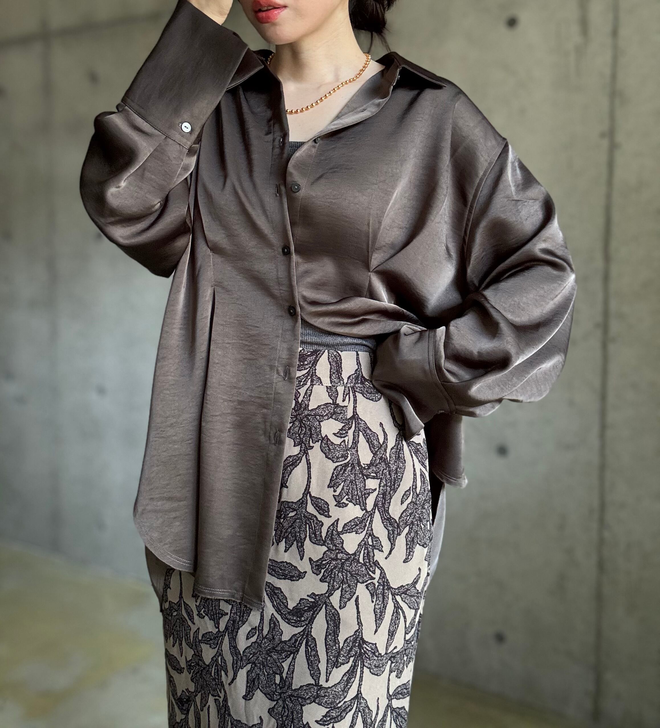 程良い光沢感のマットサテン生地を使用した、ウエストタックデザインのオーバーシャツ✨