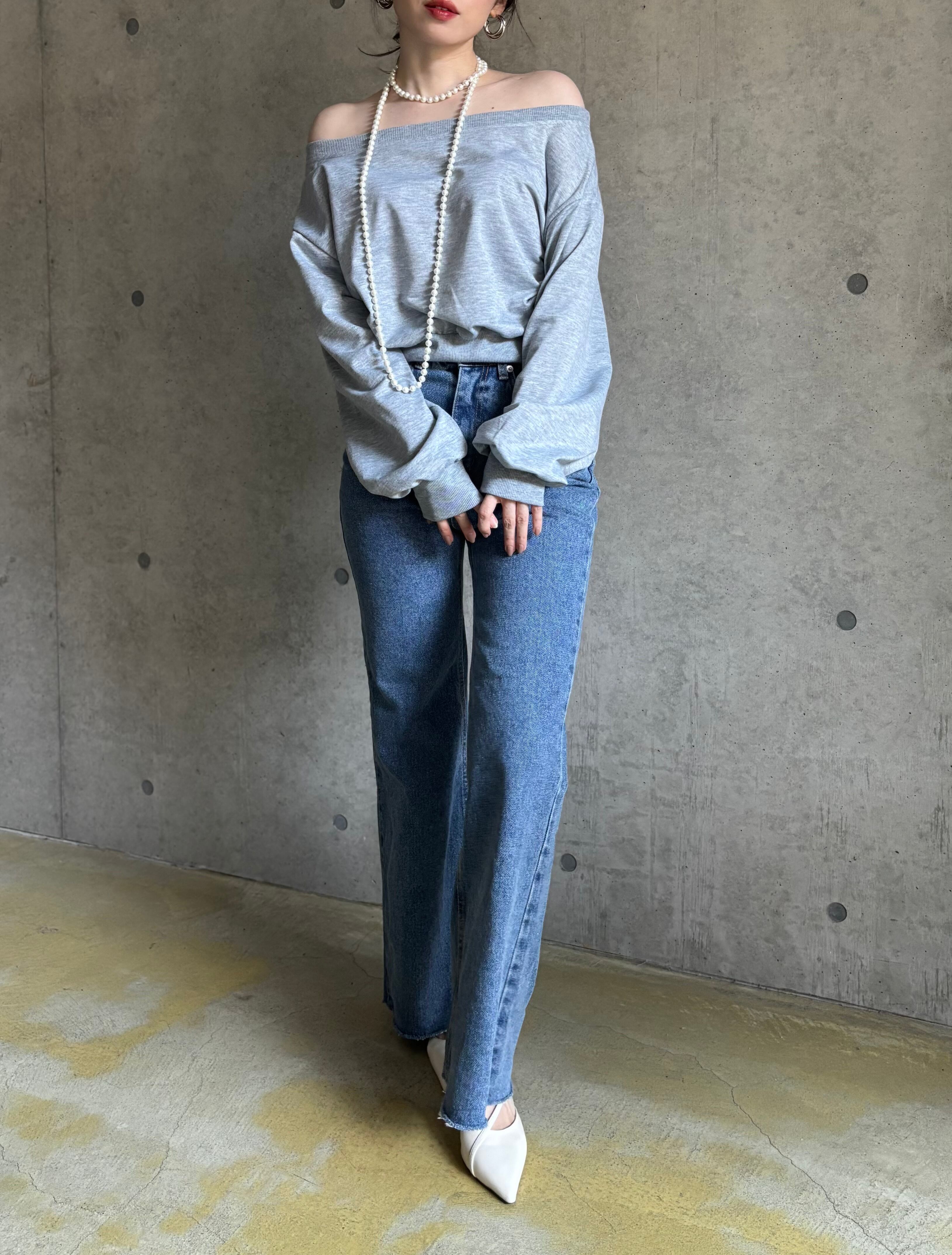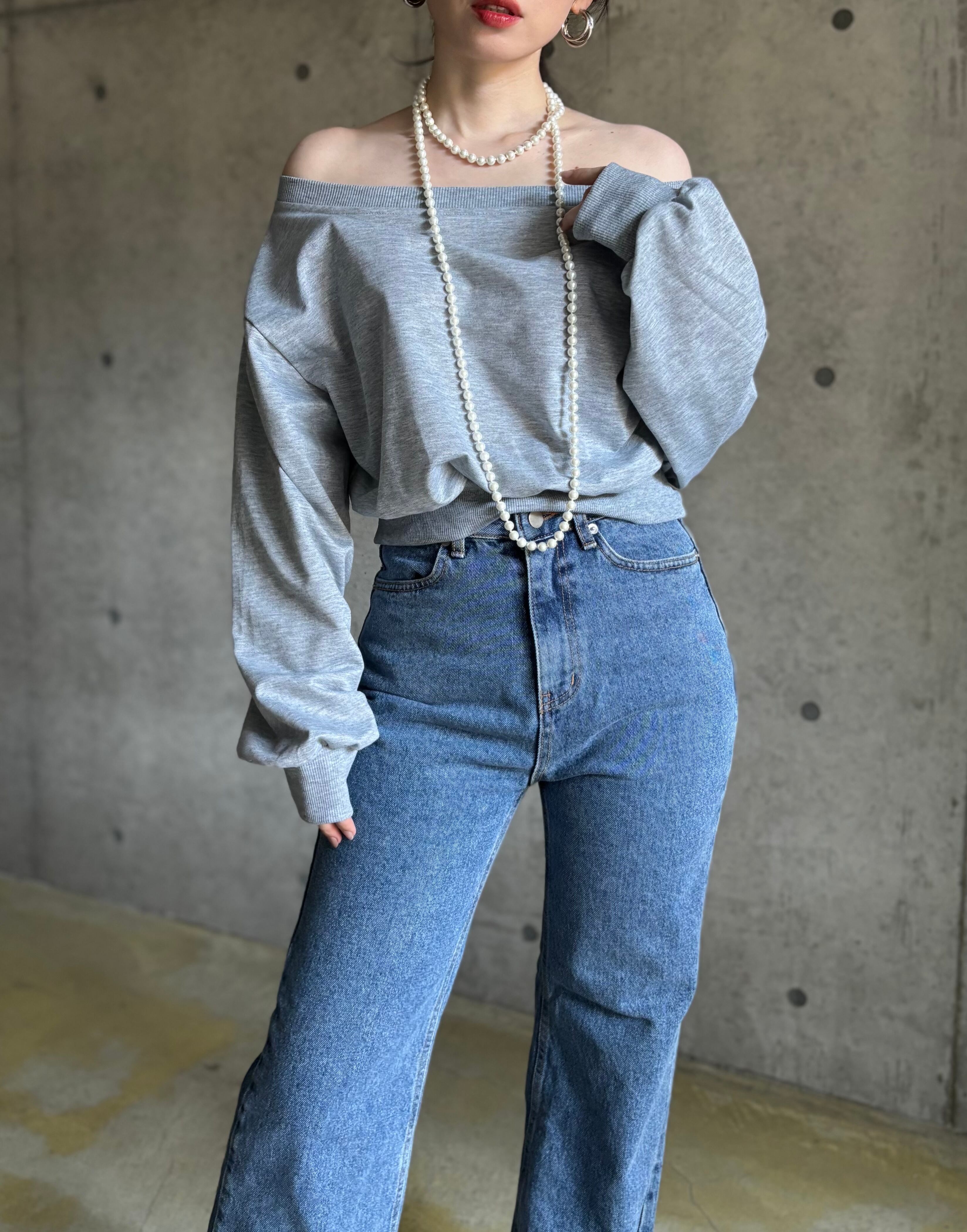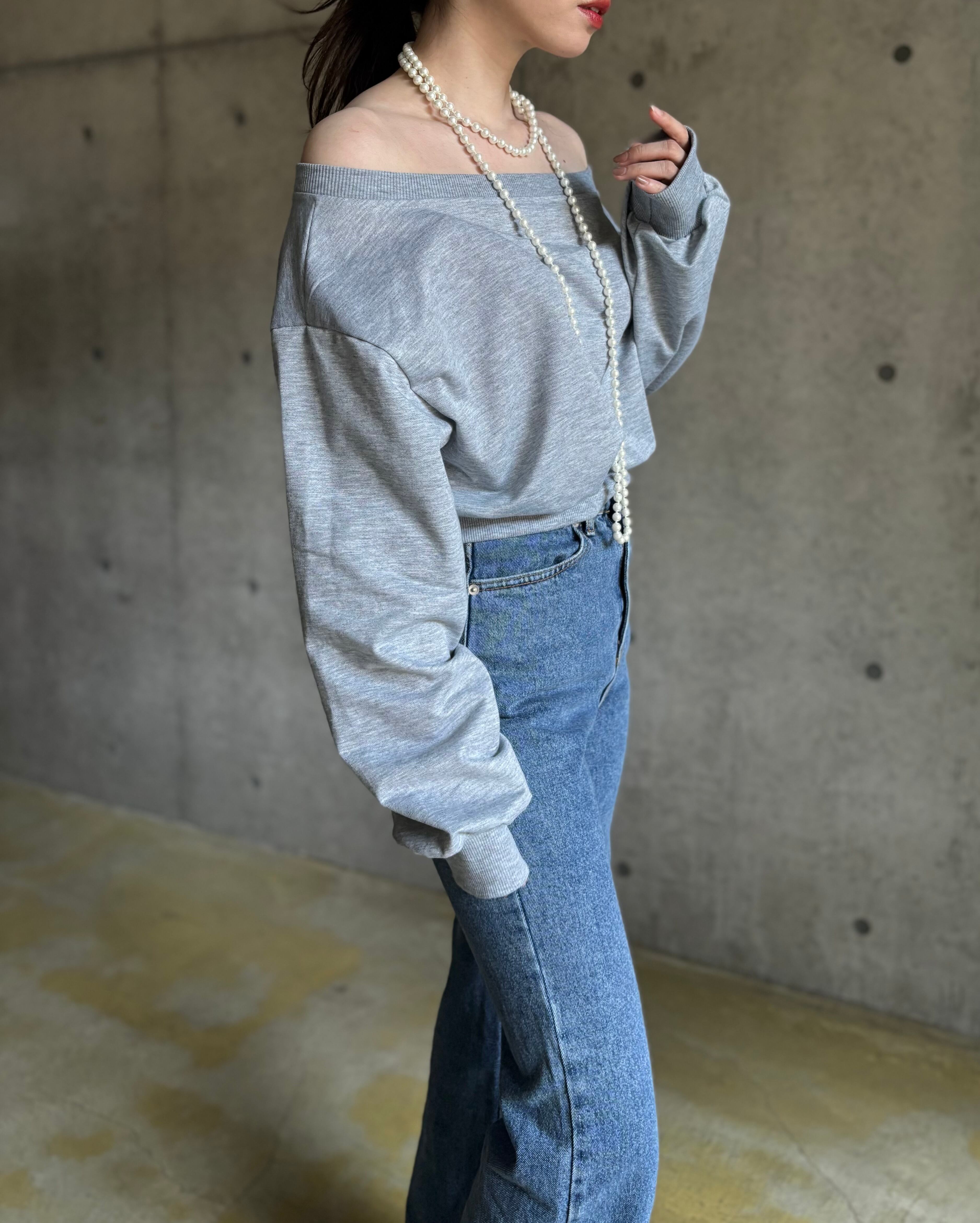 とっても軽く季節の変わり目にちょうど良い♪オフショルデザインロンT✨