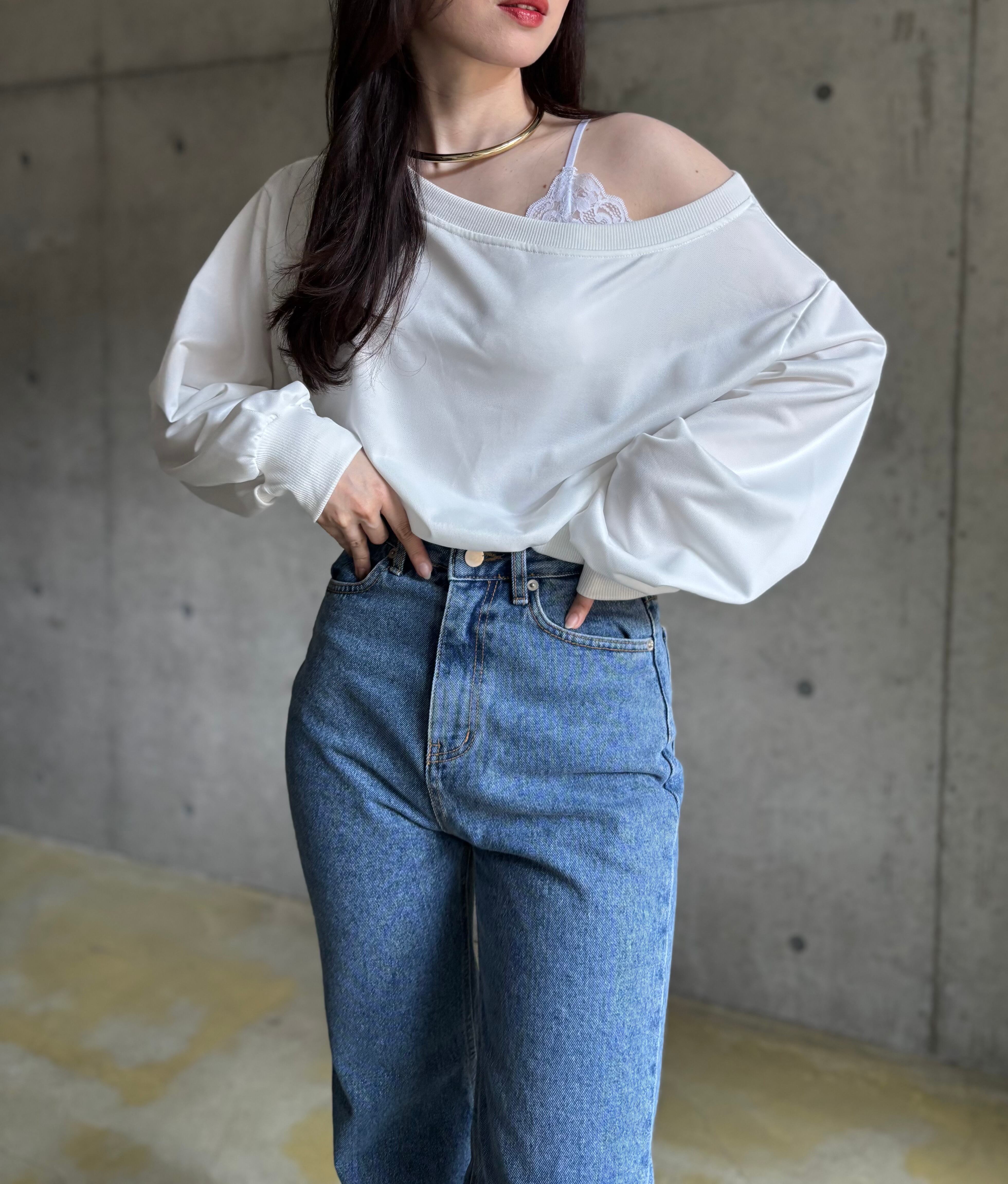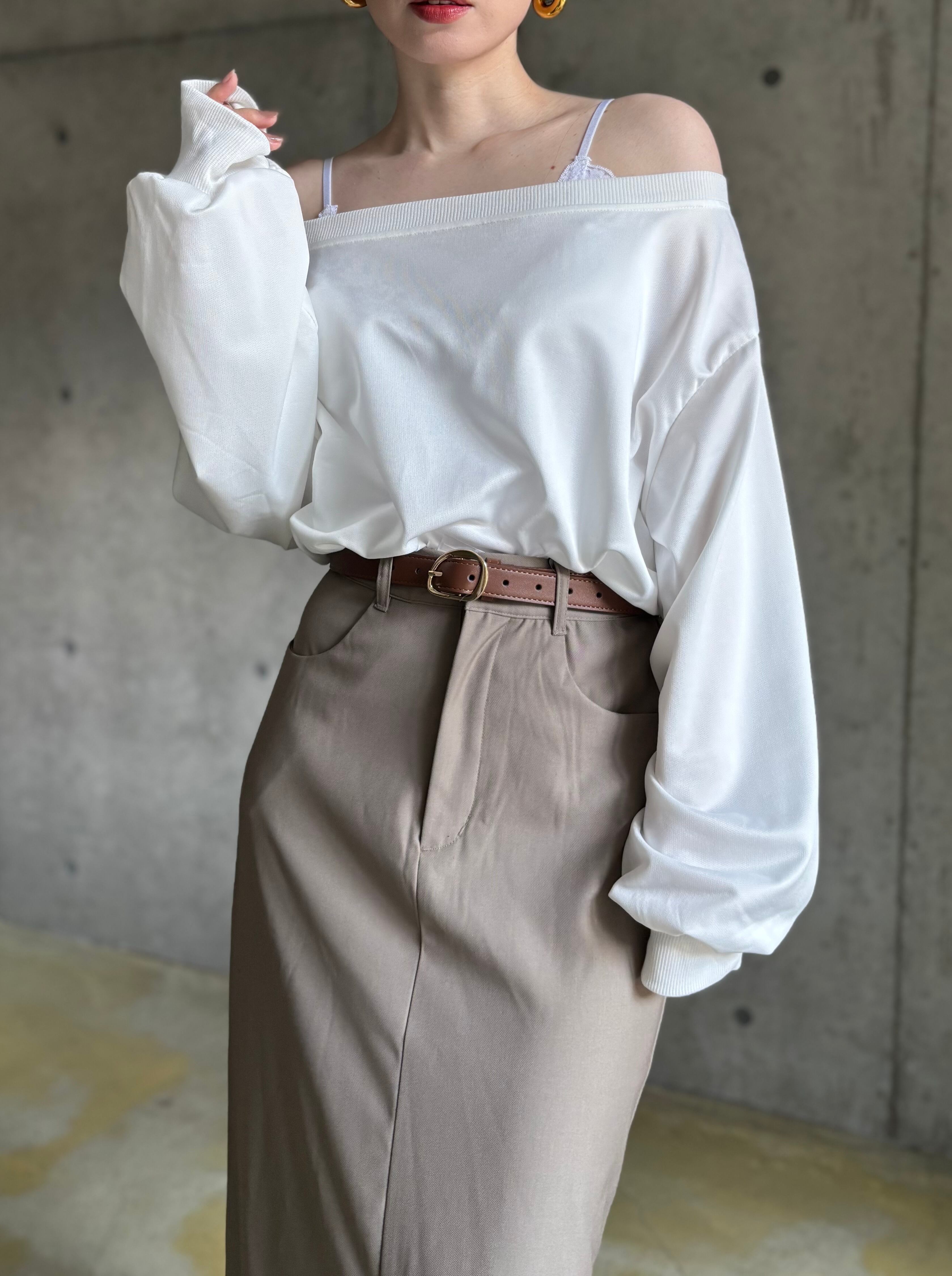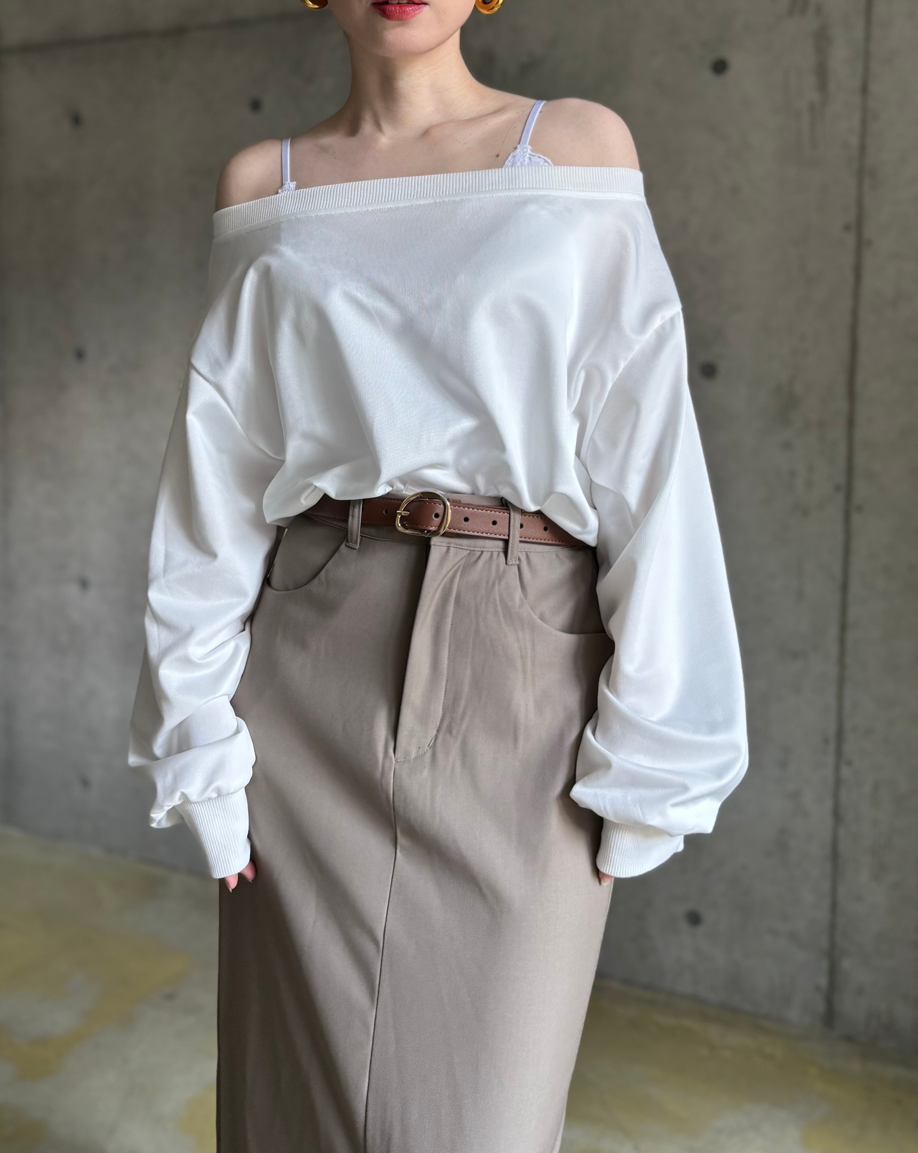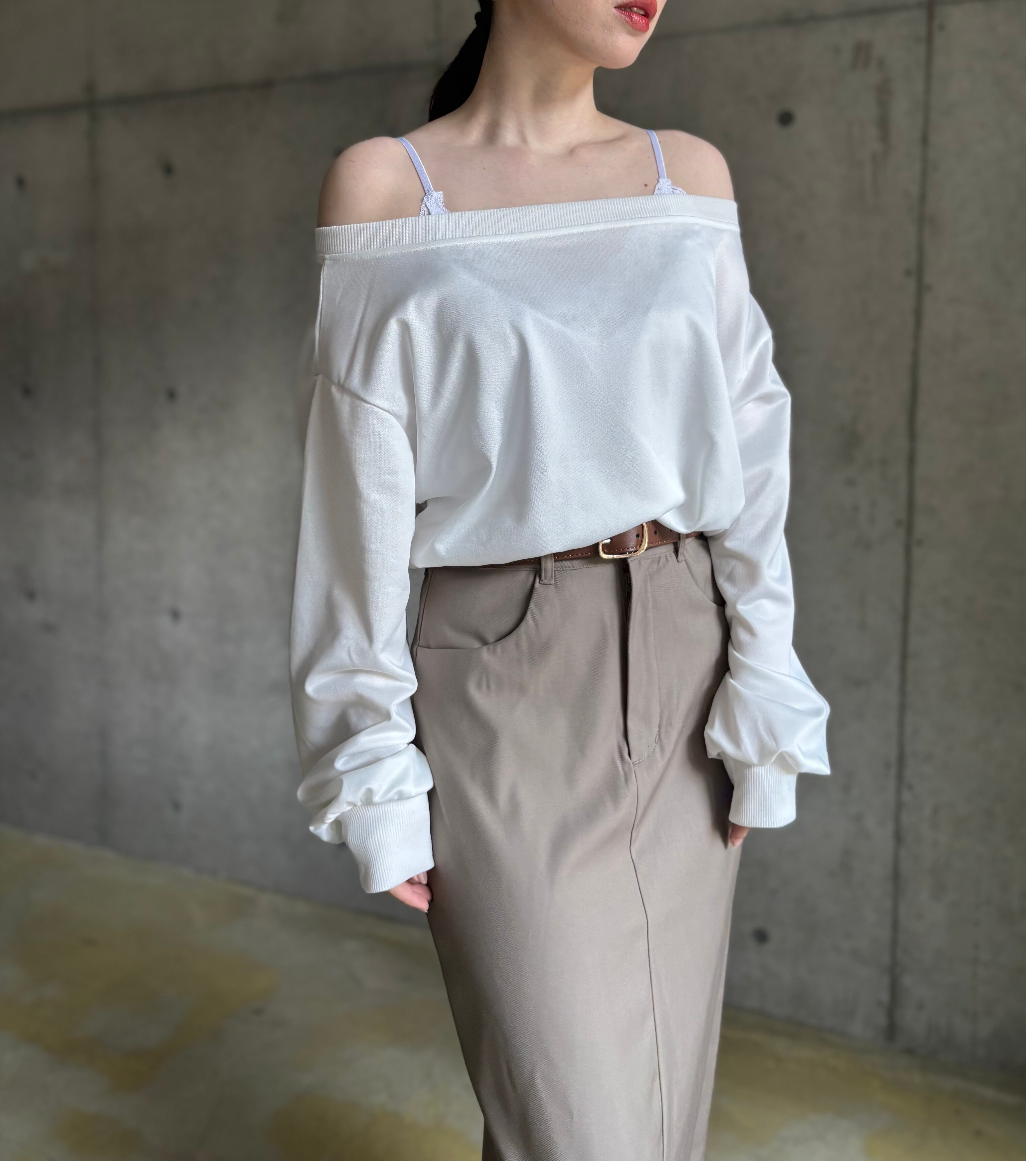 オフショルデザインロンT【ホワイト】