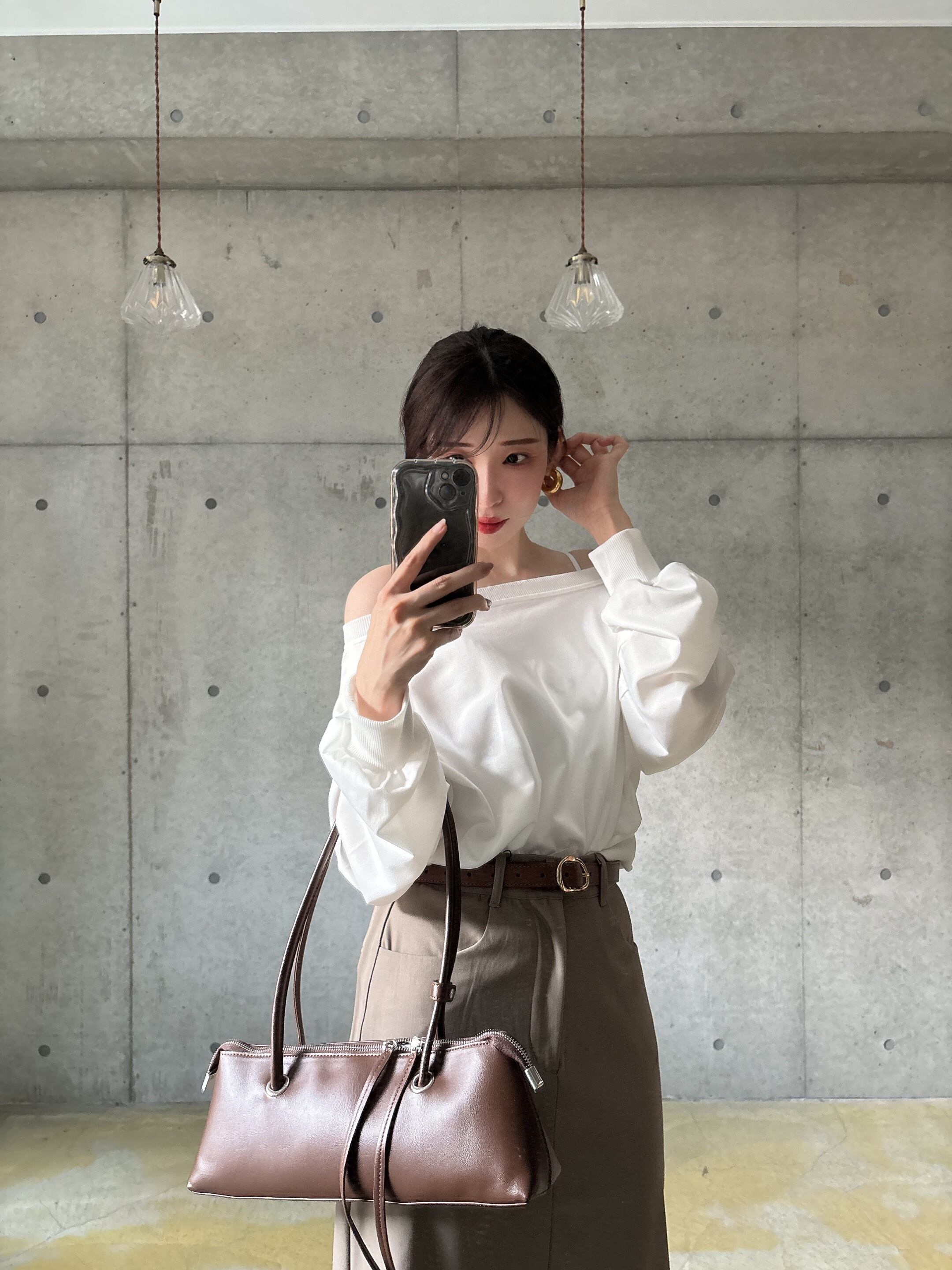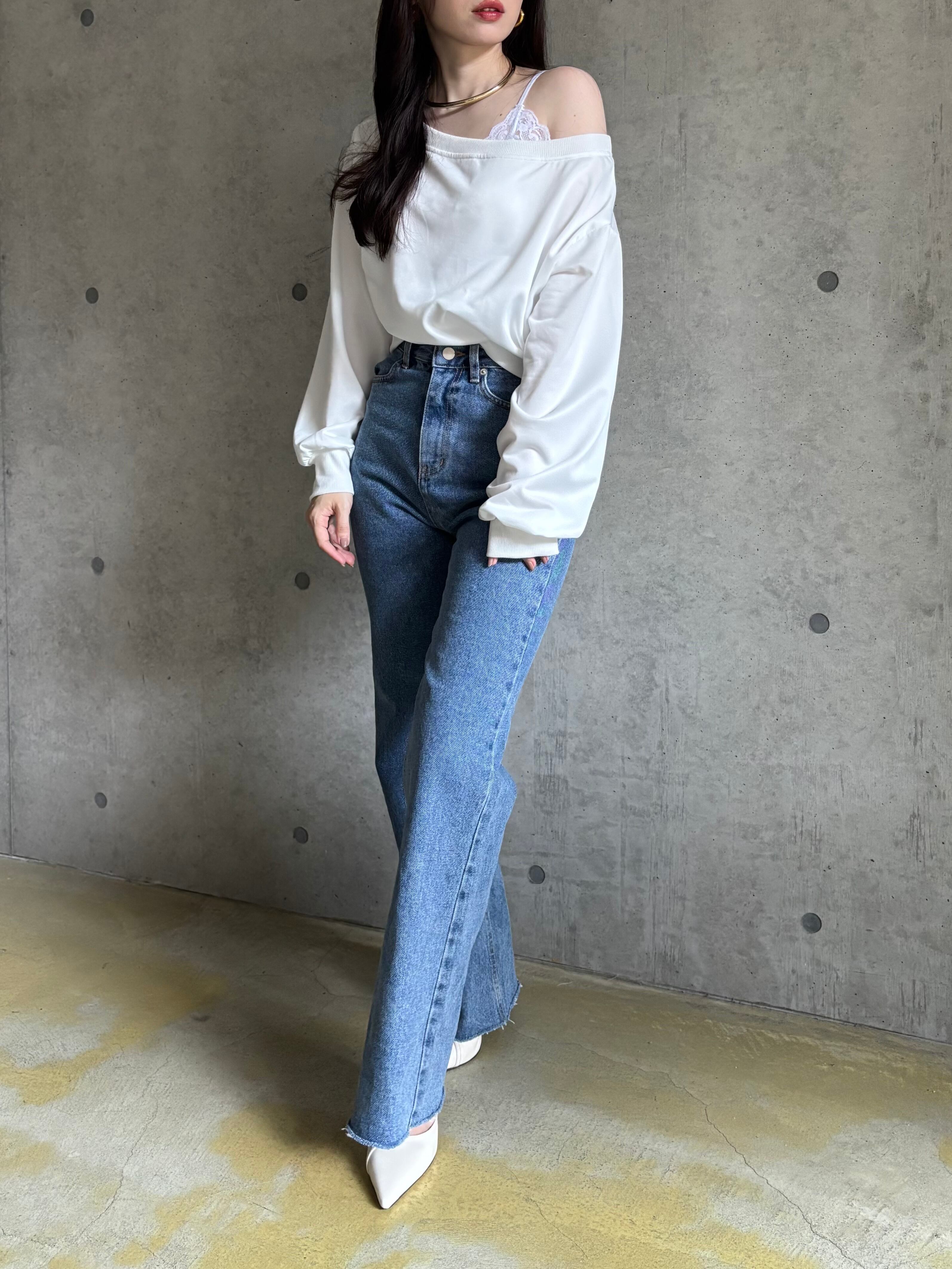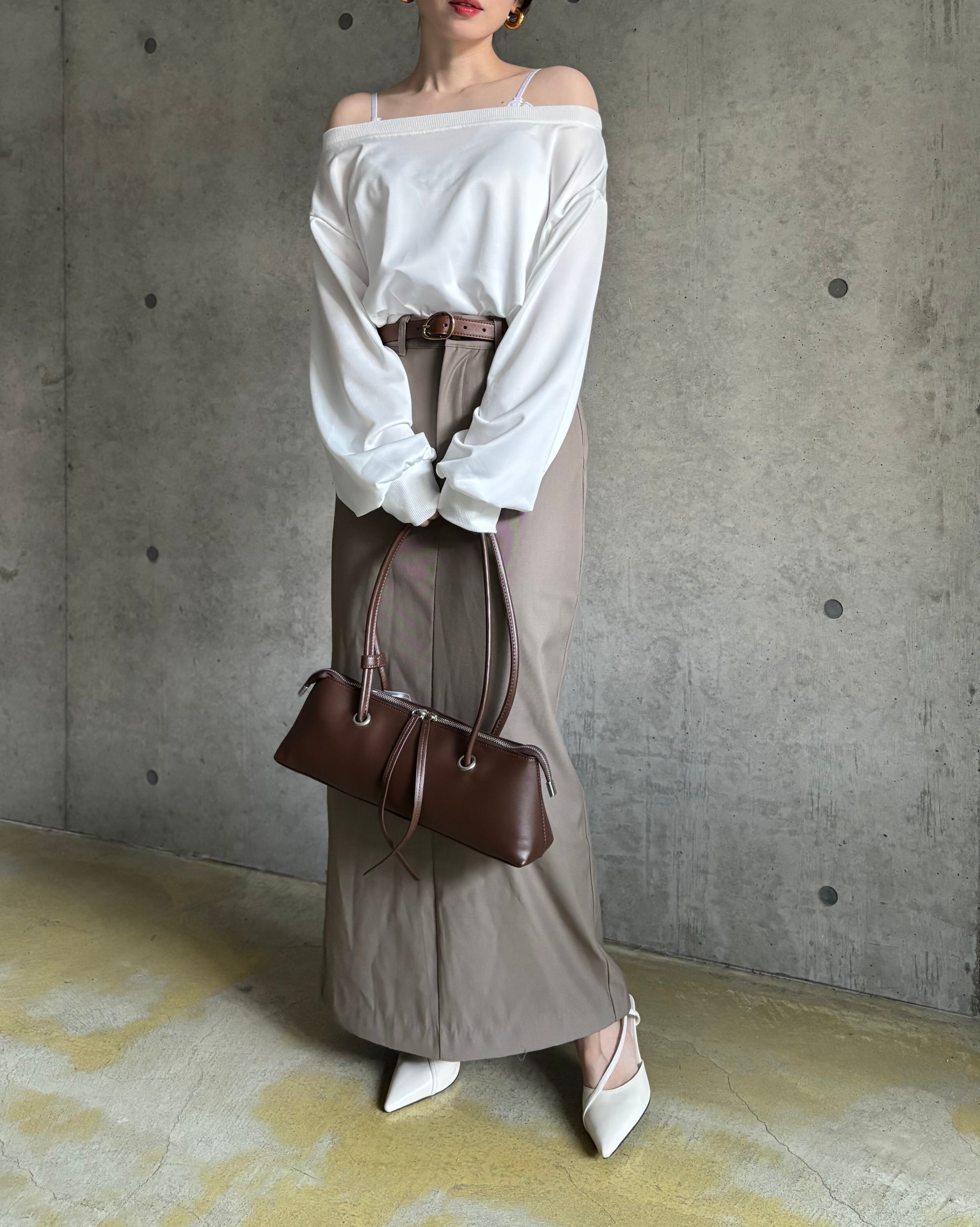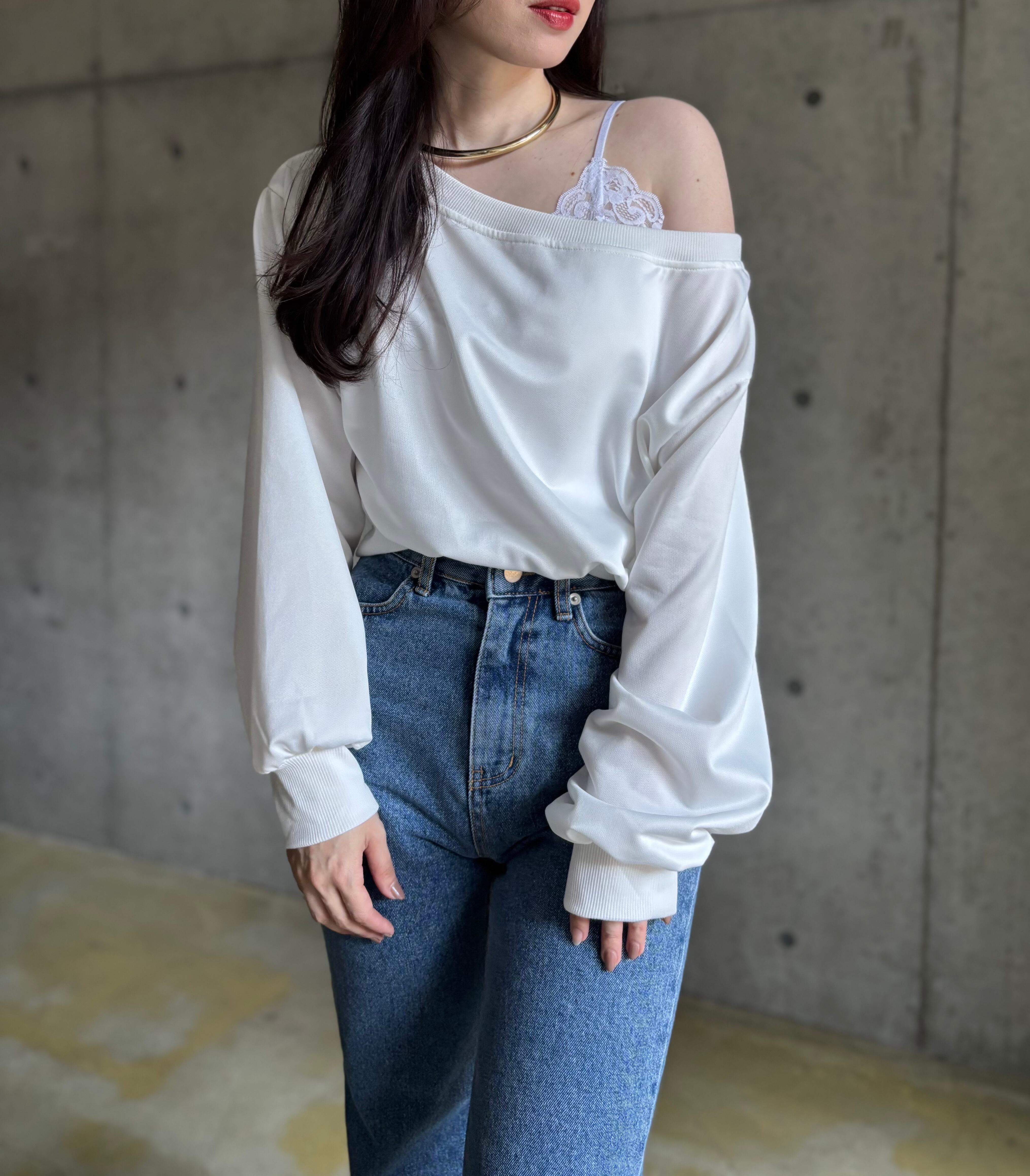 オフショルデザインロンT【ホワイト】