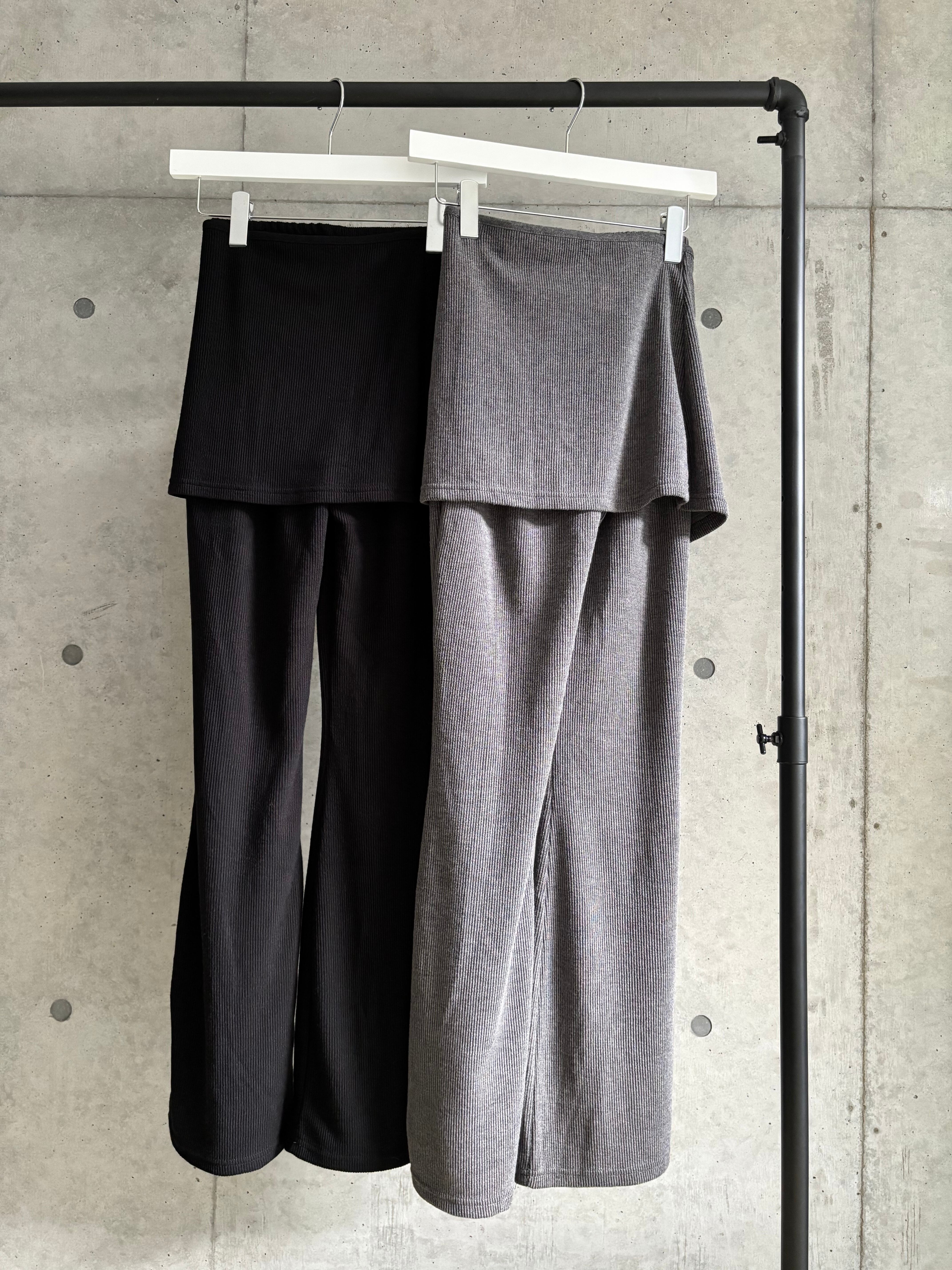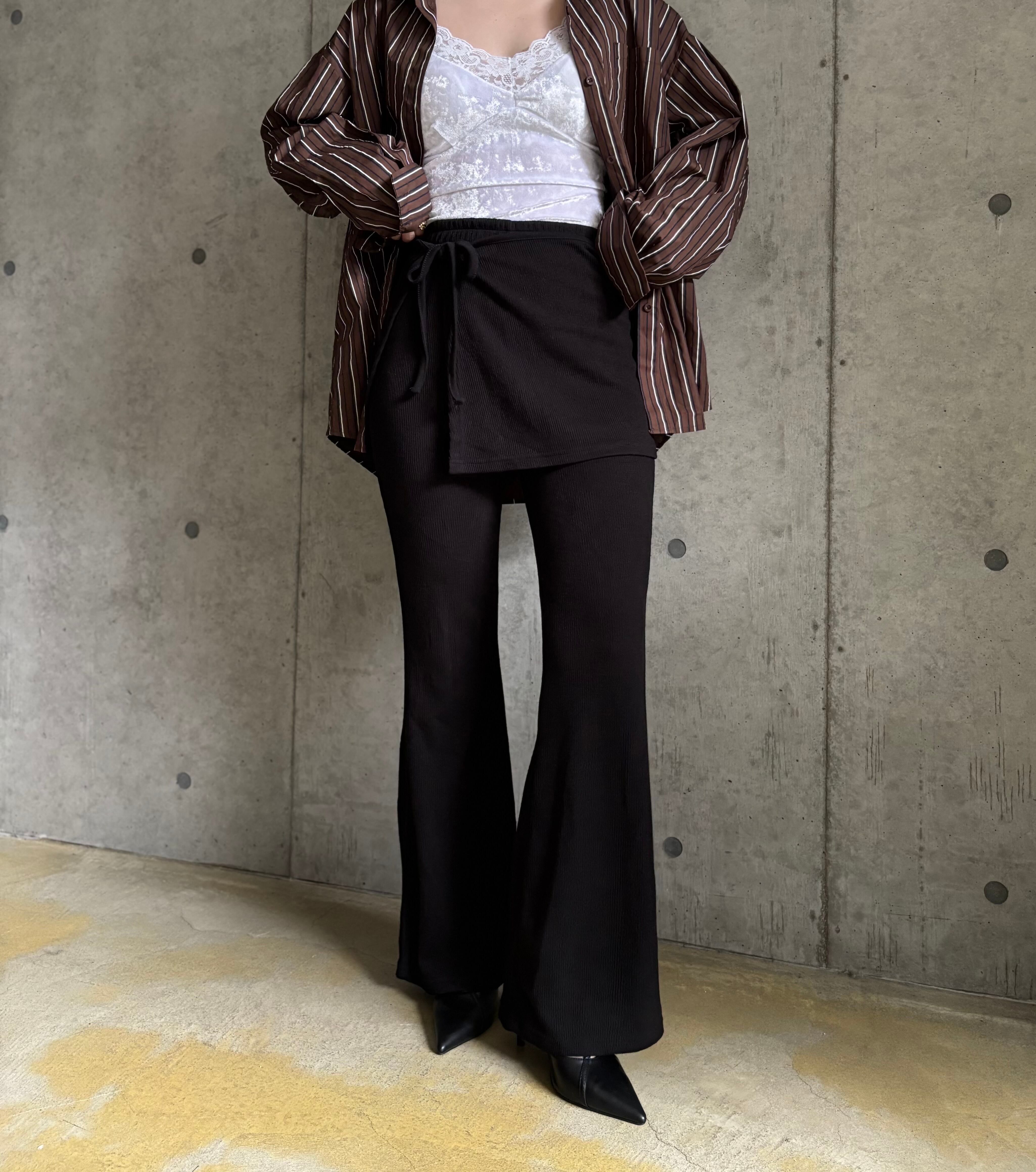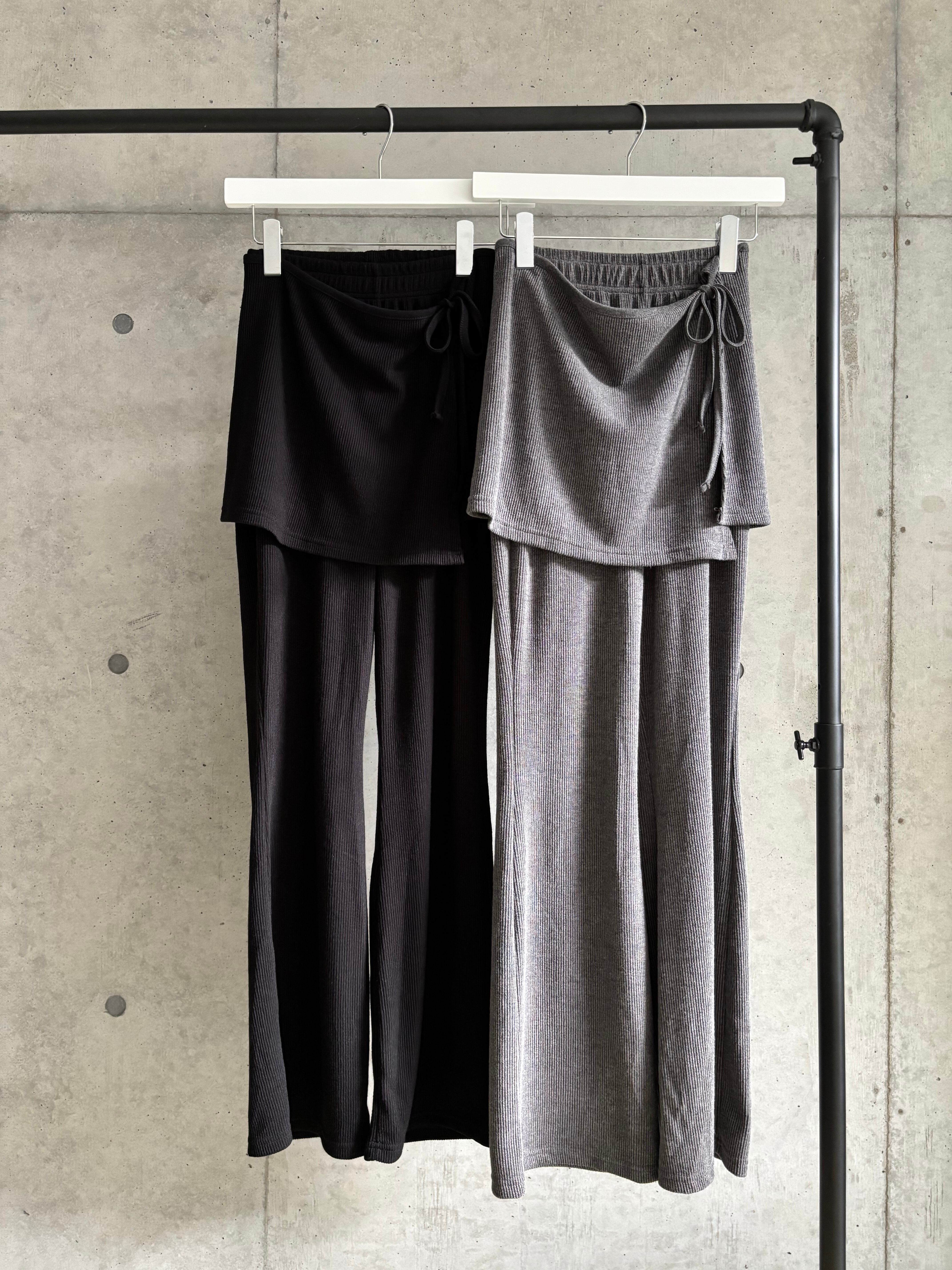 伸縮性のあるリブカット素材で履き心地&着痩せ効果バツグンなラップスカート付きパンツ✨