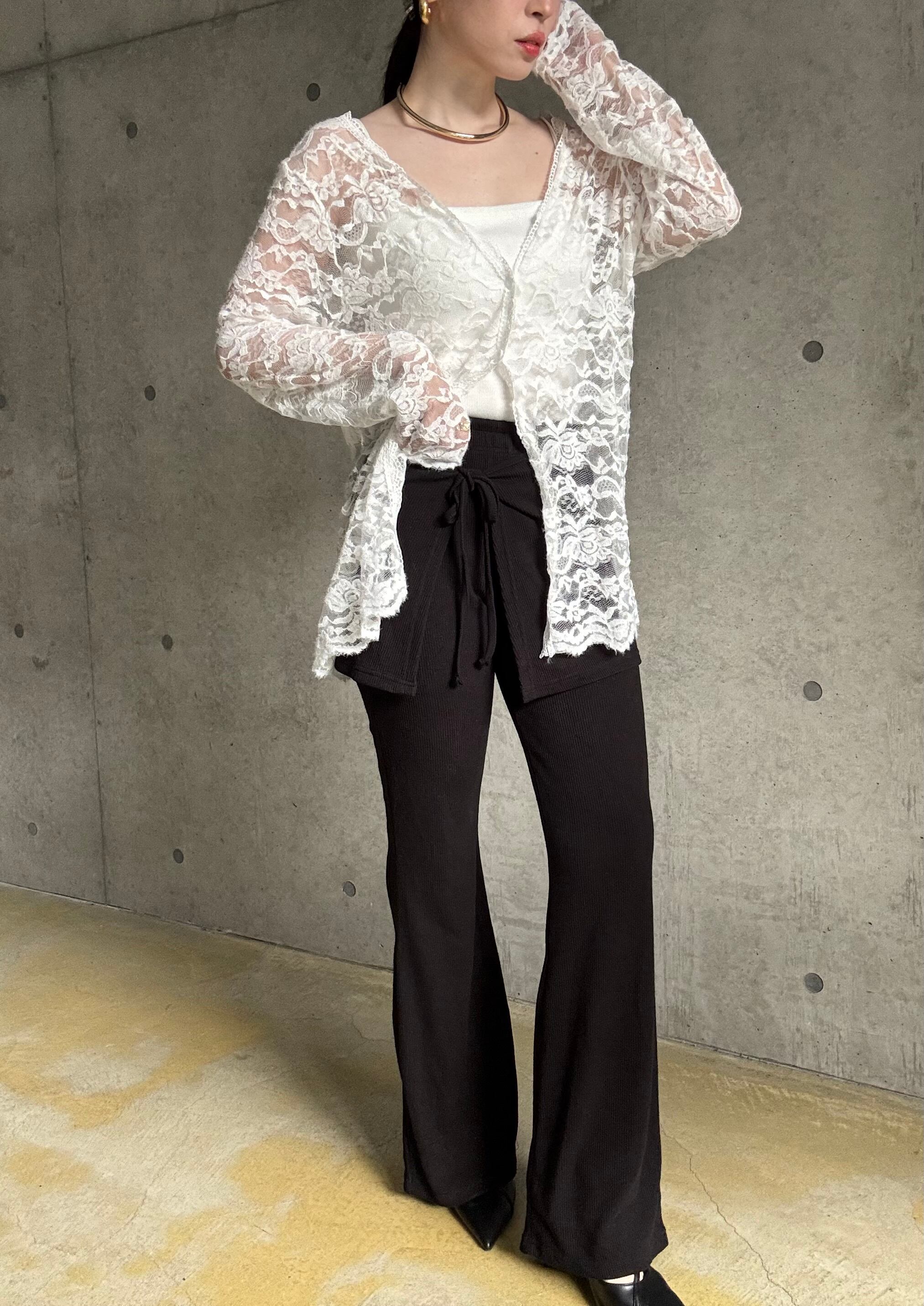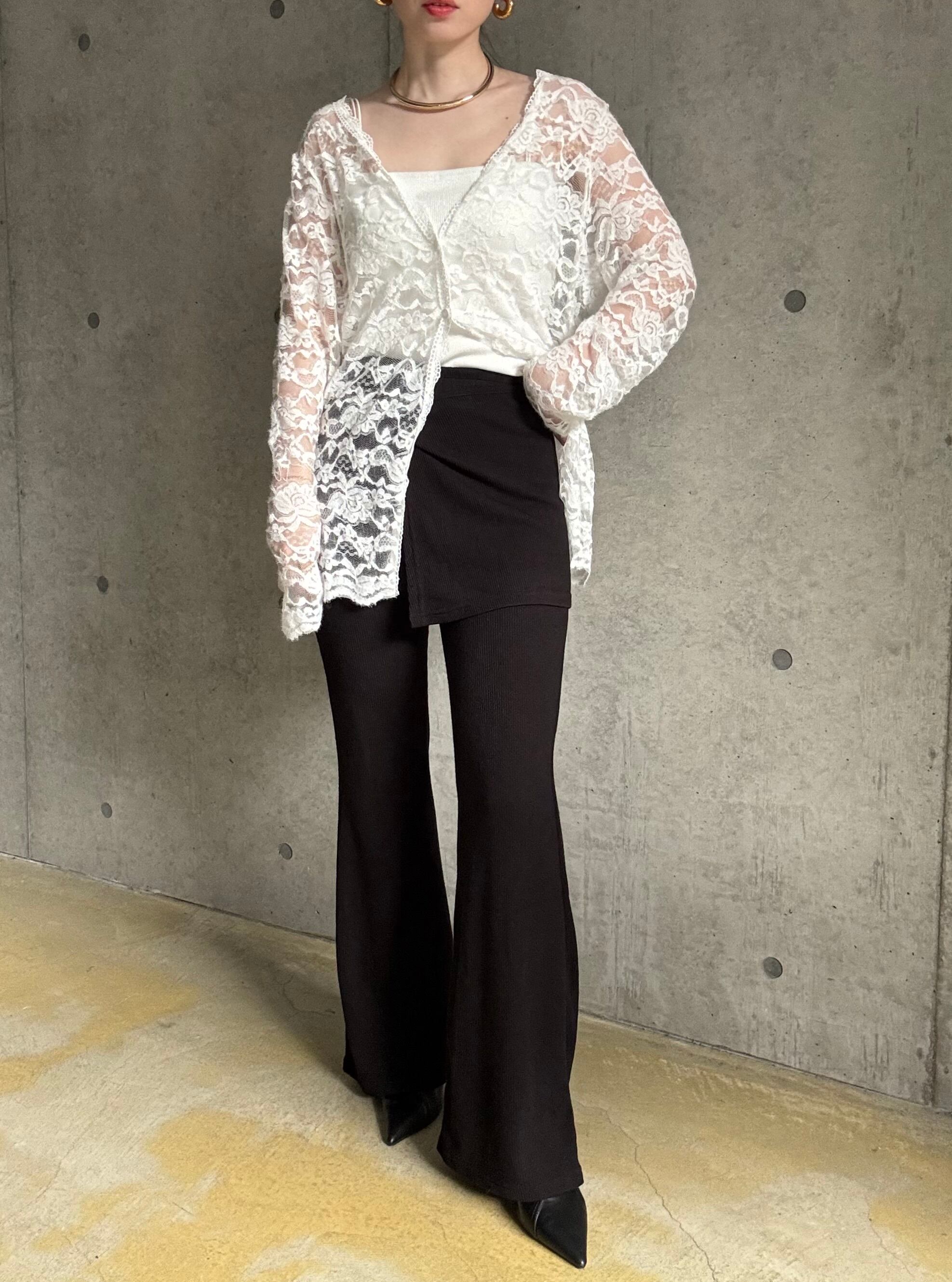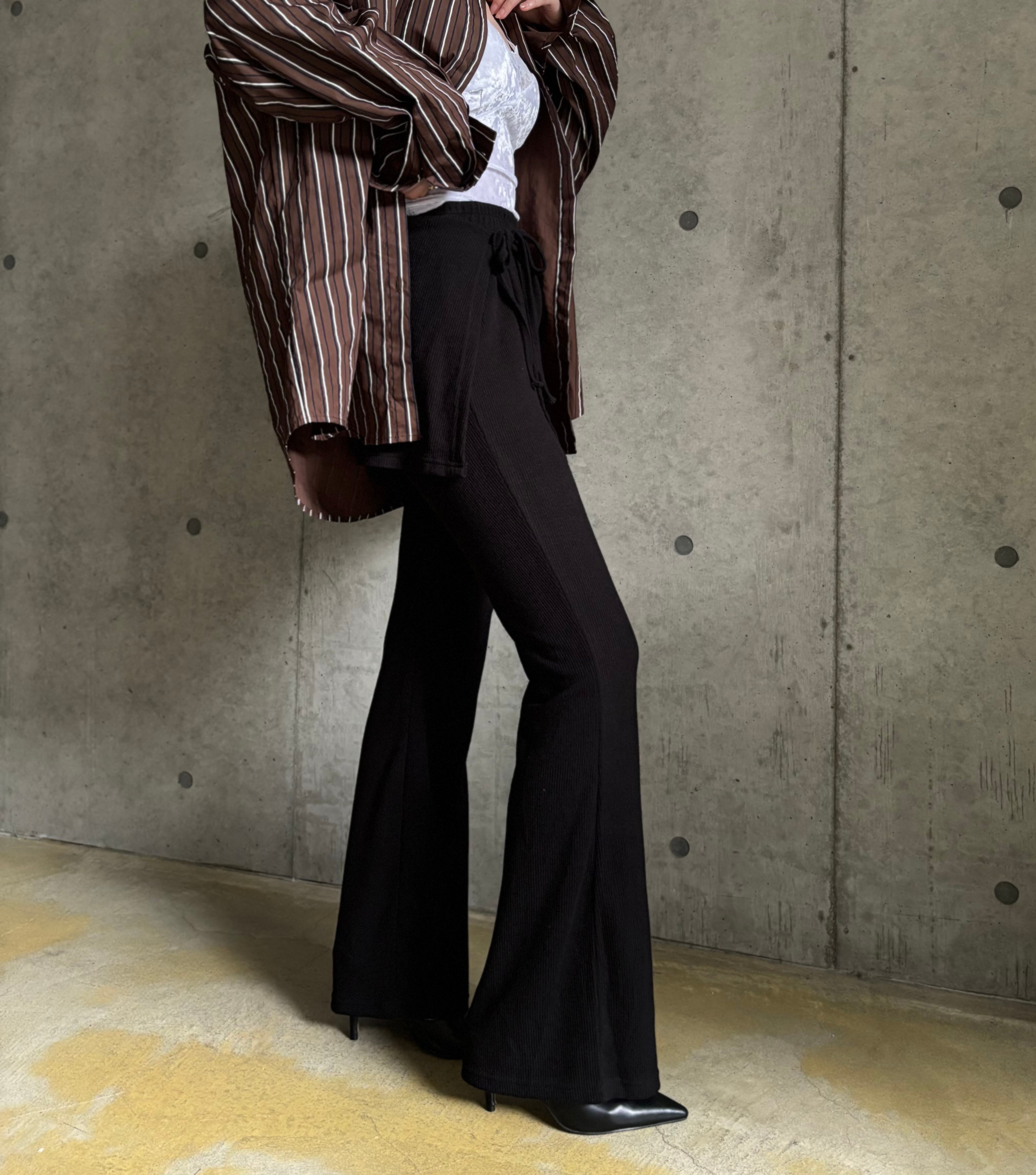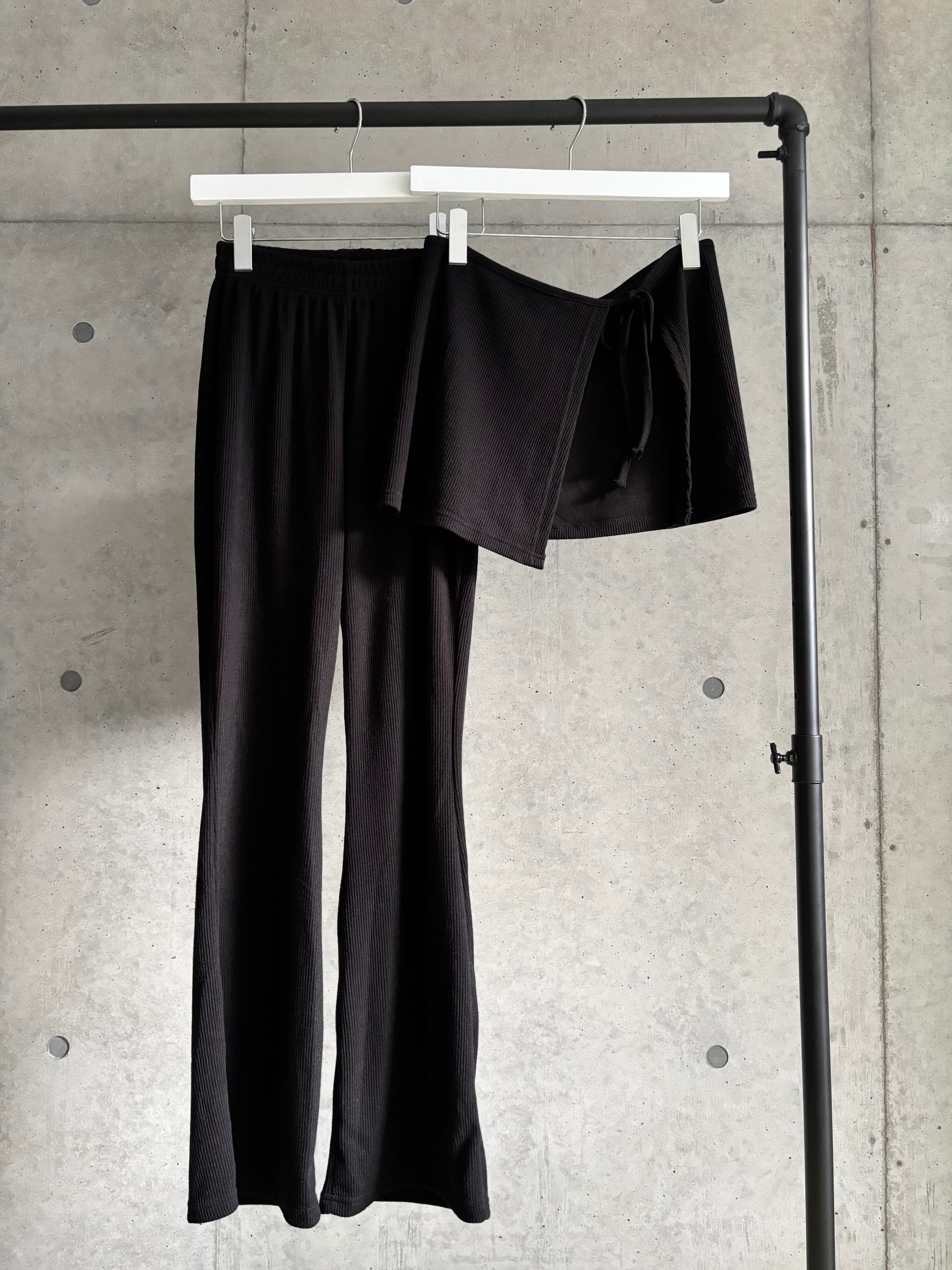 伸縮性のあるリブカット素材で履き心地&着痩せ効果バツグンなラップスカート付きパンツ✨