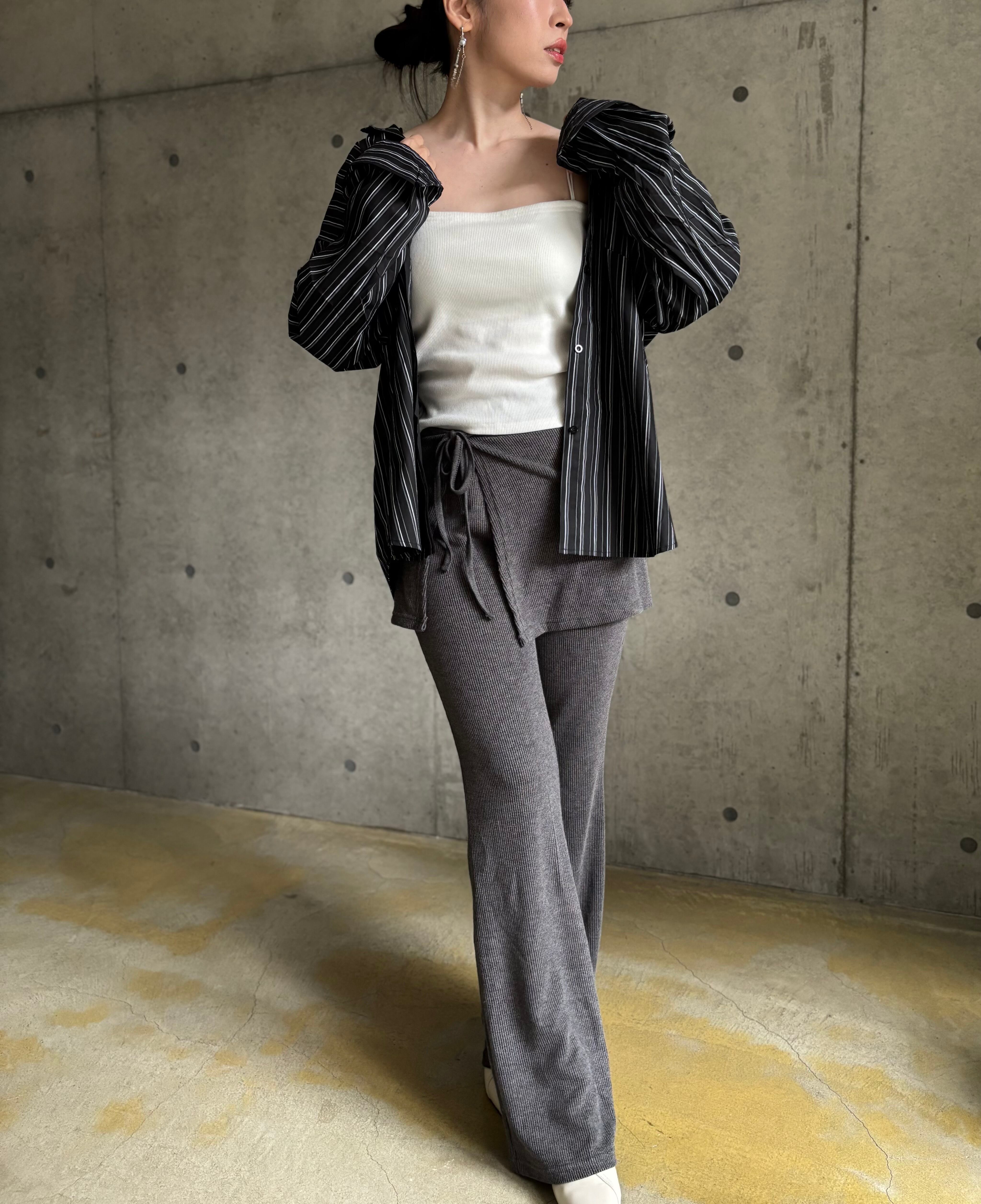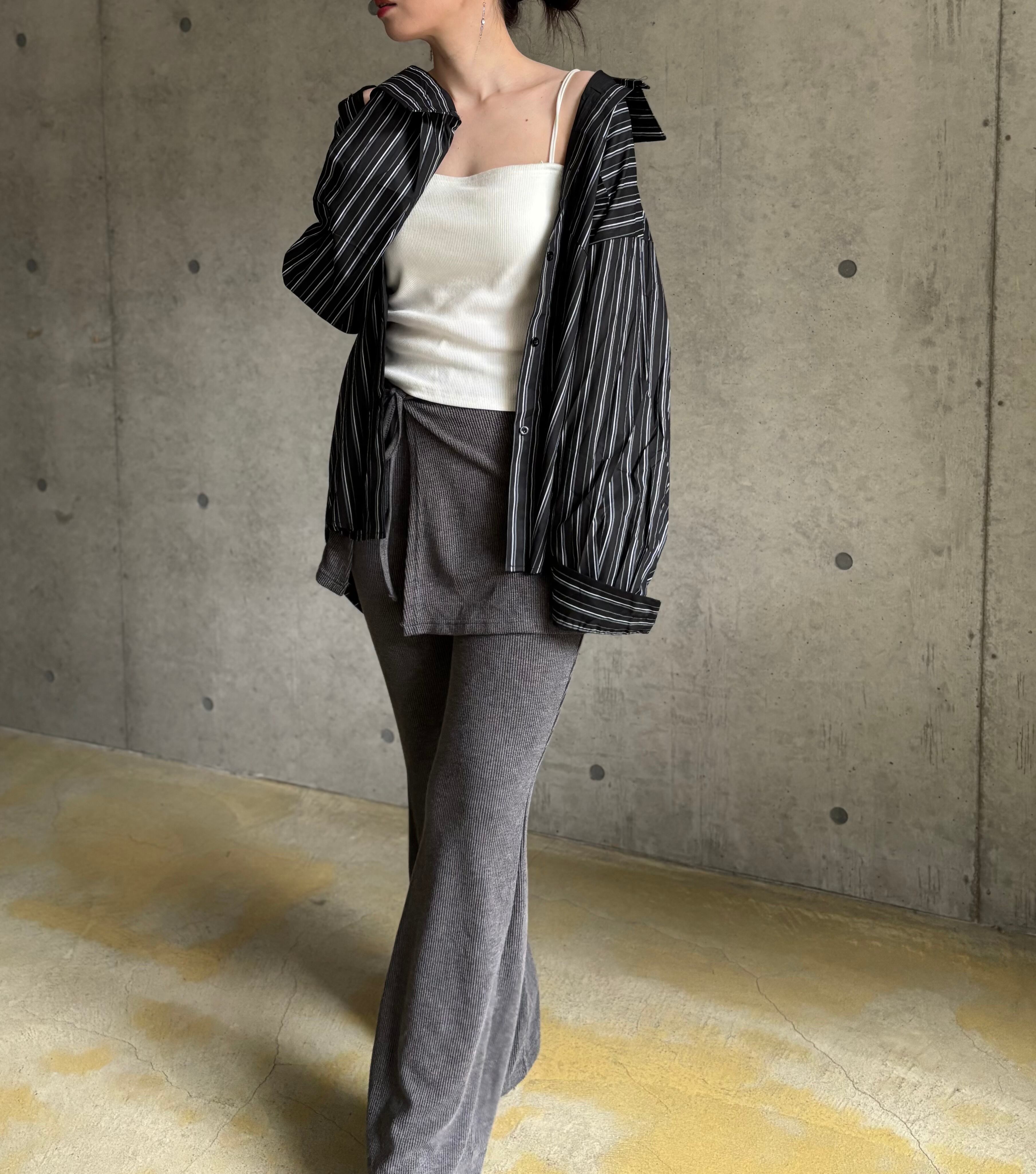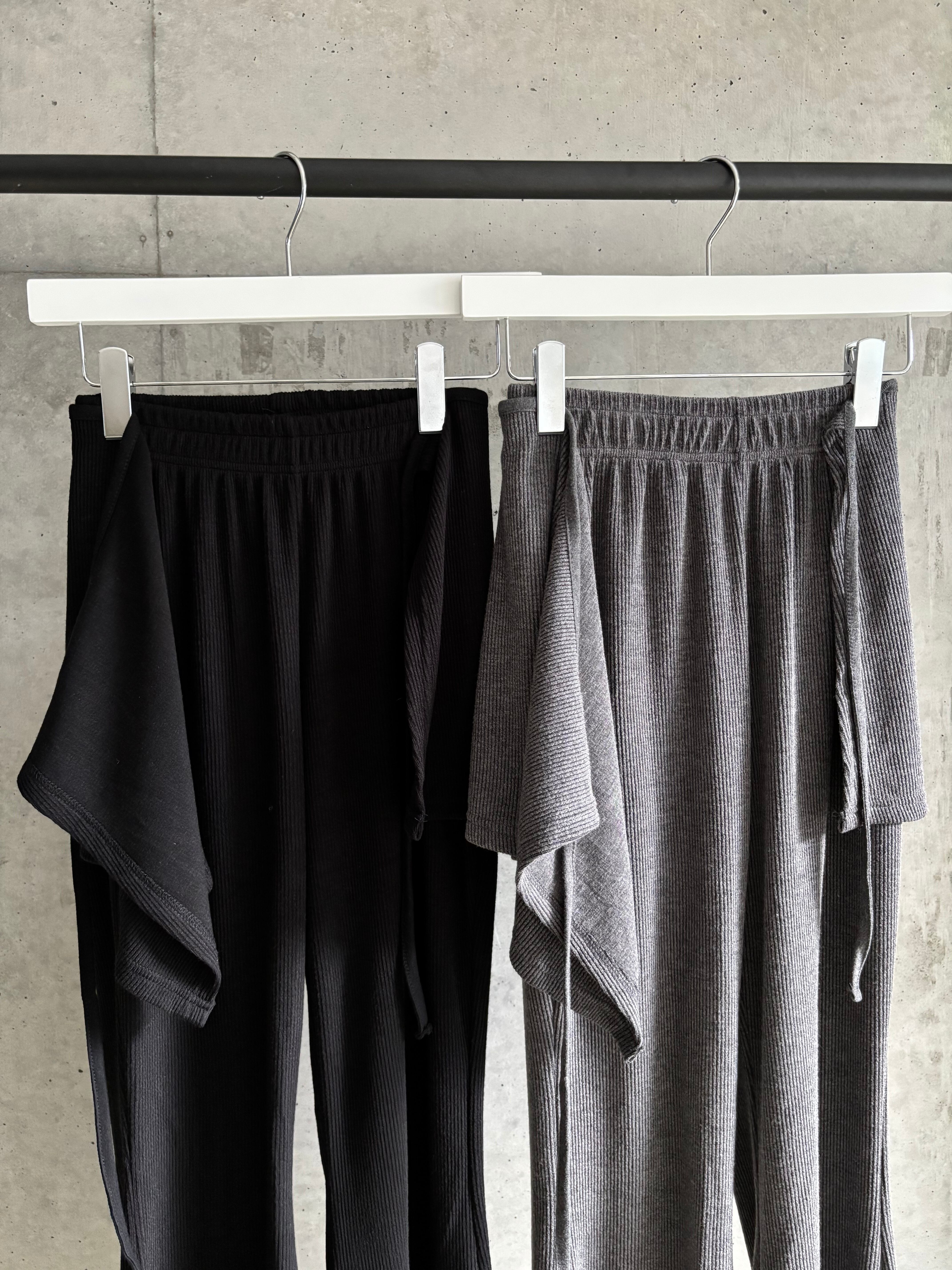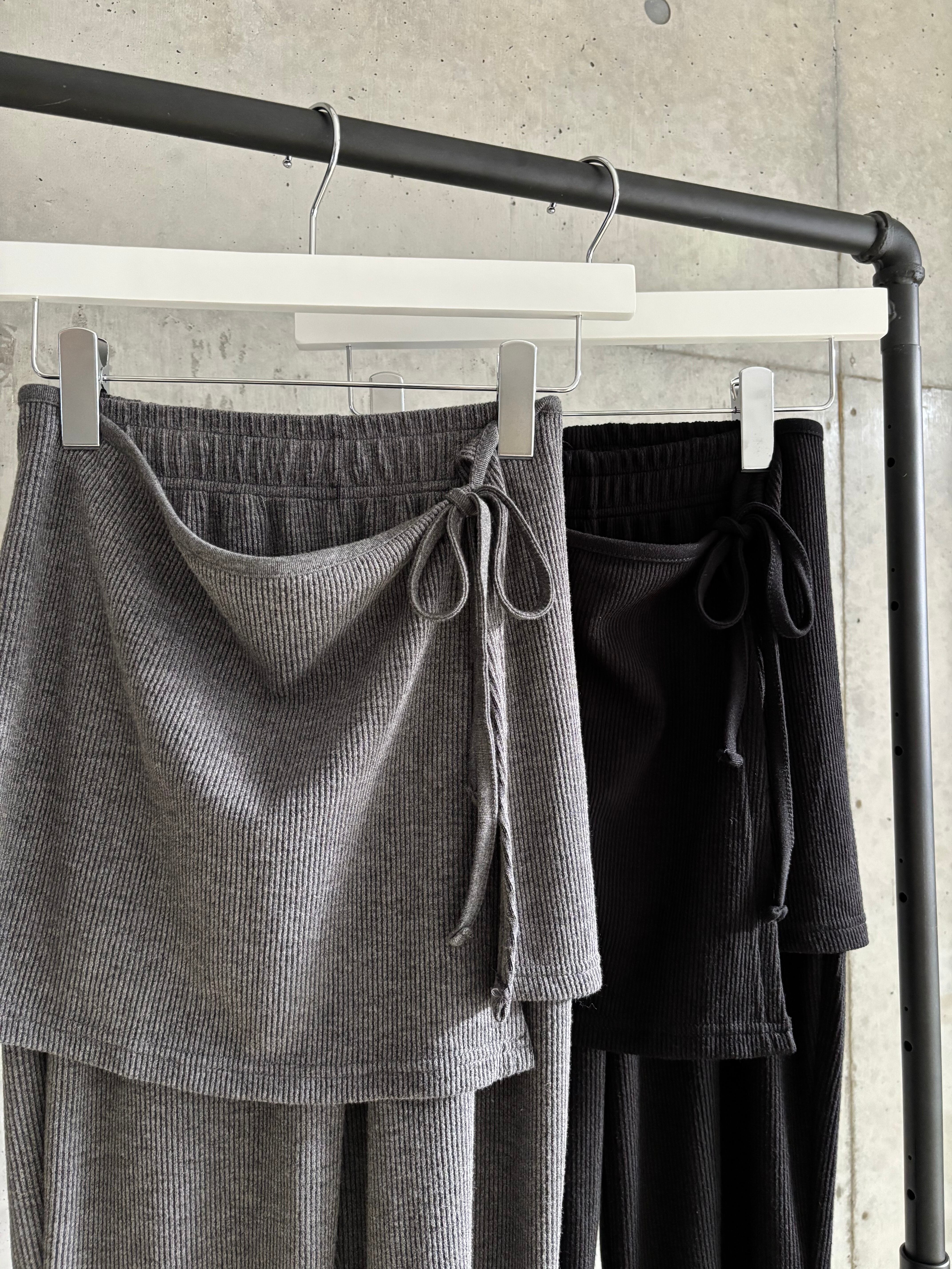 伸縮性のあるリブカット素材で履き心地&着痩せ効果バツグンなラップスカート付きパンツ✨