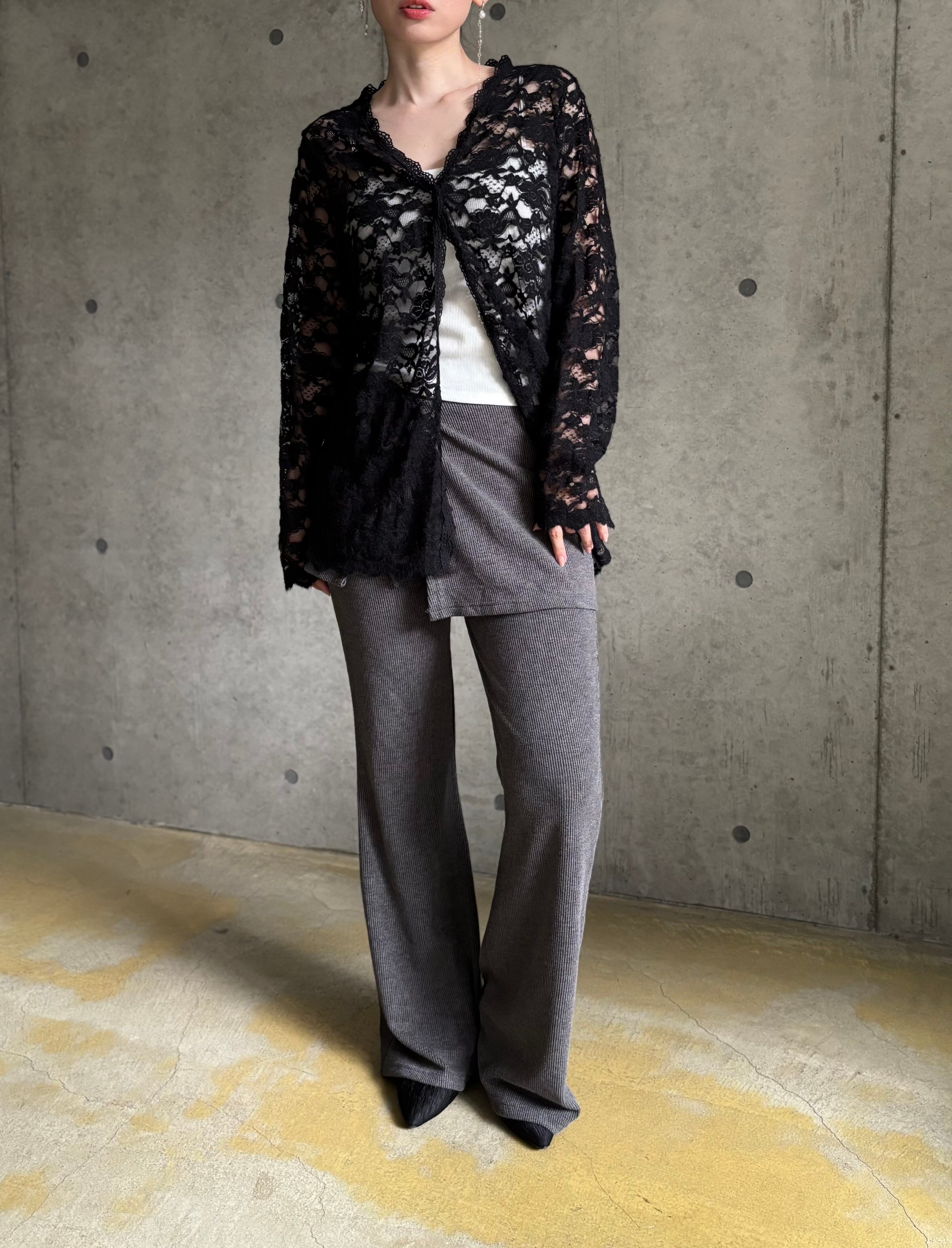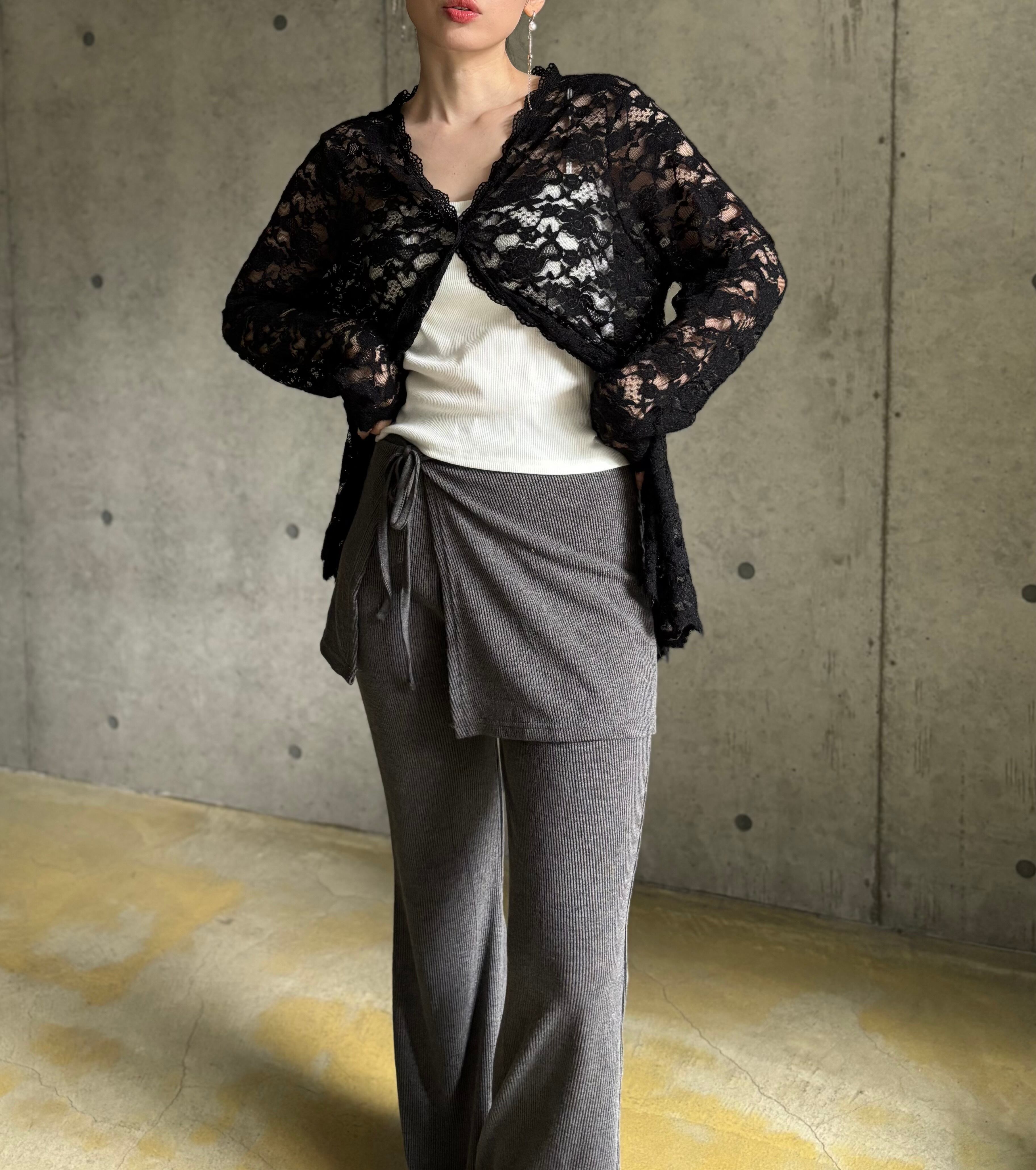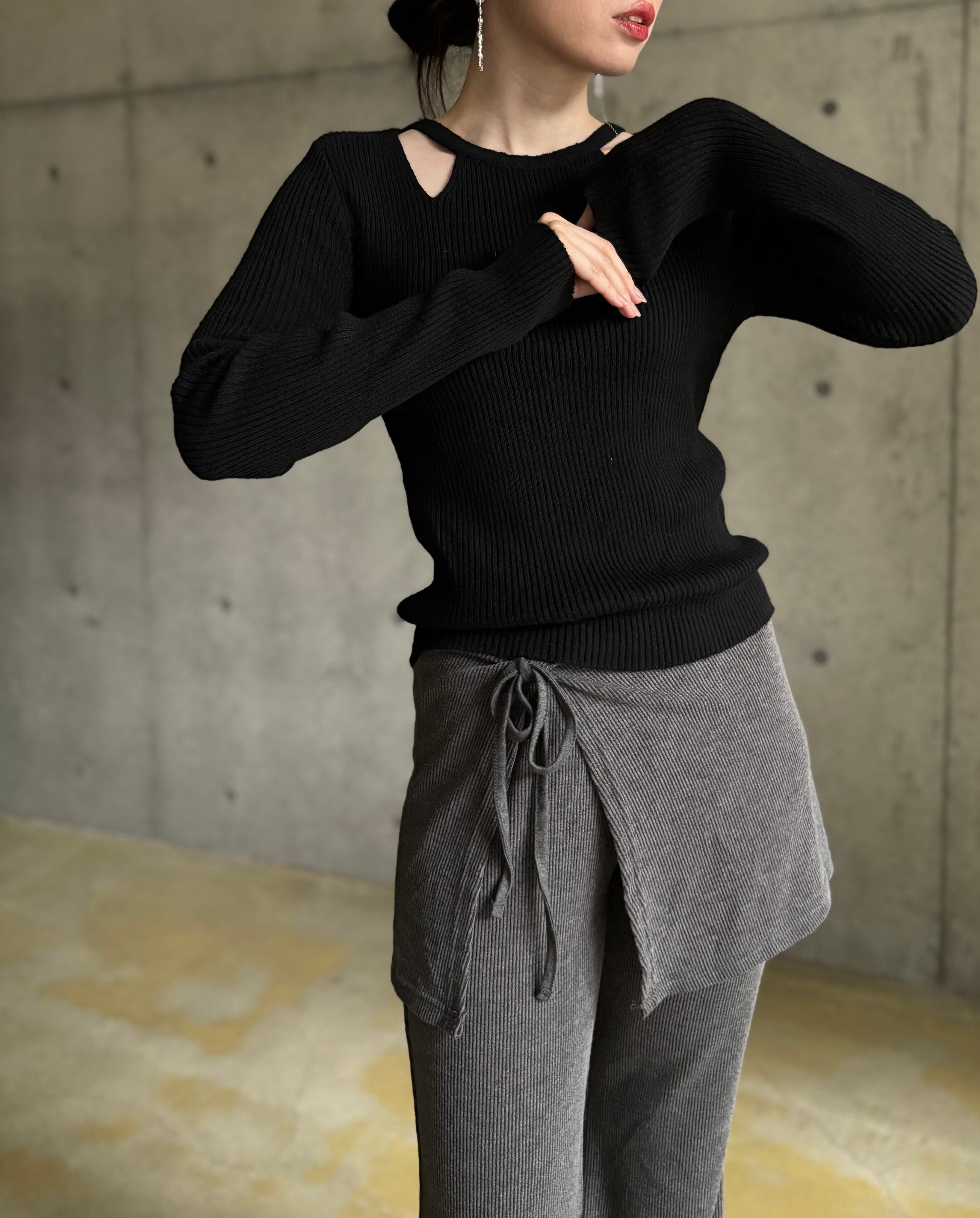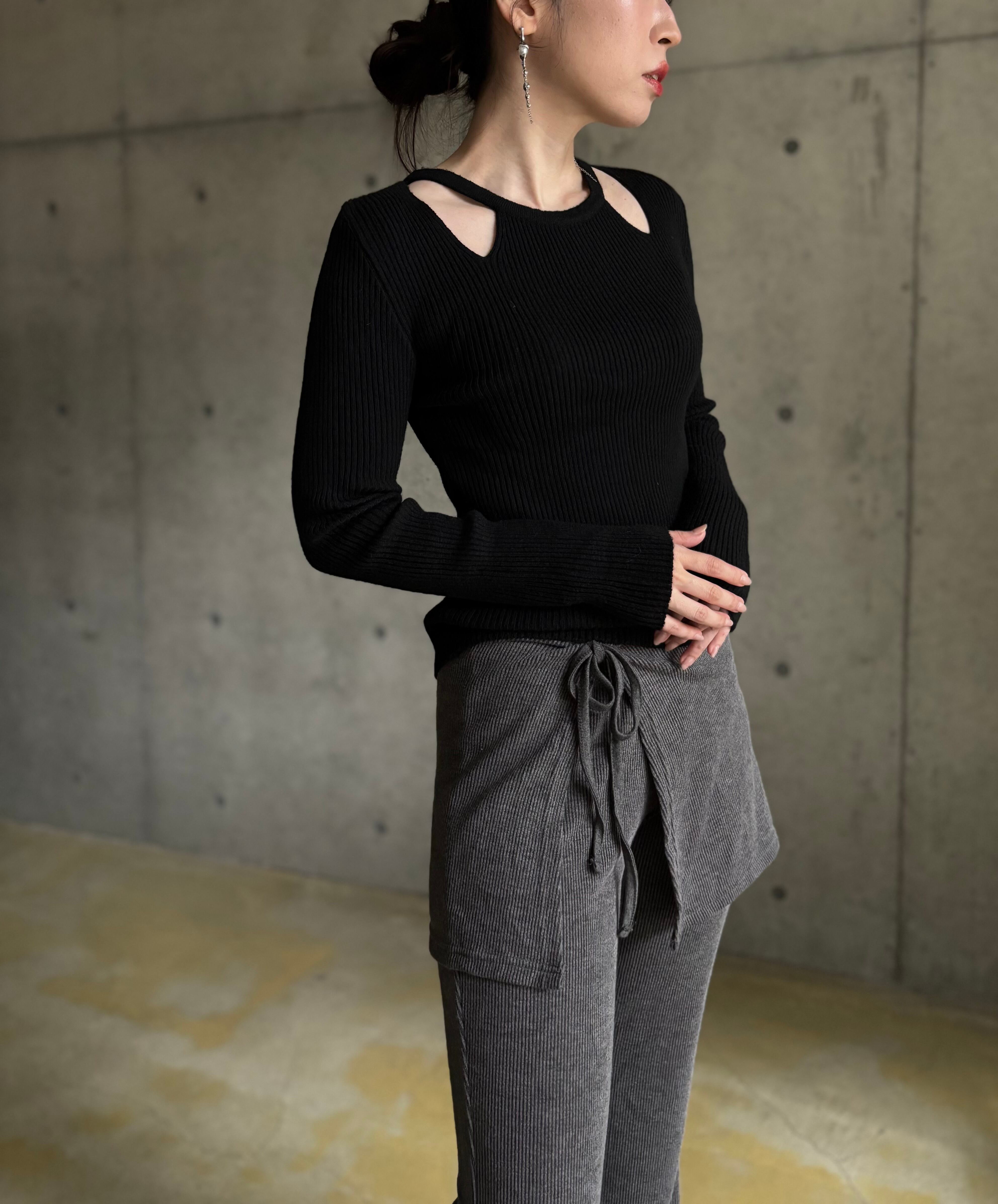 伸縮性のあるリブカット素材で履き心地&着痩せ効果バツグンなラップスカート付きパンツ✨