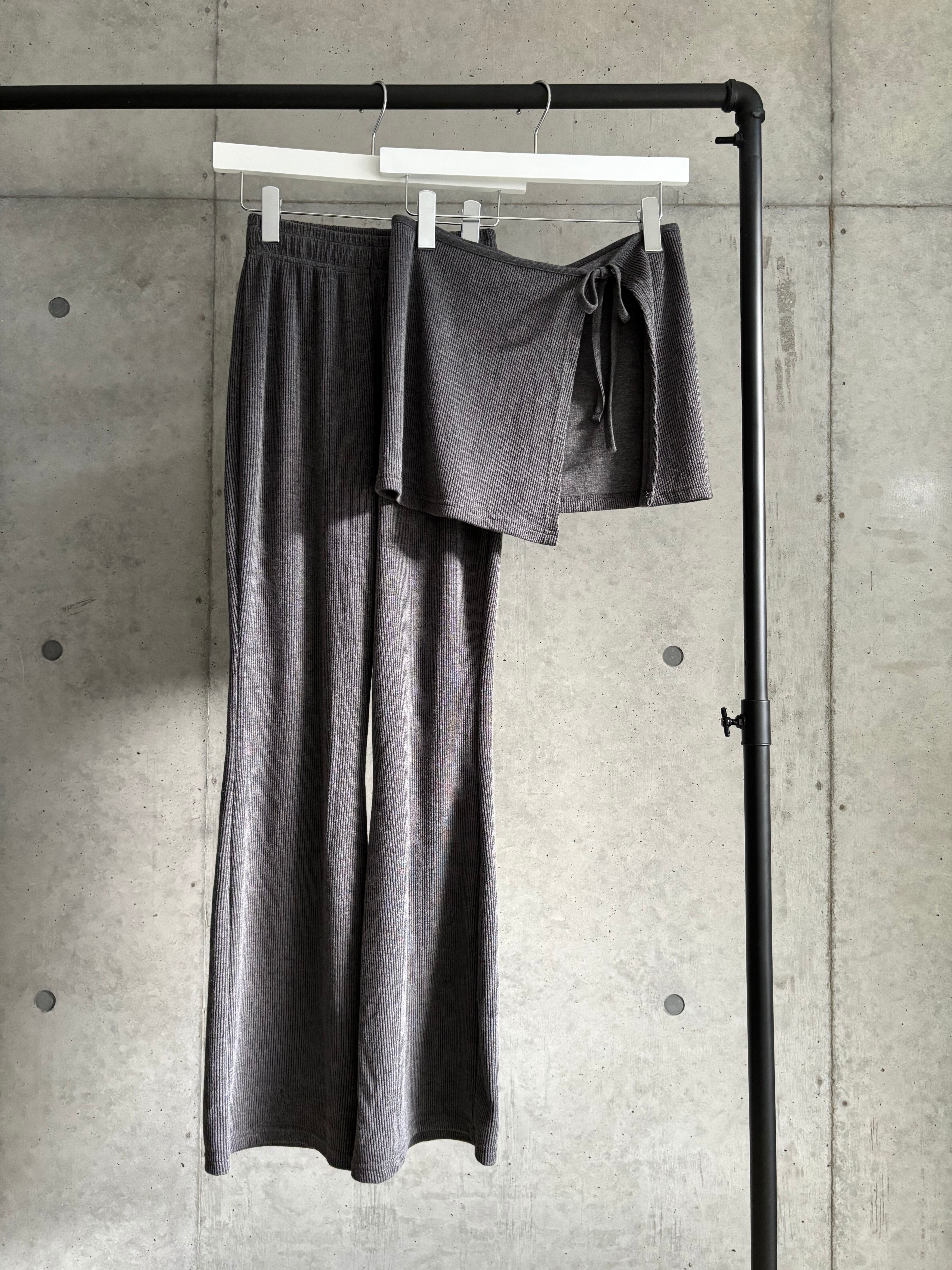 【即納】リブカットパンツ+ラップスカートset【グレー】