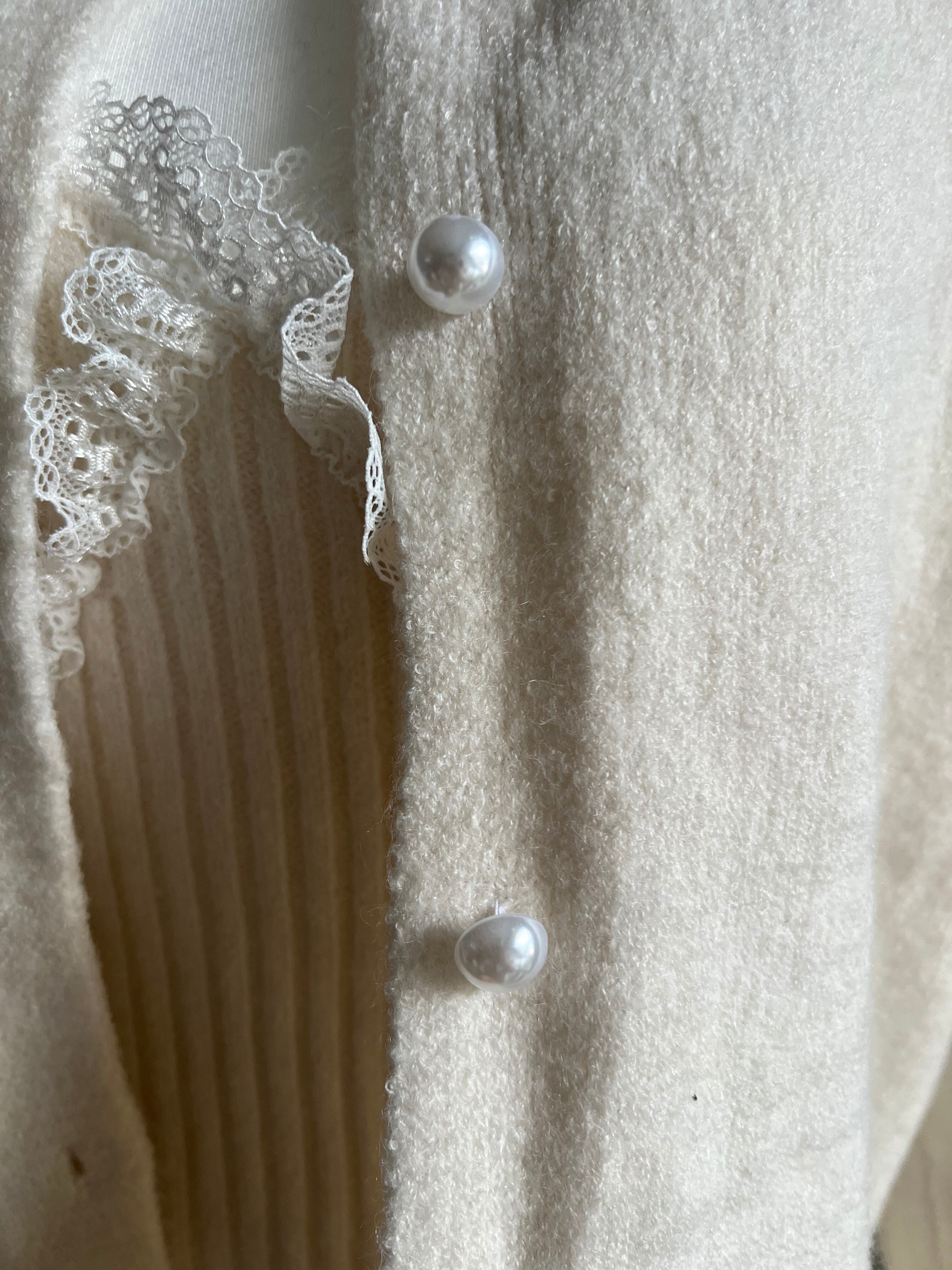 カーディガンはパールボタン仕様で高級感たっぷり♪
