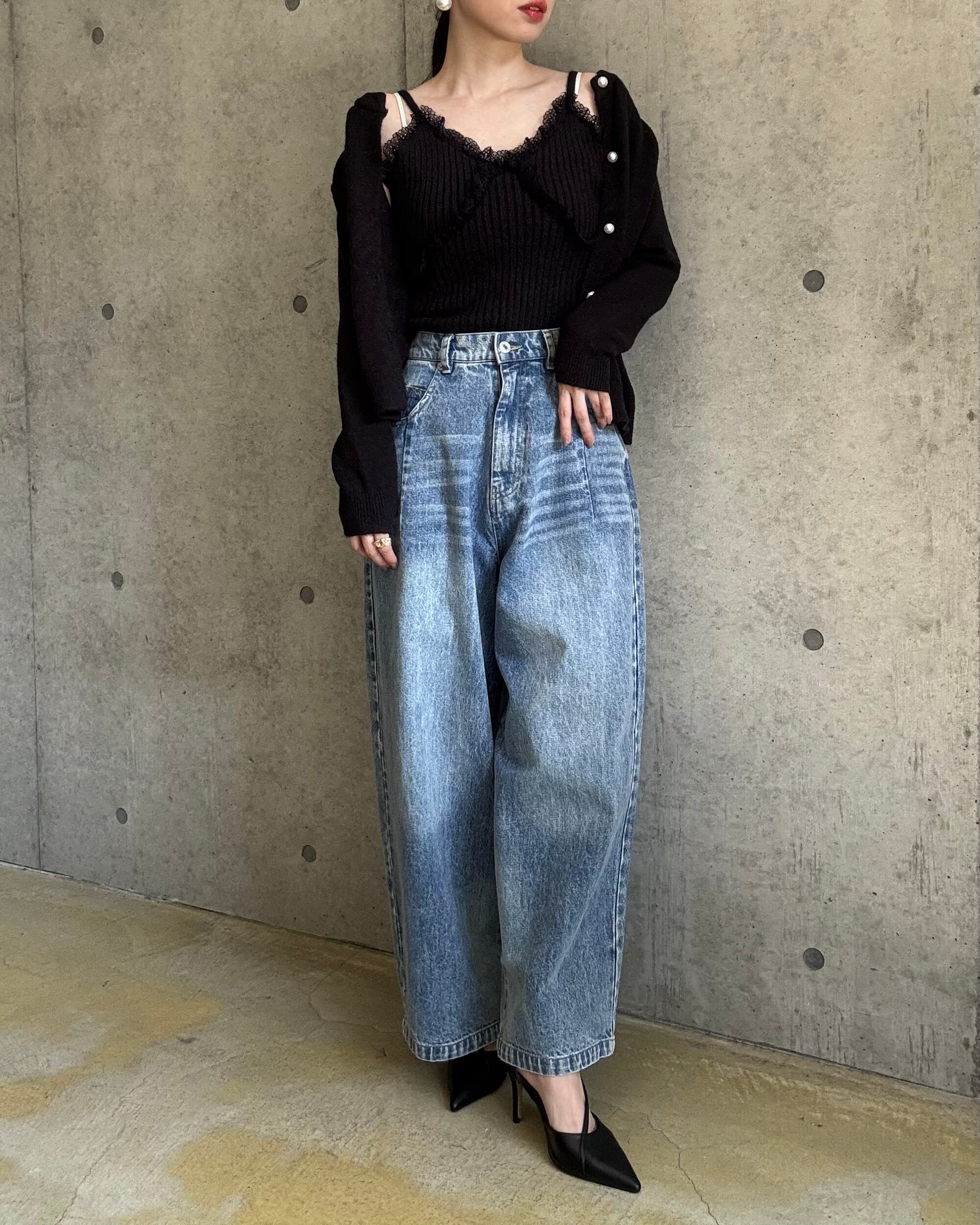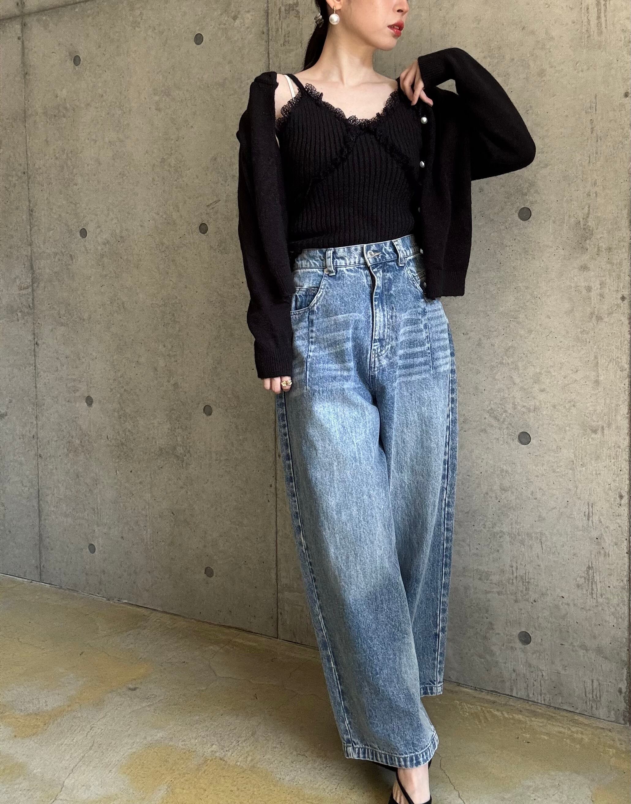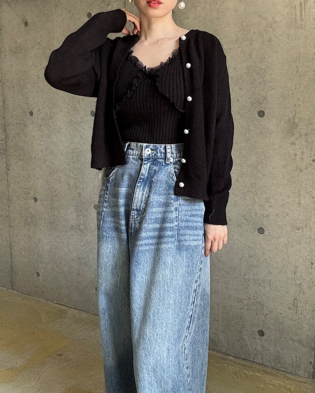 カーディガンはパールボタン仕様で高級感たっぷり♪